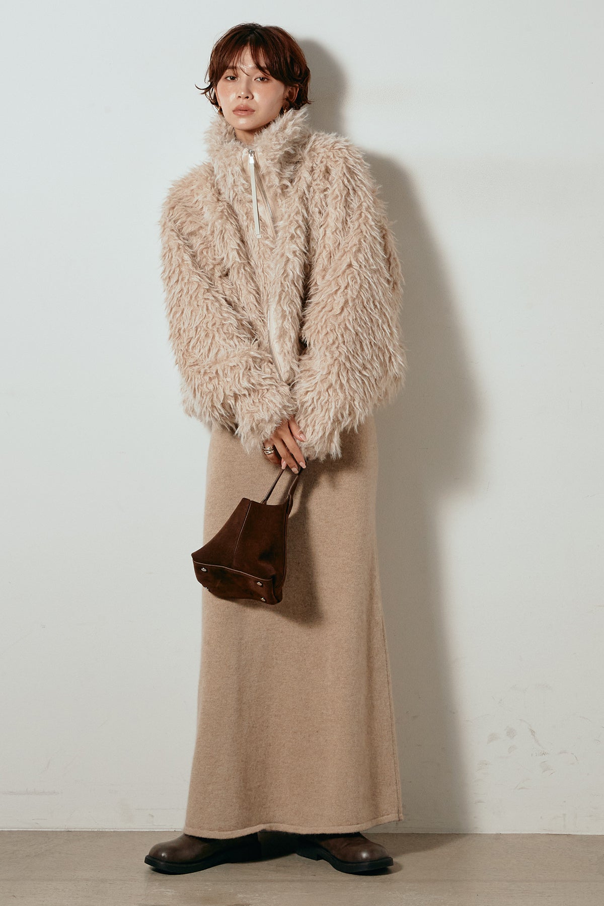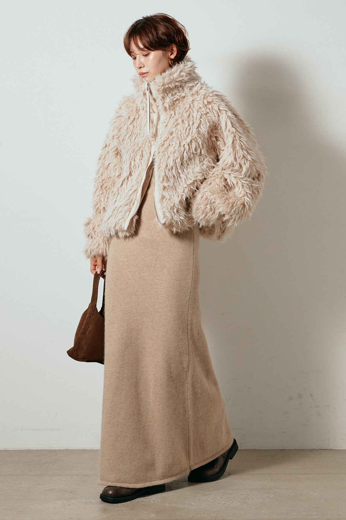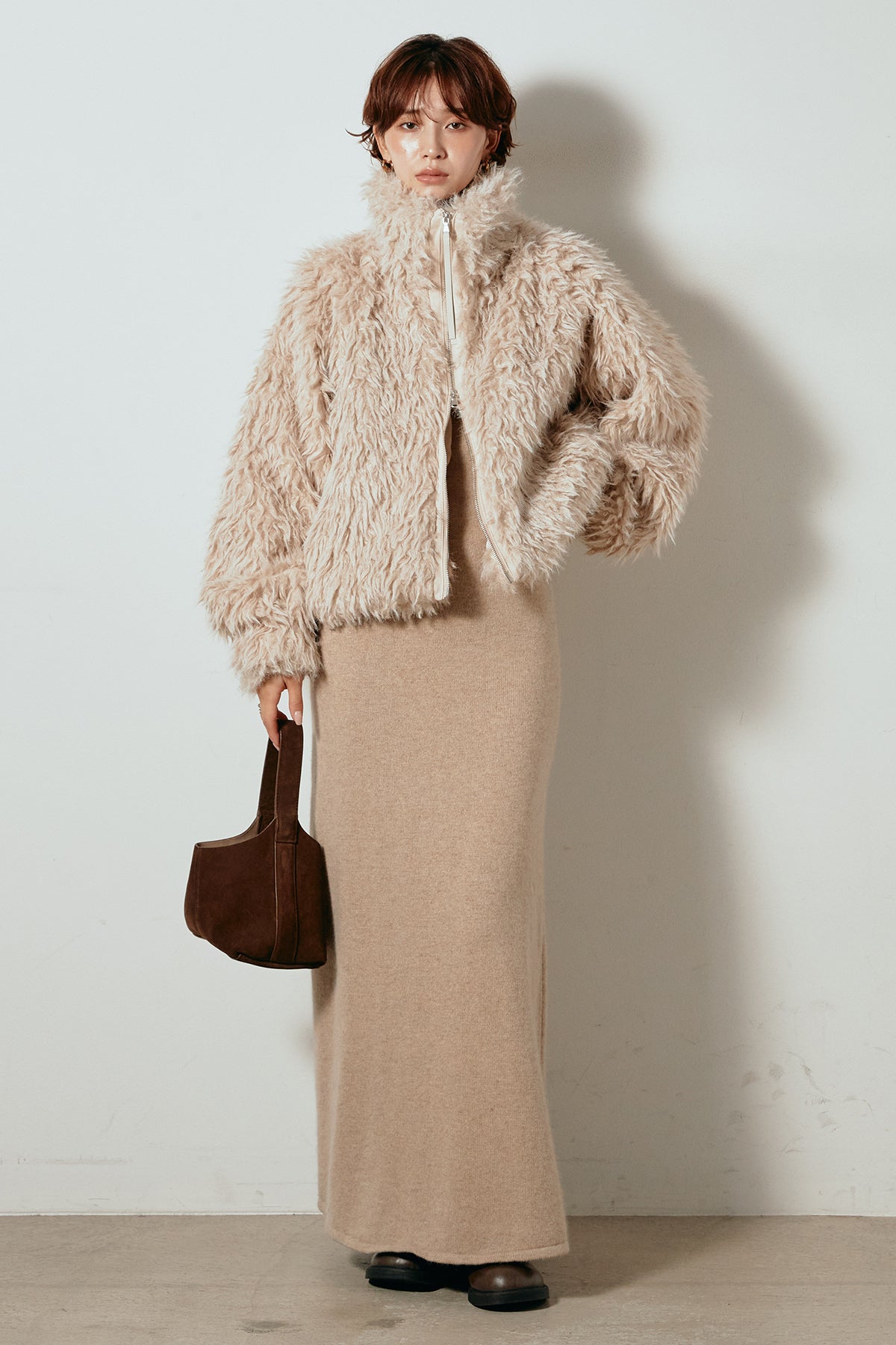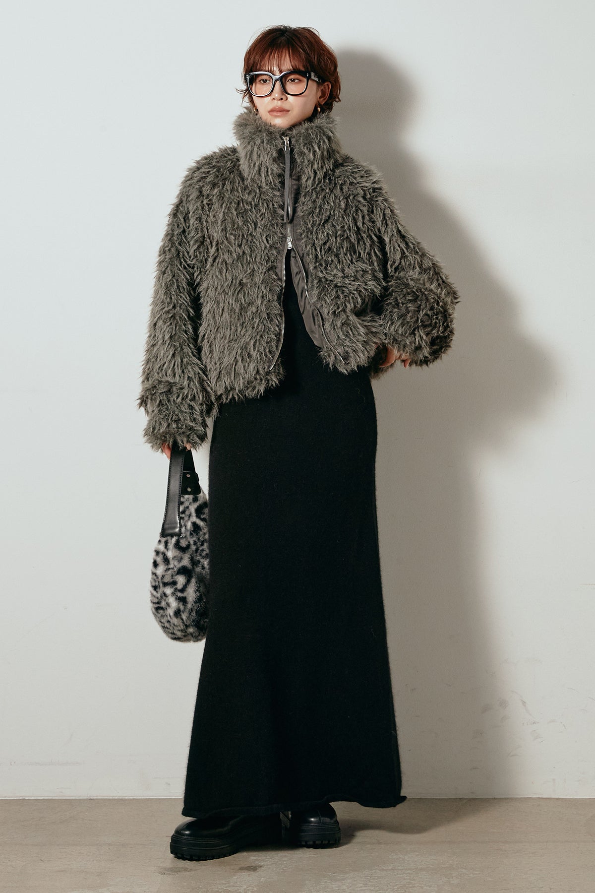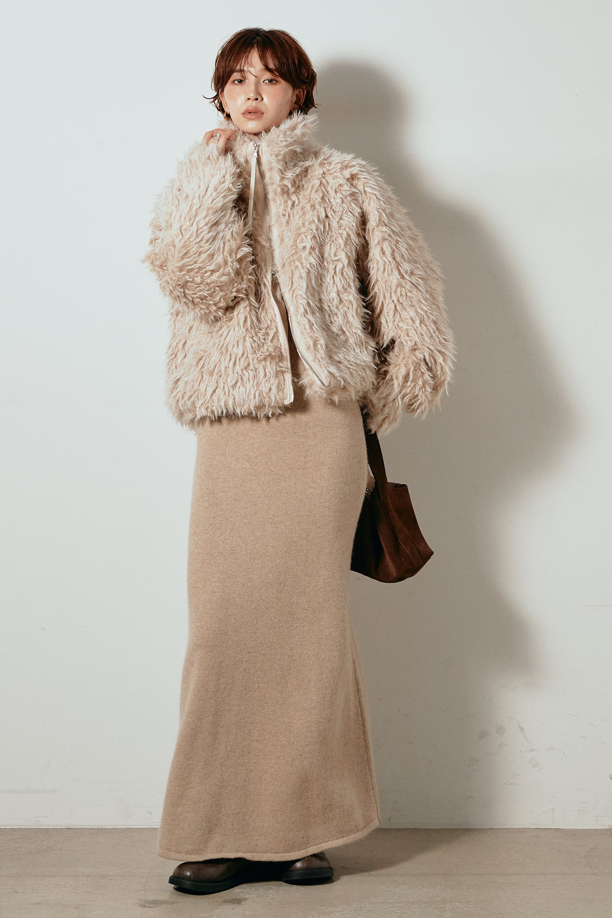 ふんわりとしたボリューム感が魅力のミックスシープファースタンドブルゾン。毛足の長いファーをミックスすることで、奥行きのある立体感を表現。スタンドカラー仕様で首元まで暖かく、冬のスタイリングを華やかに引き立てます。ショート丈デザインはバランスが取りやすく、スカートにもパンツにも相性抜群。羽織るだけで旬なムードを添える主役アウターです。