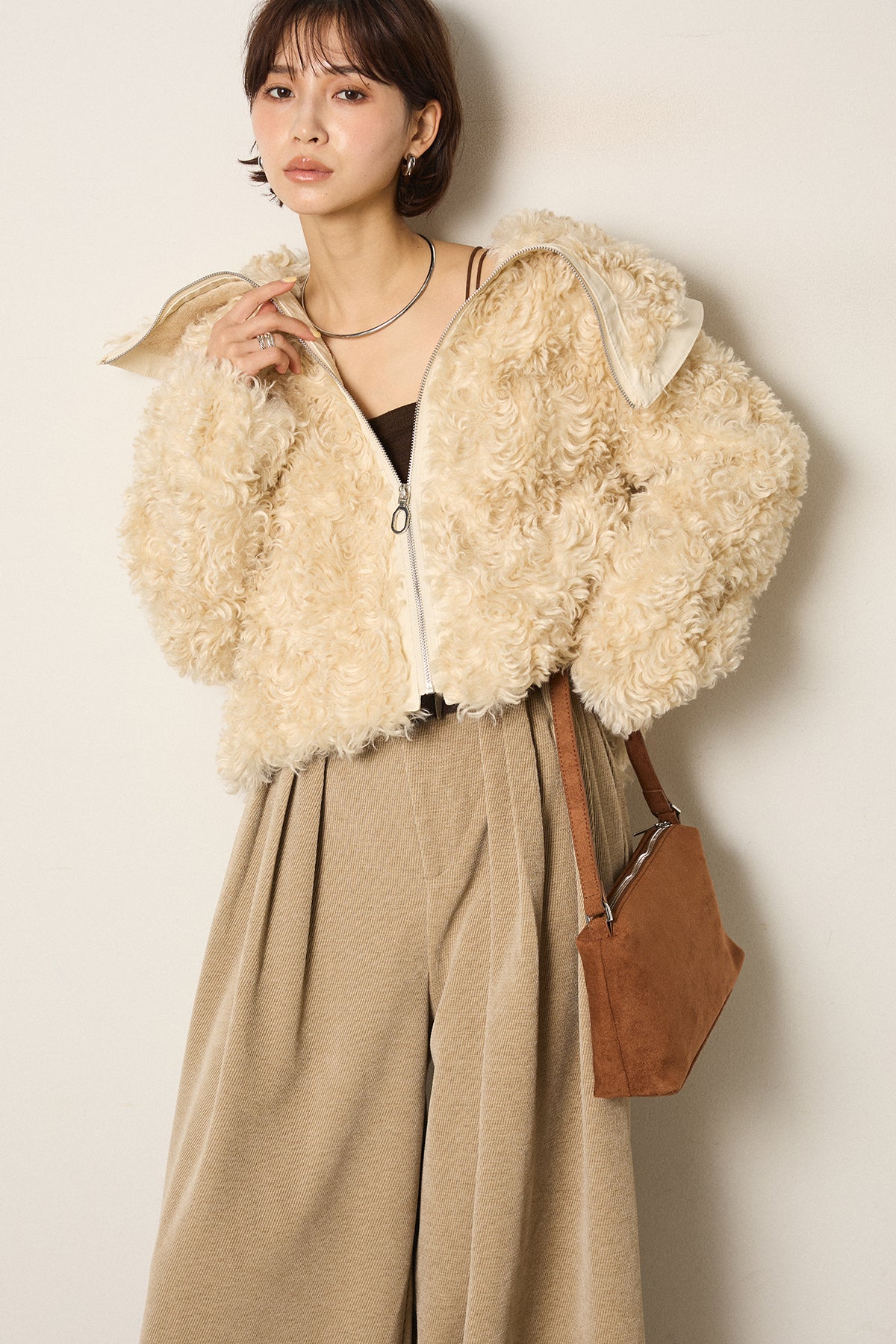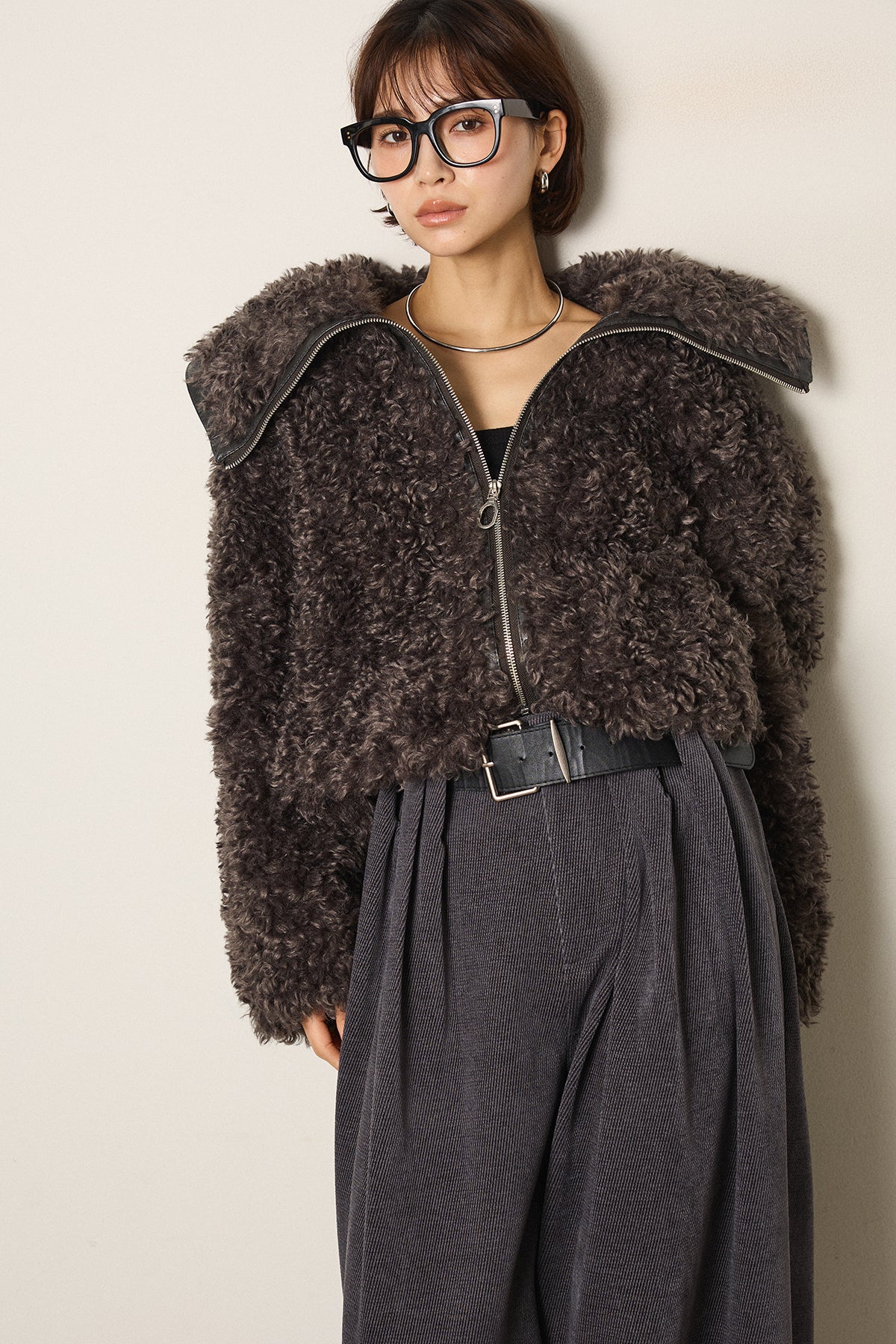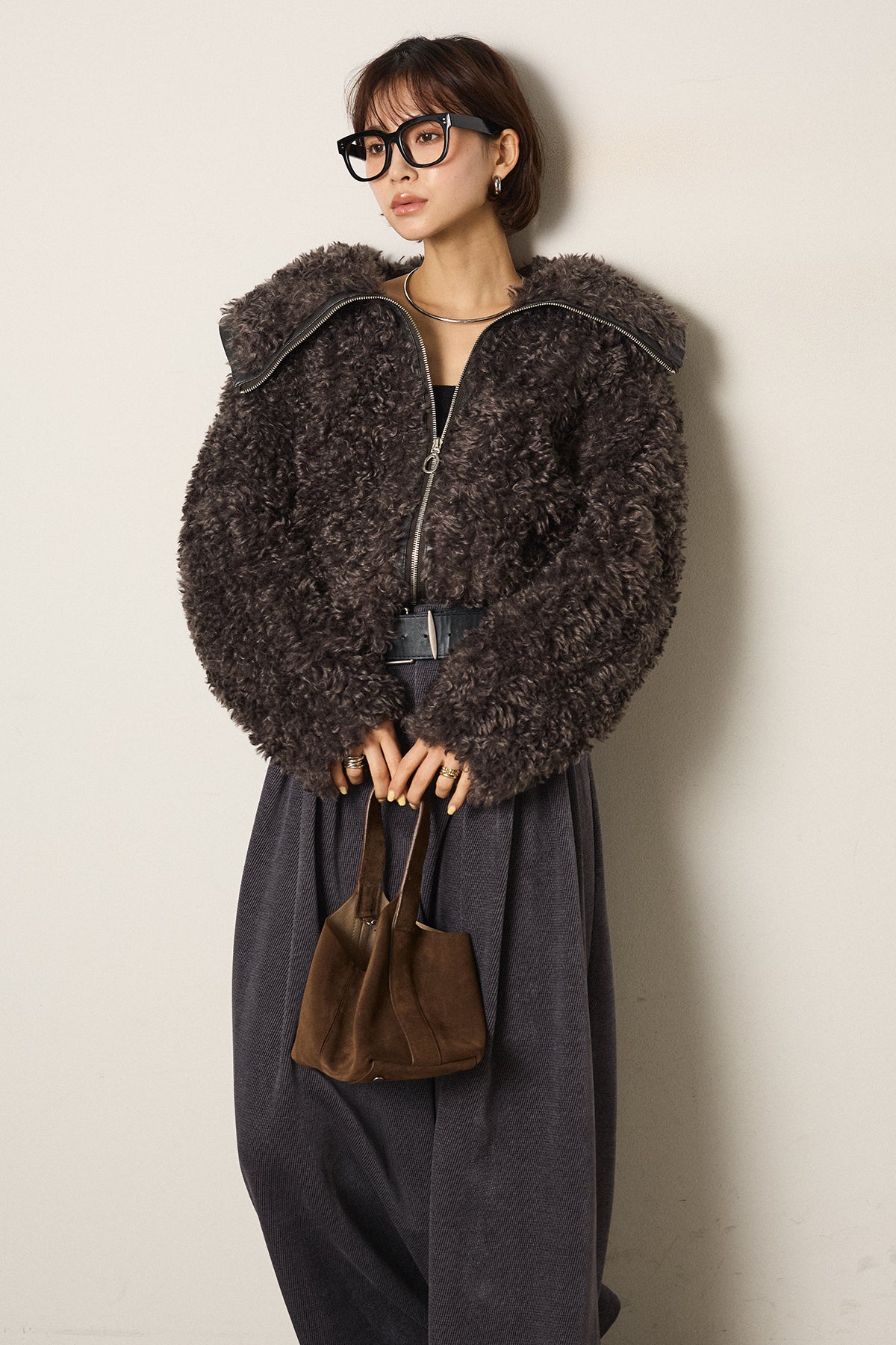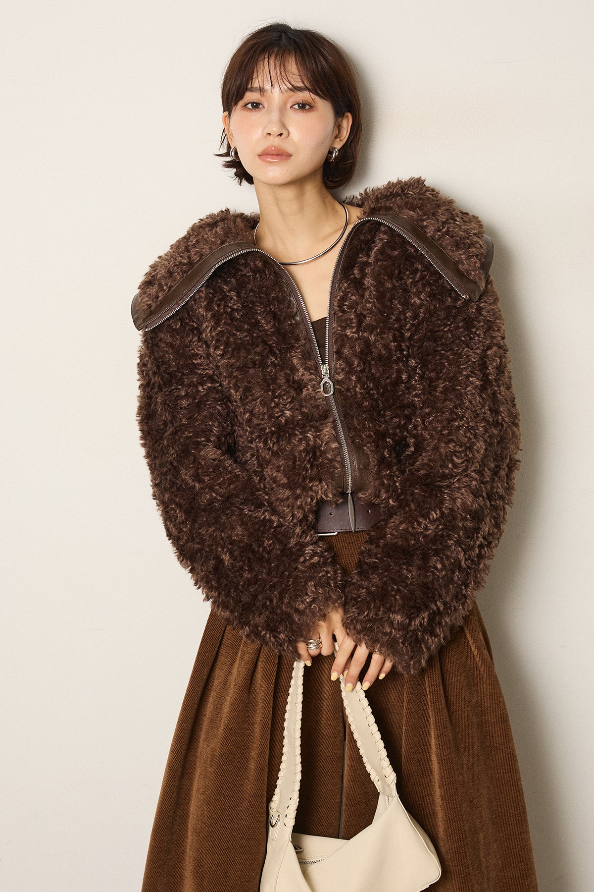 ビッグカラーが印象的なプードルボア素材のアウター。 ふんわりとした質感で、見た目にもやわらかさを感じられる一着です。 顔まわりにポイントがありつつ、全体はシンプルなシルエットで合わせやすいデザイン。 デイリー使いから外出まで、さっと羽織れて幅広いスタイリングに活躍します。
