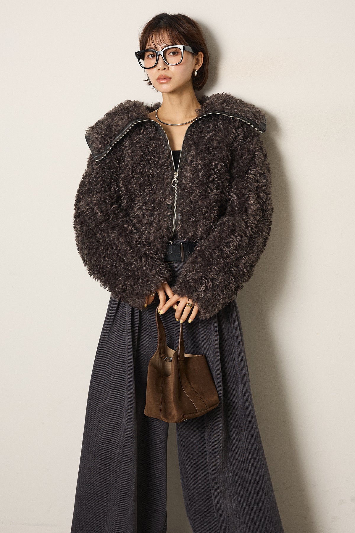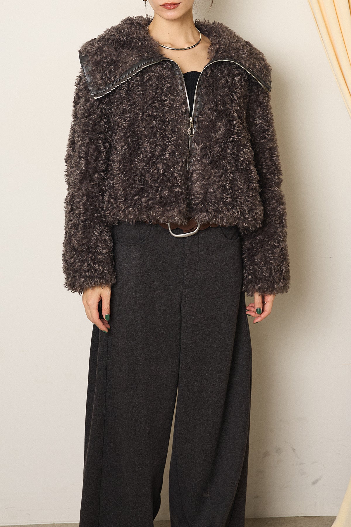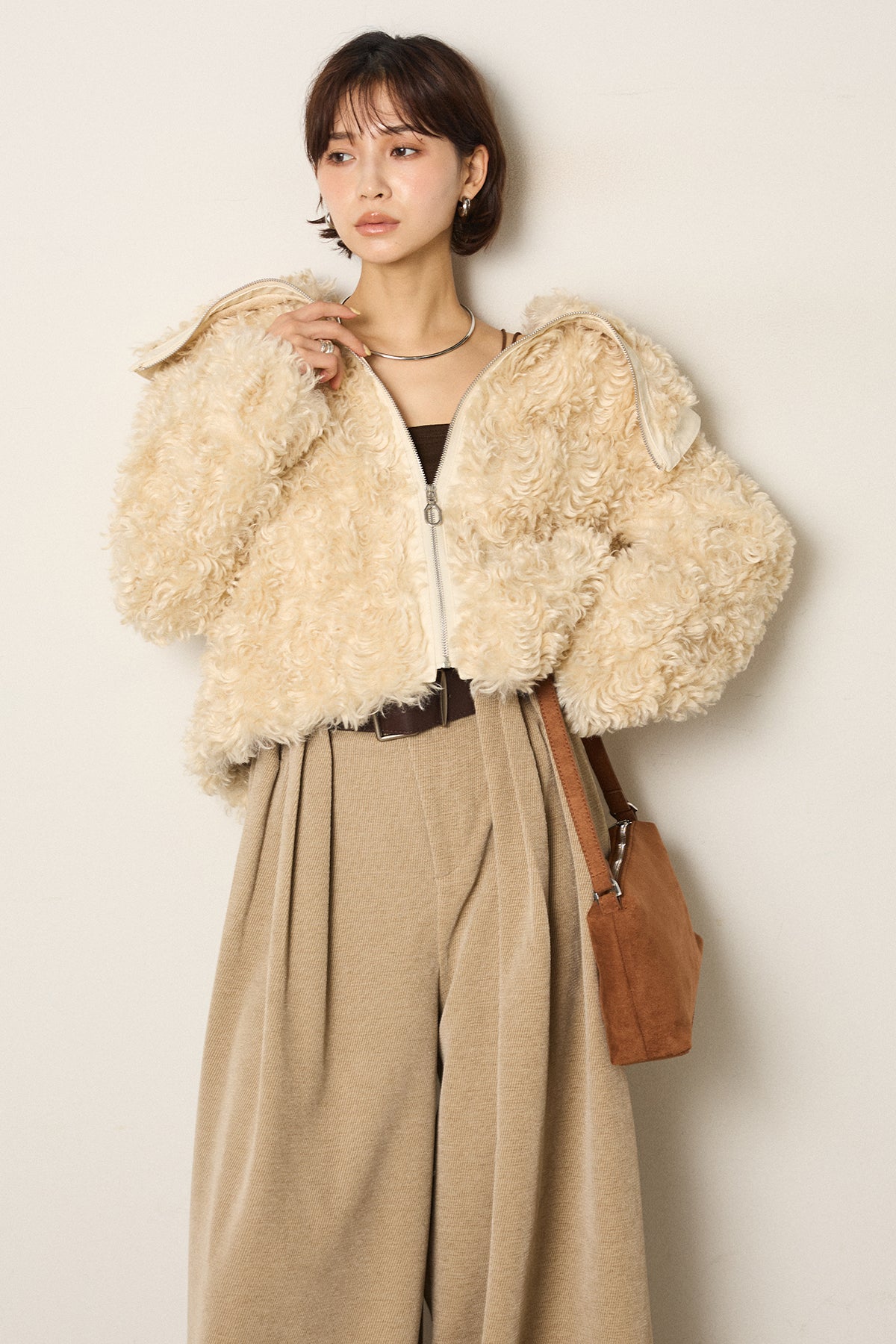 ビッグカラーが印象的なプードルボア素材のアウター。 ふんわりとした質感で、見た目にもやわらかさを感じられる一着です。 顔まわりにポイントがありつつ、全体はシンプルなシルエットで合わせやすいデザイン。 デイリー使いから外出まで、さっと羽織れて幅広いスタイリングに活躍します。