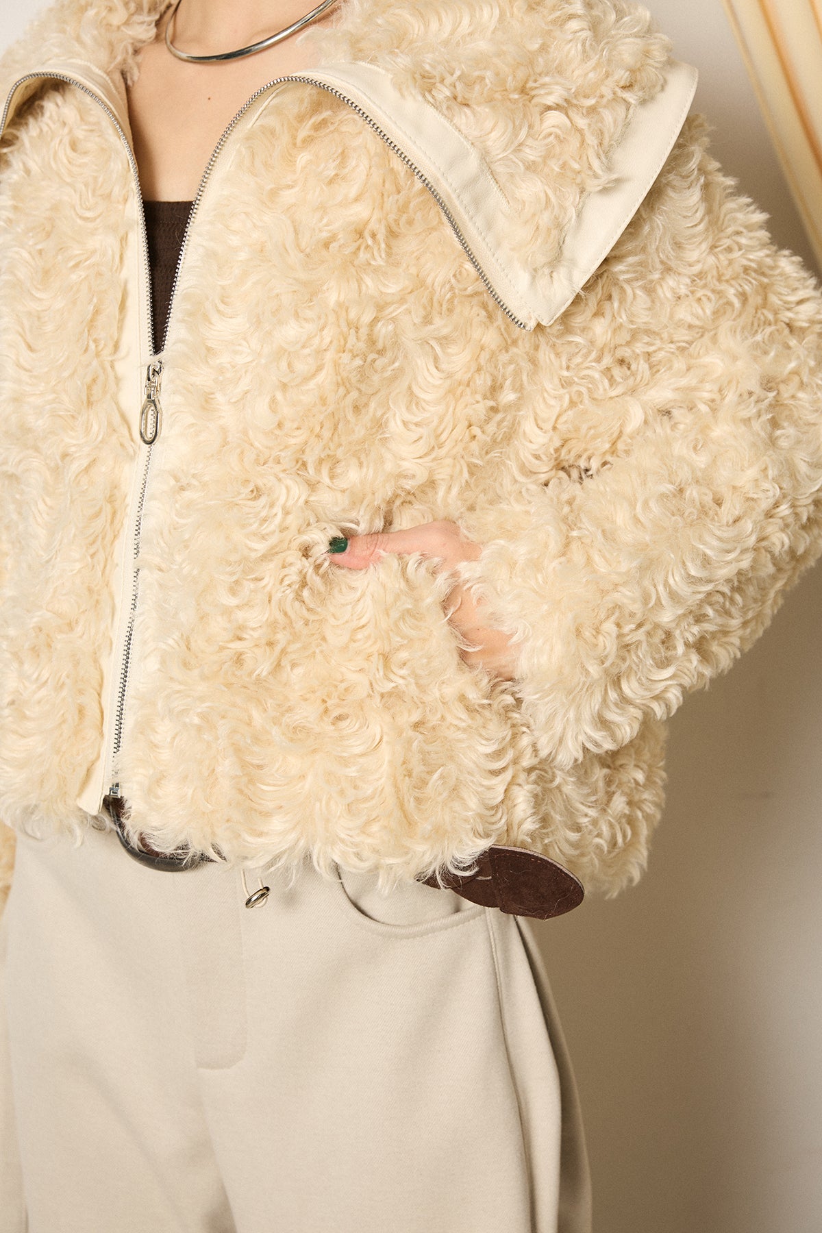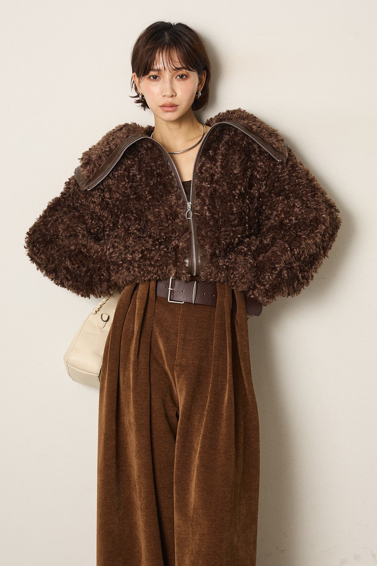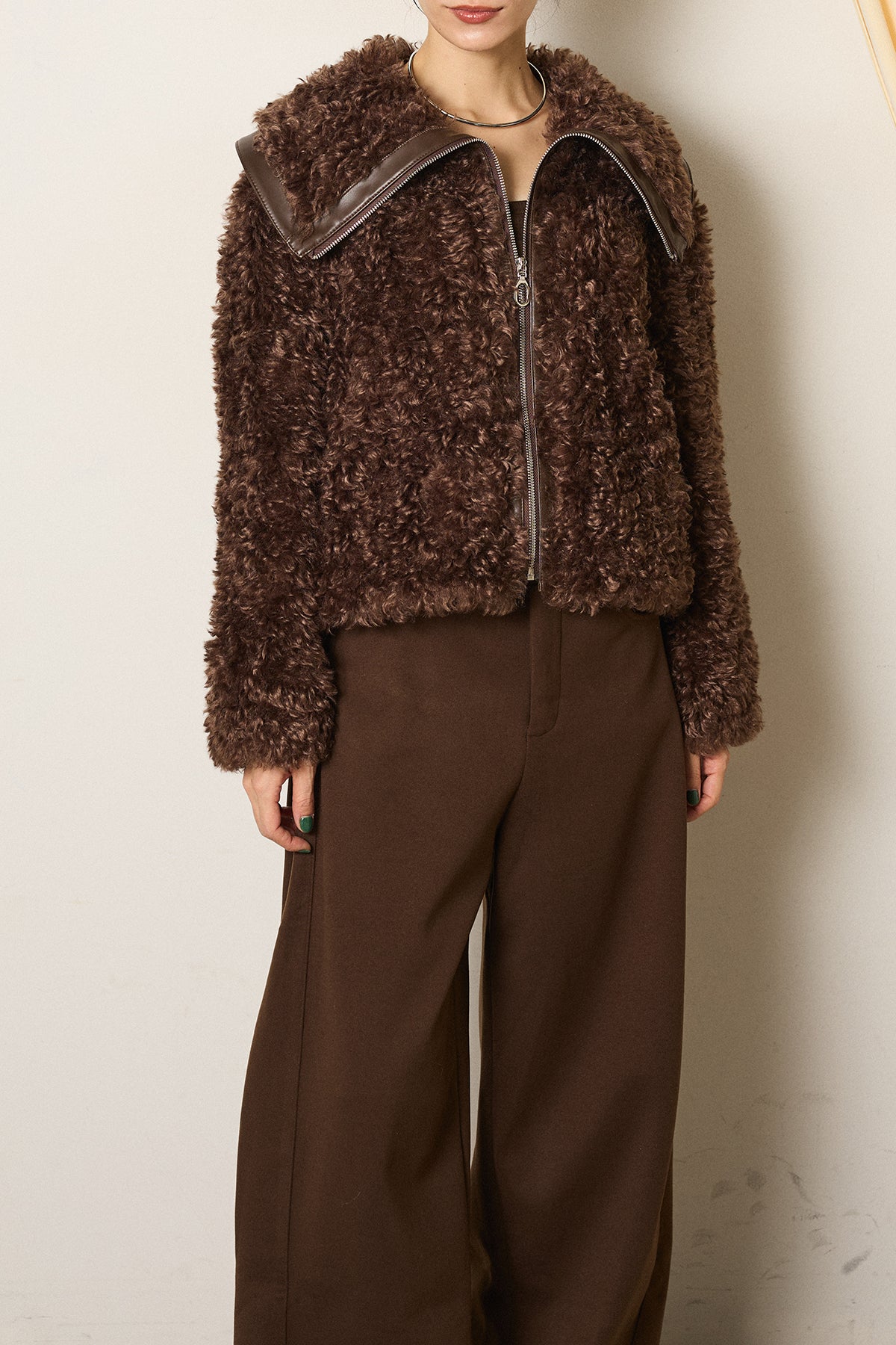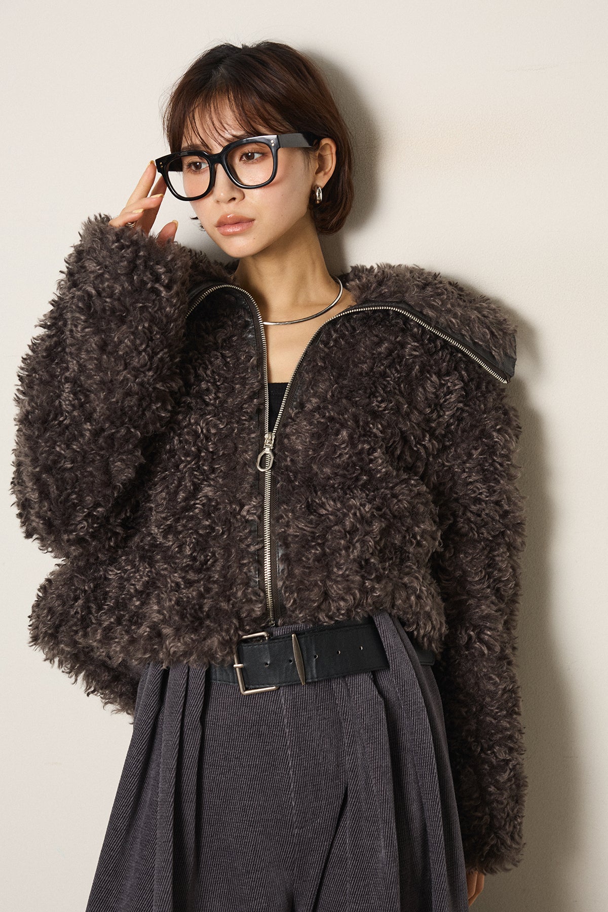 ビッグカラーが印象的なプードルボア素材のアウター。 ふんわりとした質感で、見た目にもやわらかさを感じられる一着です。 顔まわりにポイントがありつつ、全体はシンプルなシルエットで合わせやすいデザイン。 デイリー使いから外出まで、さっと羽織れて幅広いスタイリングに活躍します。