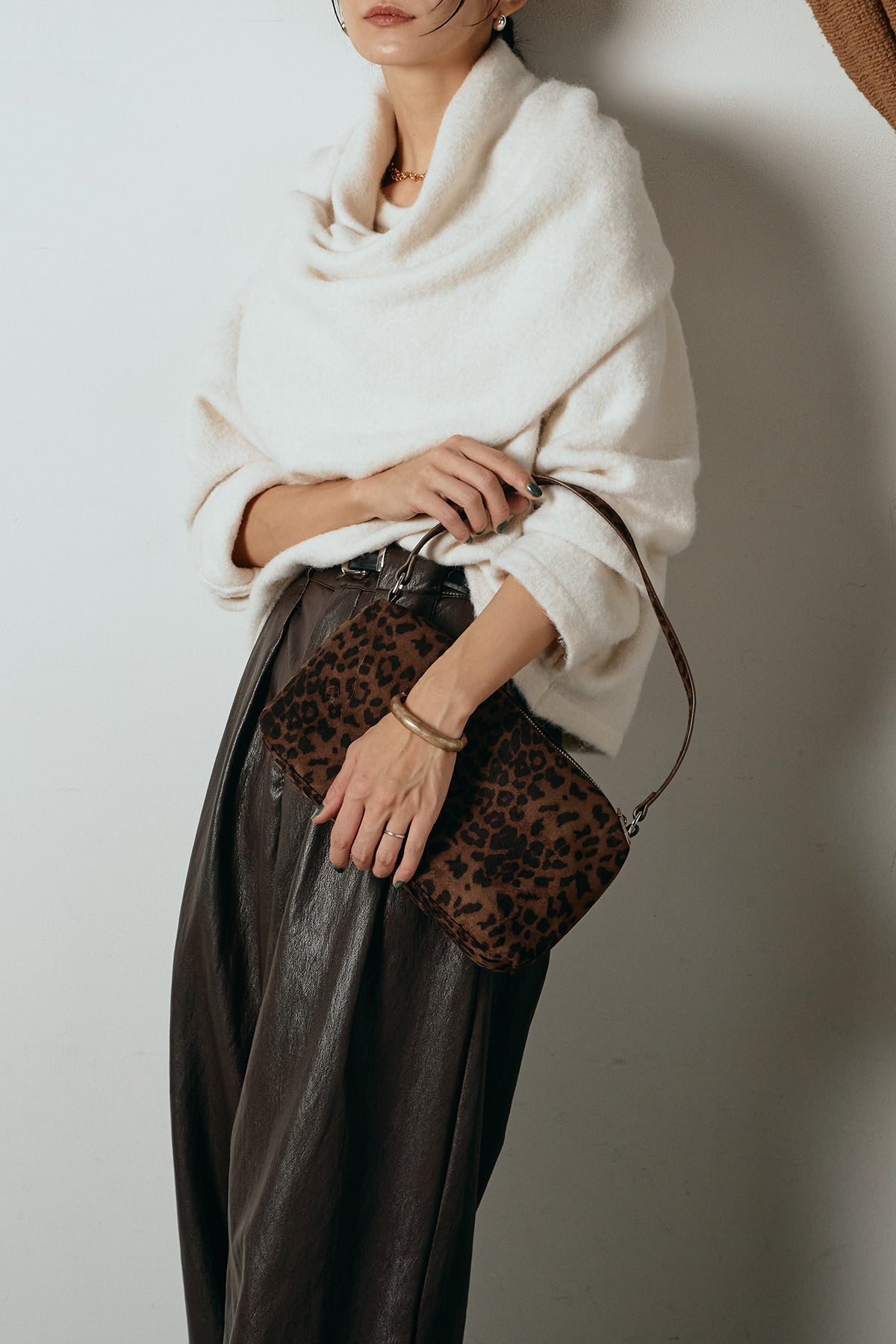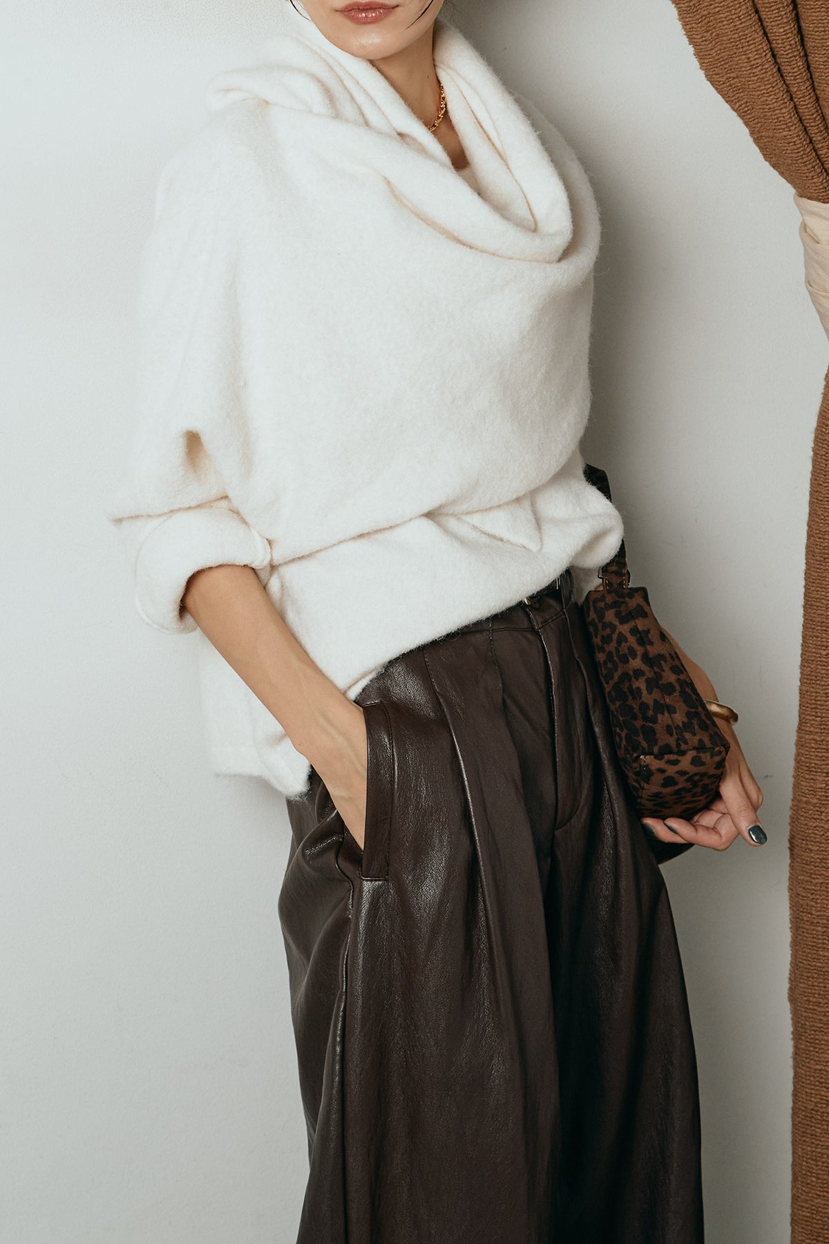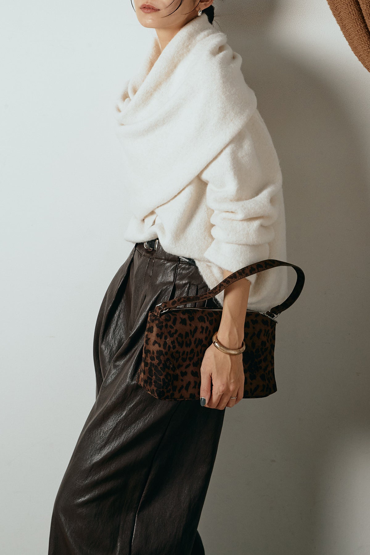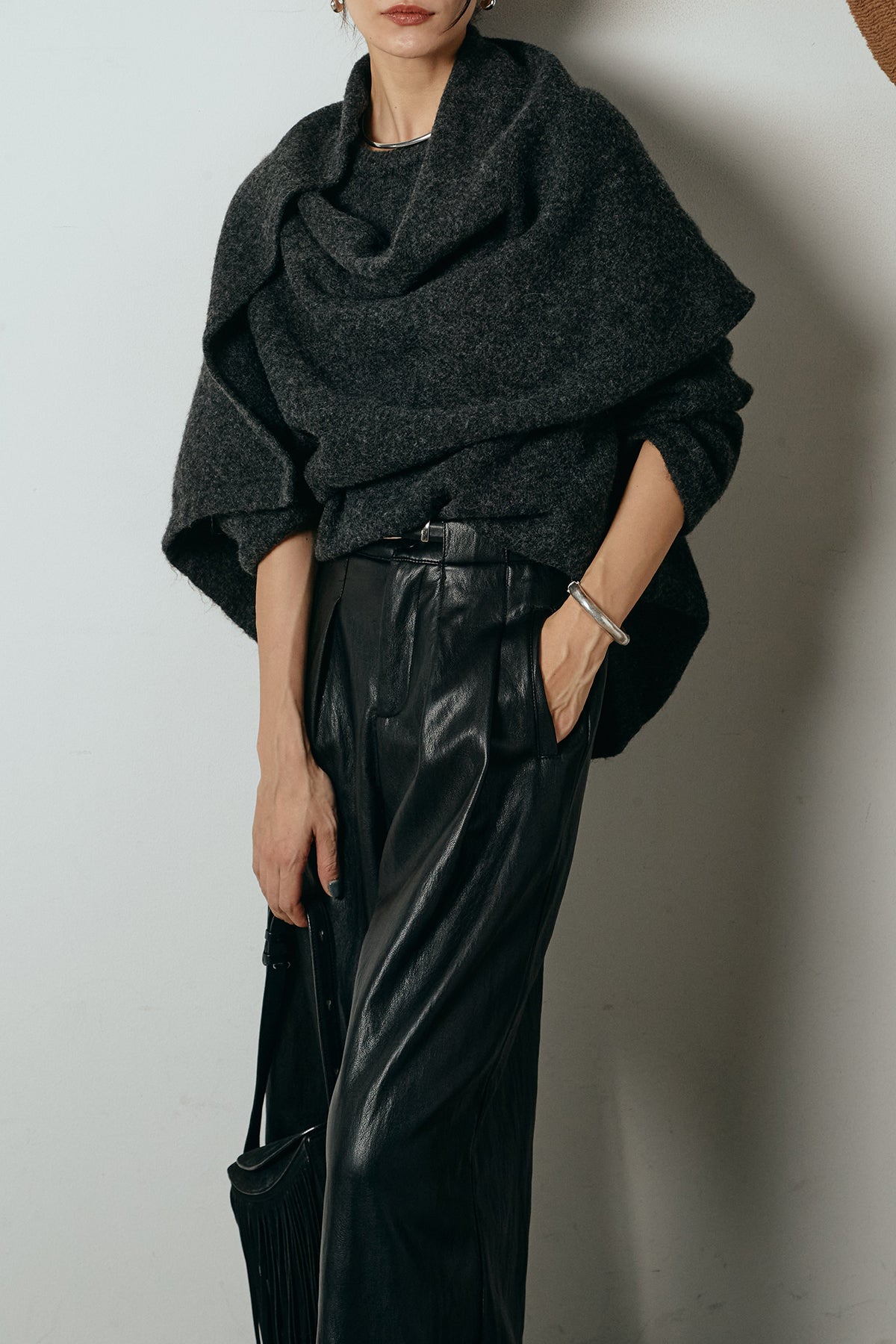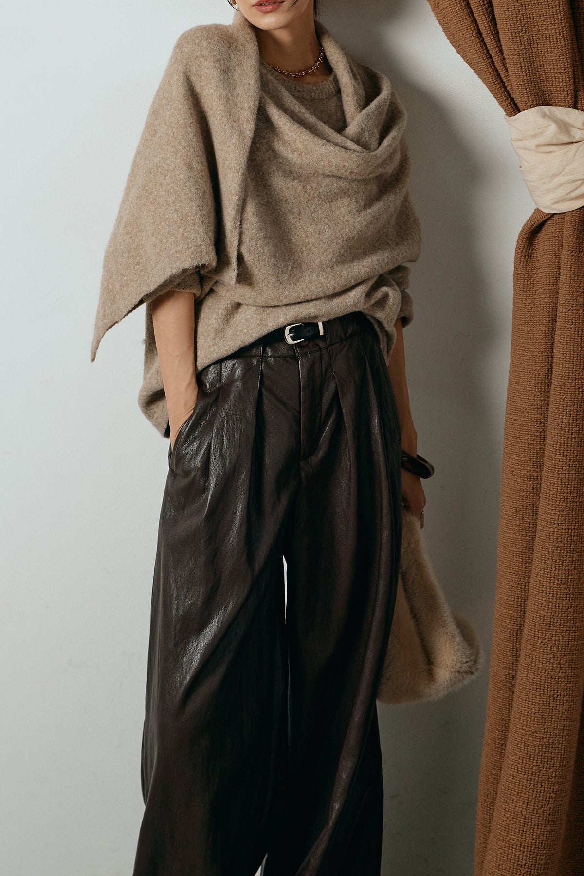 [SET]ネック巻きデザインニットトップス+ベルト付きレザーライクタックパンツ(2set)