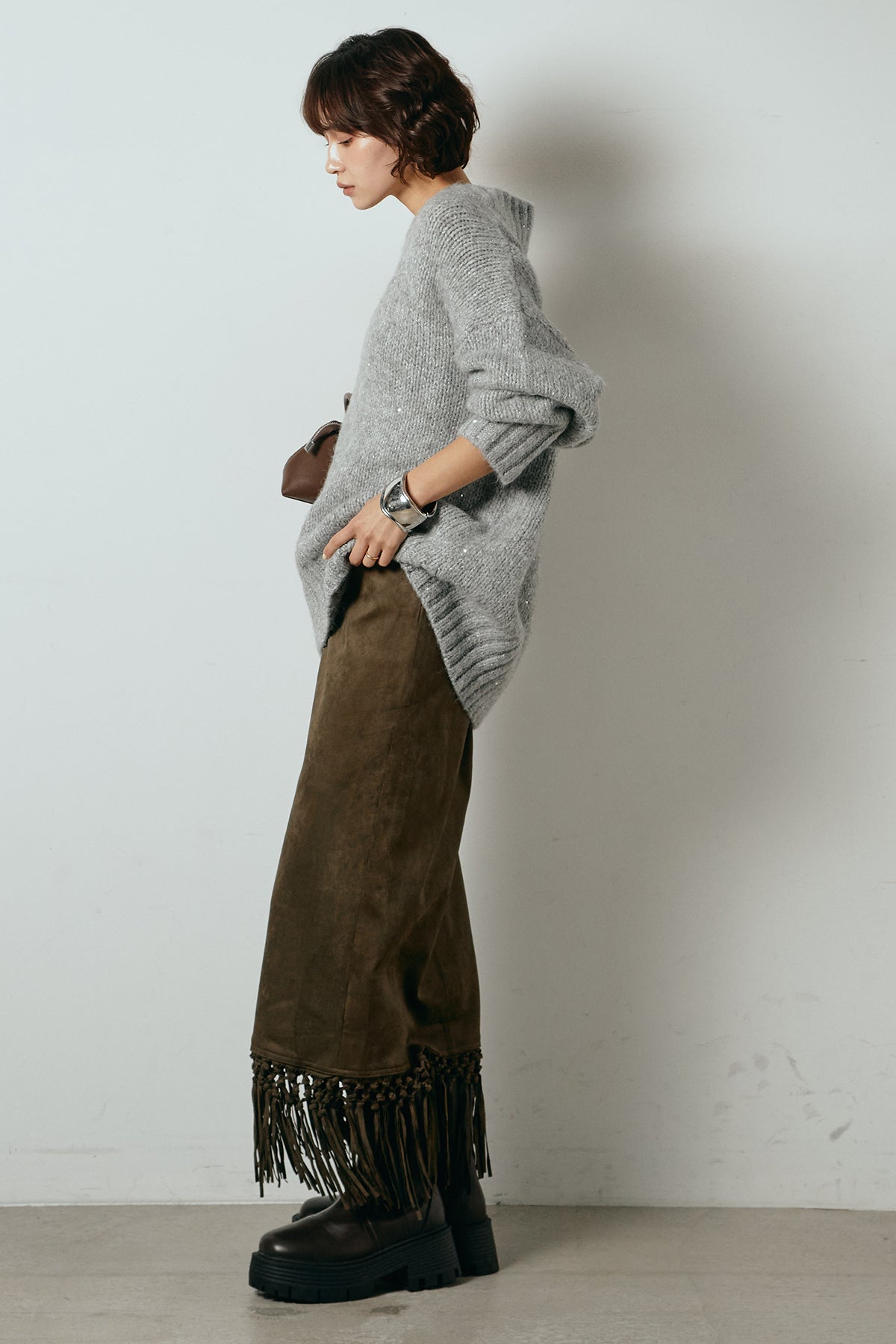 スウェードライク裾フリンジスカートの他のセットページはこちら