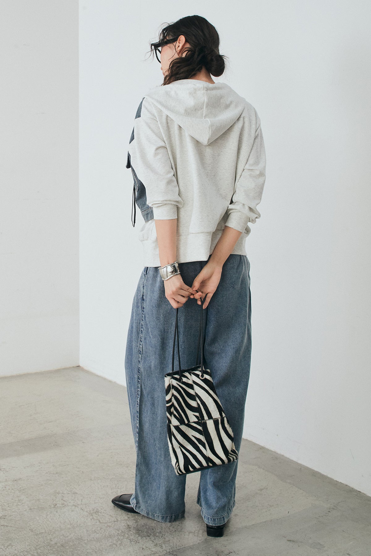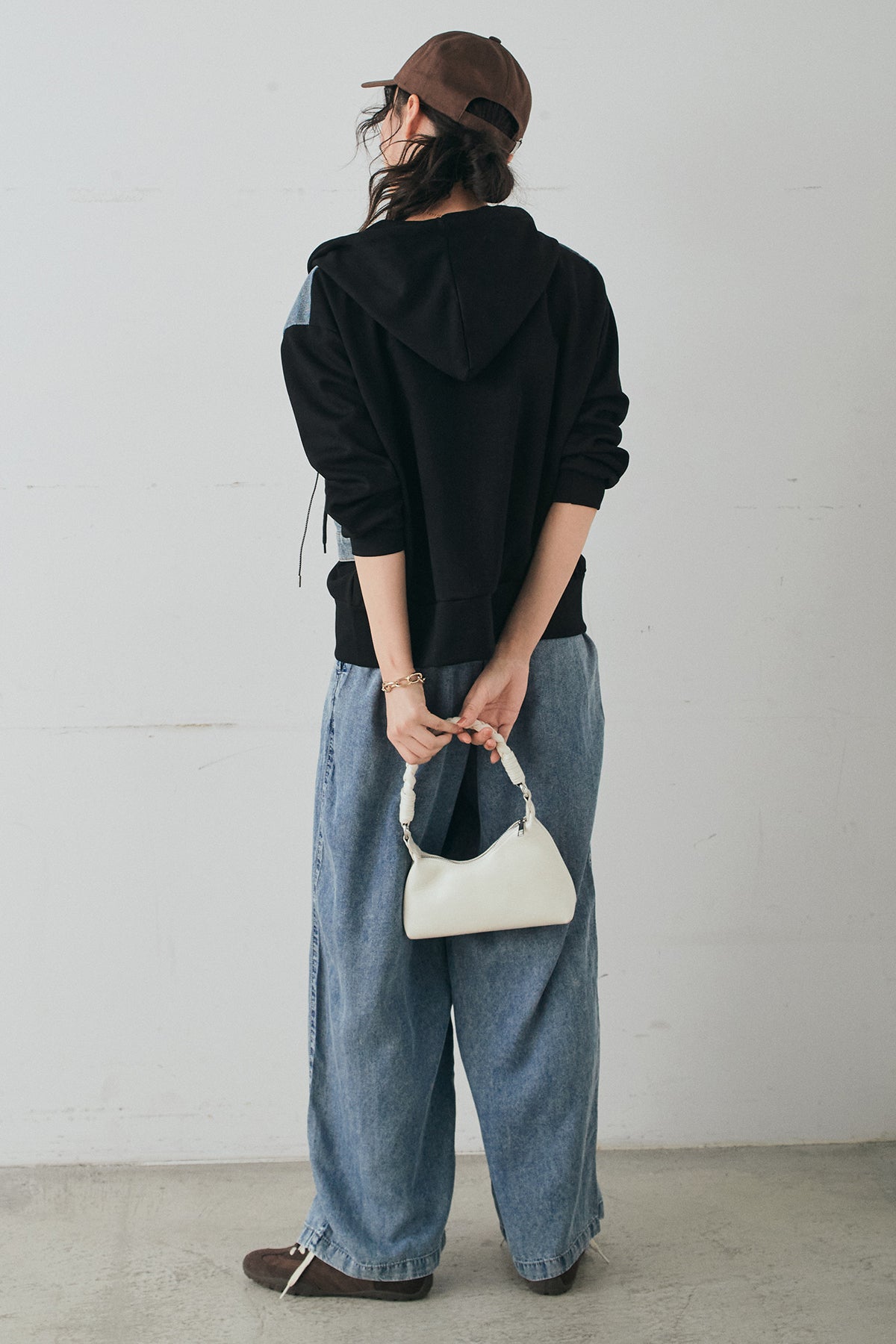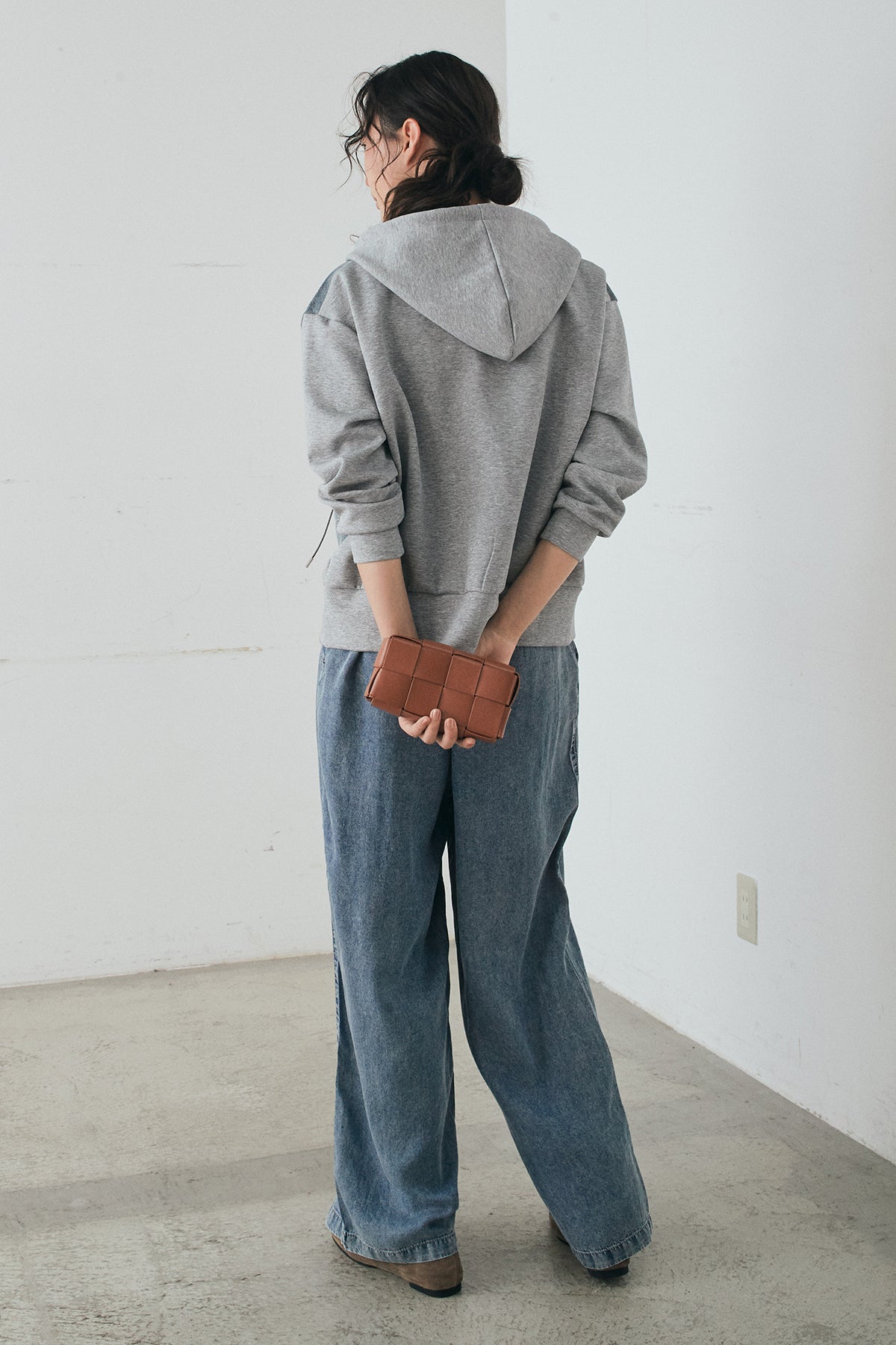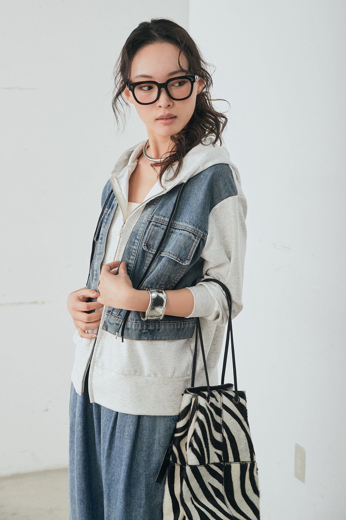 デニム素材を切り替えに取り入れた、ポンチ素材のダブルジップパーカー。異素材のコントラストがスタイリングに奥行きを与え、カジュアルながらも印象的な仕上がりに。程よくハリのあるポンチ生地とゆとりのあるシルエットで、リラックス感のある着心地を実現します。ダブルジップ仕様でバランスの調整もしやすく、パンツにもスカートにも合わせやすい一着です。