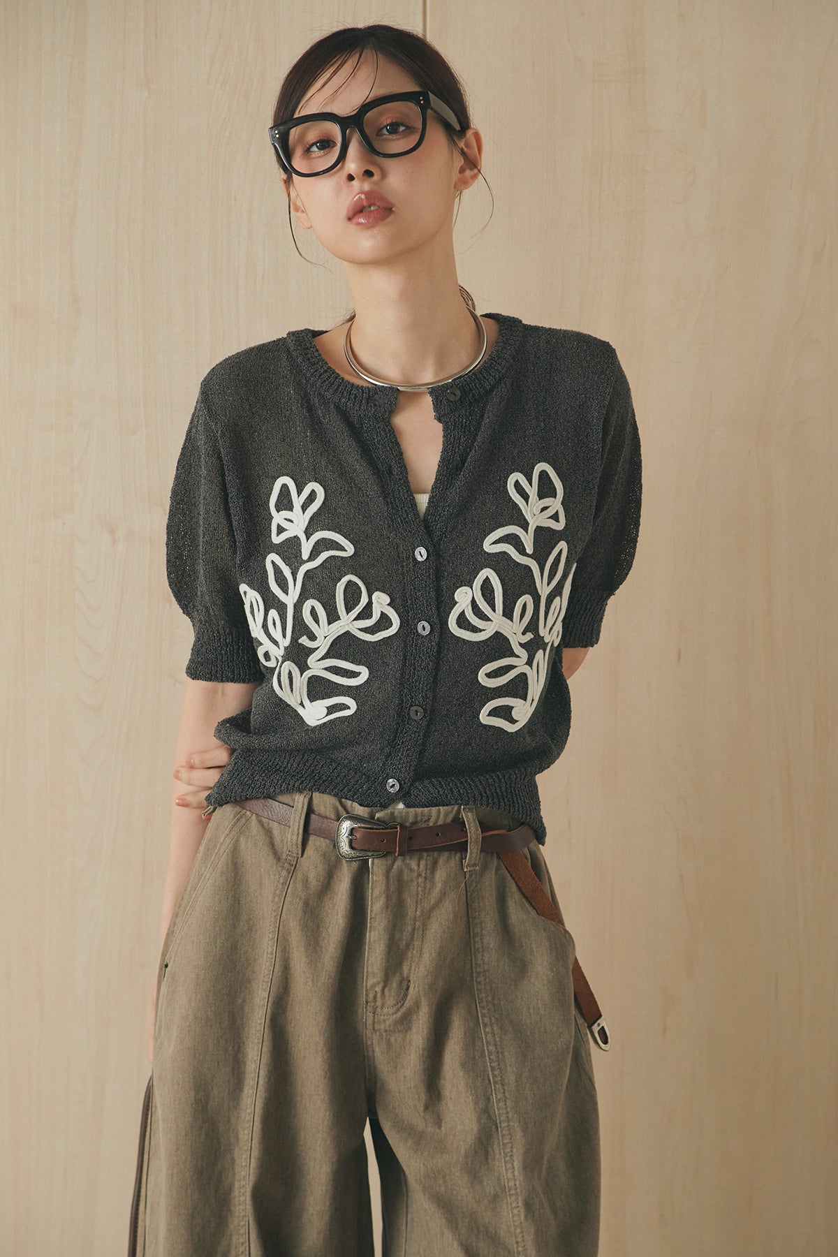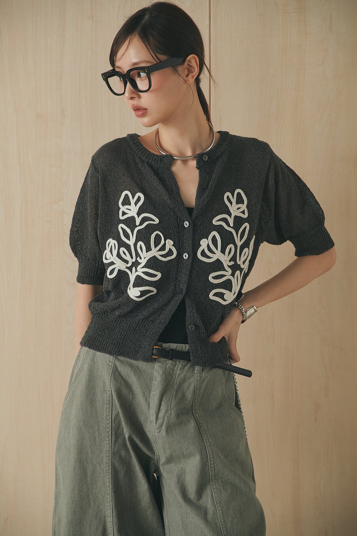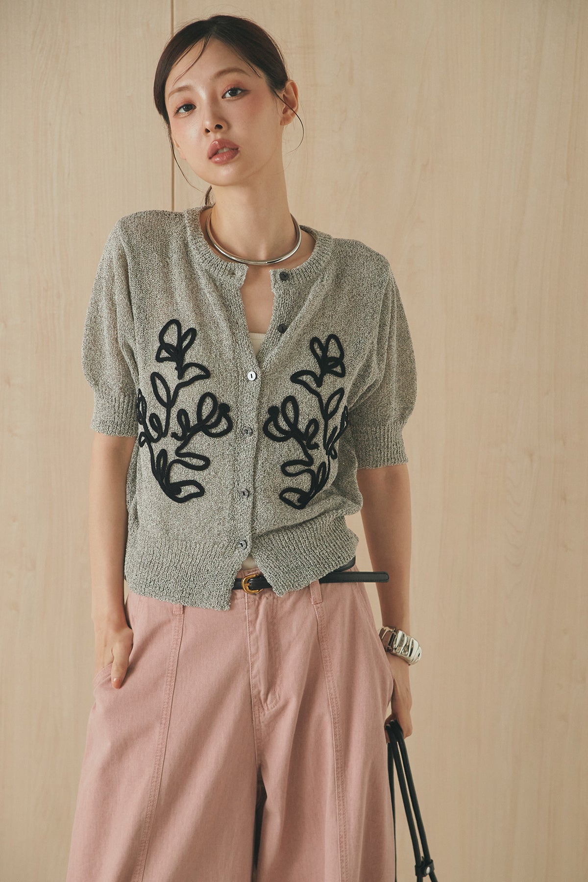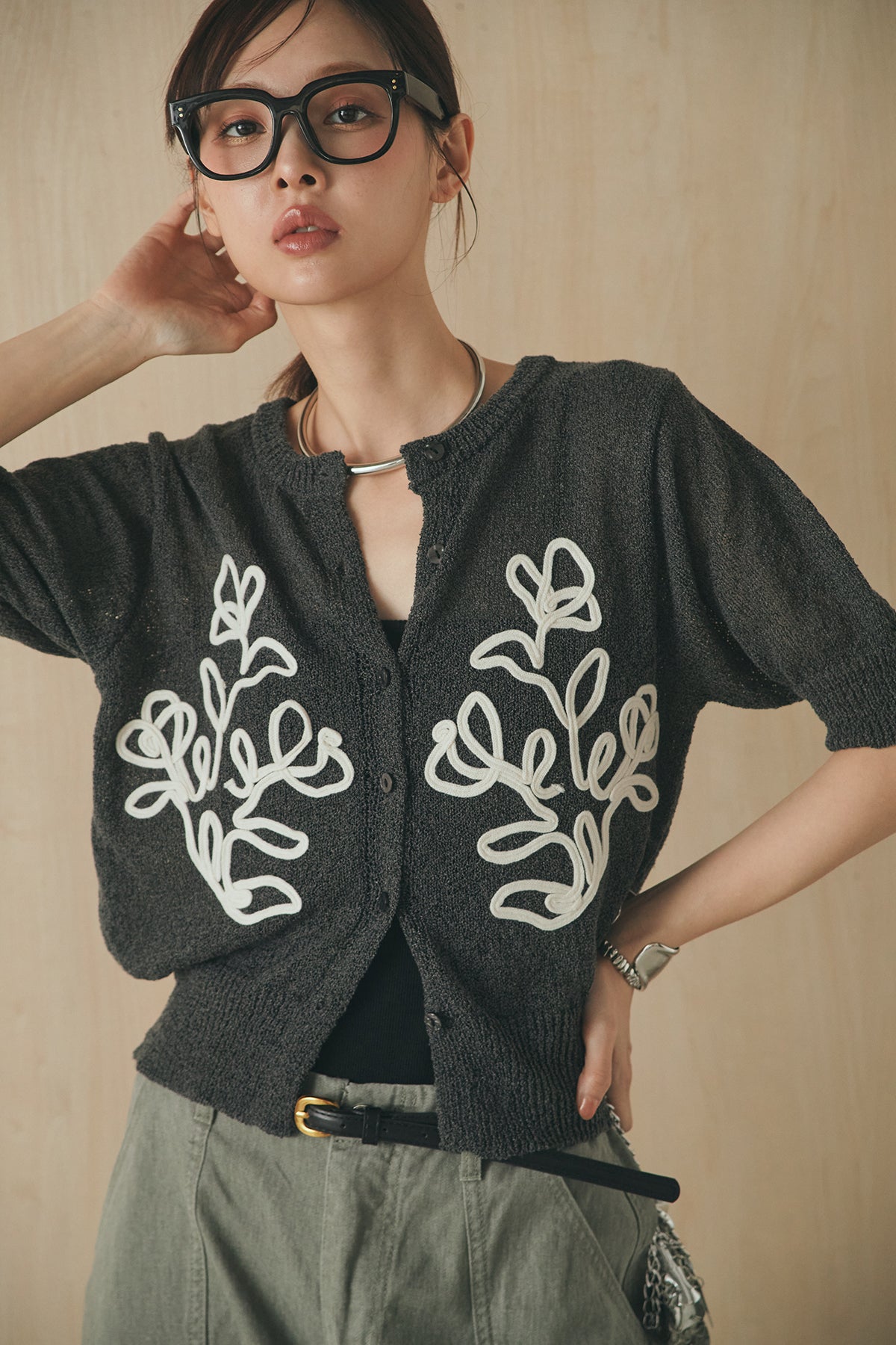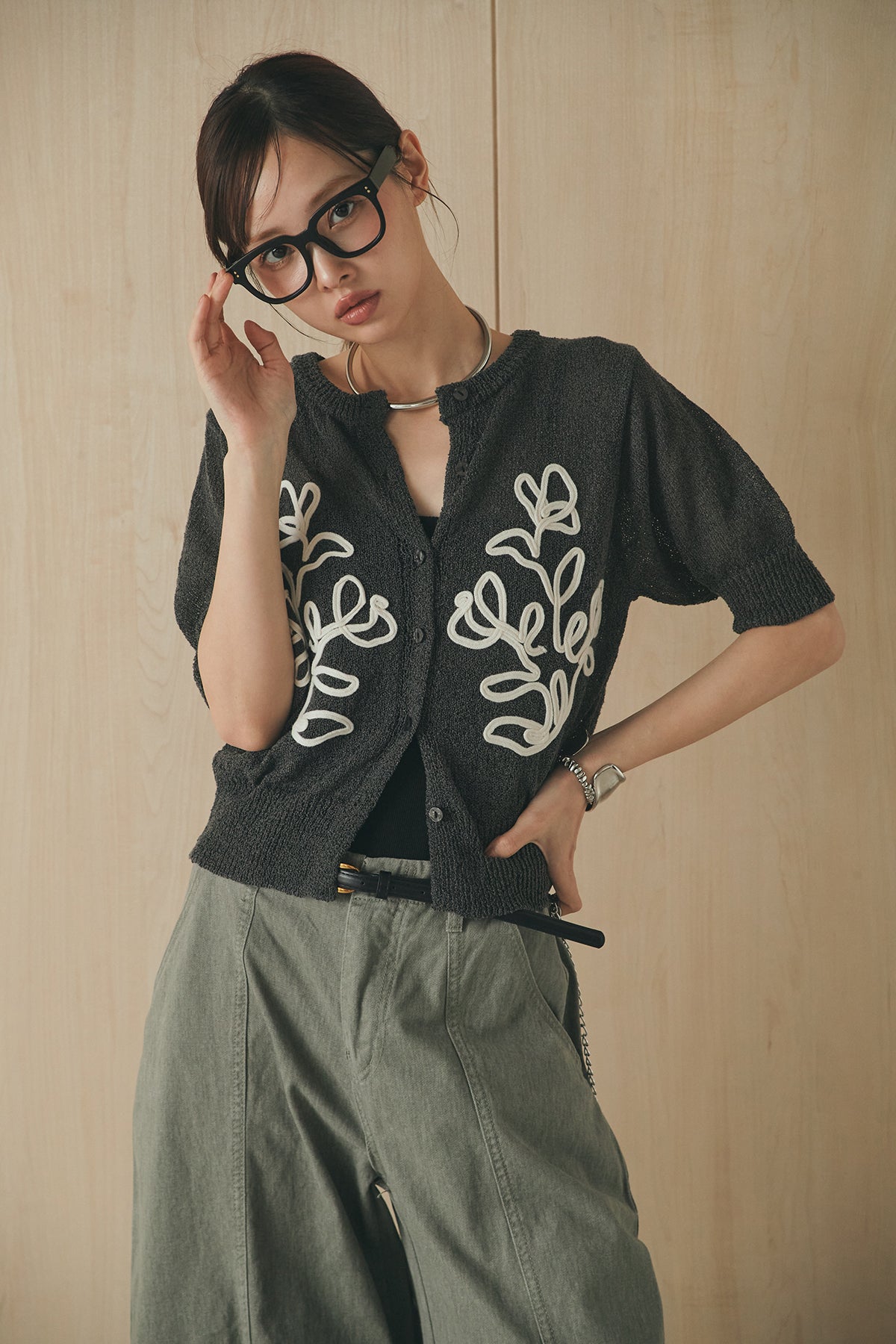 フロントにあしらったテープデザインが印象的な半袖カーディガン。 表情のある素材感に立体的なディテールを重ね、シンプルな中にも存在感のある一枚に仕上げました。コンパクトなシルエットでバランスが取りやすく、軽やかに着用できるデザイン。 前を閉じてトップスとしても、羽織りとしても活躍し、デイリーに取り入れやすいアイテムです。