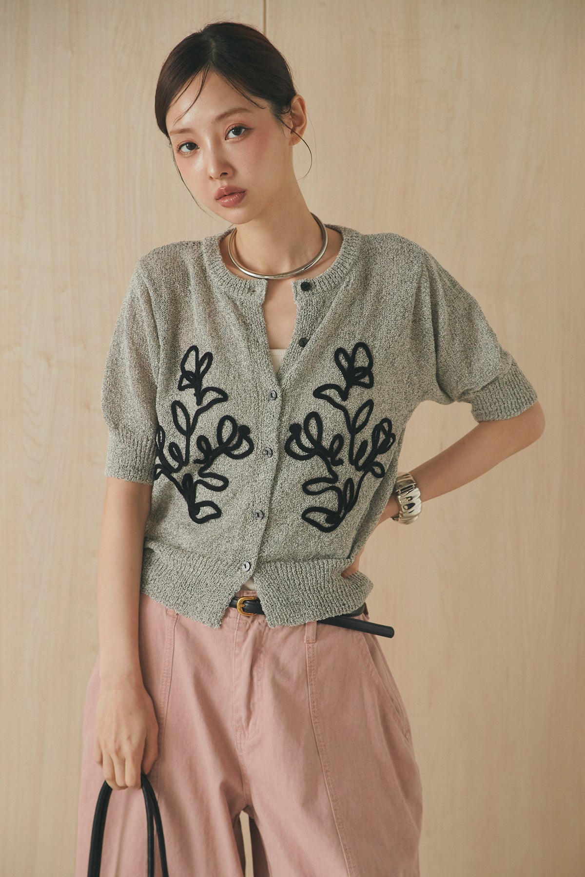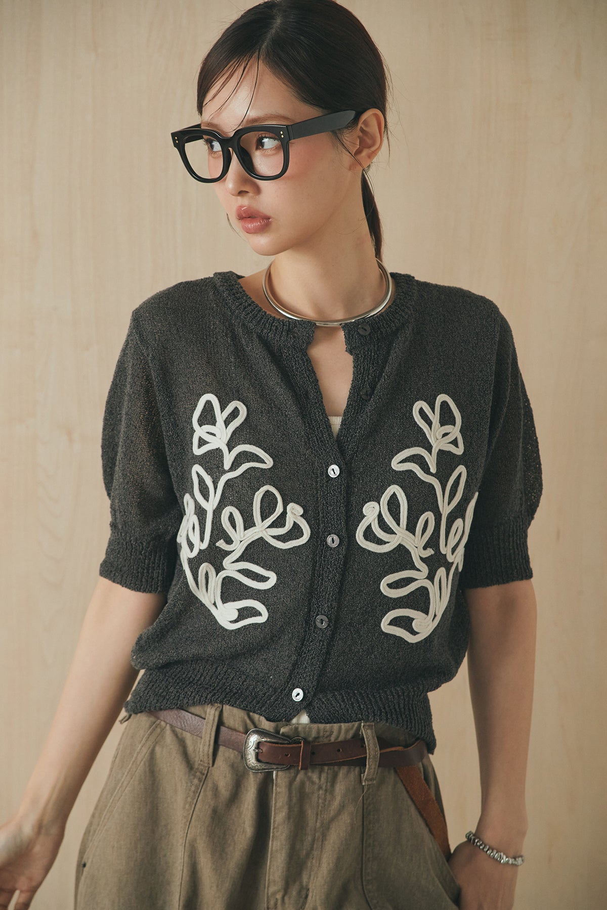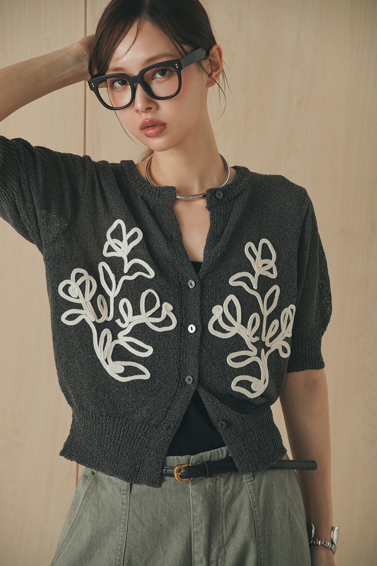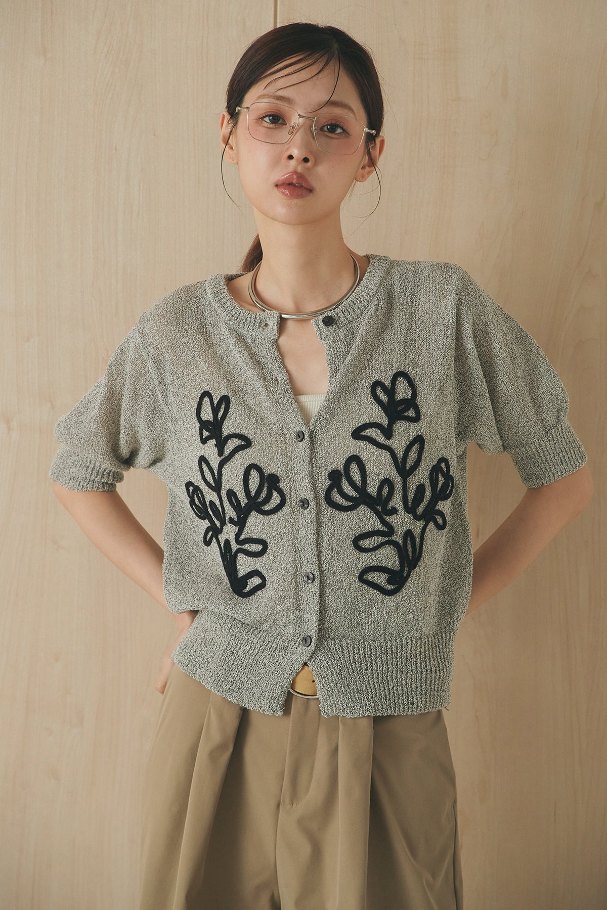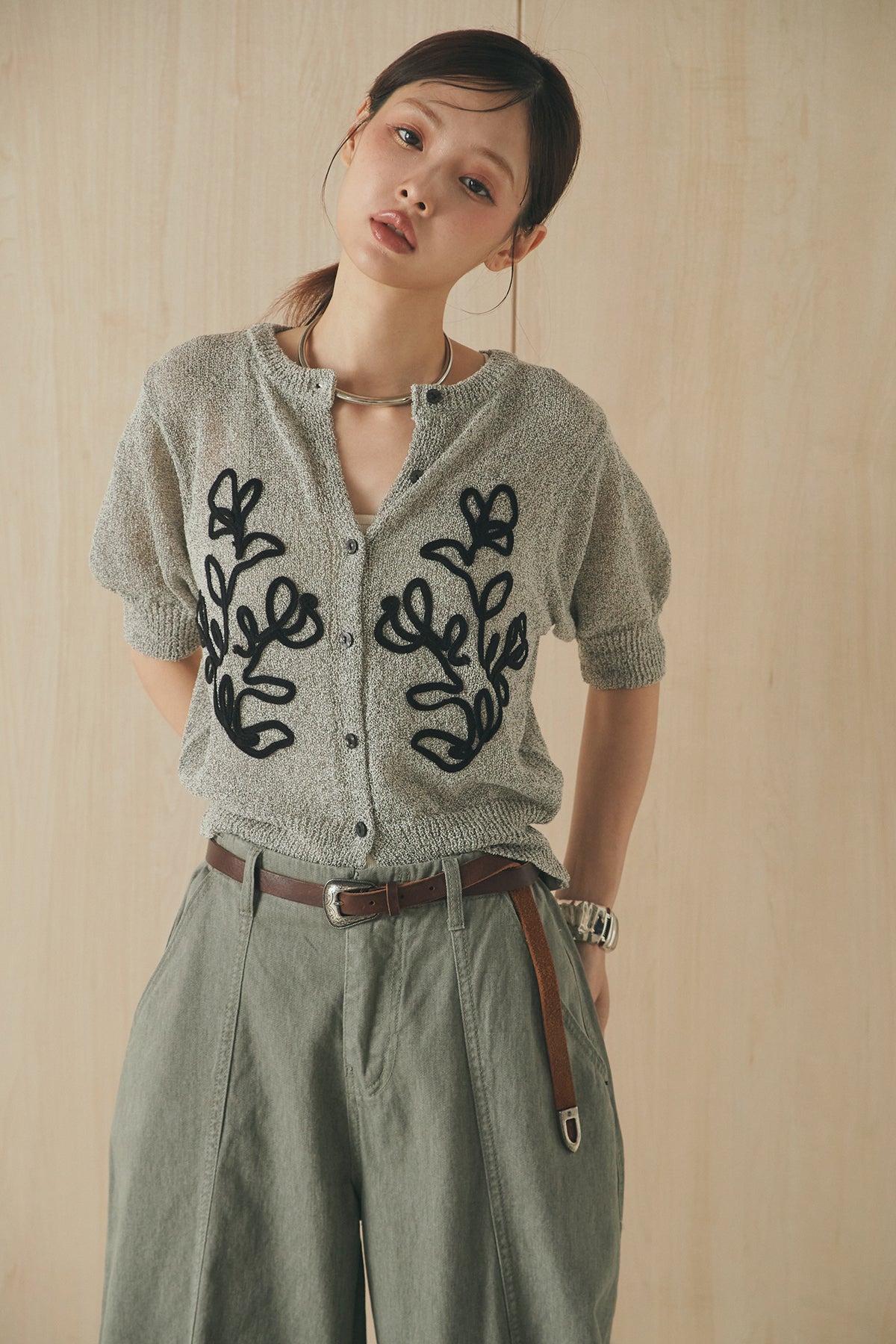 フロントにあしらったテープデザインが印象的な半袖カーディガン。 表情のある素材感に立体的なディテールを重ね、シンプルな中にも存在感のある一枚に仕上げました。コンパクトなシルエットでバランスが取りやすく、軽やかに着用できるデザイン。 前を閉じてトップスとしても、羽織りとしても活躍し、デイリーに取り入れやすいアイテムです。