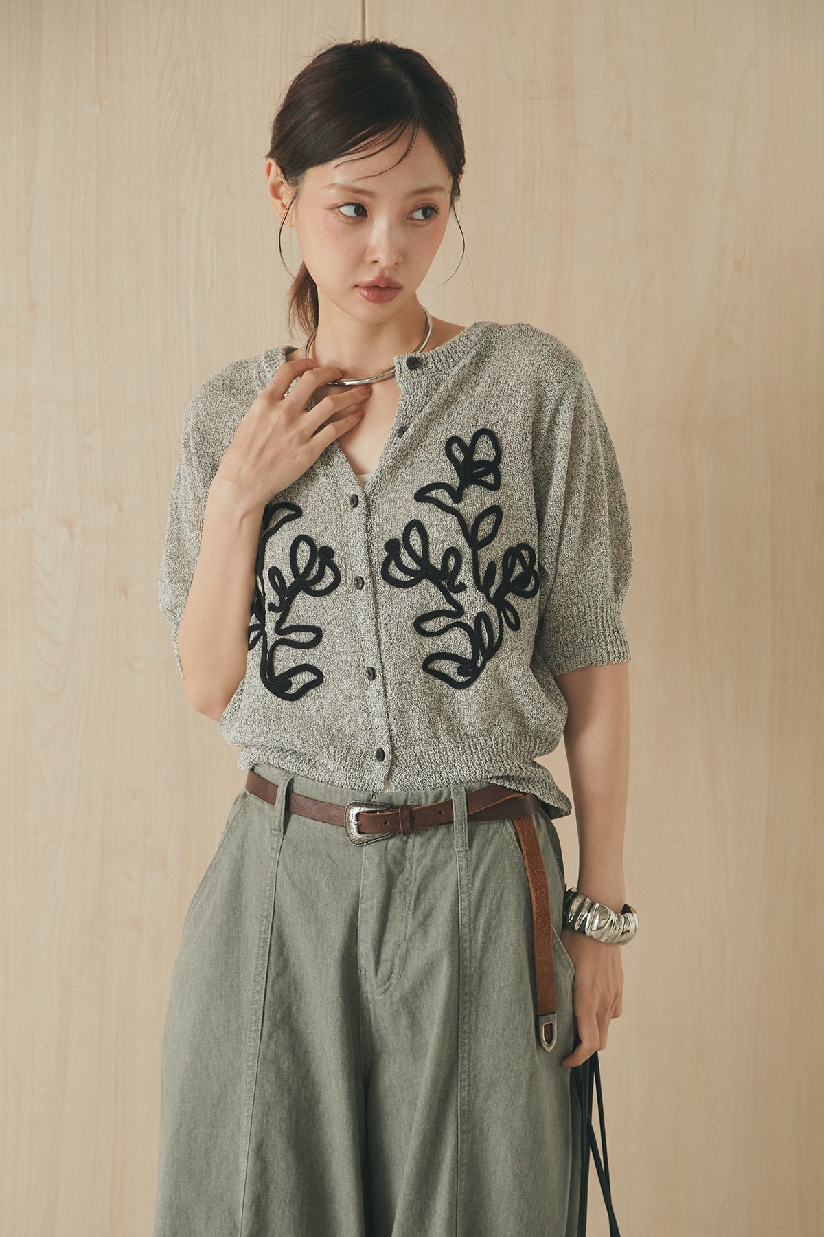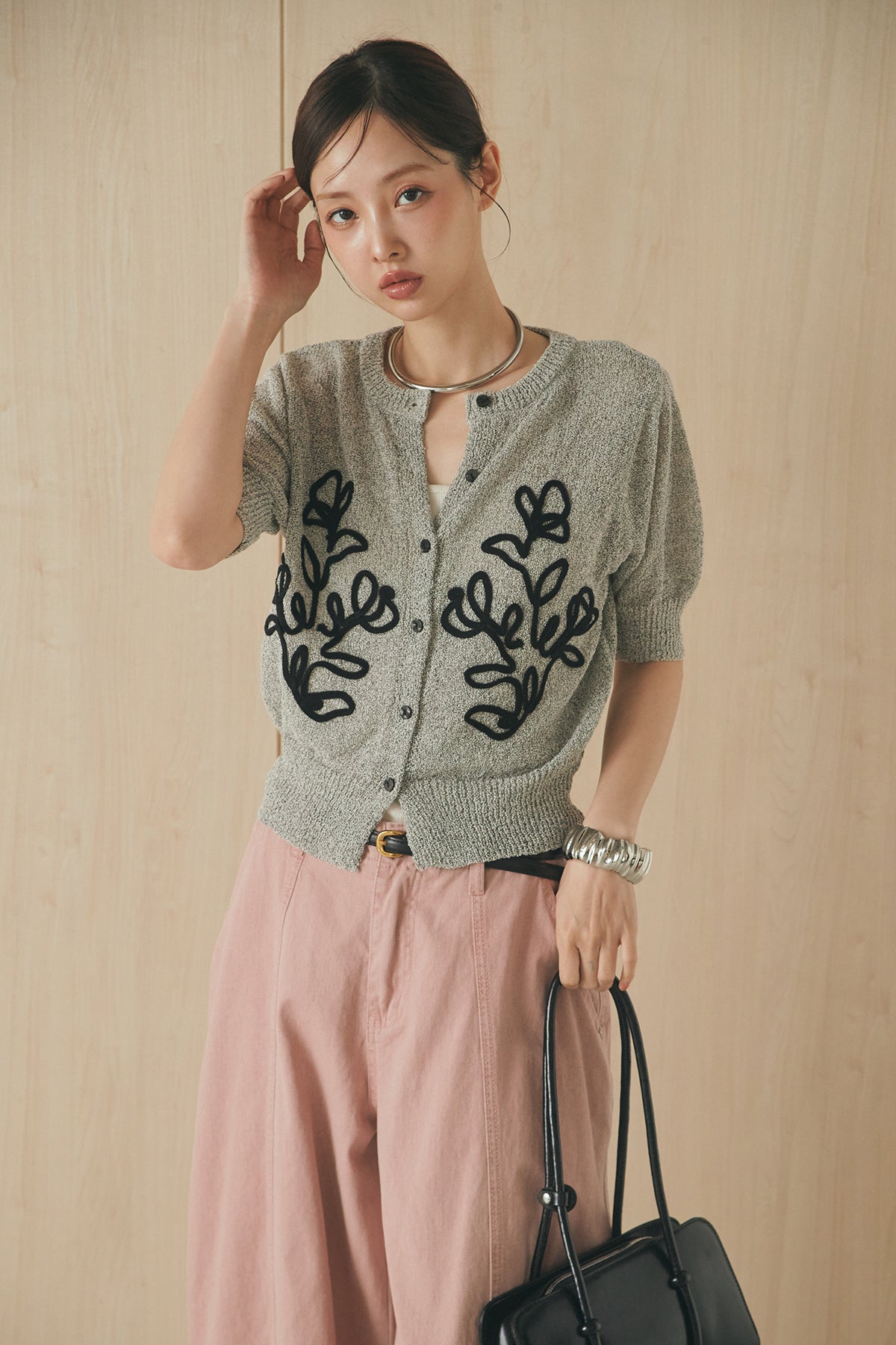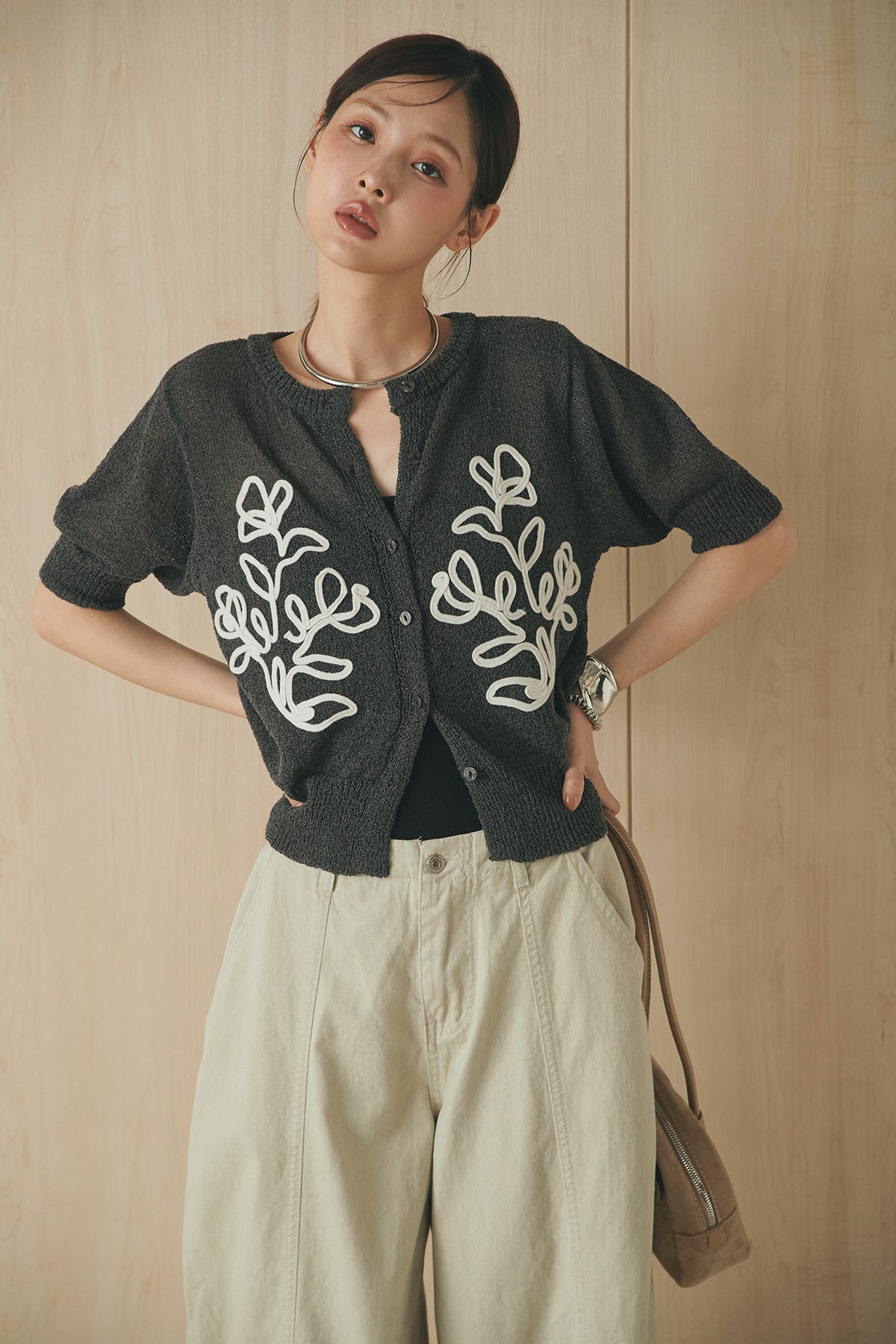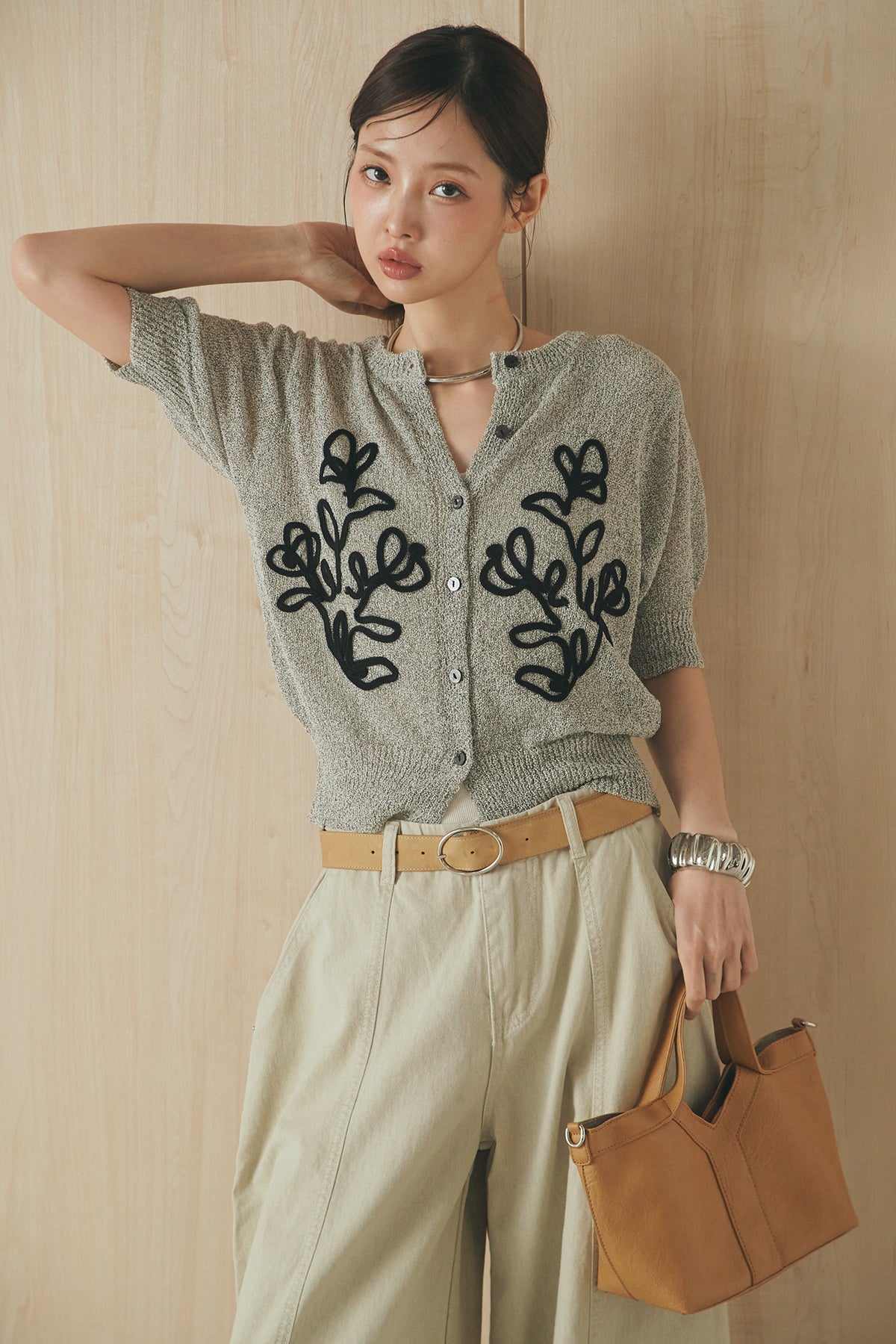 フロントにあしらったテープデザインが印象的な半袖カーディガン。 表情のある素材感に立体的なディテールを重ね、シンプルな中にも存在感のある一枚に仕上げました。コンパクトなシルエットでバランスが取りやすく、軽やかに着用できるデザイン。 前を閉じてトップスとしても、羽織りとしても活躍し、デイリーに取り入れやすいアイテムです。