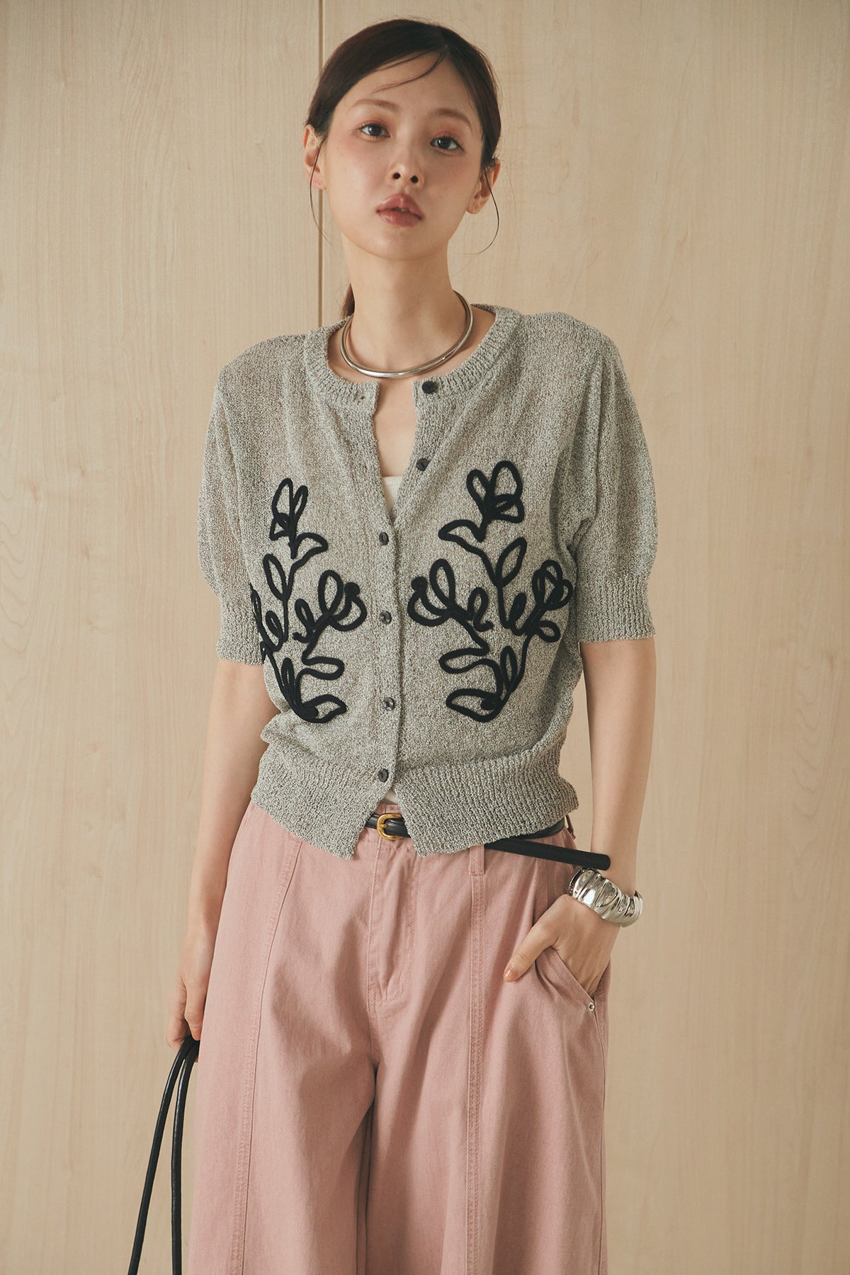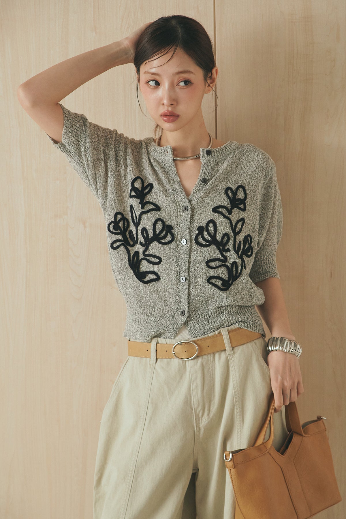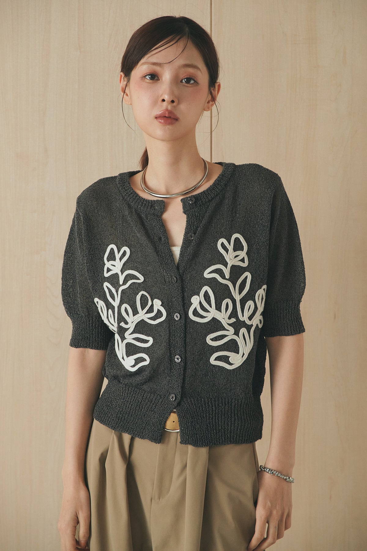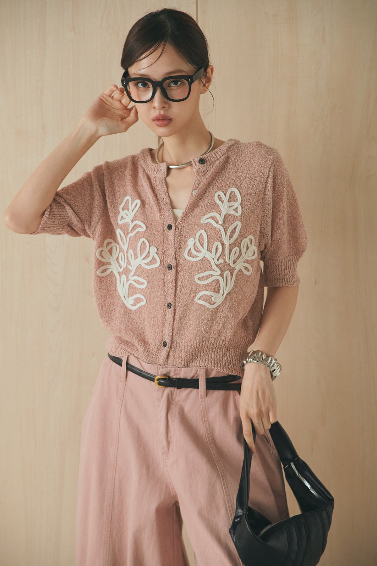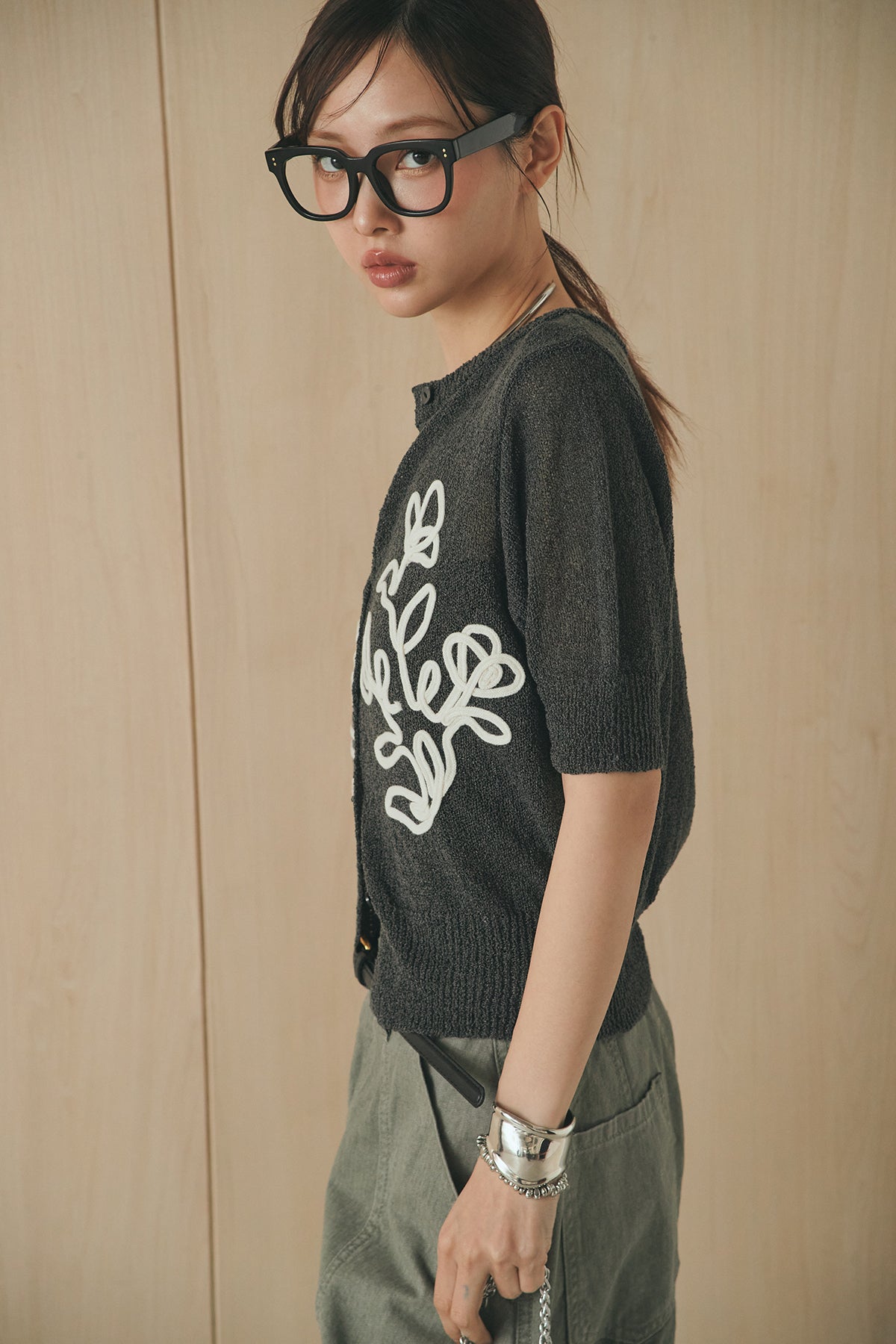 フロントにあしらったテープデザインが印象的な半袖カーディガン。 表情のある素材感に立体的なディテールを重ね、シンプルな中にも存在感のある一枚に仕上げました。コンパクトなシルエットでバランスが取りやすく、軽やかに着用できるデザイン。 前を閉じてトップスとしても、羽織りとしても活躍し、デイリーに取り入れやすいアイテムです。