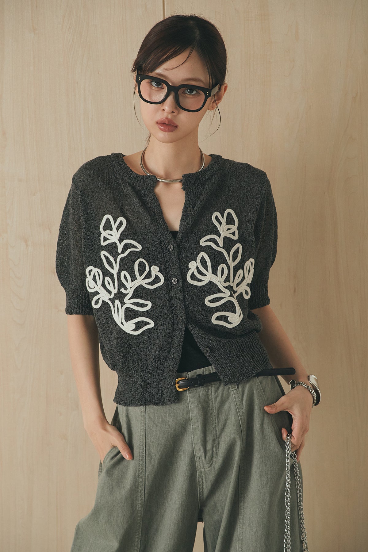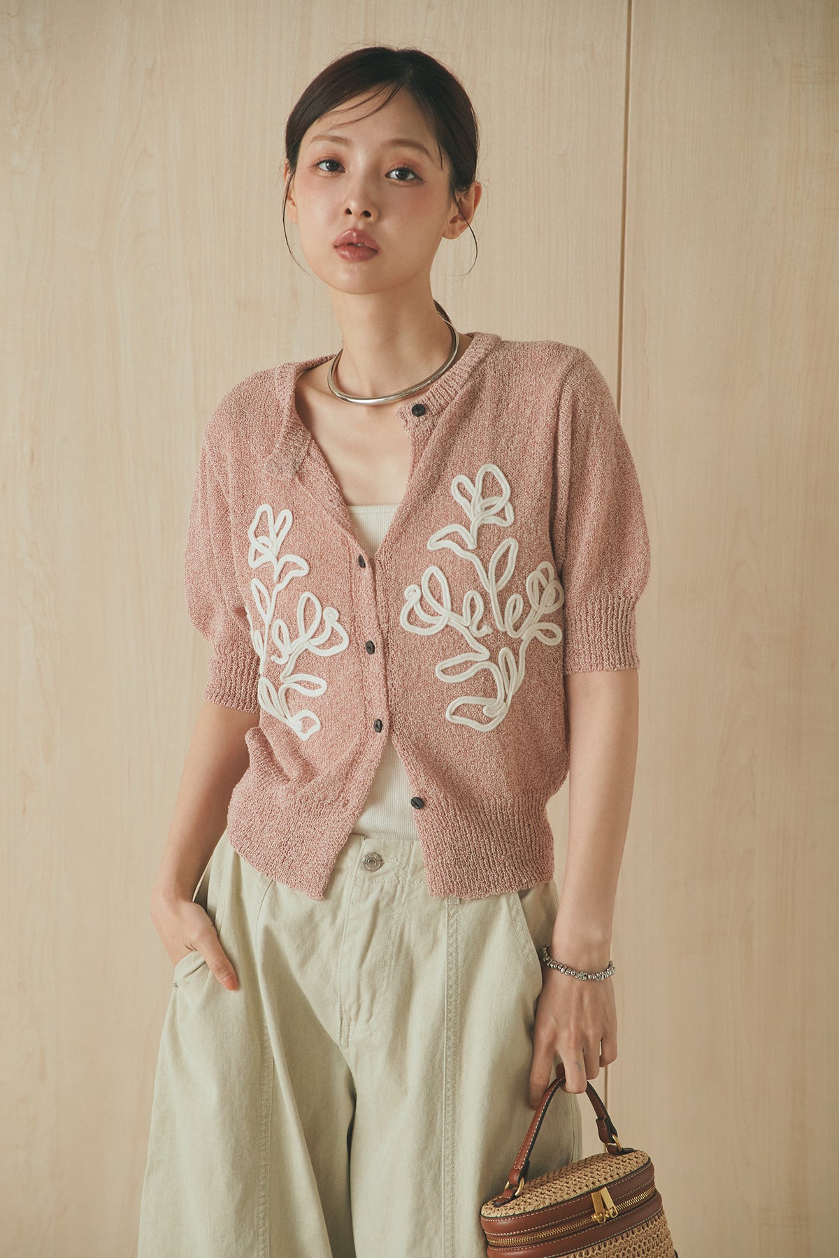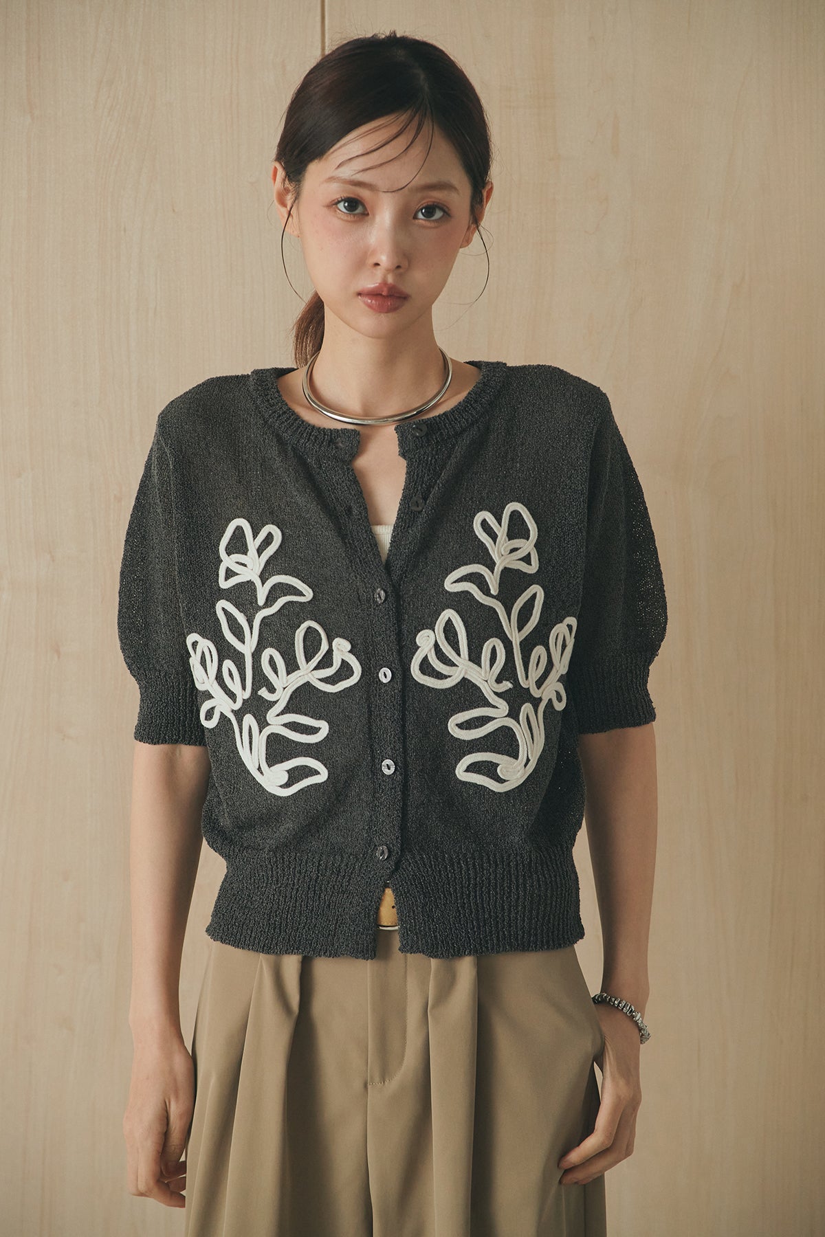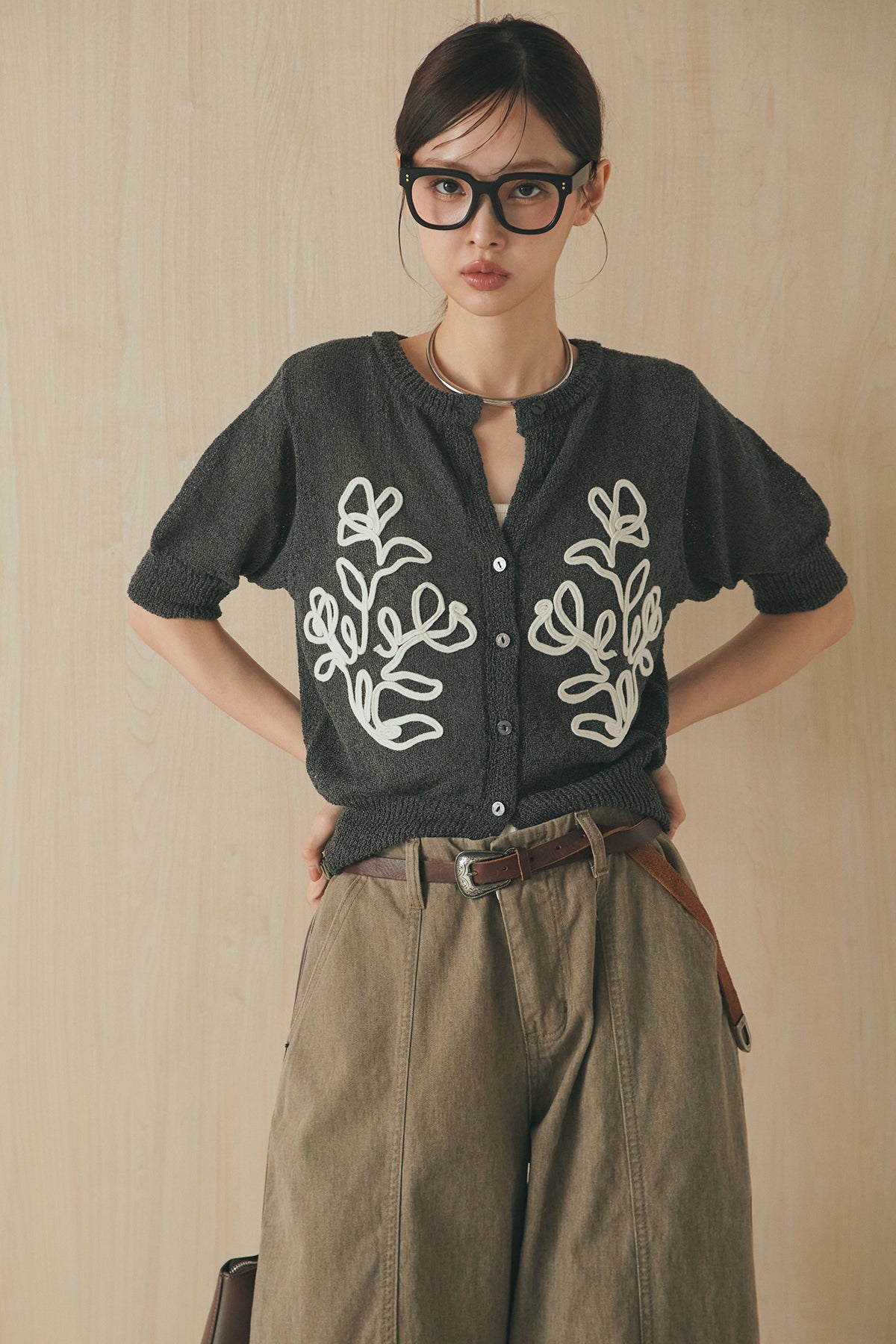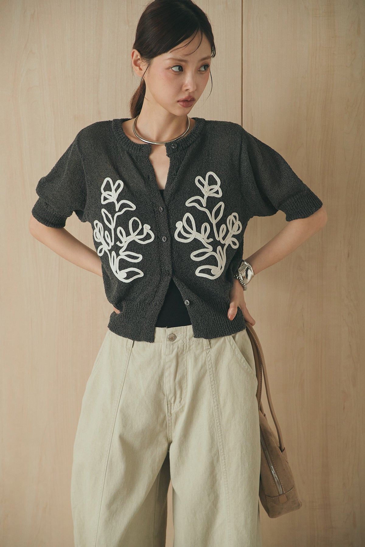 フロントにあしらったテープデザインが印象的な半袖カーディガン。 表情のある素材感に立体的なディテールを重ね、シンプルな中にも存在感のある一枚に仕上げました。コンパクトなシルエットでバランスが取りやすく、軽やかに着用できるデザイン。 前を閉じてトップスとしても、羽織りとしても活躍し、デイリーに取り入れやすいアイテムです。