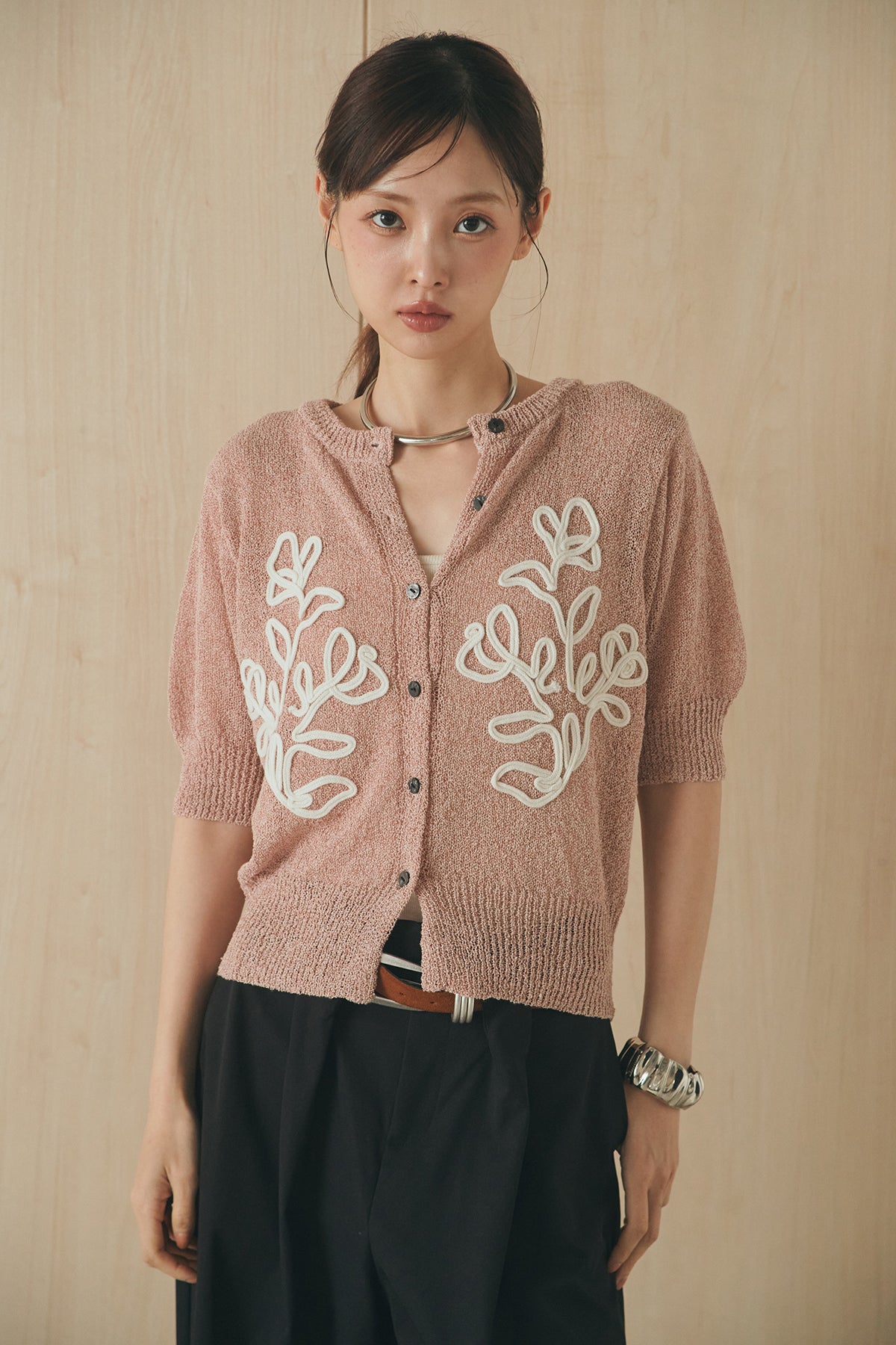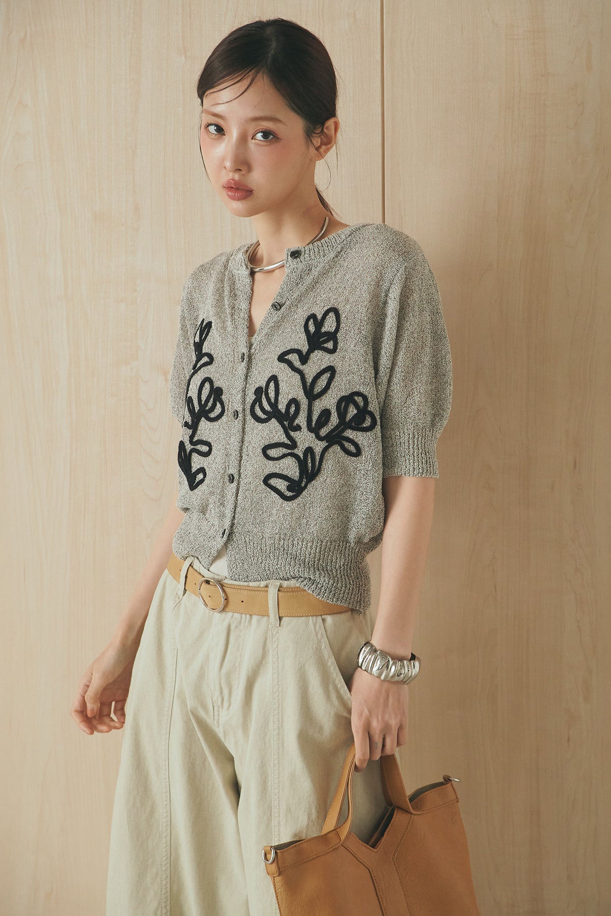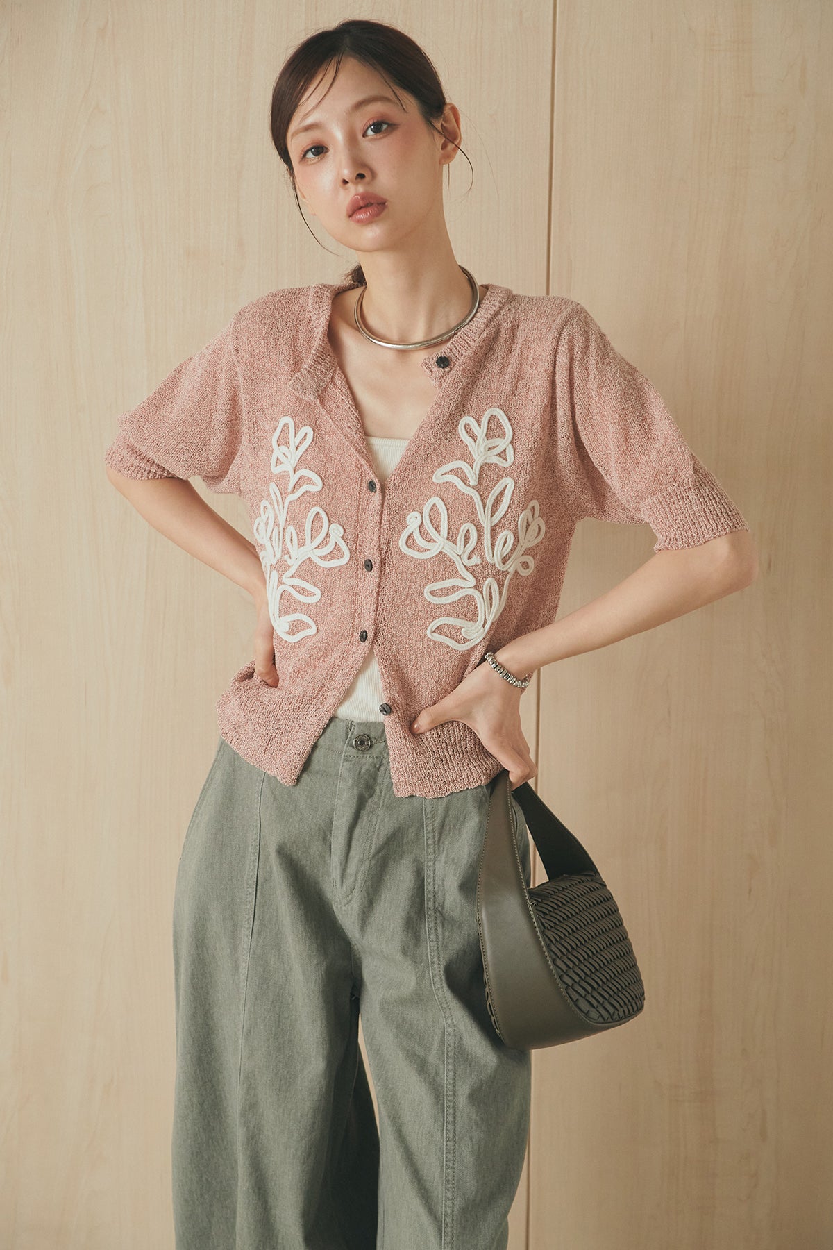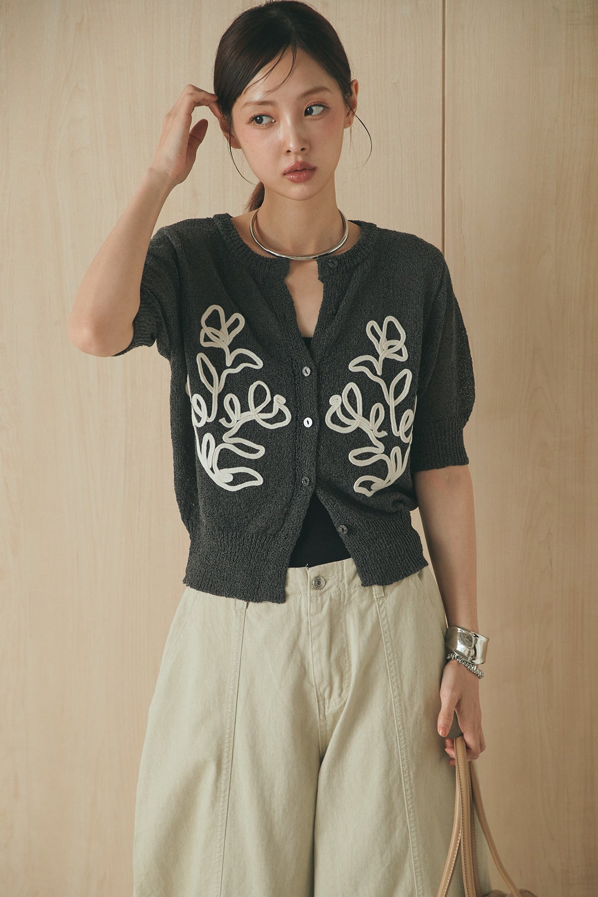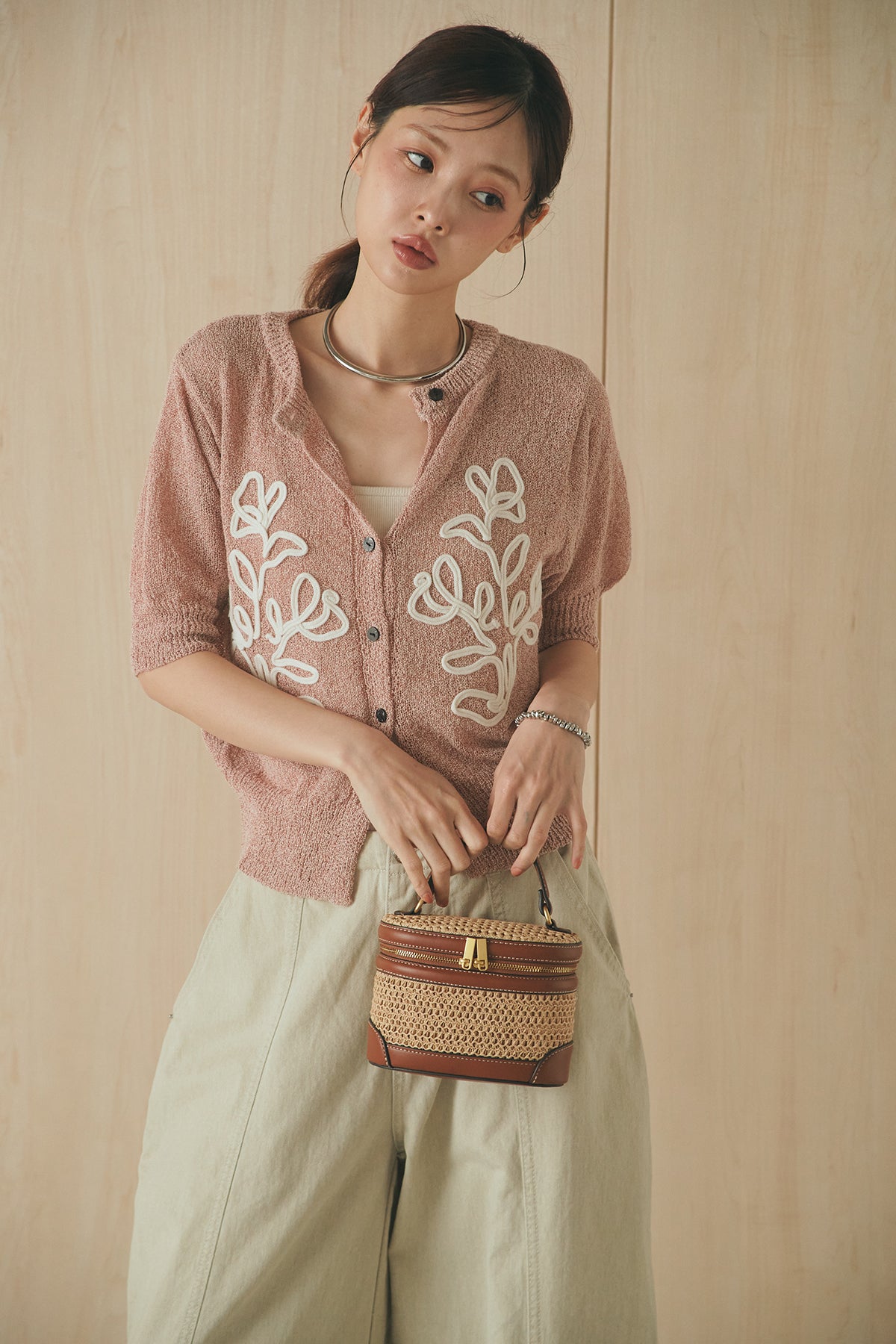 フロントにあしらったテープデザインが印象的な半袖カーディガン。 表情のある素材感に立体的なディテールを重ね、シンプルな中にも存在感のある一枚に仕上げました。コンパクトなシルエットでバランスが取りやすく、軽やかに着用できるデザイン。 前を閉じてトップスとしても、羽織りとしても活躍し、デイリーに取り入れやすいアイテムです。