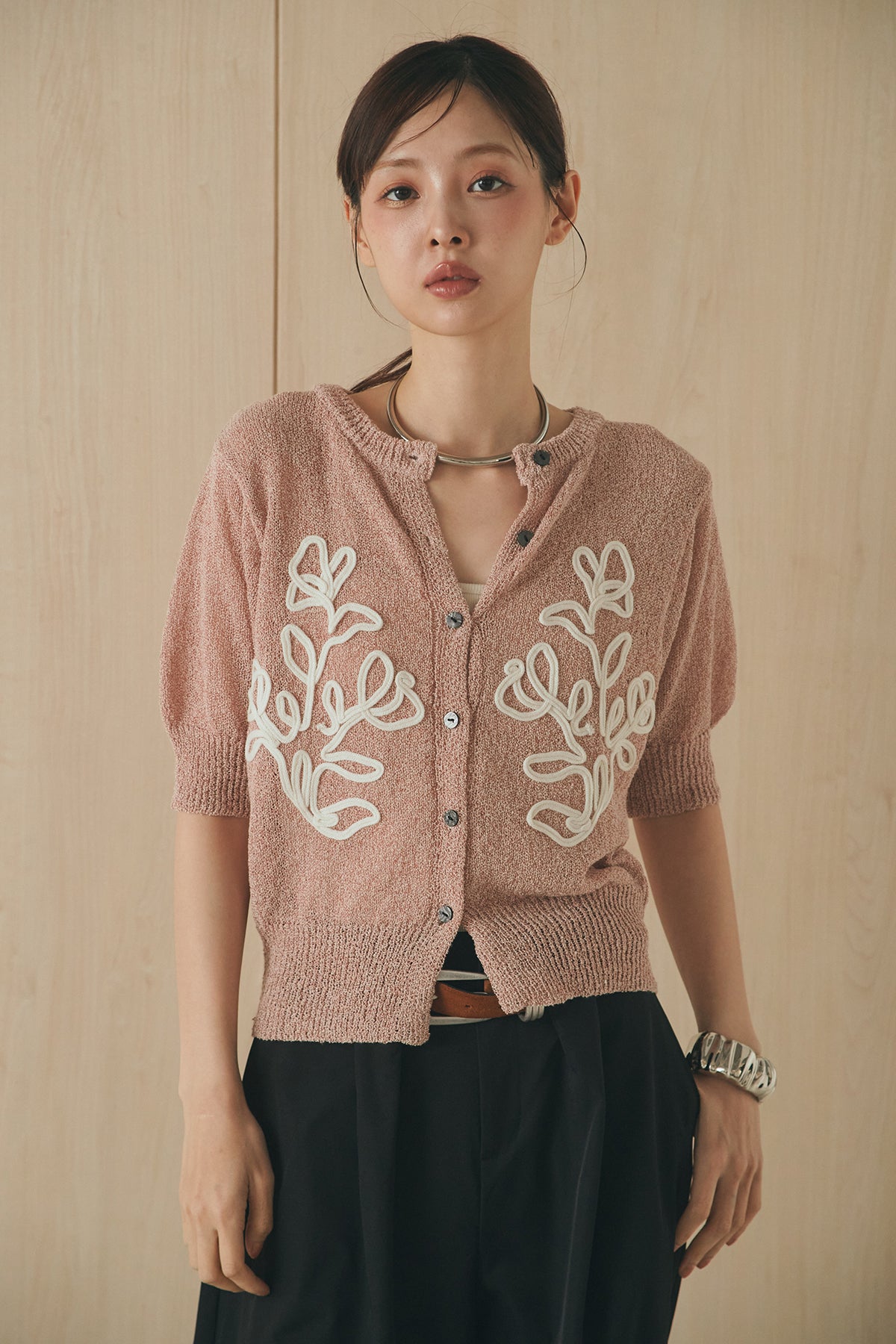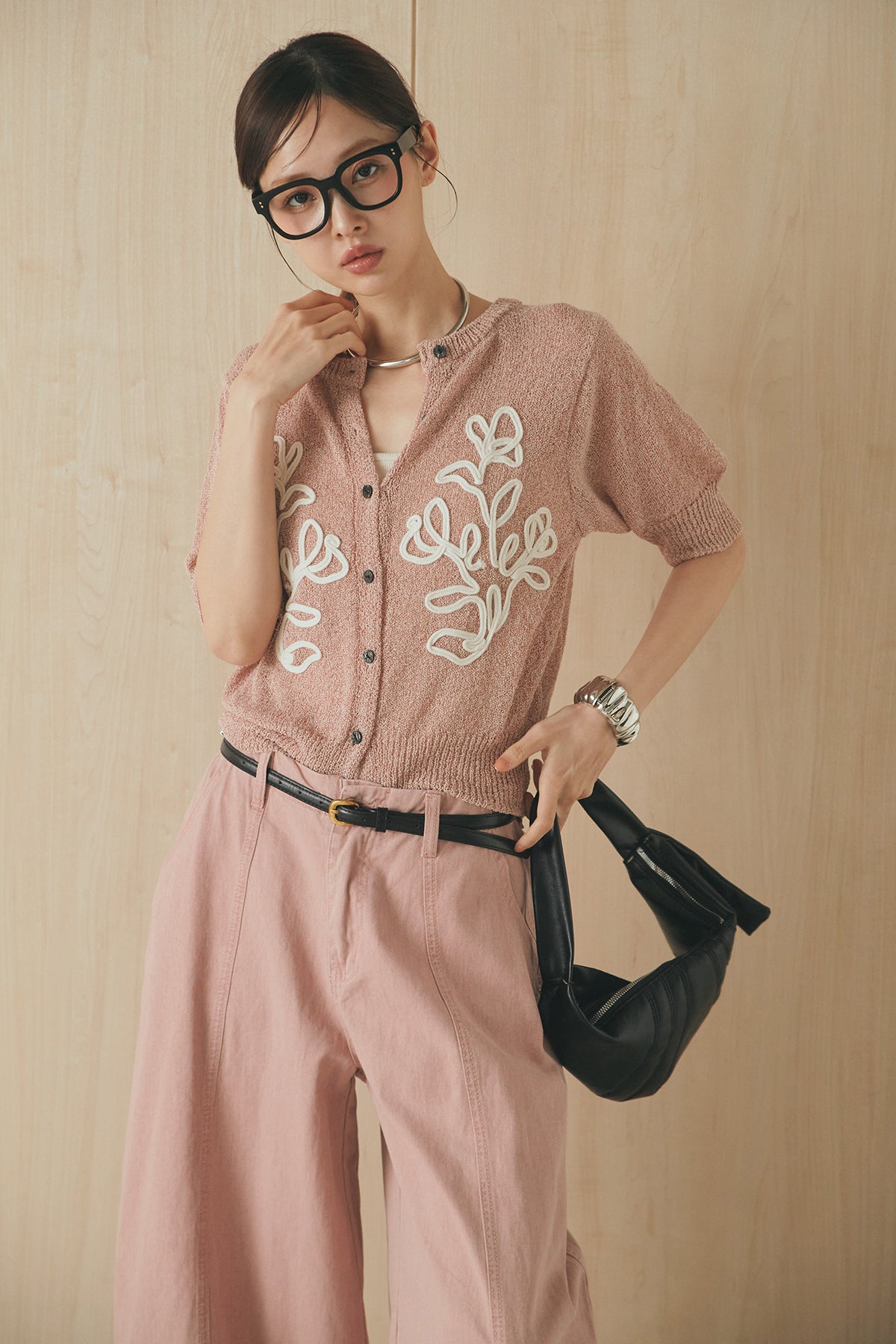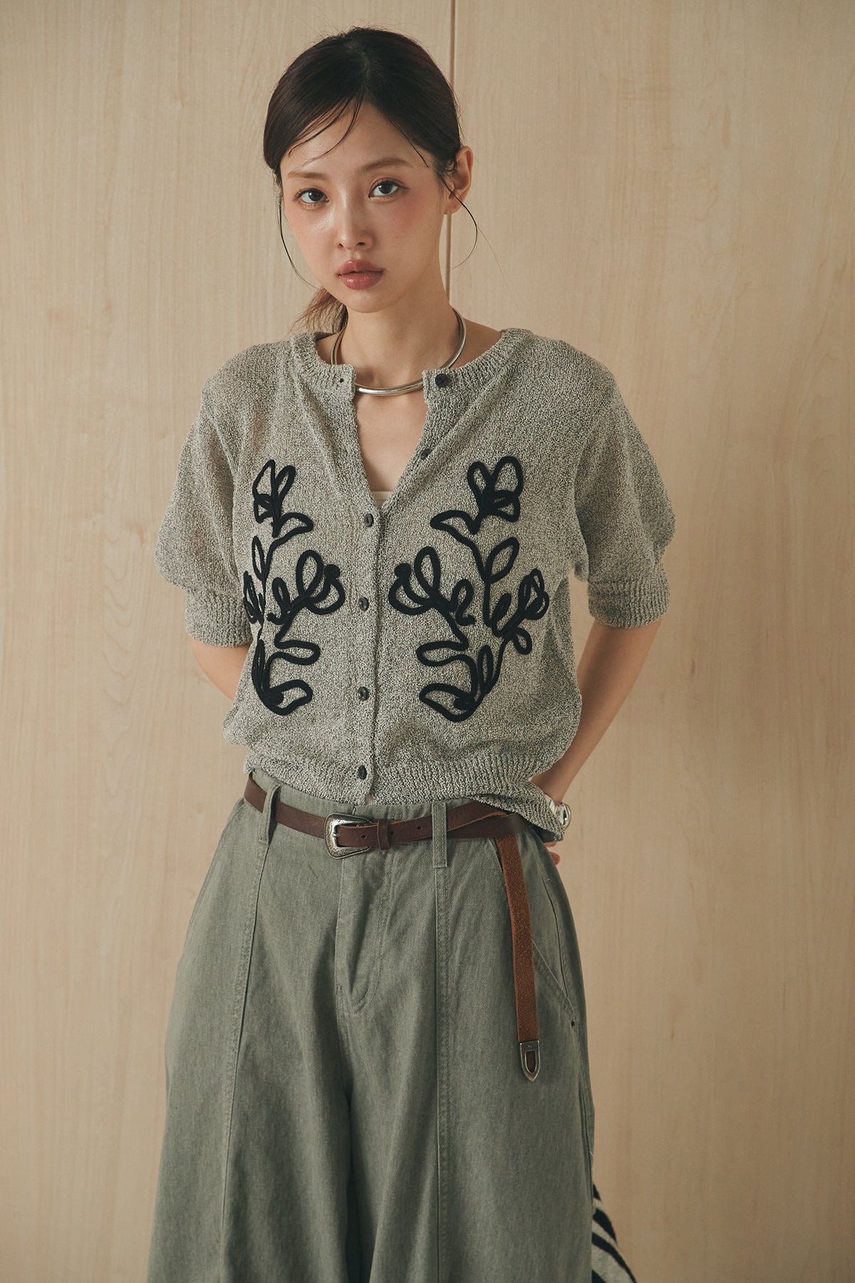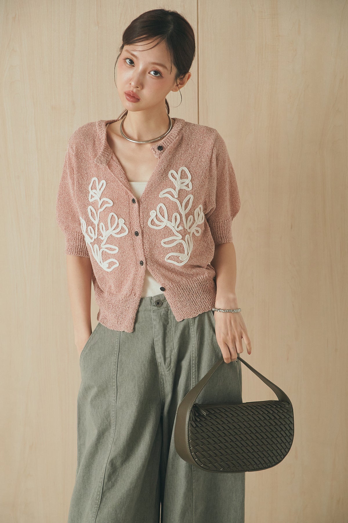 フロントにあしらったテープデザインが印象的な半袖カーディガン。 表情のある素材感に立体的なディテールを重ね、シンプルな中にも存在感のある一枚に仕上げました。コンパクトなシルエットでバランスが取りやすく、軽やかに着用できるデザイン。 前を閉じてトップスとしても、羽織りとしても活躍し、デイリーに取り入れやすいアイテムです。