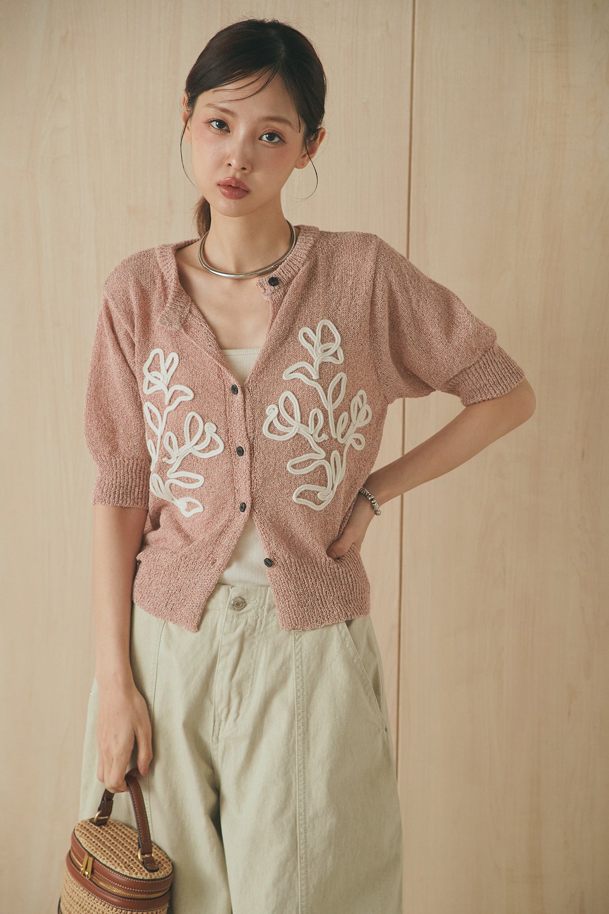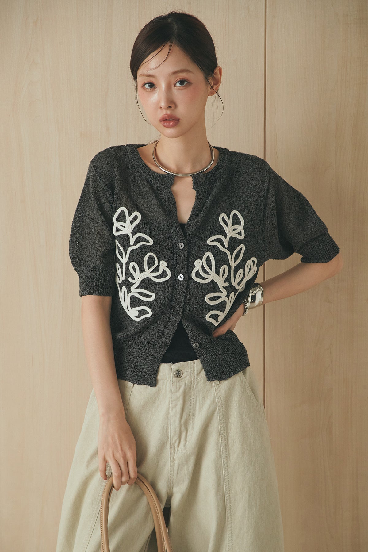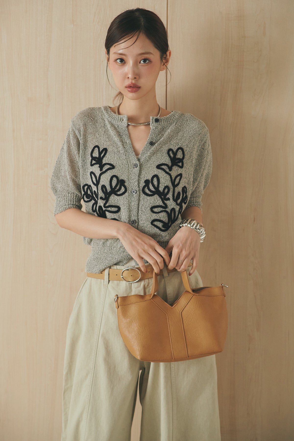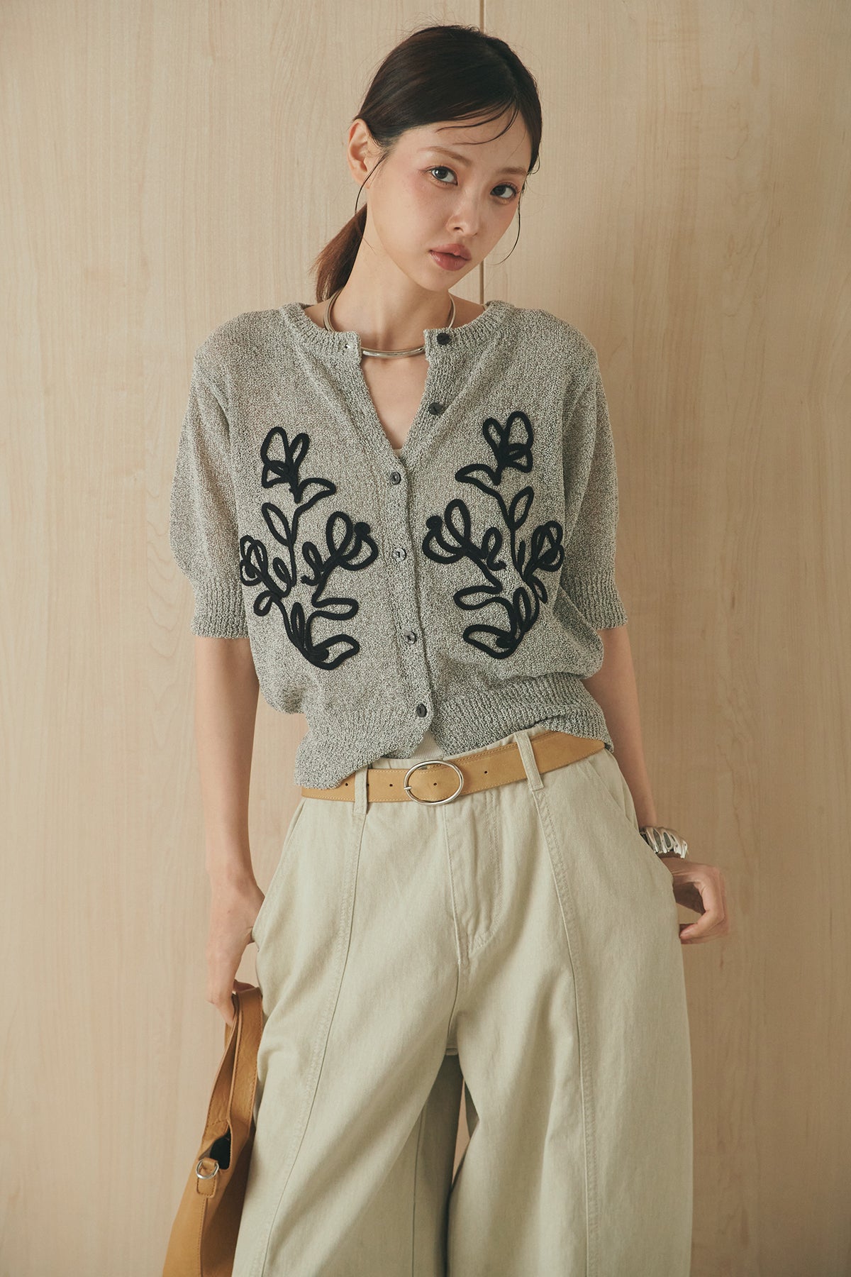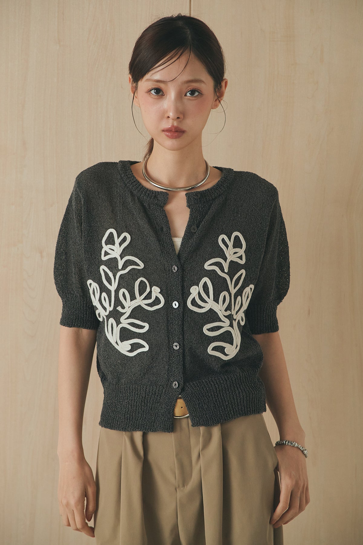 フロントにあしらったテープデザインが印象的な半袖カーディガン。 表情のある素材感に立体的なディテールを重ね、シンプルな中にも存在感のある一枚に仕上げました。コンパクトなシルエットでバランスが取りやすく、軽やかに着用できるデザイン。 前を閉じてトップスとしても、羽織りとしても活躍し、デイリーに取り入れやすいアイテムです。