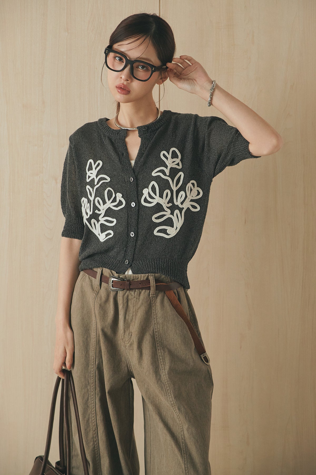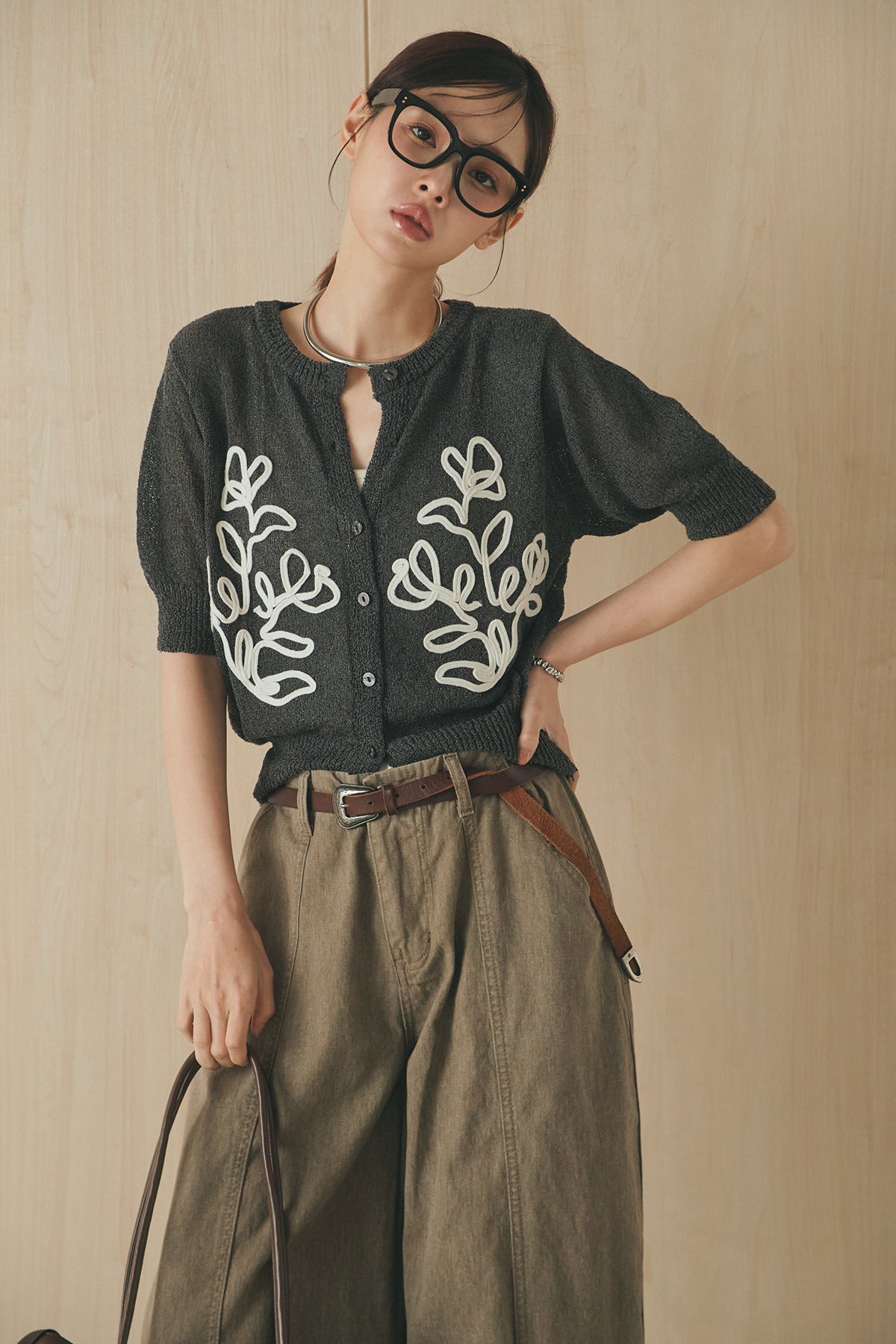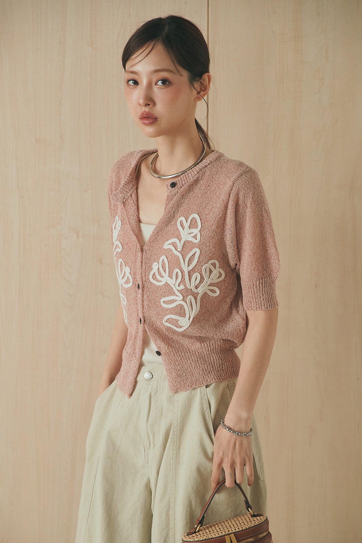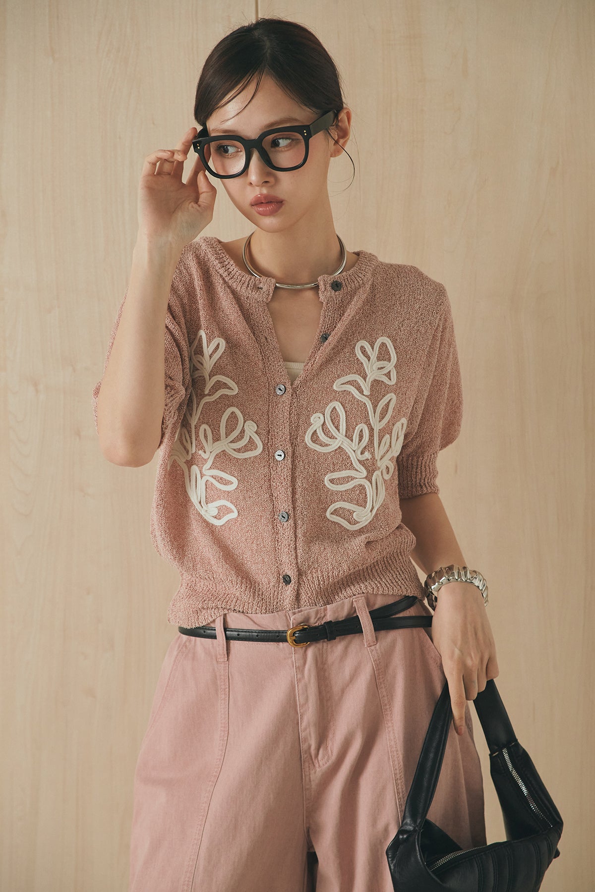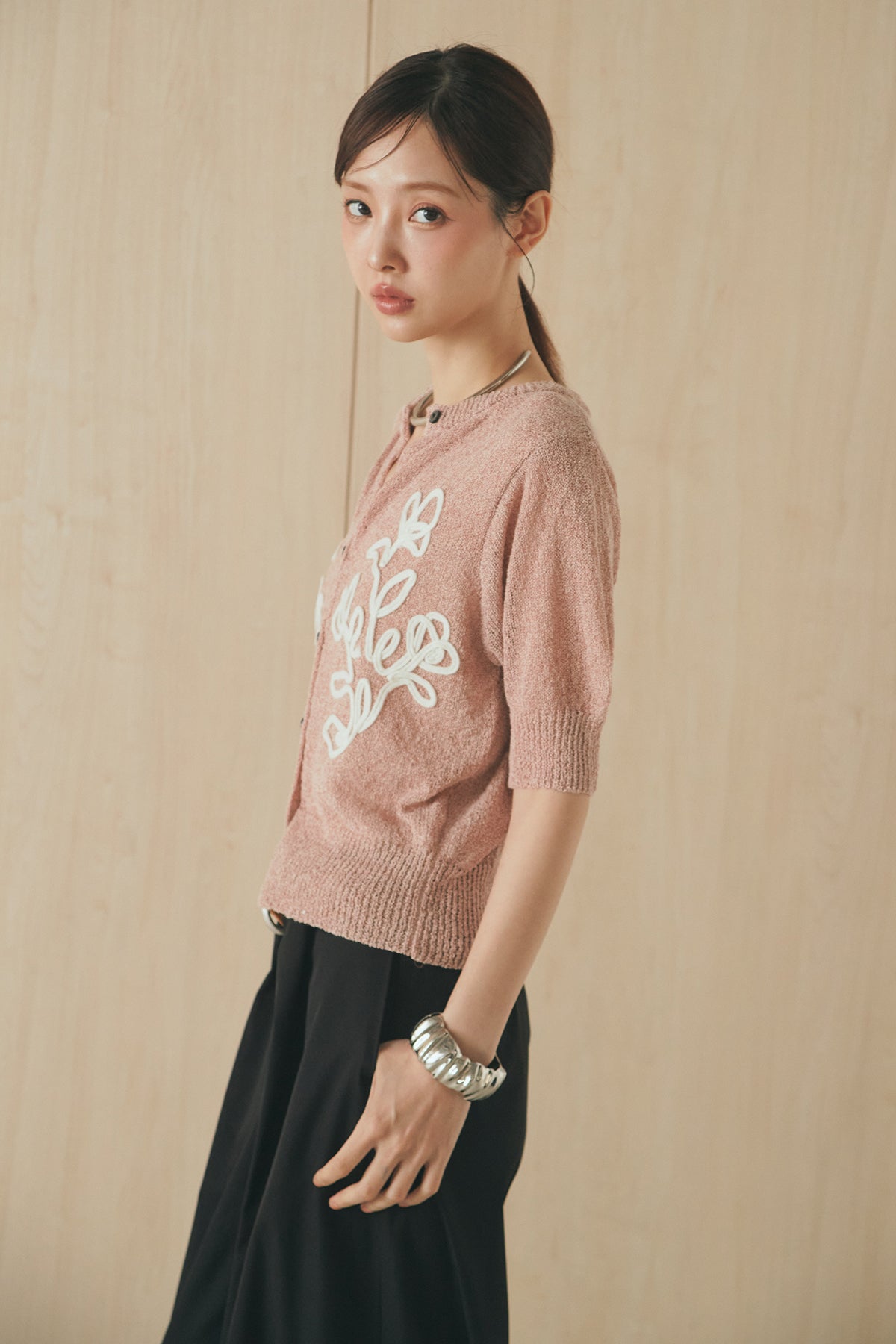 フロントにあしらったテープデザインが印象的な半袖カーディガン。 表情のある素材感に立体的なディテールを重ね、シンプルな中にも存在感のある一枚に仕上げました。コンパクトなシルエットでバランスが取りやすく、軽やかに着用できるデザイン。 前を閉じてトップスとしても、羽織りとしても活躍し、デイリーに取り入れやすいアイテムです。