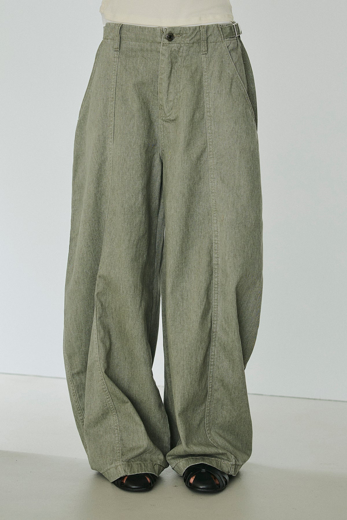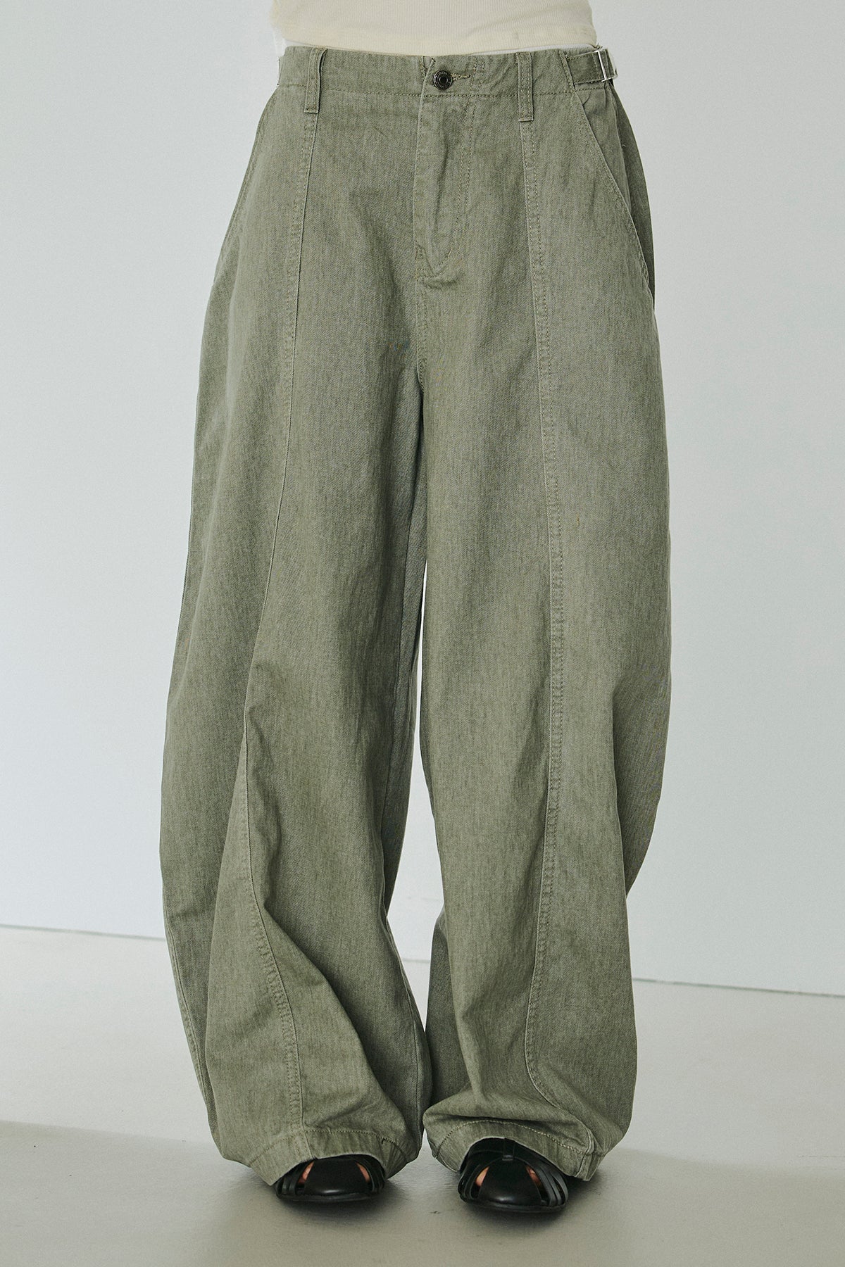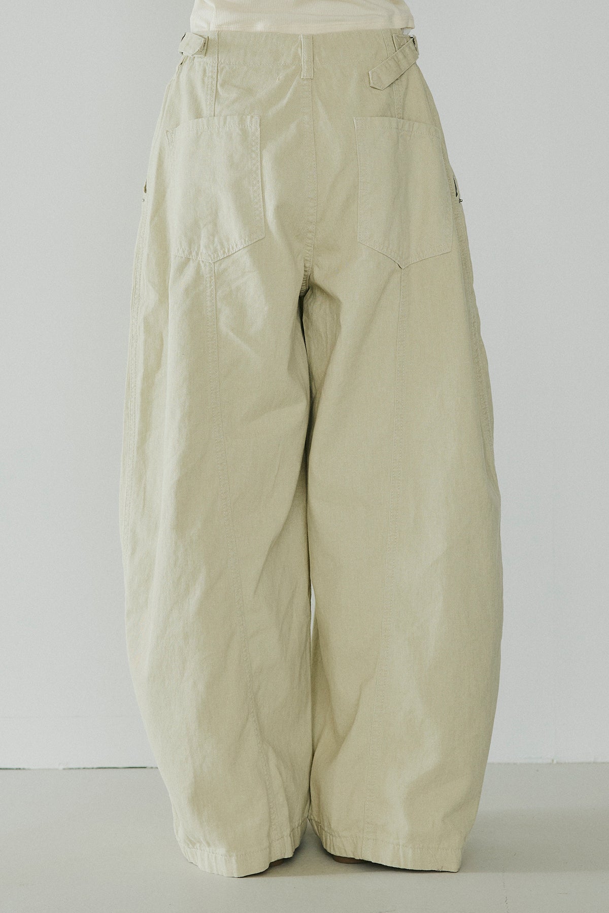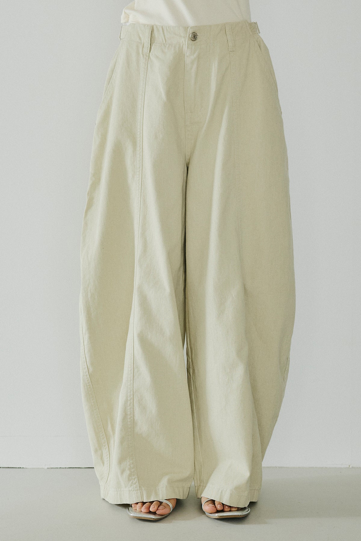 サイドに施されたベルトデザインが目を惹く、立体的なシルエットのカーブワイドパンツ。 さりげないディテールがアクセントとなり、シンプルなスタイリングにモードなニュアンスをプラスしてくれる一着です。 カーブを描くワイドシルエットが、動きのあるフォルムを演出。 ゆとりのある履き心地ながらも、計算されたラインですっきりとした印象に仕上げています。 ウエスト部分のサイドベルトでフィット感の調整が可能。 トップスをインすることでデザインが引き立ち、バランスの良いスタイリングが完成します。 カジュアルからきれいめまで幅広く対応し、デイリーに活躍。 シンプルなスタイリングに遊び心をプラスし、都会的でこなれたムードを演出してくれる主役級のアイテムです。