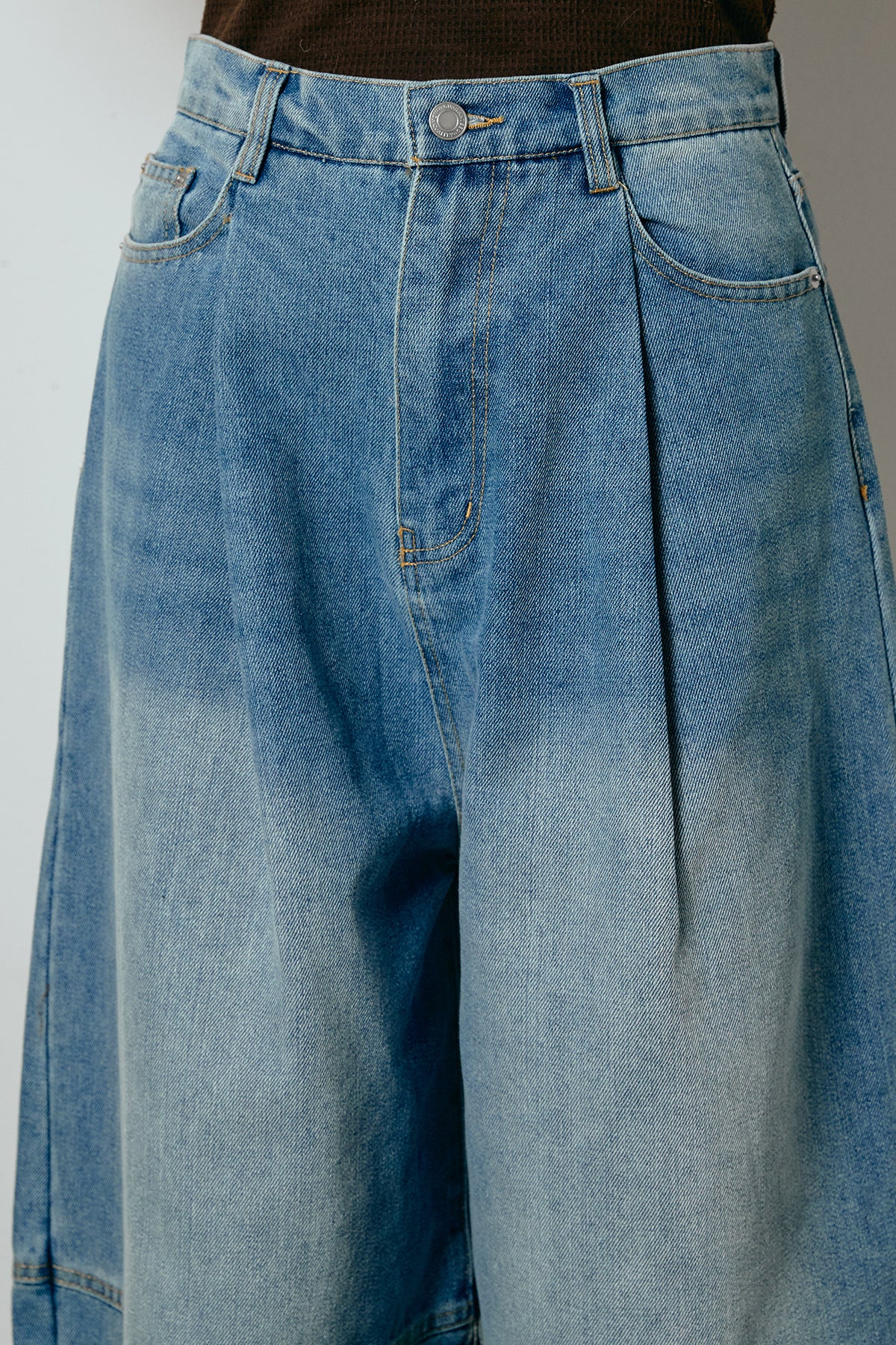 加工デニムタックコクーンワイドパンツ