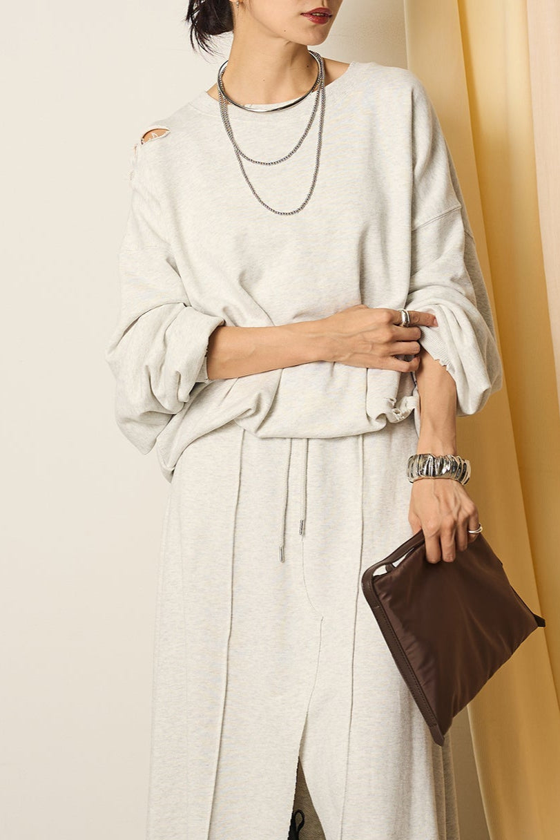 クラッシュベロアドレープオフショルプルオーバー/ホワイト