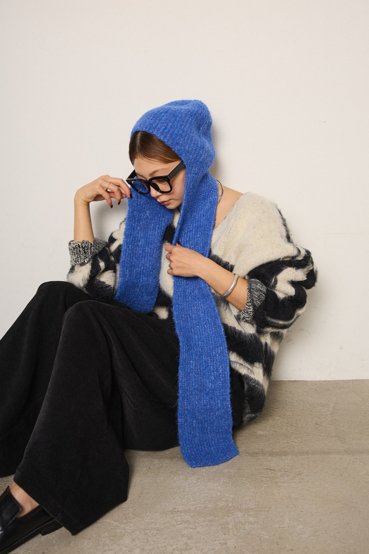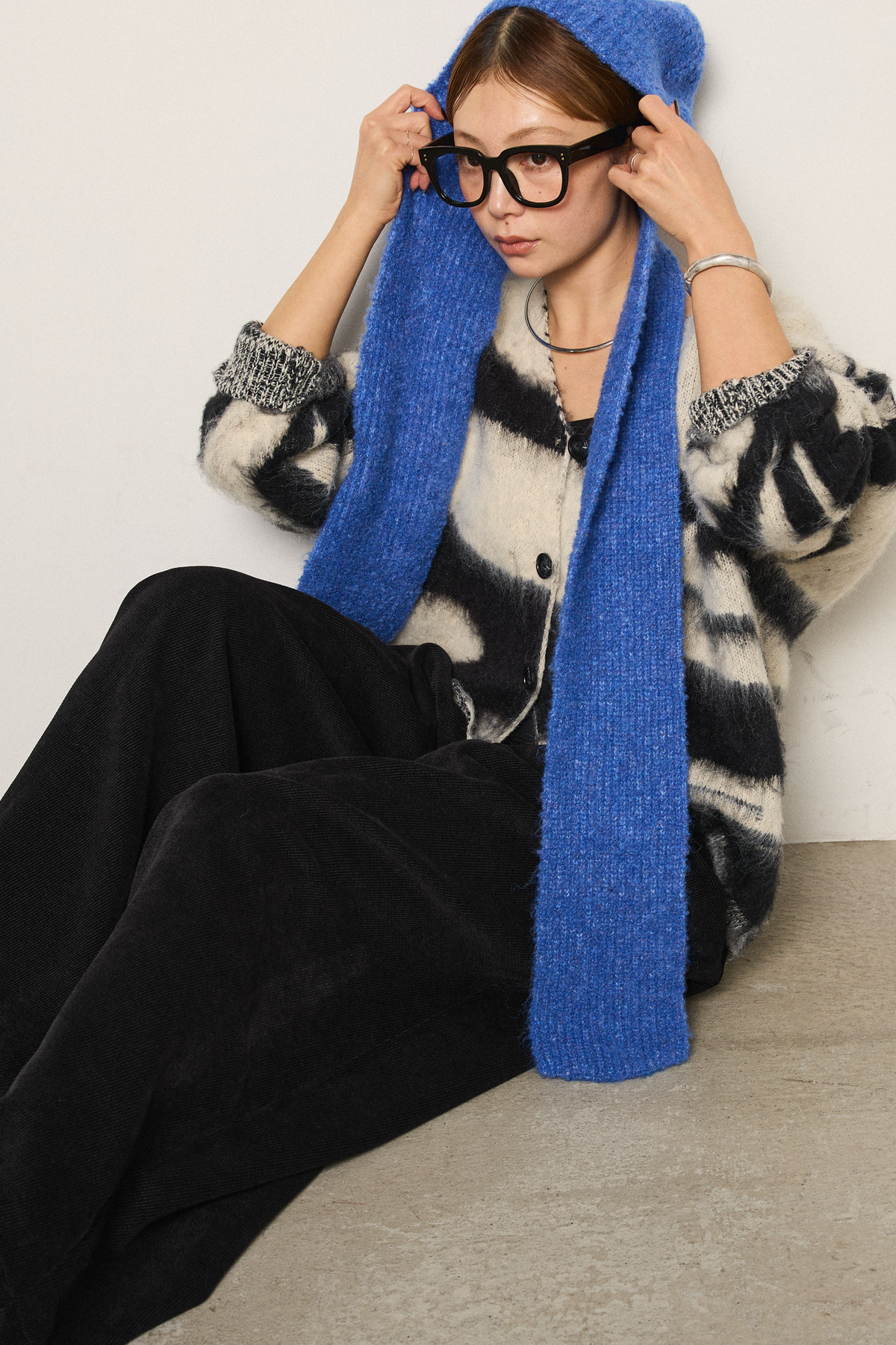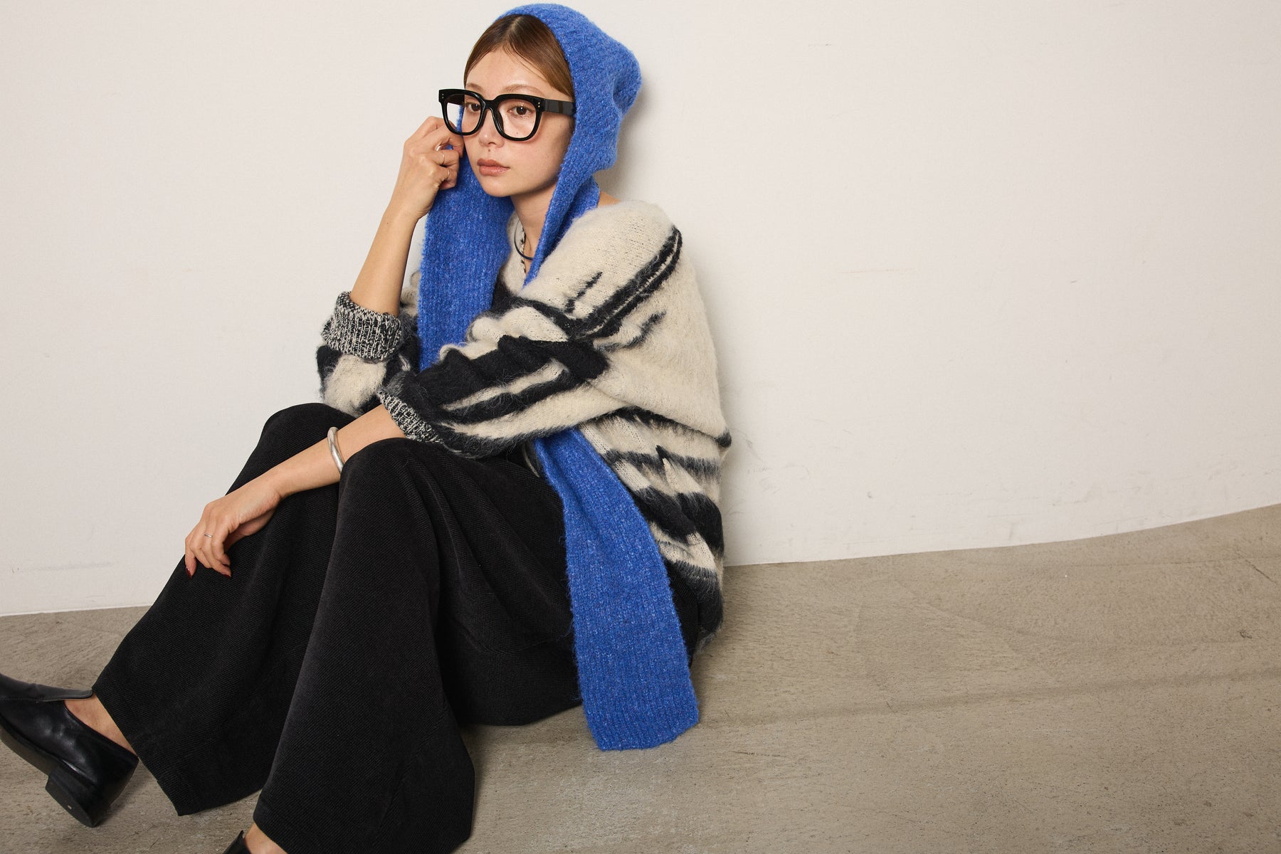 耳まで包み込むブークレー素材のイヤーフラップビーニー。ふっくらとした編地が軽やかで、柔らかな被り心地が魅力です。長めのフラップは垂らしても結んでも形が決まり、スタイリングのアクセントとして存在感を発揮。防寒性とデザイン性を兼ね備えたアイテムで、コーデに遊び心を添えたい日におすすめです。