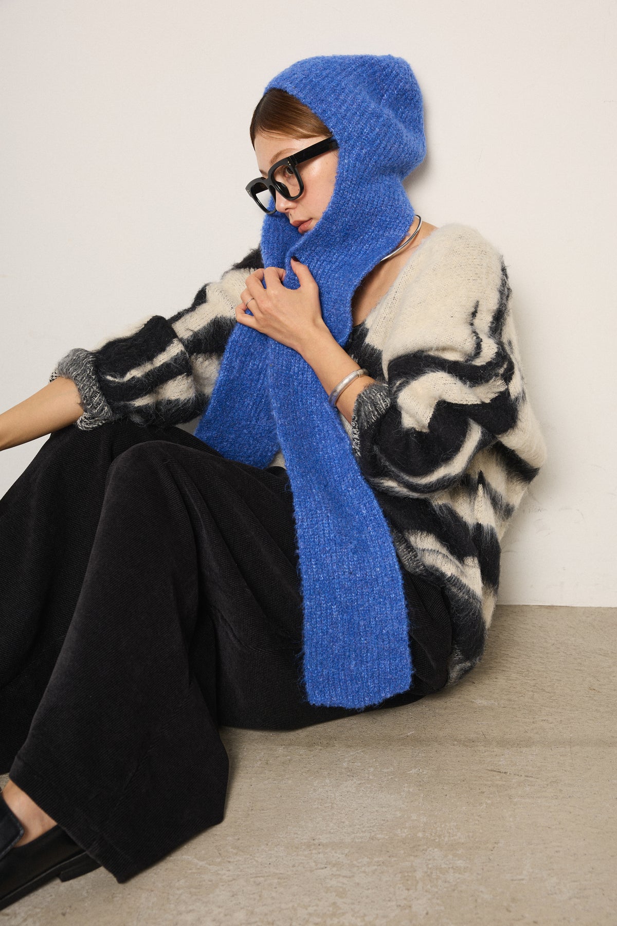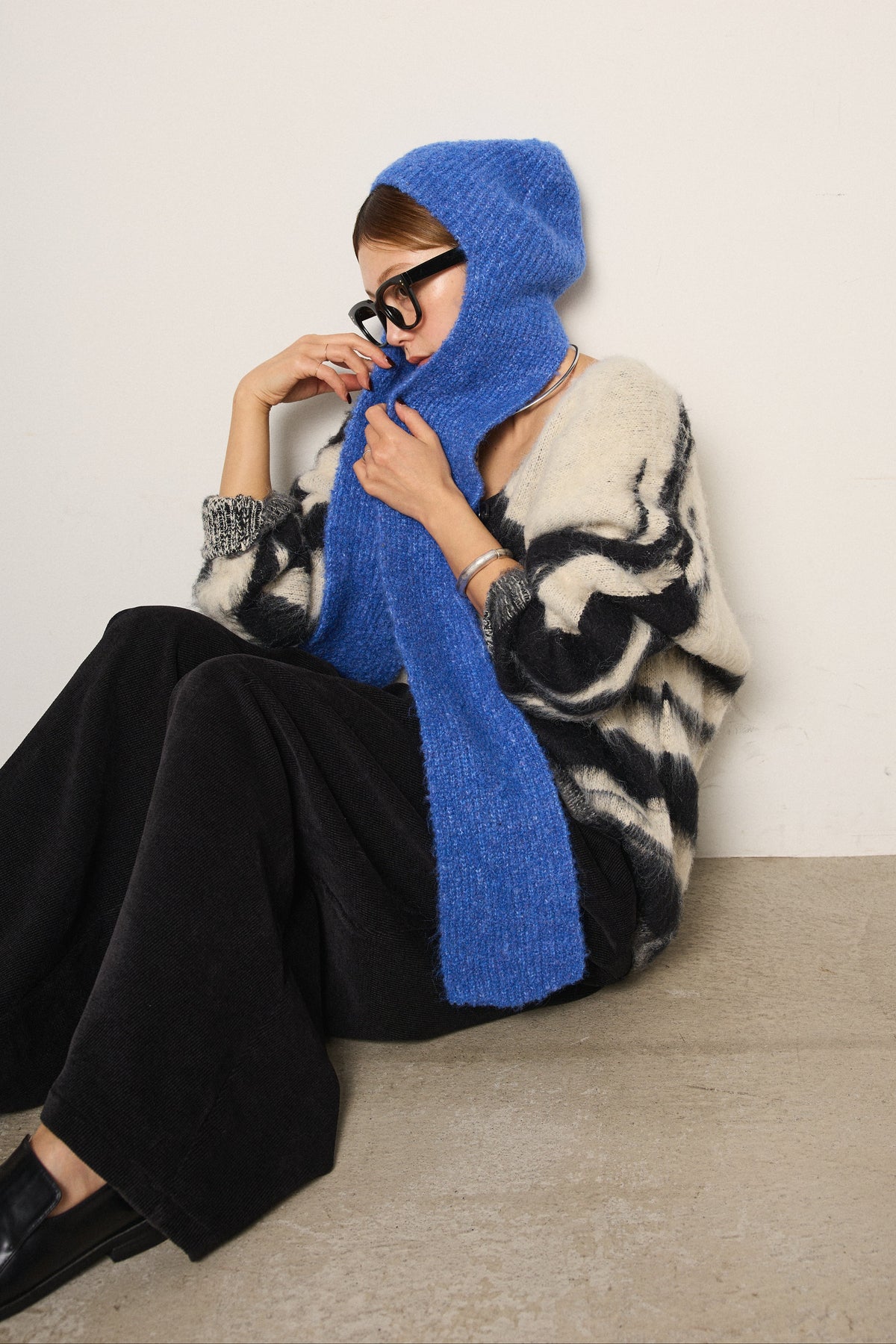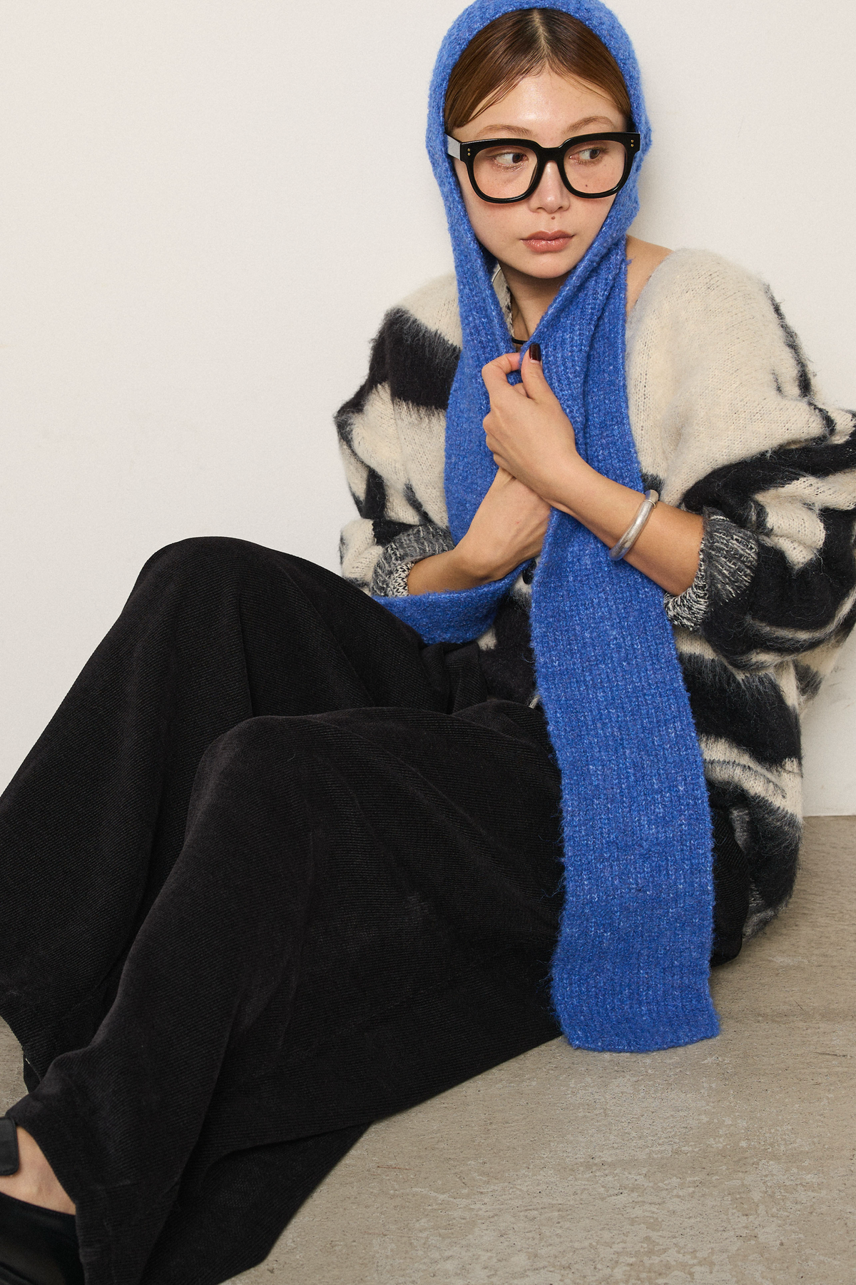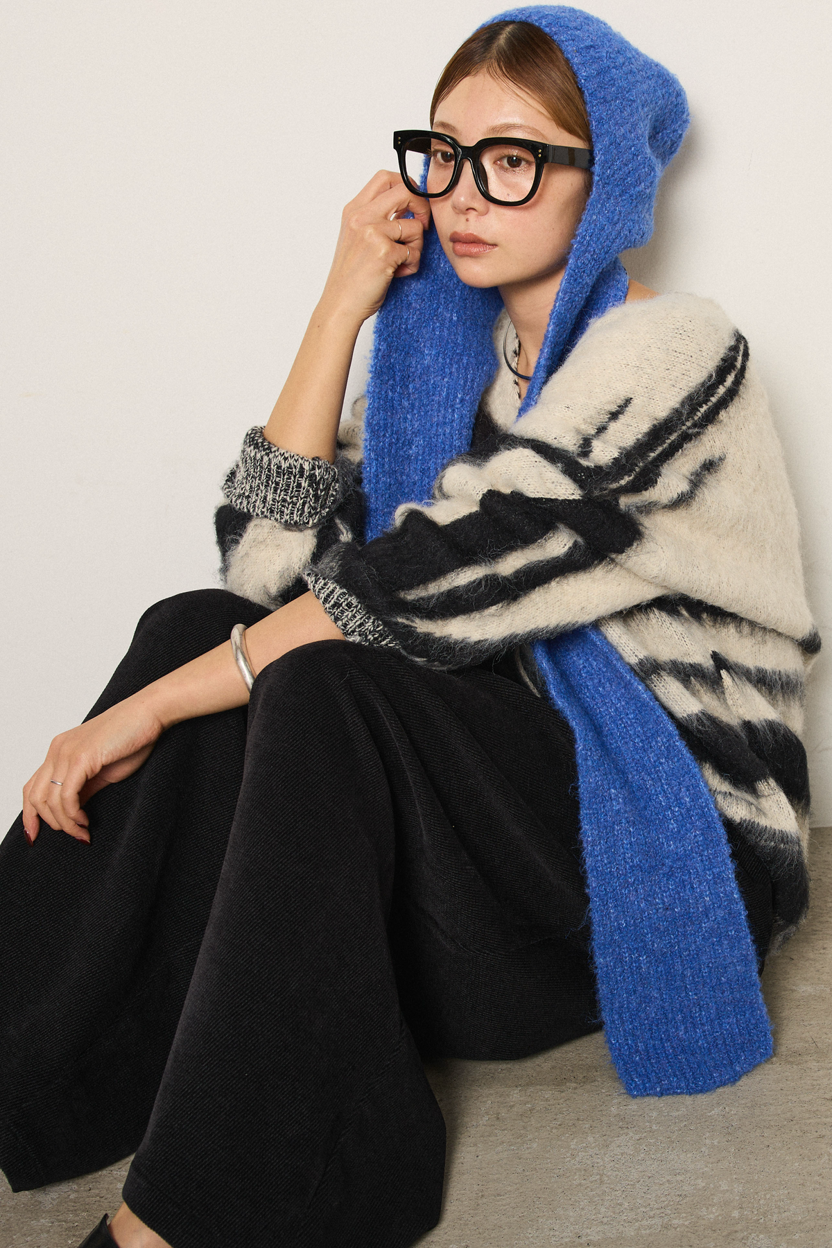 耳まで包み込むブークレー素材のイヤーフラップビーニー。ふっくらとした編地が軽やかで、柔らかな被り心地が魅力です。長めのフラップは垂らしても結んでも形が決まり、スタイリングのアクセントとして存在感を発揮。防寒性とデザイン性を兼ね備えたアイテムで、コーデに遊び心を添えたい日におすすめです。