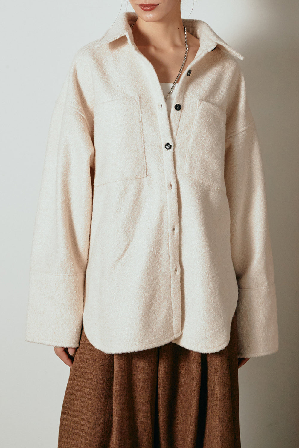 裾フリンジジャガード柄ポンチョアウター/アイボリー
