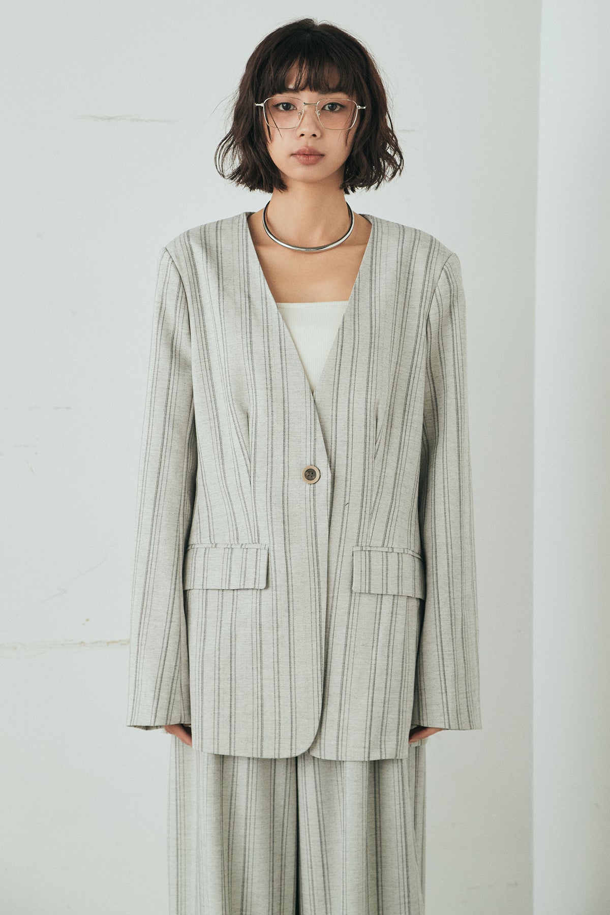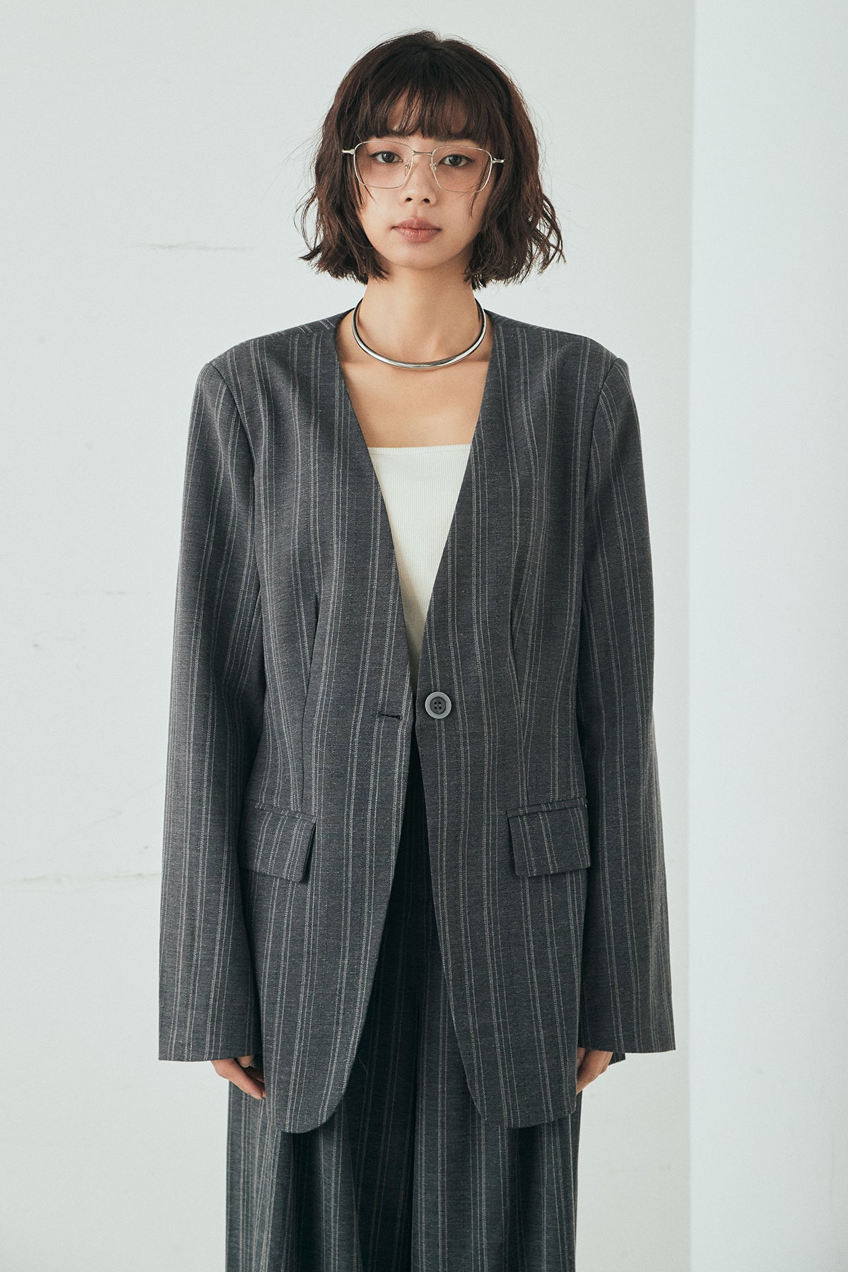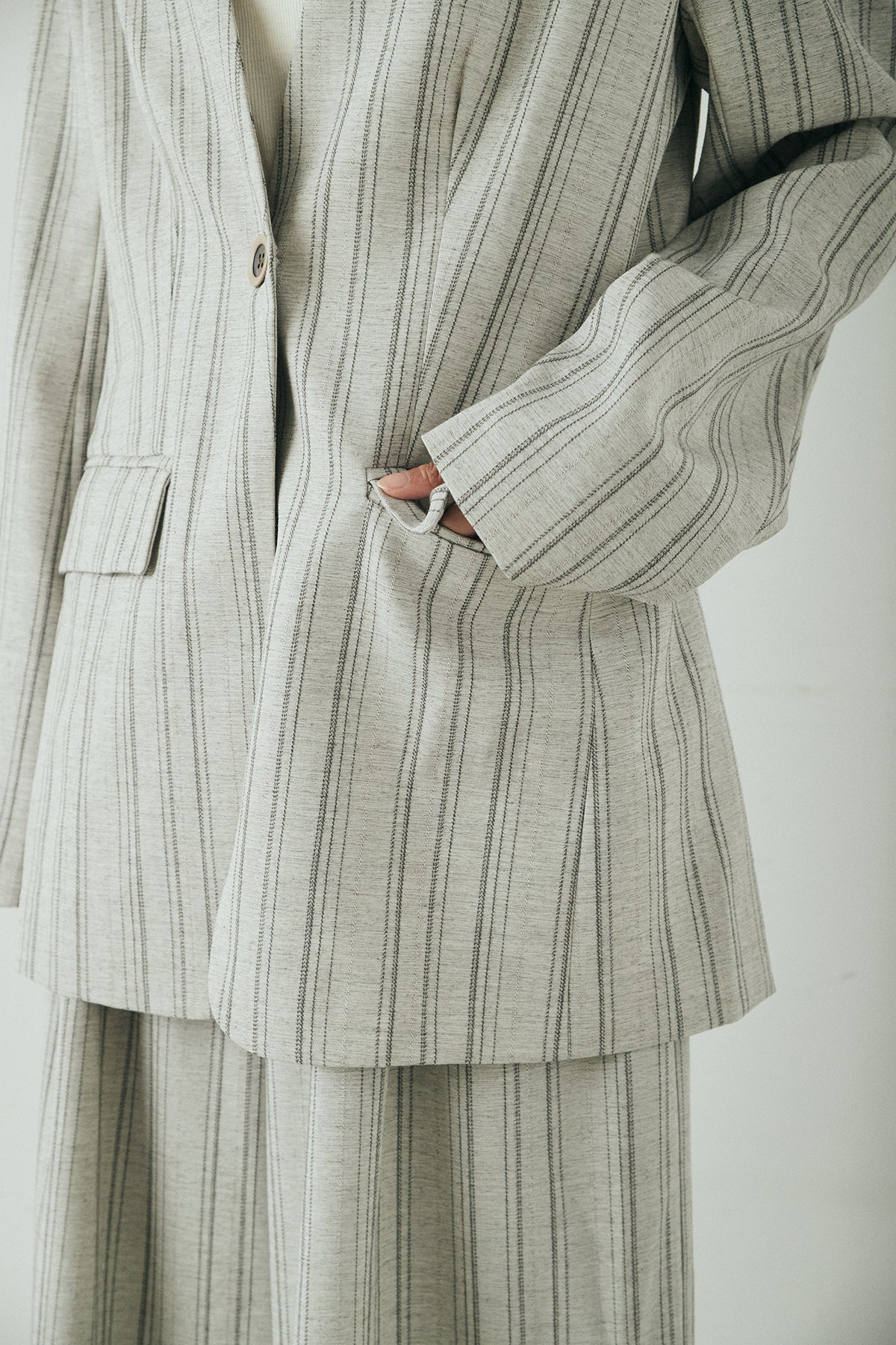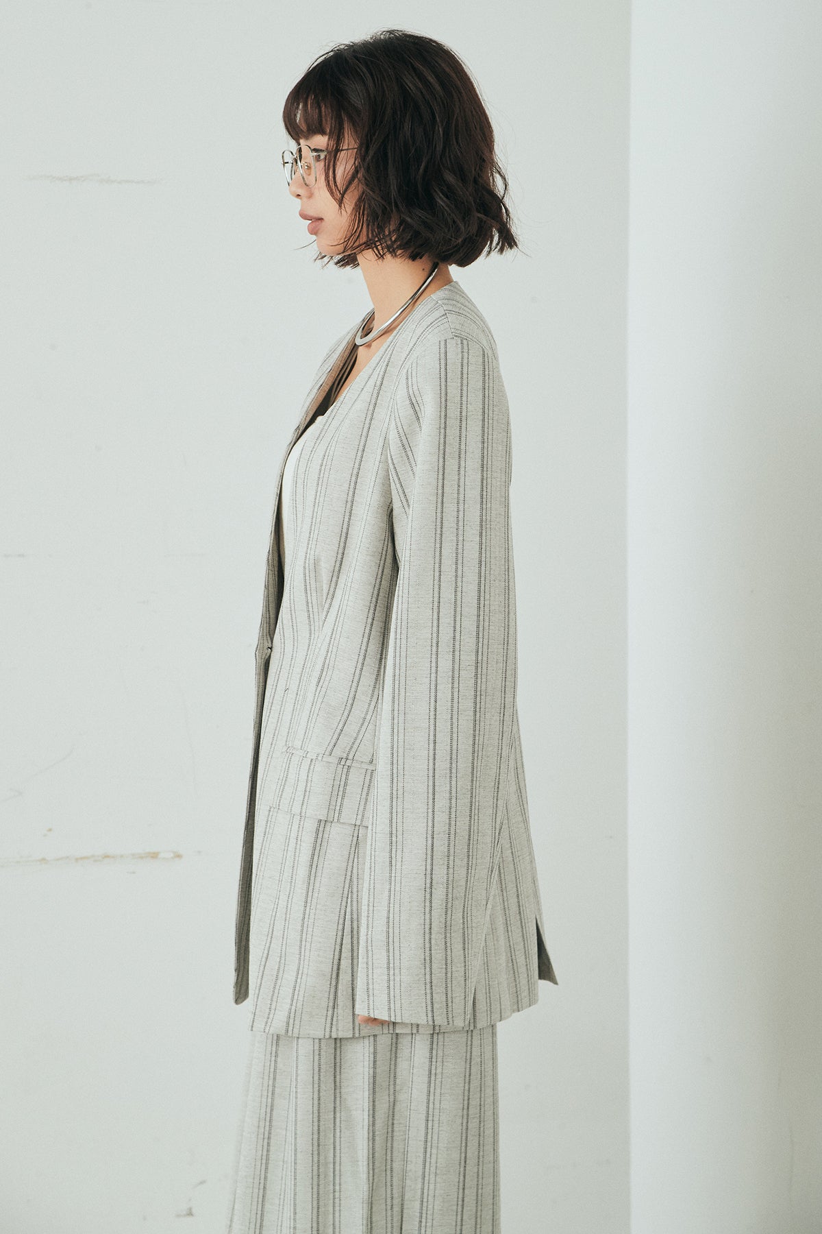 ノーカラーピンストライプジャケットの他のセットページはこちら