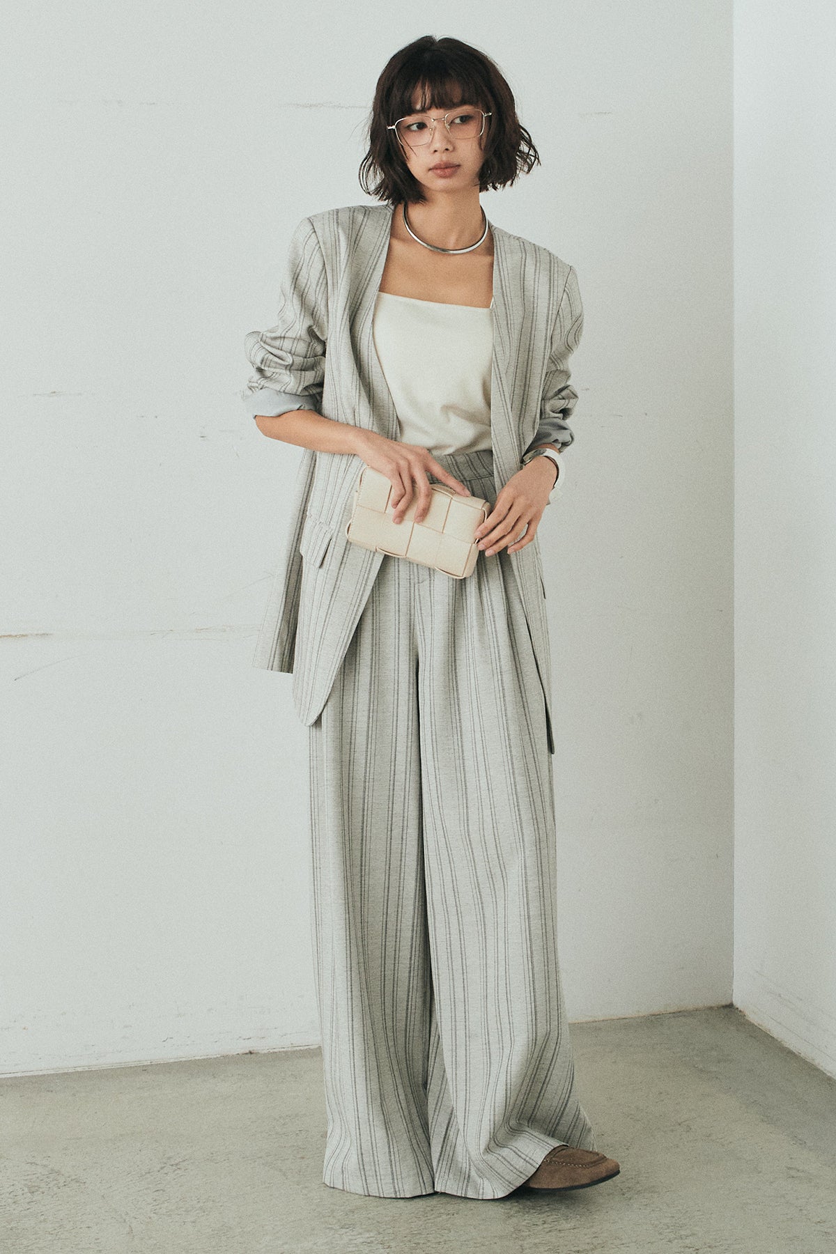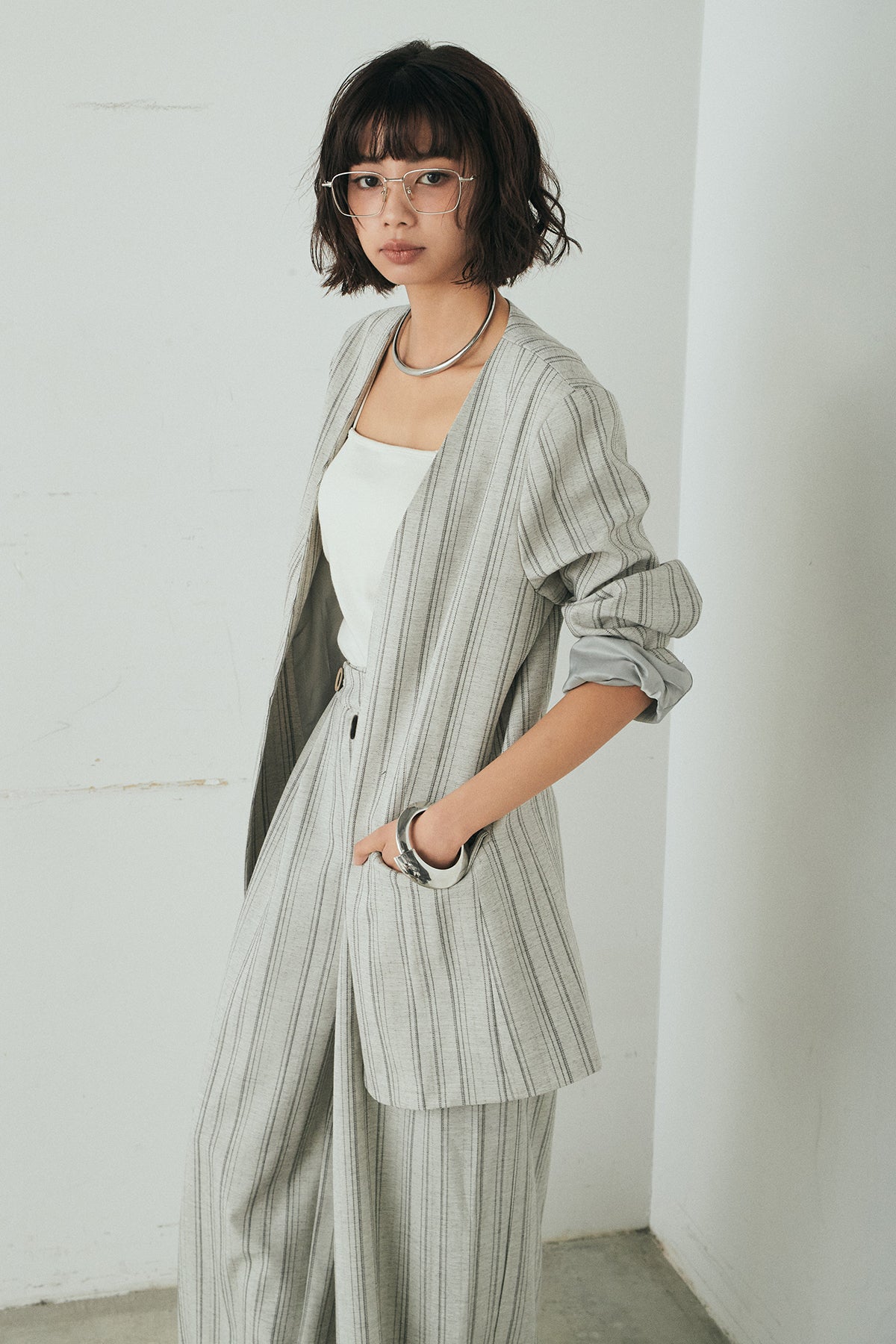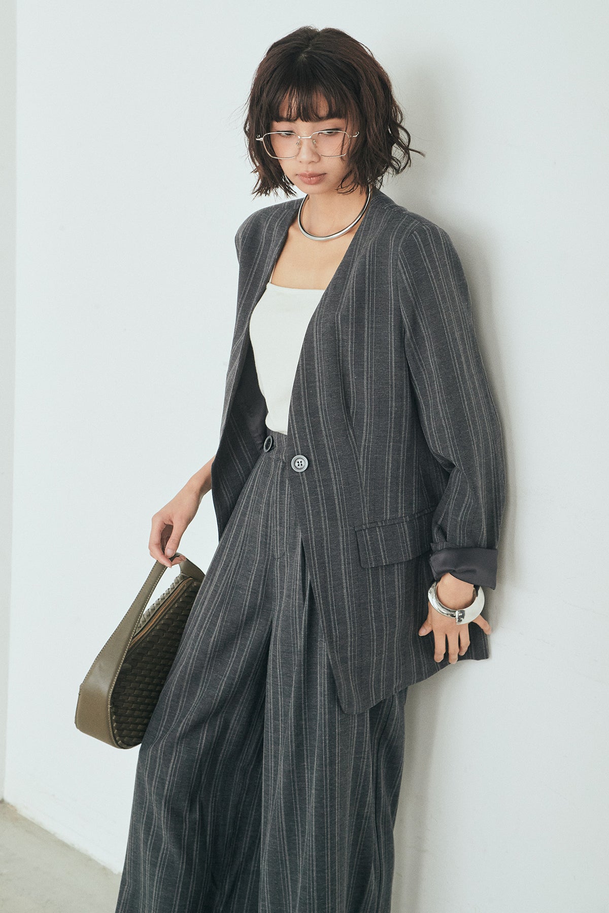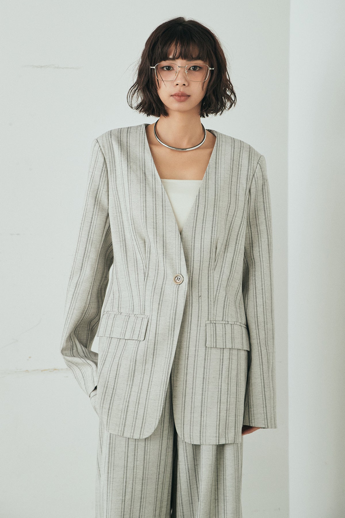 ノーカラーピンストライプジャケットの他のセットページはこちら