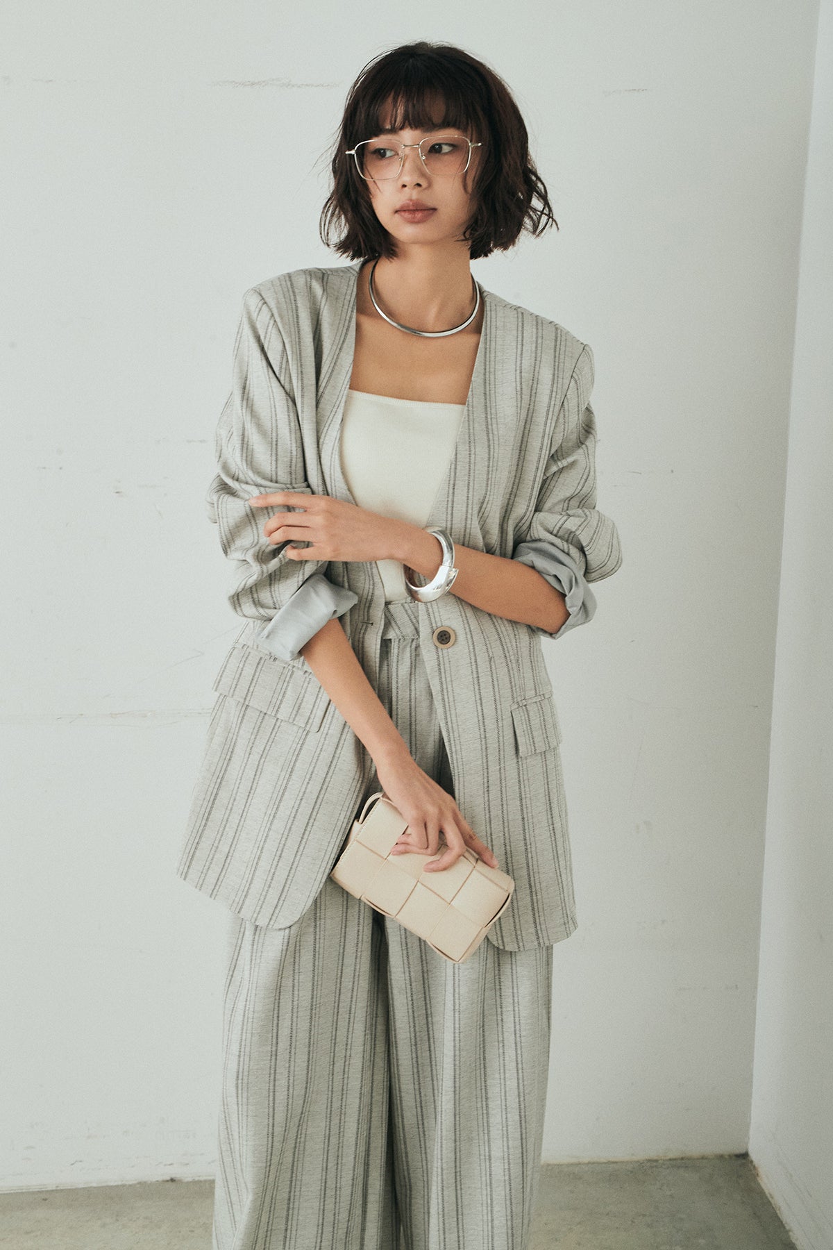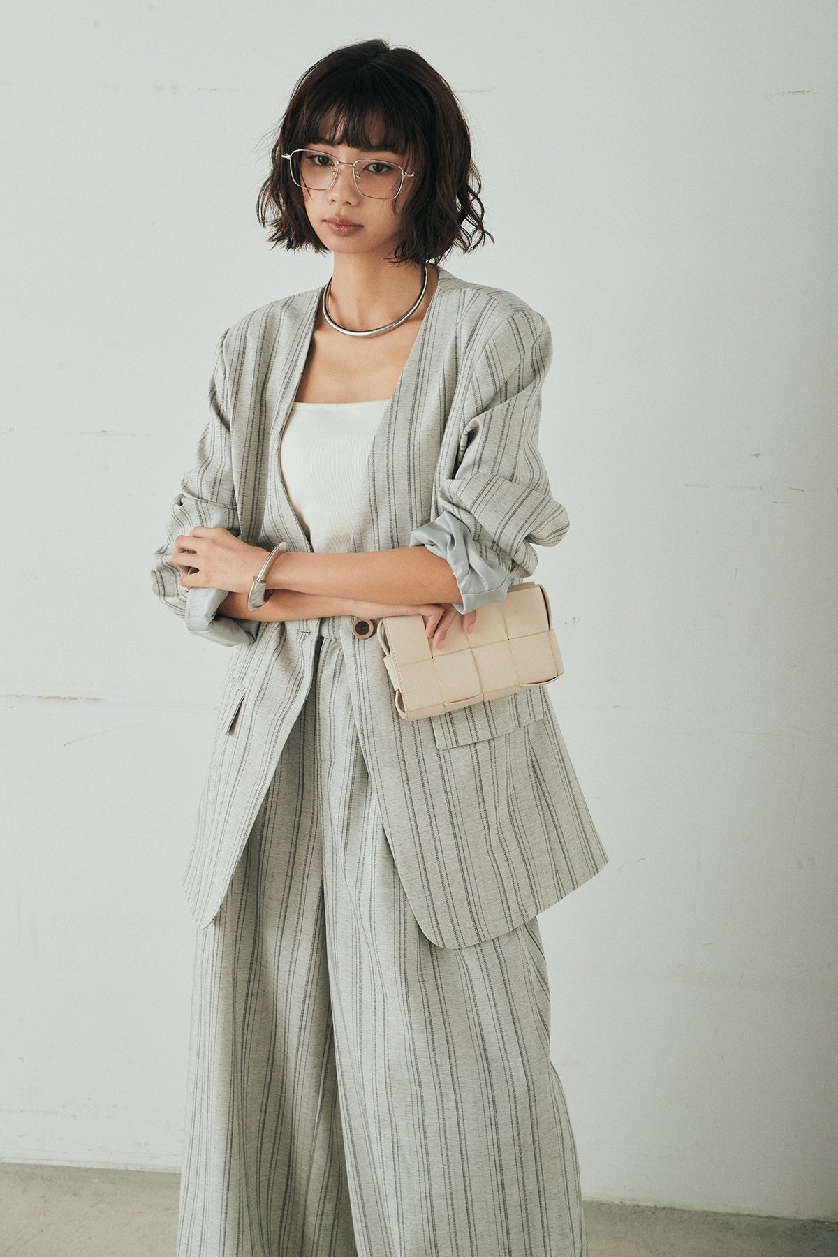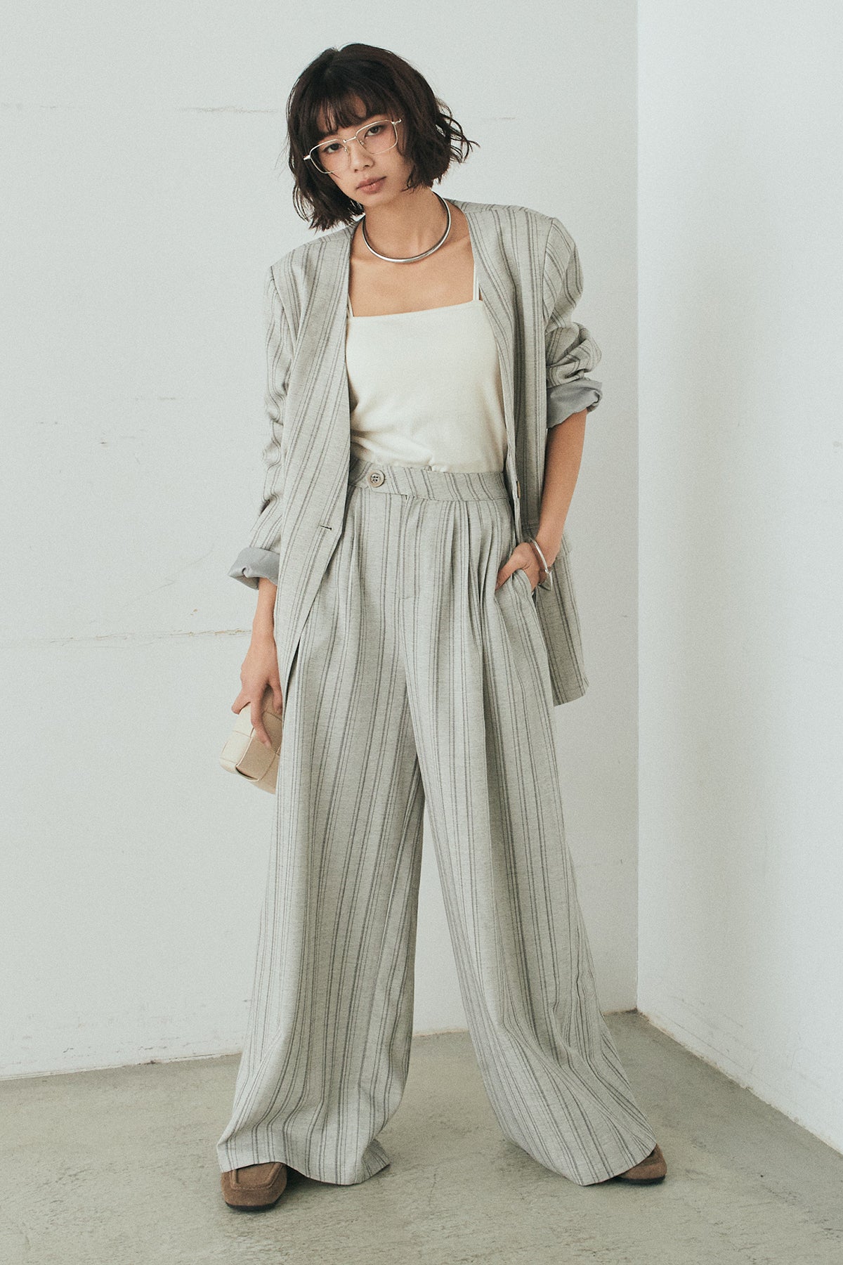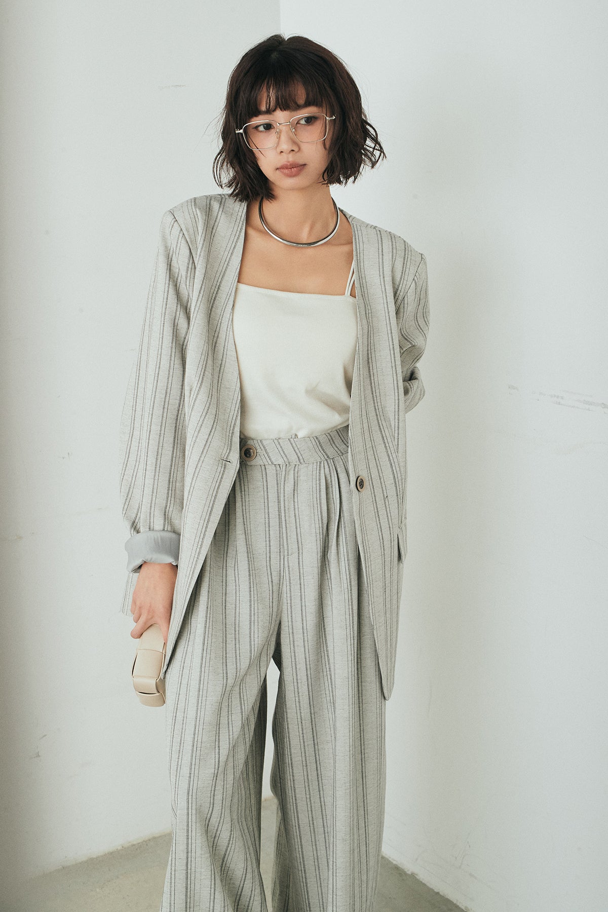 ノーカラーピンストライプジャケットの他のセットページはこちら