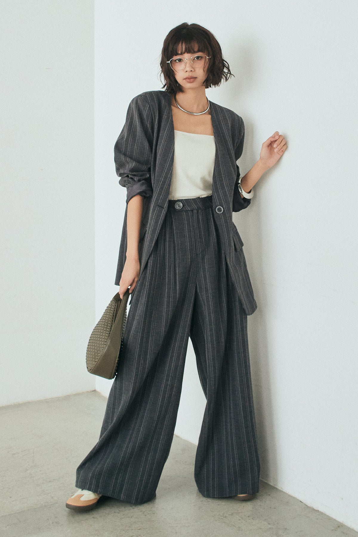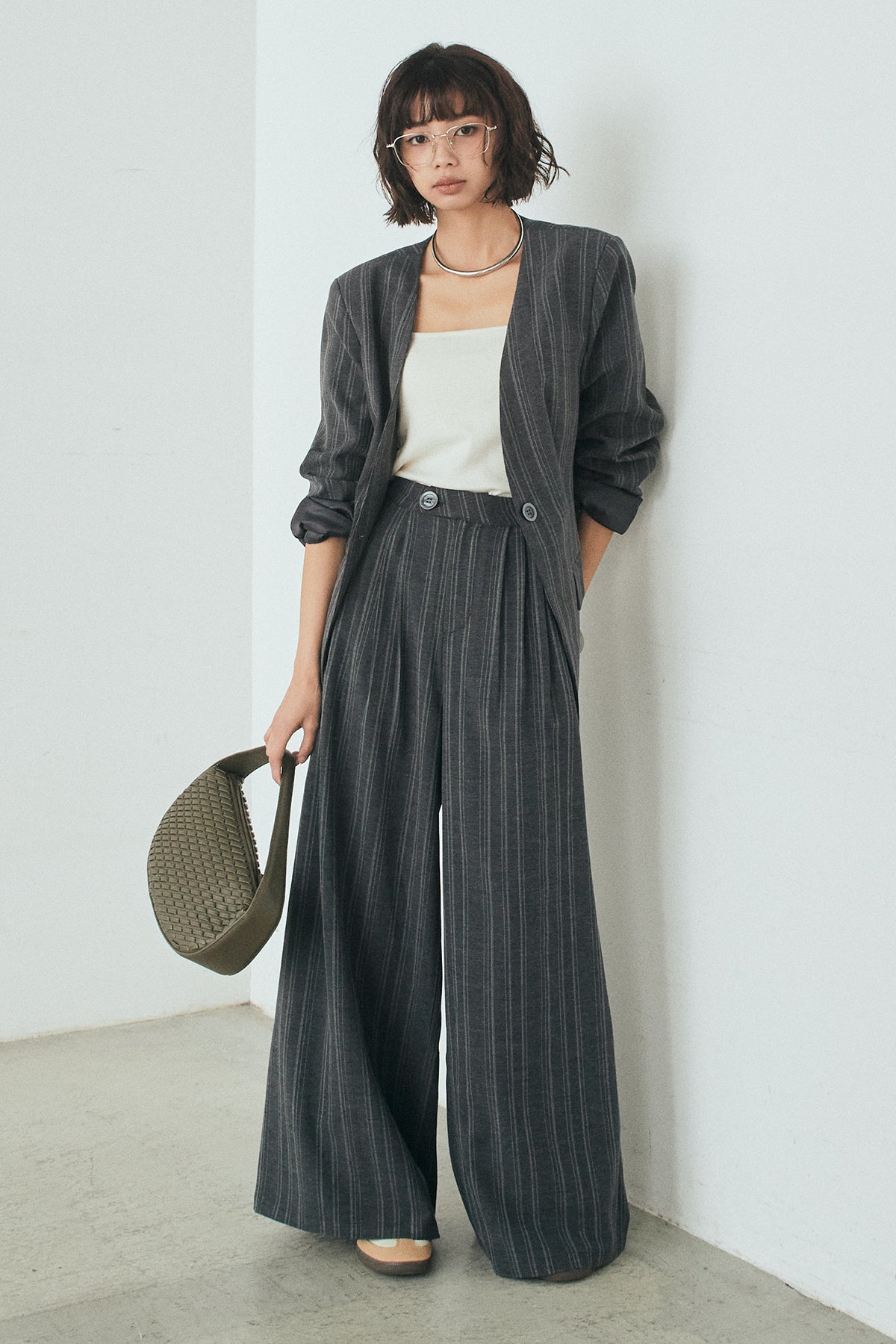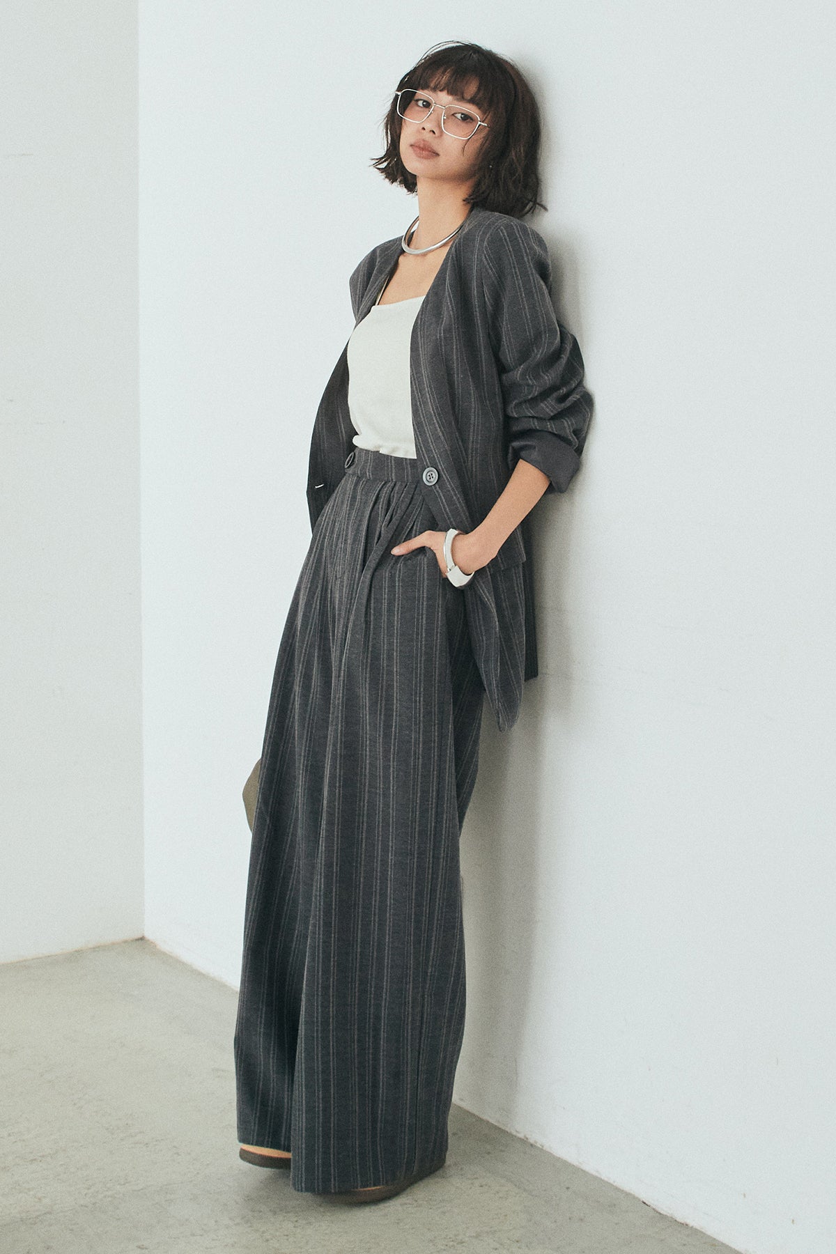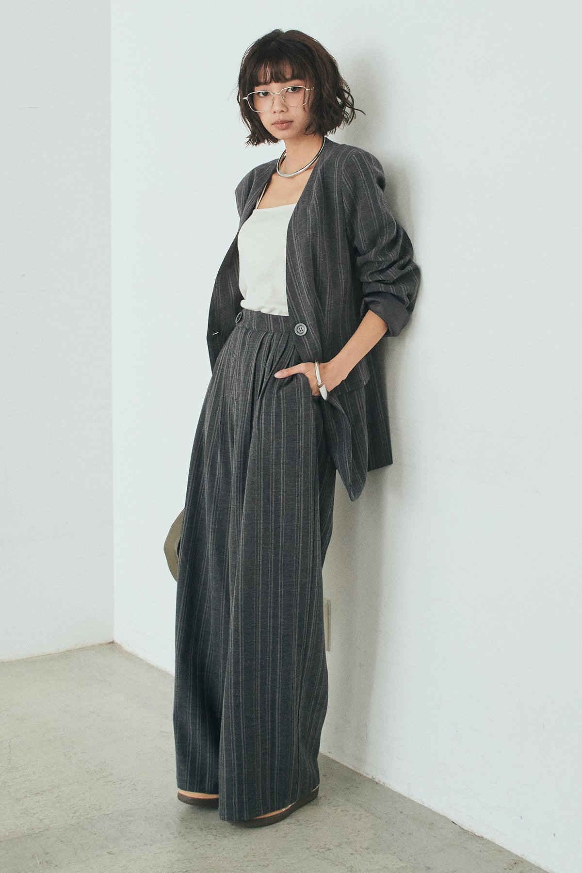ピンストライプワイドスラックスの他のセットページはこちら