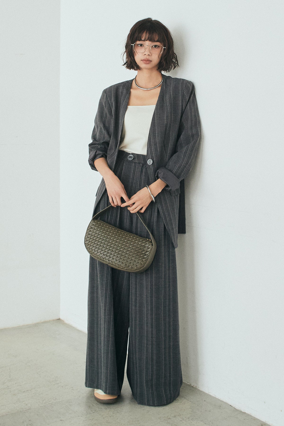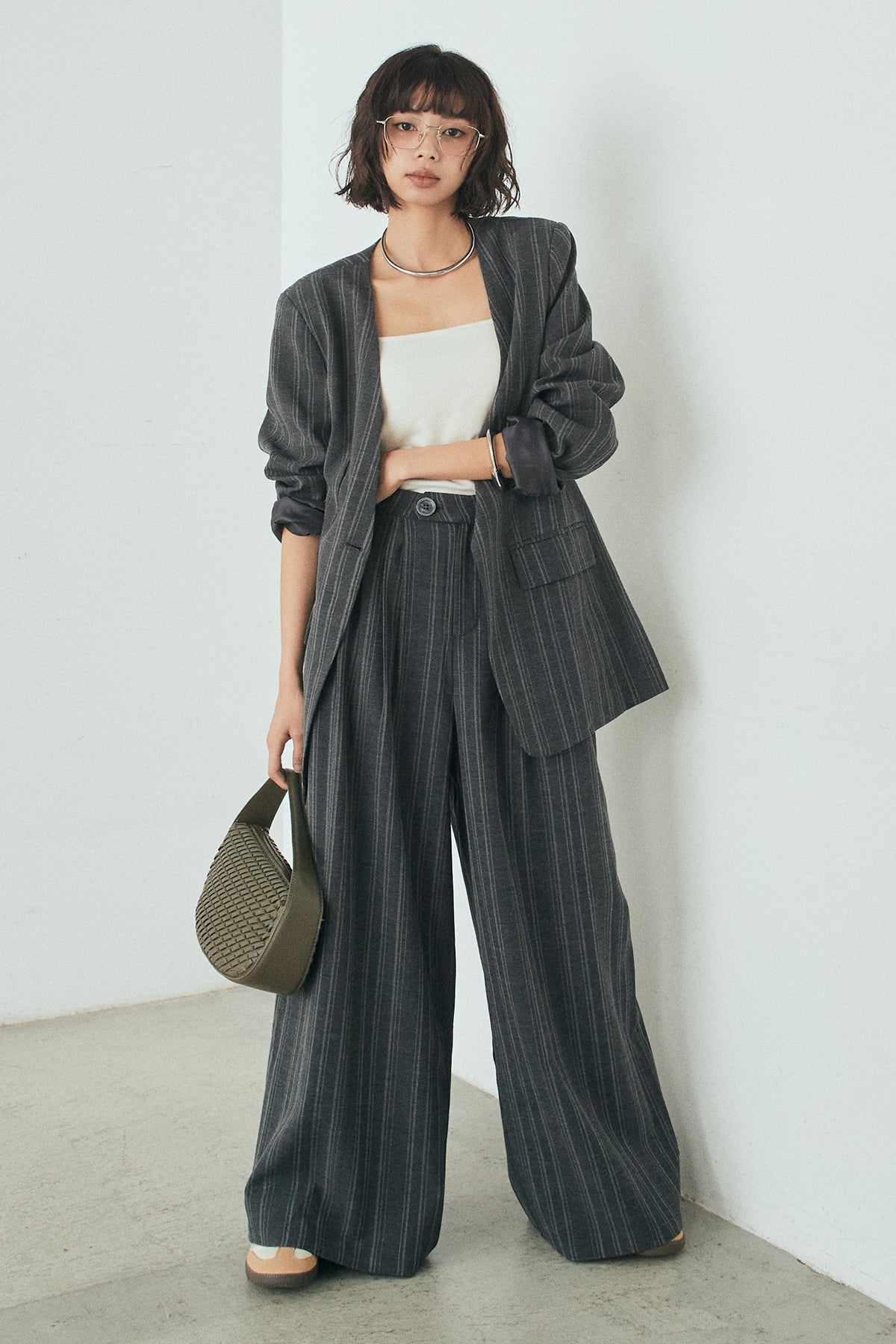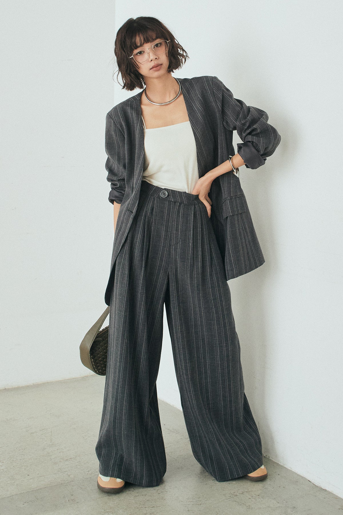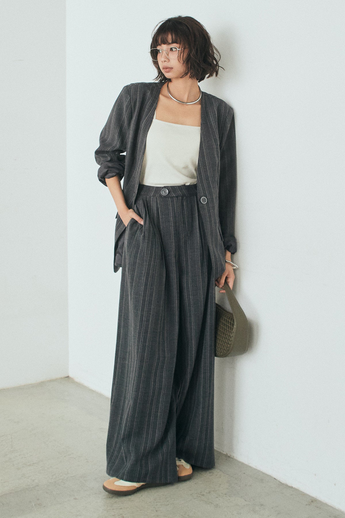 ピンストライプワイドスラックスの他のセットページはこちら