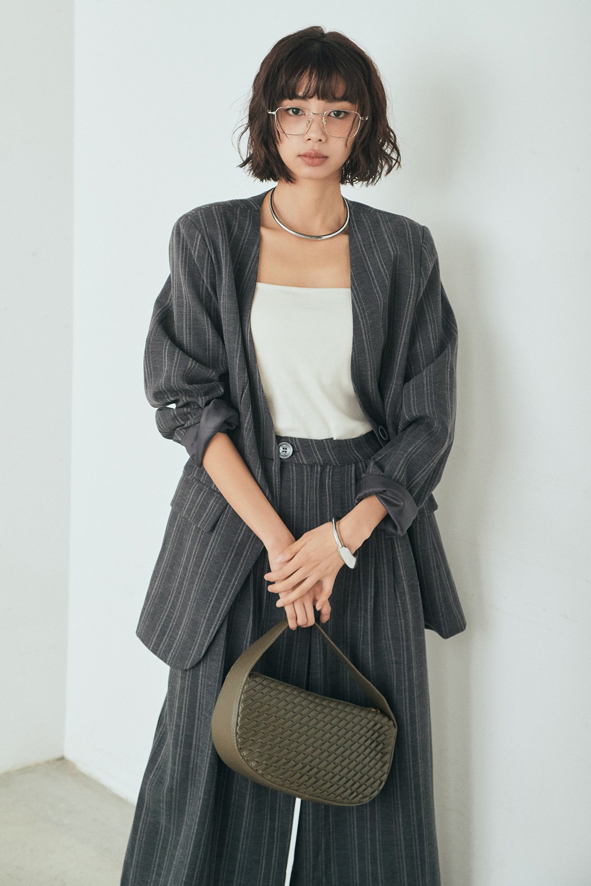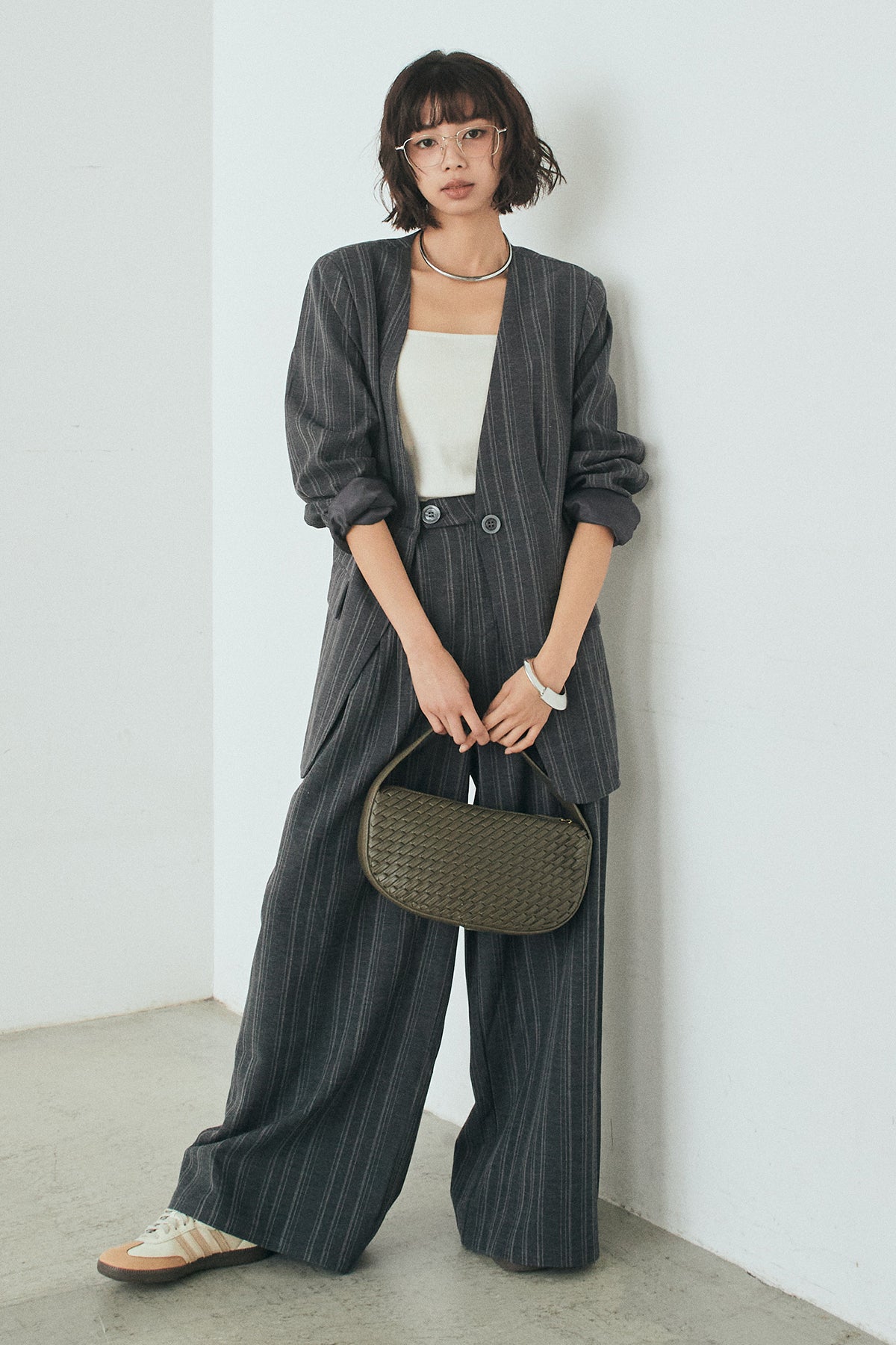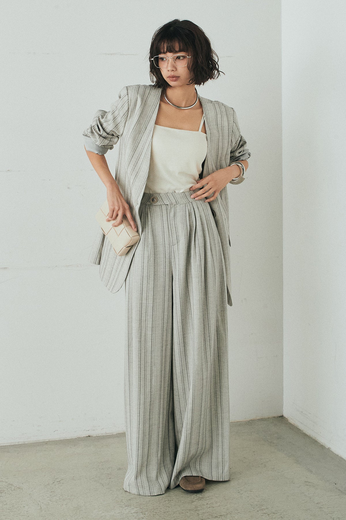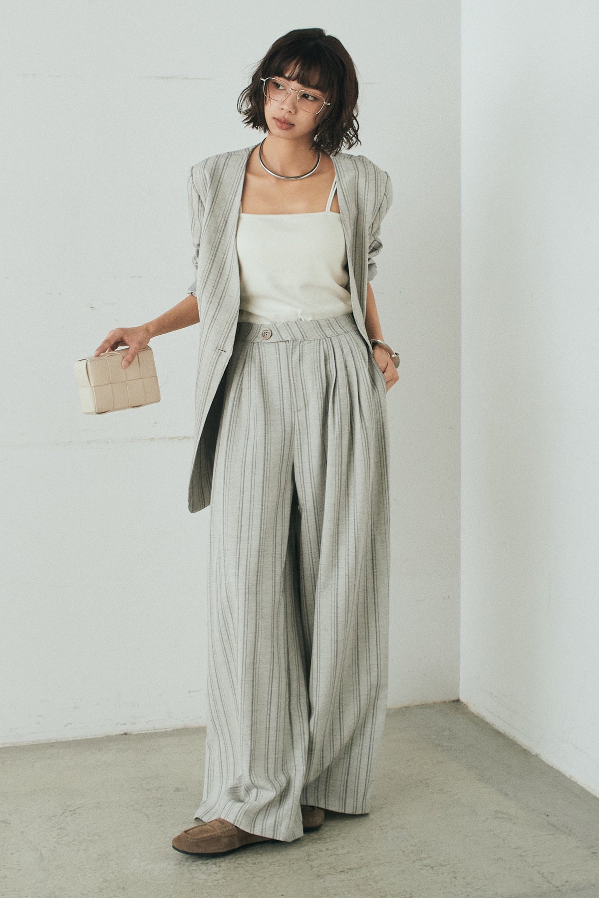 ピンストライプワイドスラックスの他のセットページはこちら