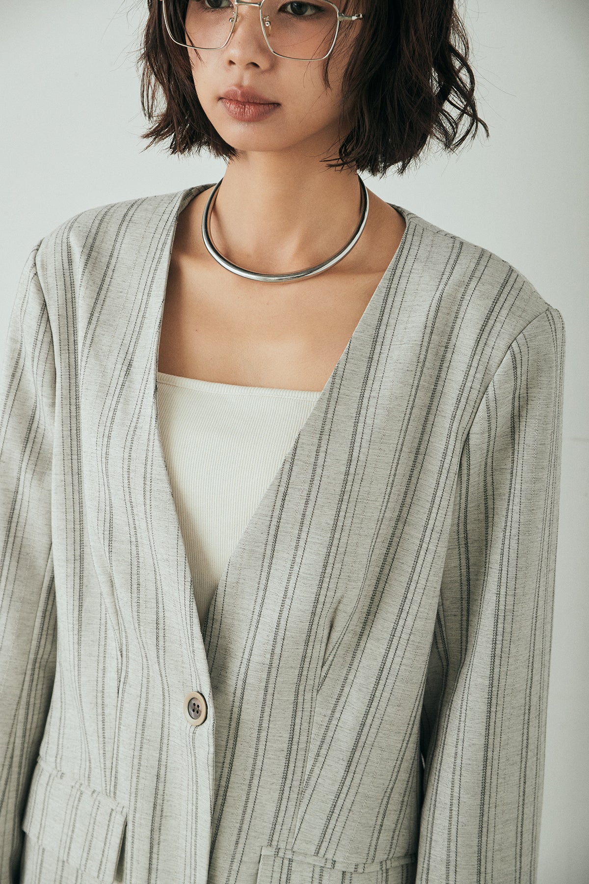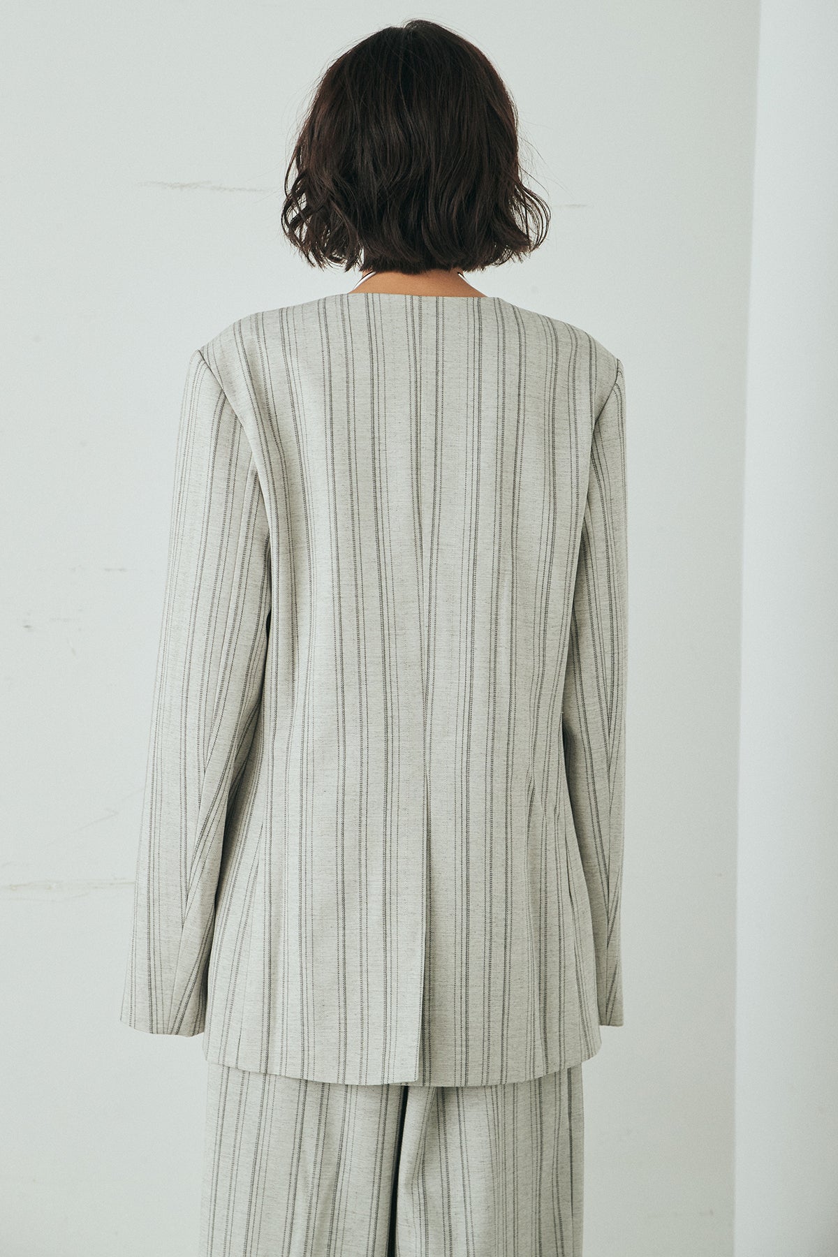 ノーカラーピンストライプジャケット