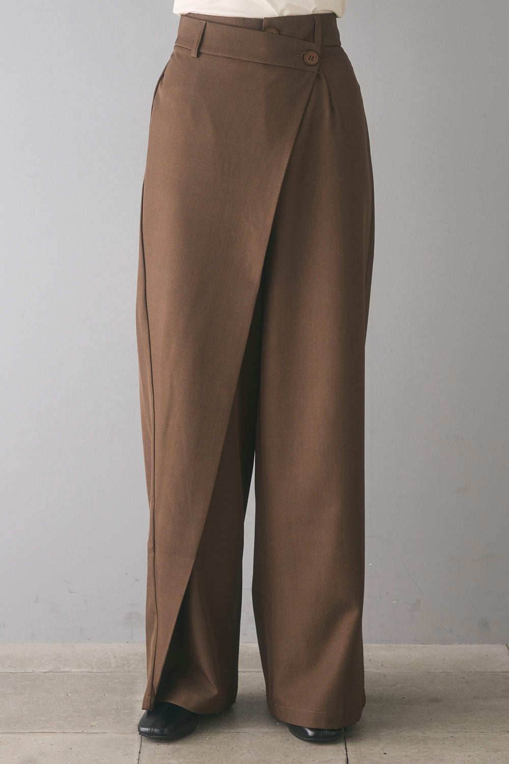 [SET]テープ刺繍ニットカーディガン+ウエスト切りっぱなしタックワイドパンツ(2set)