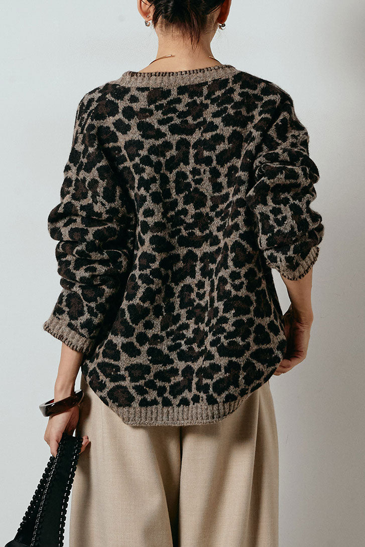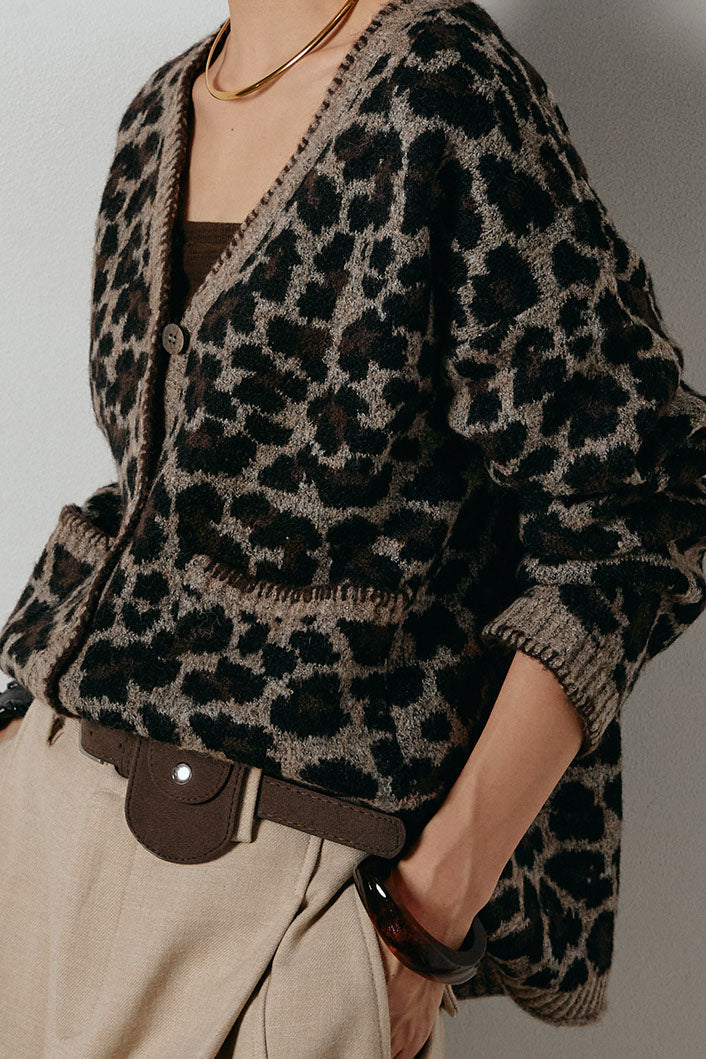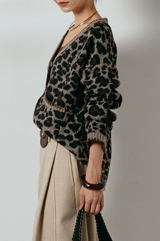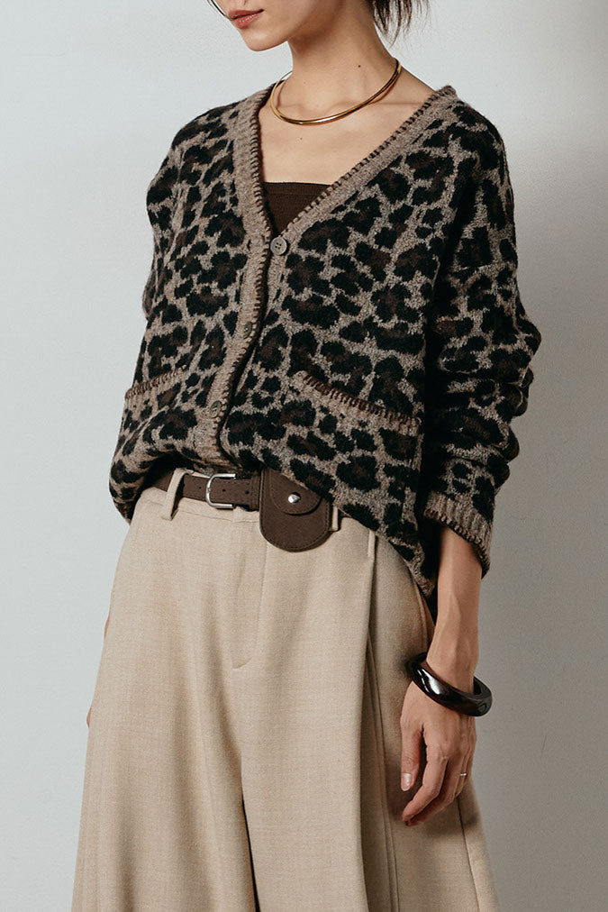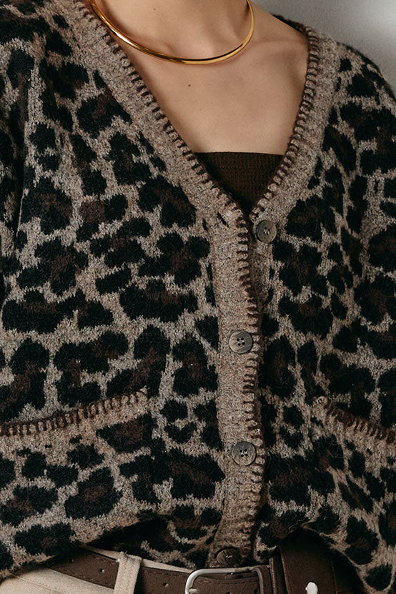 ◆ ステッチデザインレオパードニットカーディガン