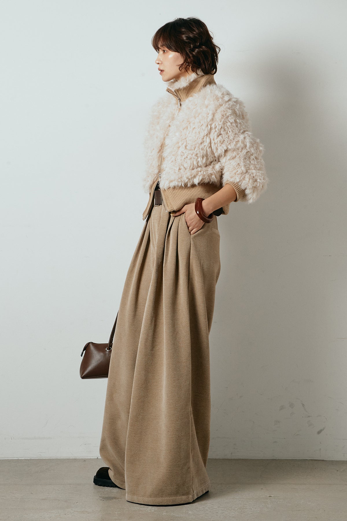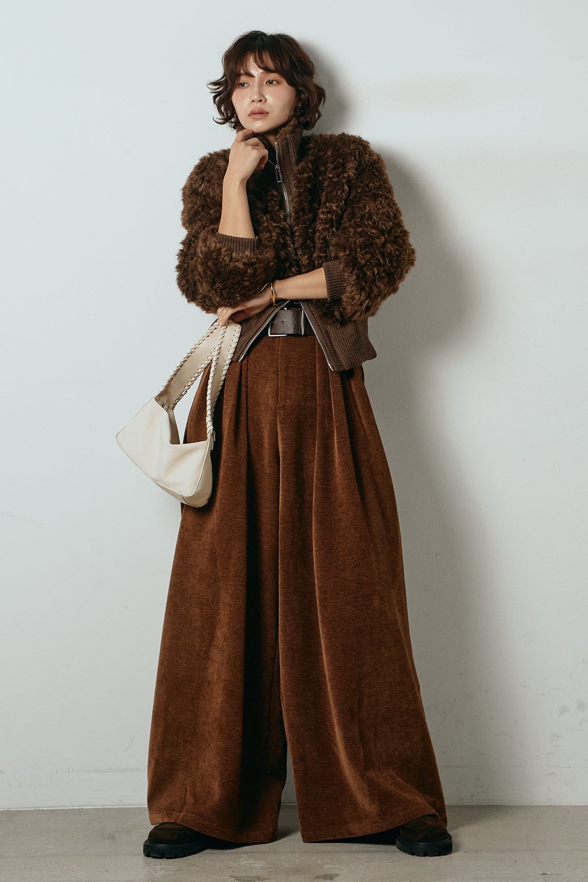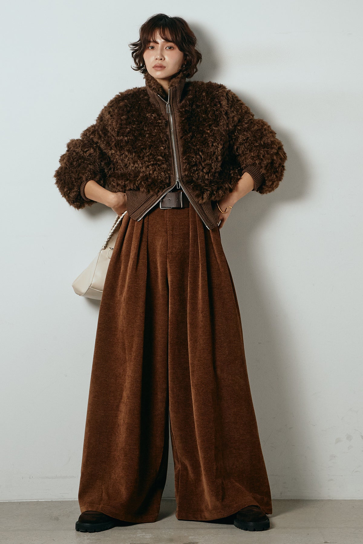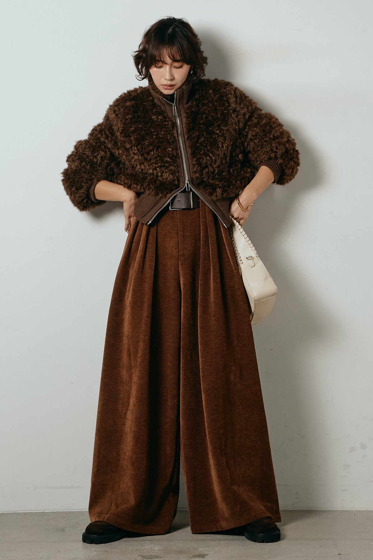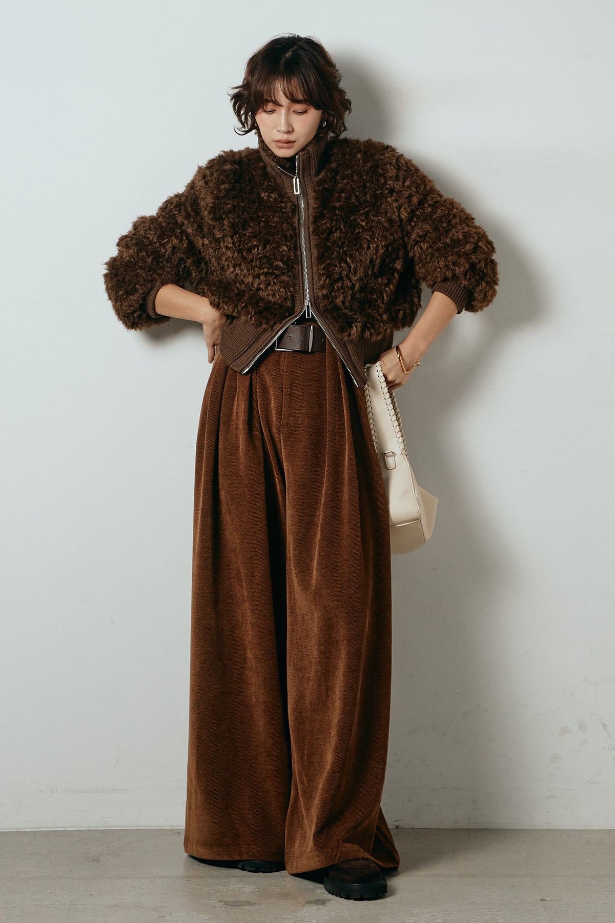 [SET]ハイネックショート丈ボアジップブルゾン+ベルトループコーデュロイワイドパンツ(2set)