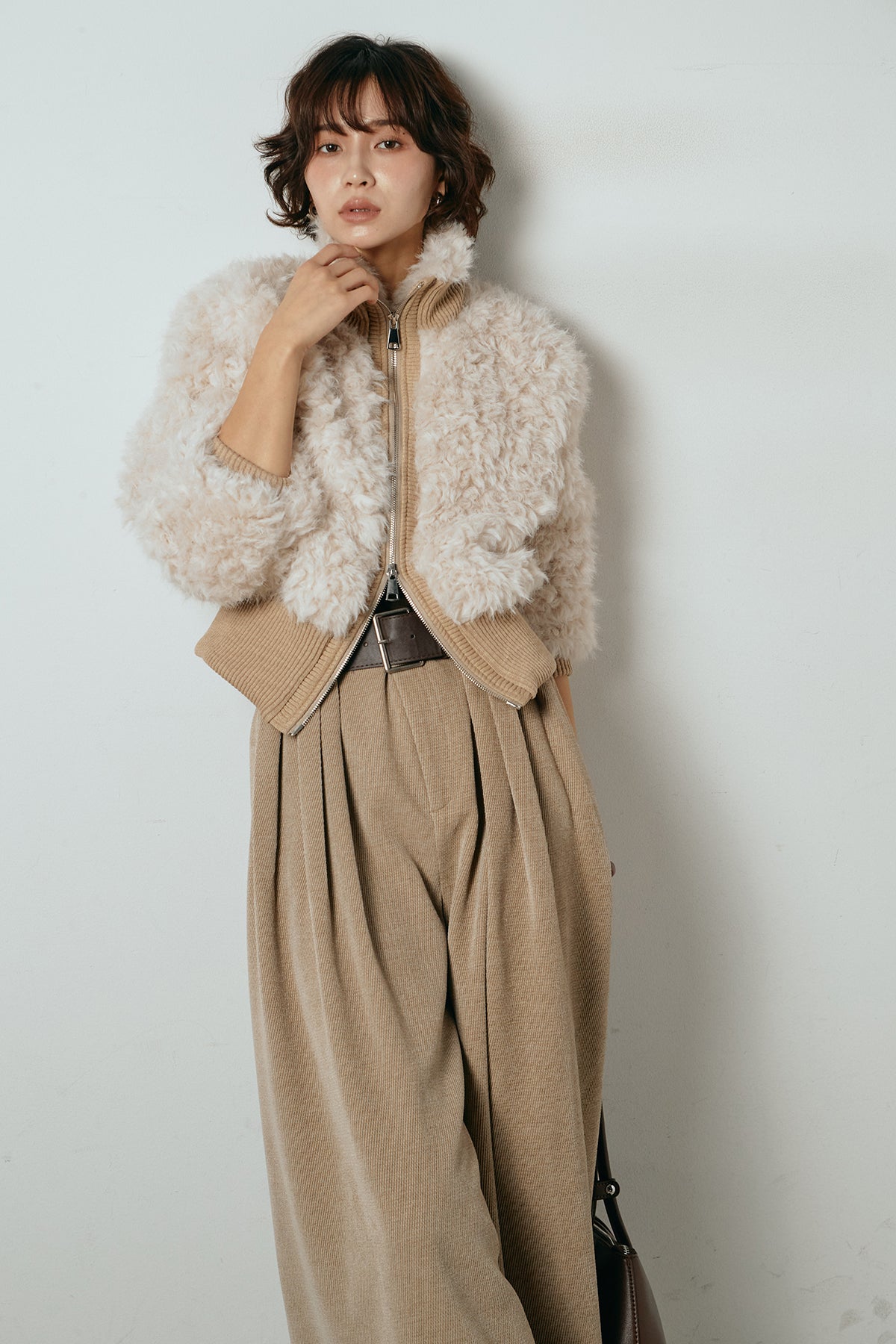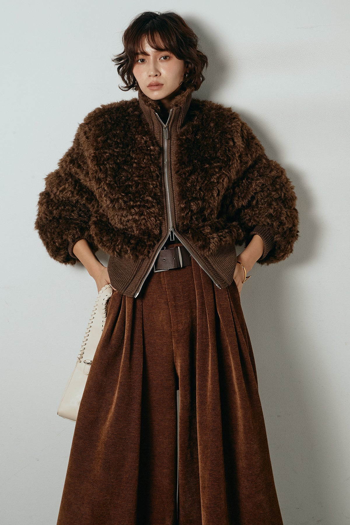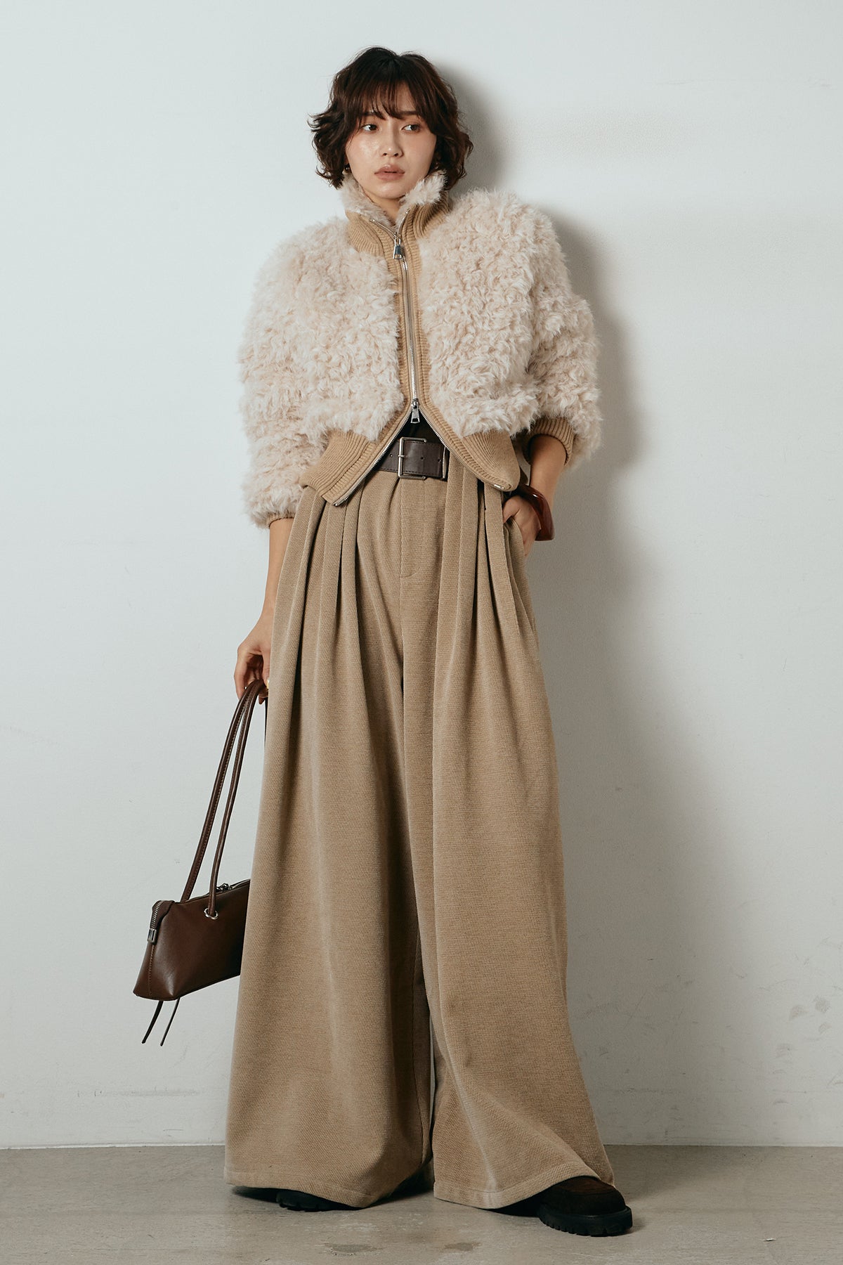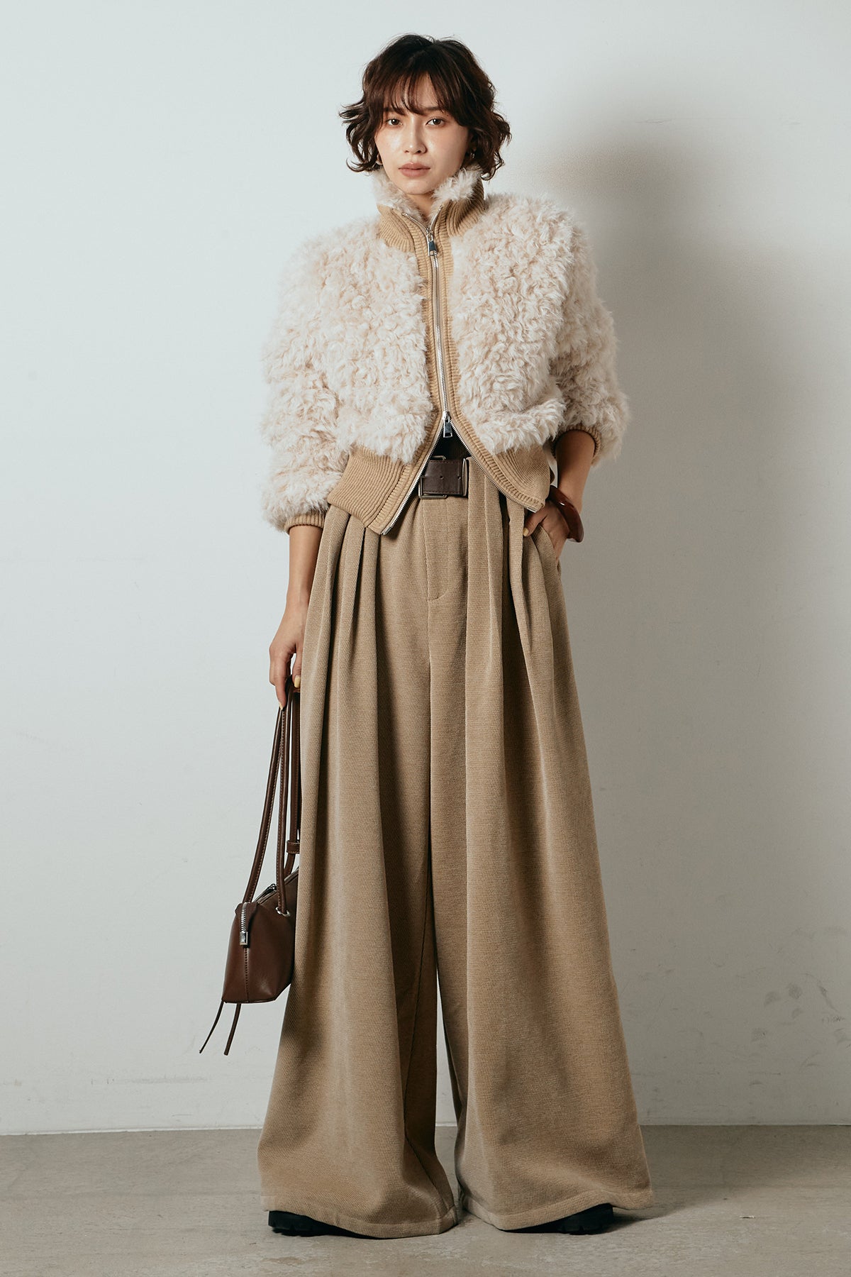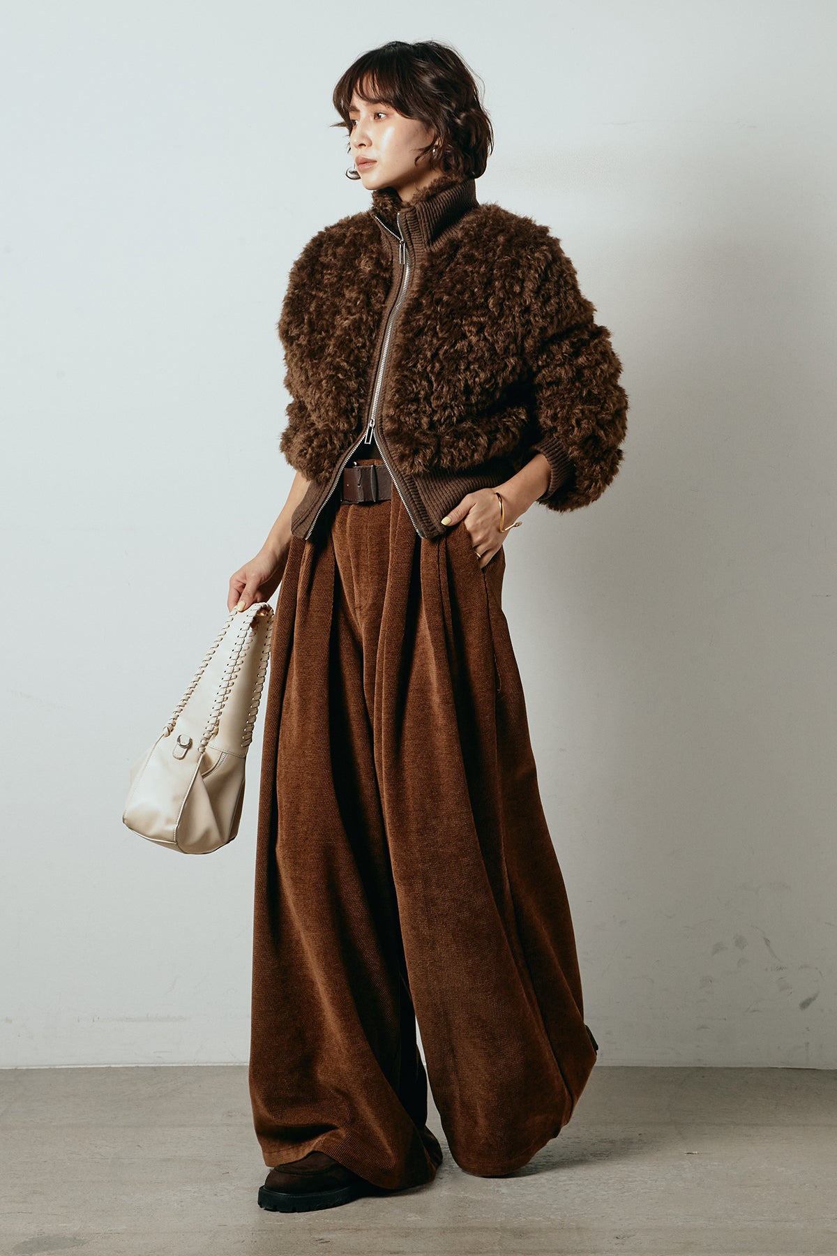 [SET]ハイネックショート丈ボアジップブルゾン+ベルトループコーデュロイワイドパンツ(2set)