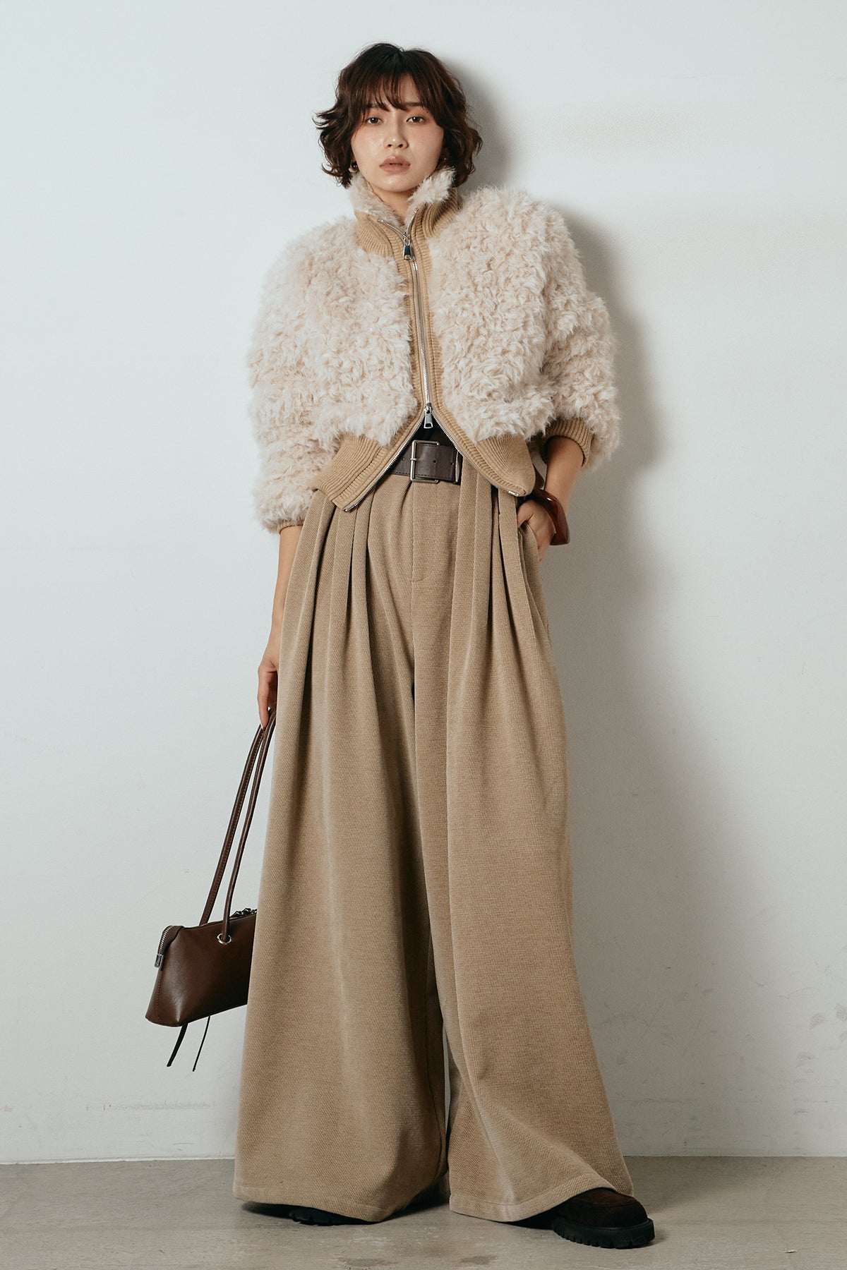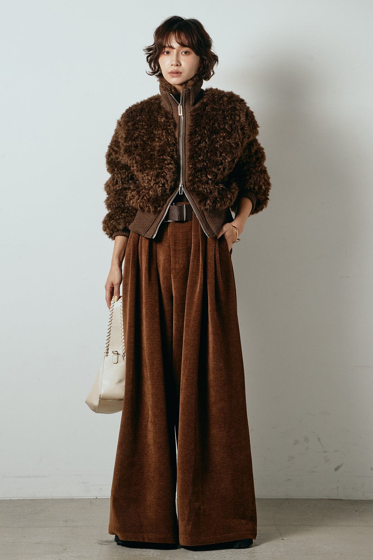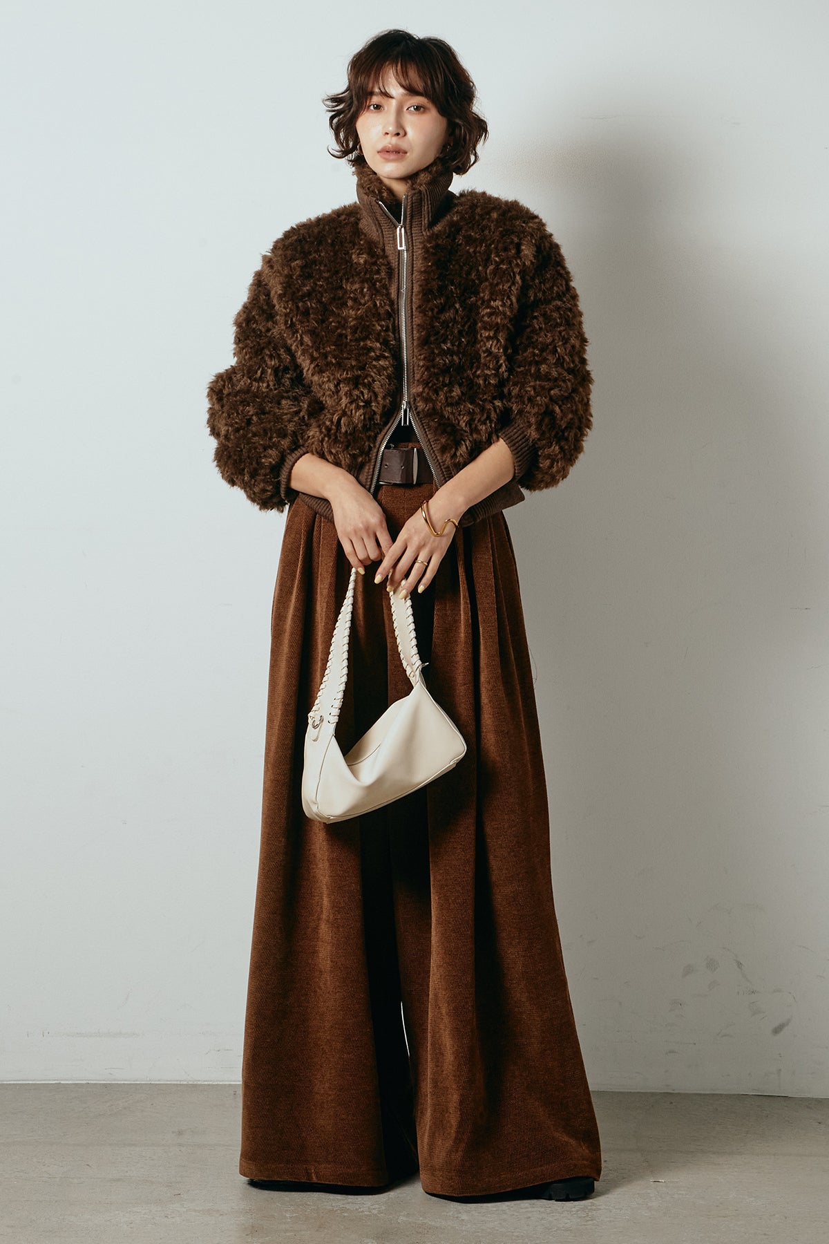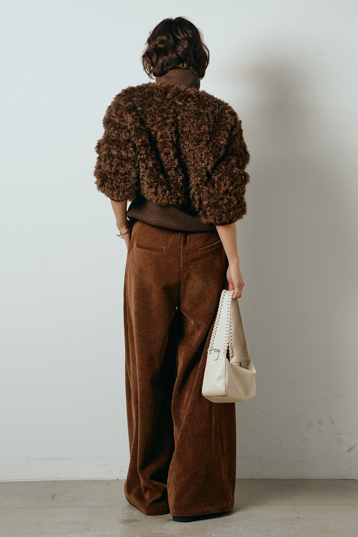 [SET]ハイネックショート丈ボアジップブルゾン+ベルトループコーデュロイワイドパンツ(2set)