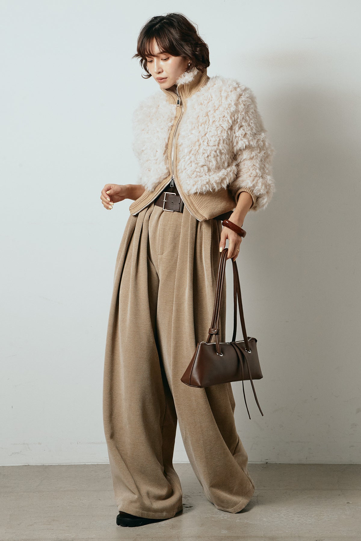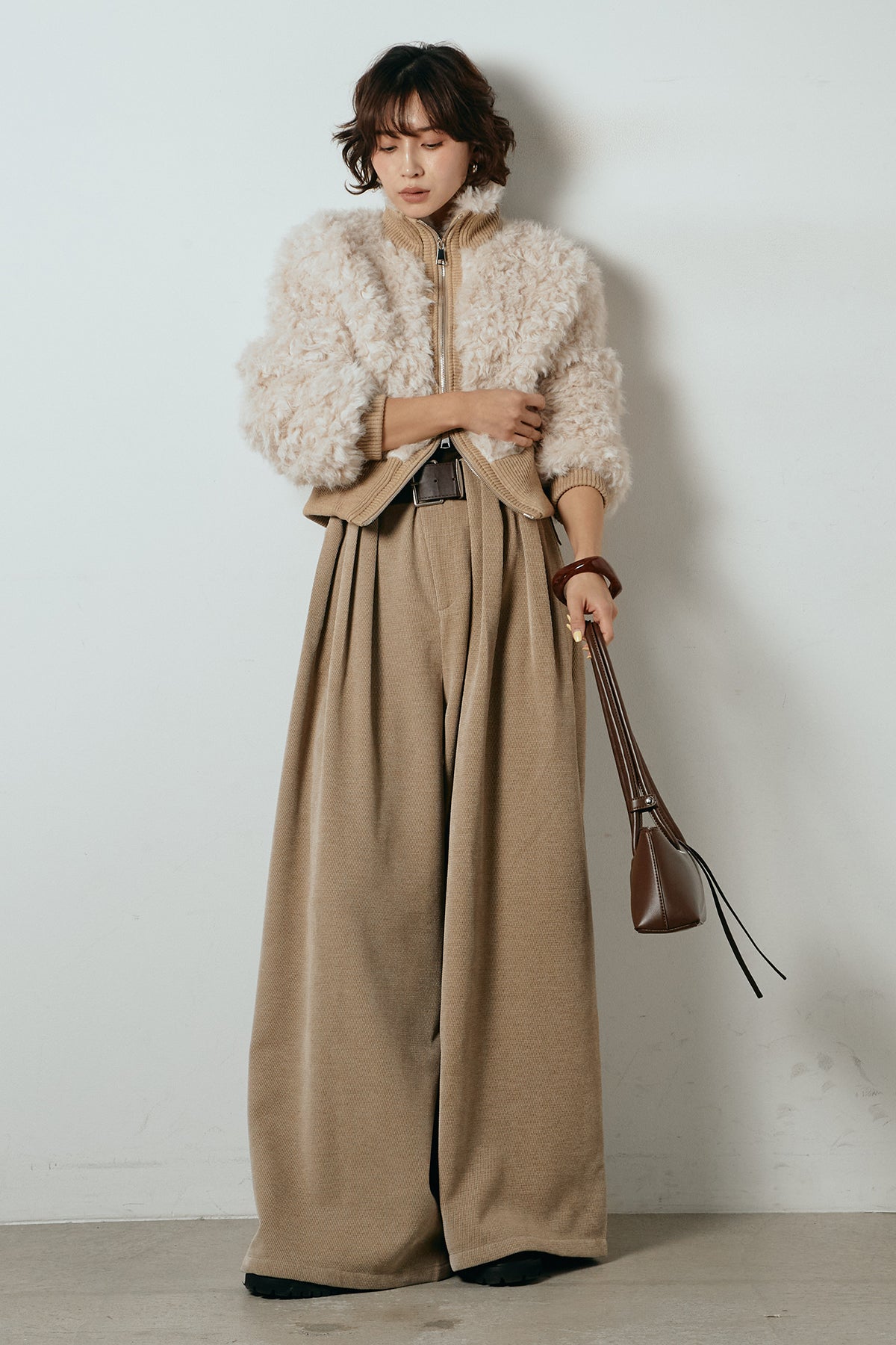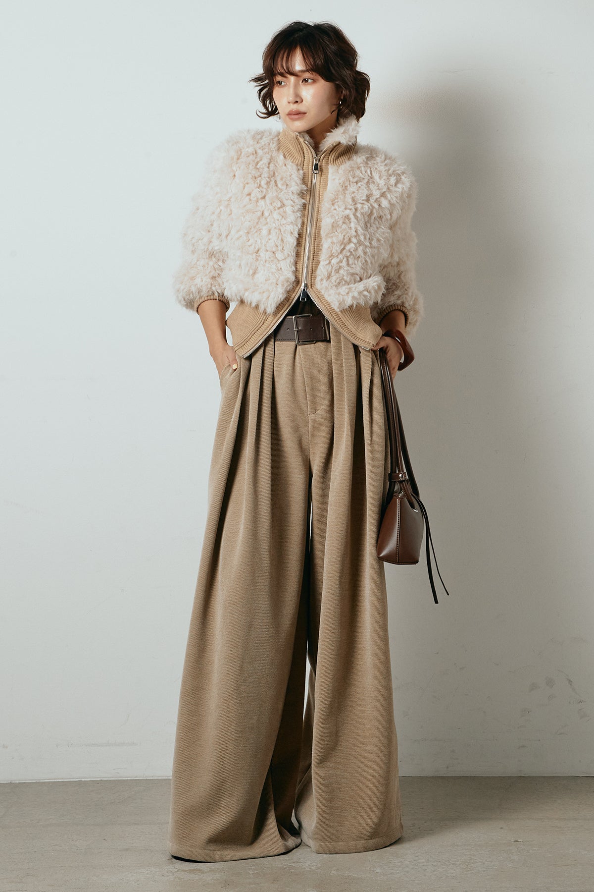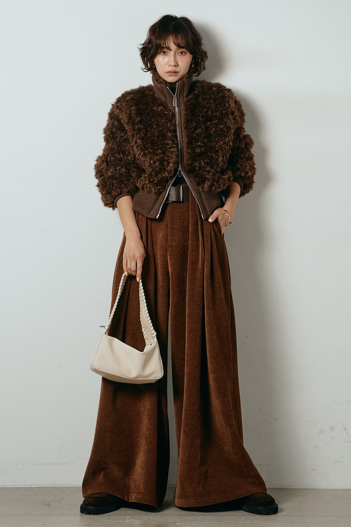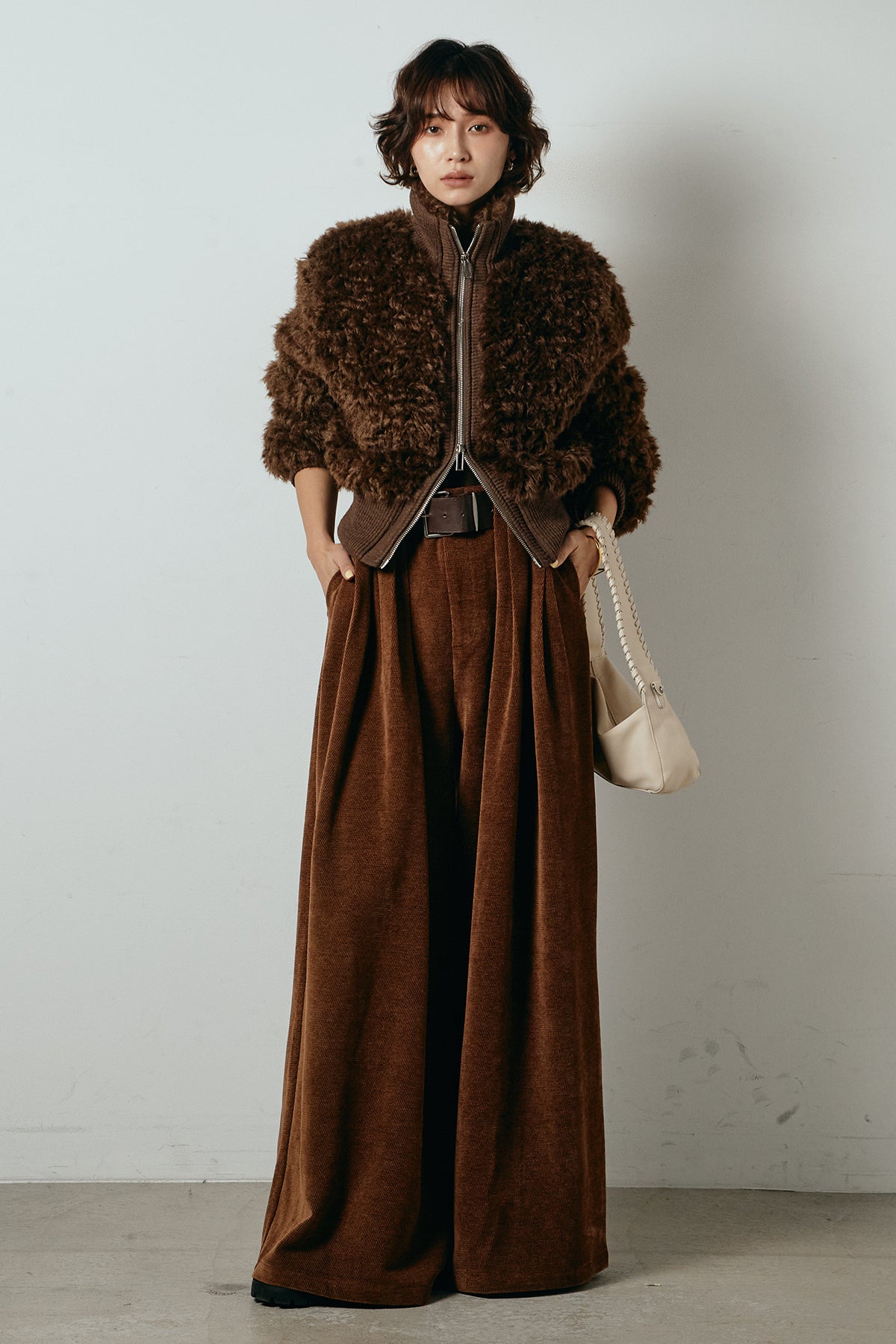 [SET]ハイネックショート丈ボアジップブルゾン+ベルトループコーデュロイワイドパンツ(2set)