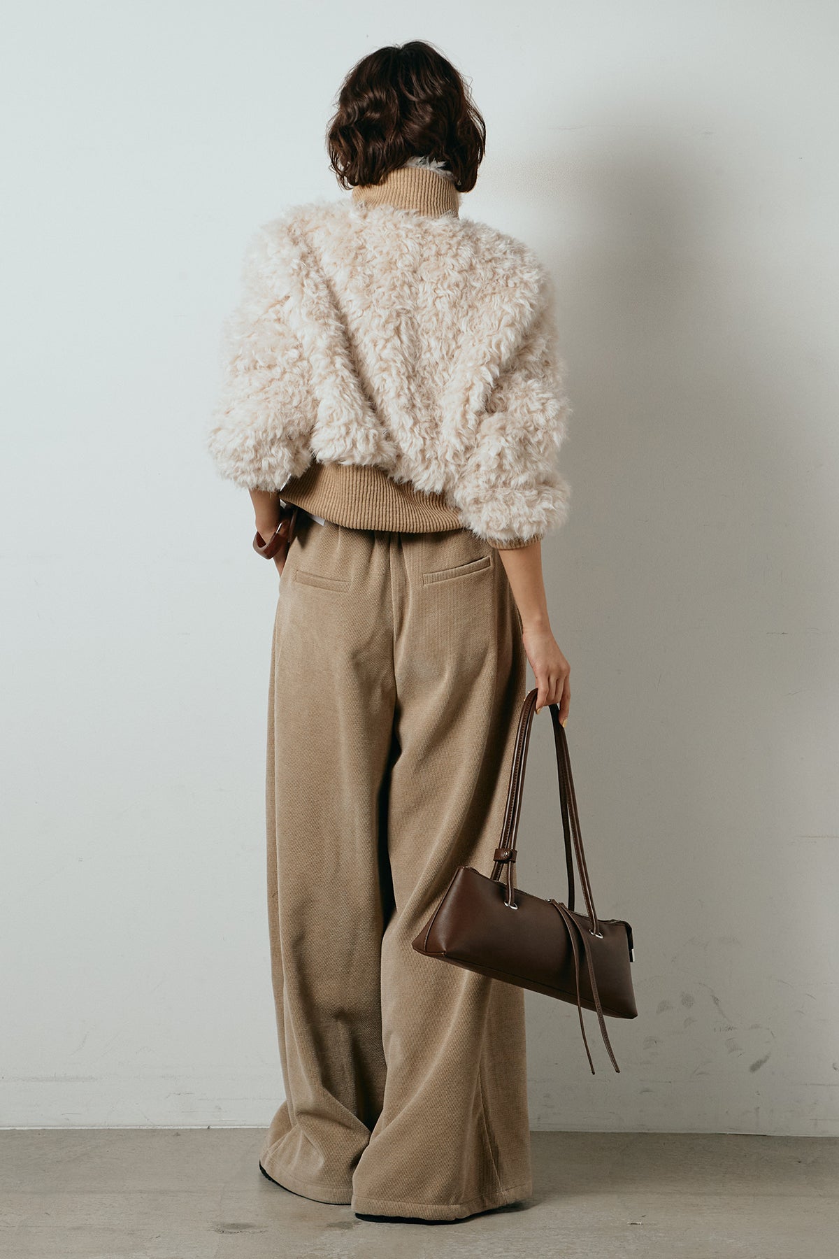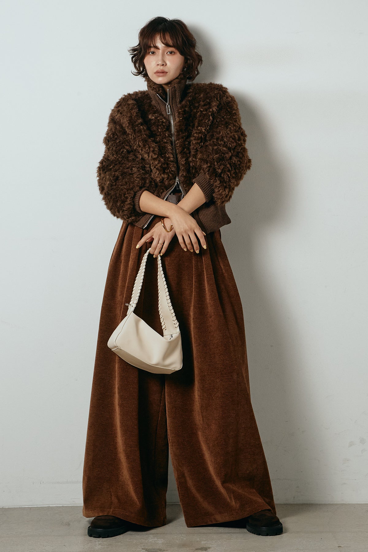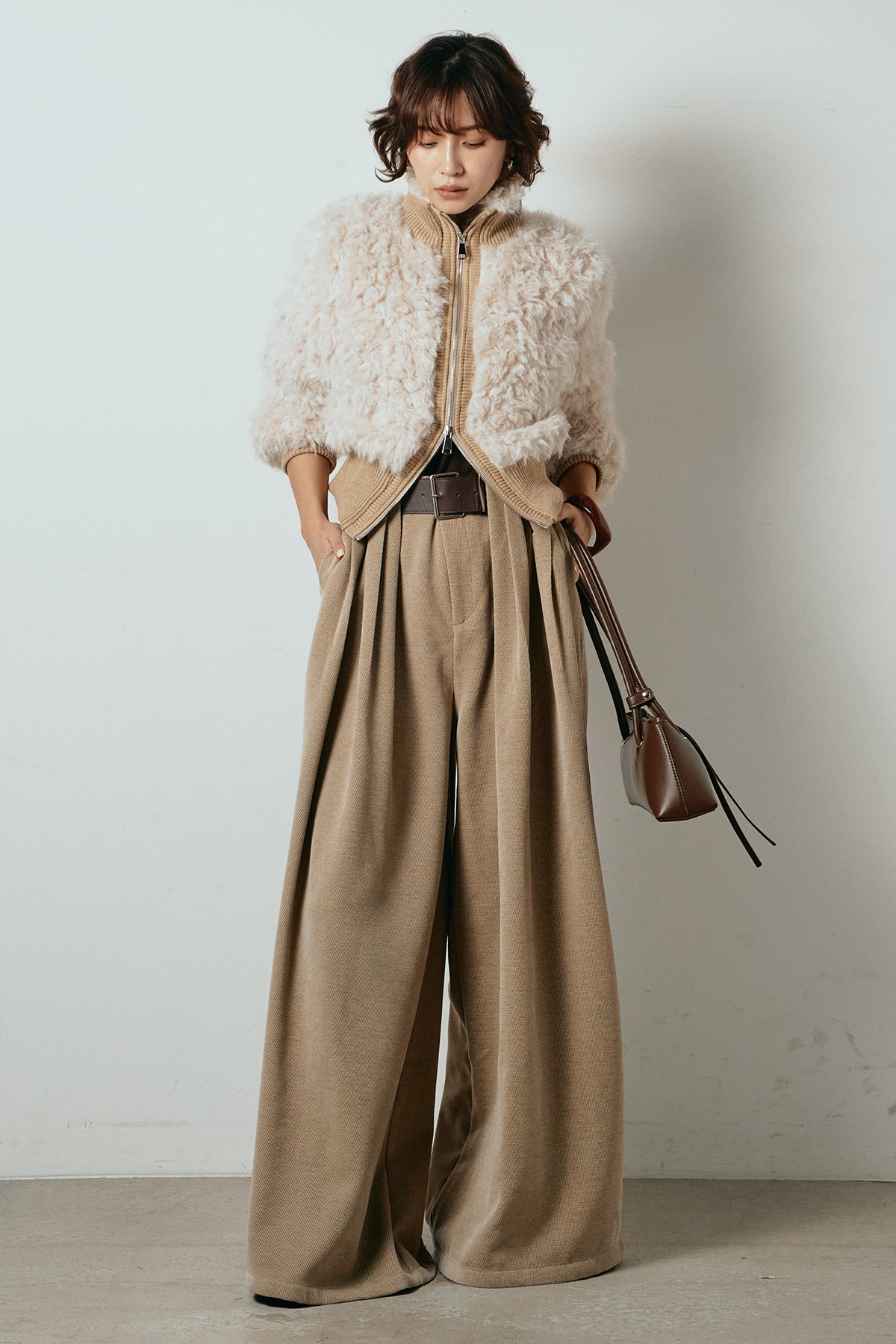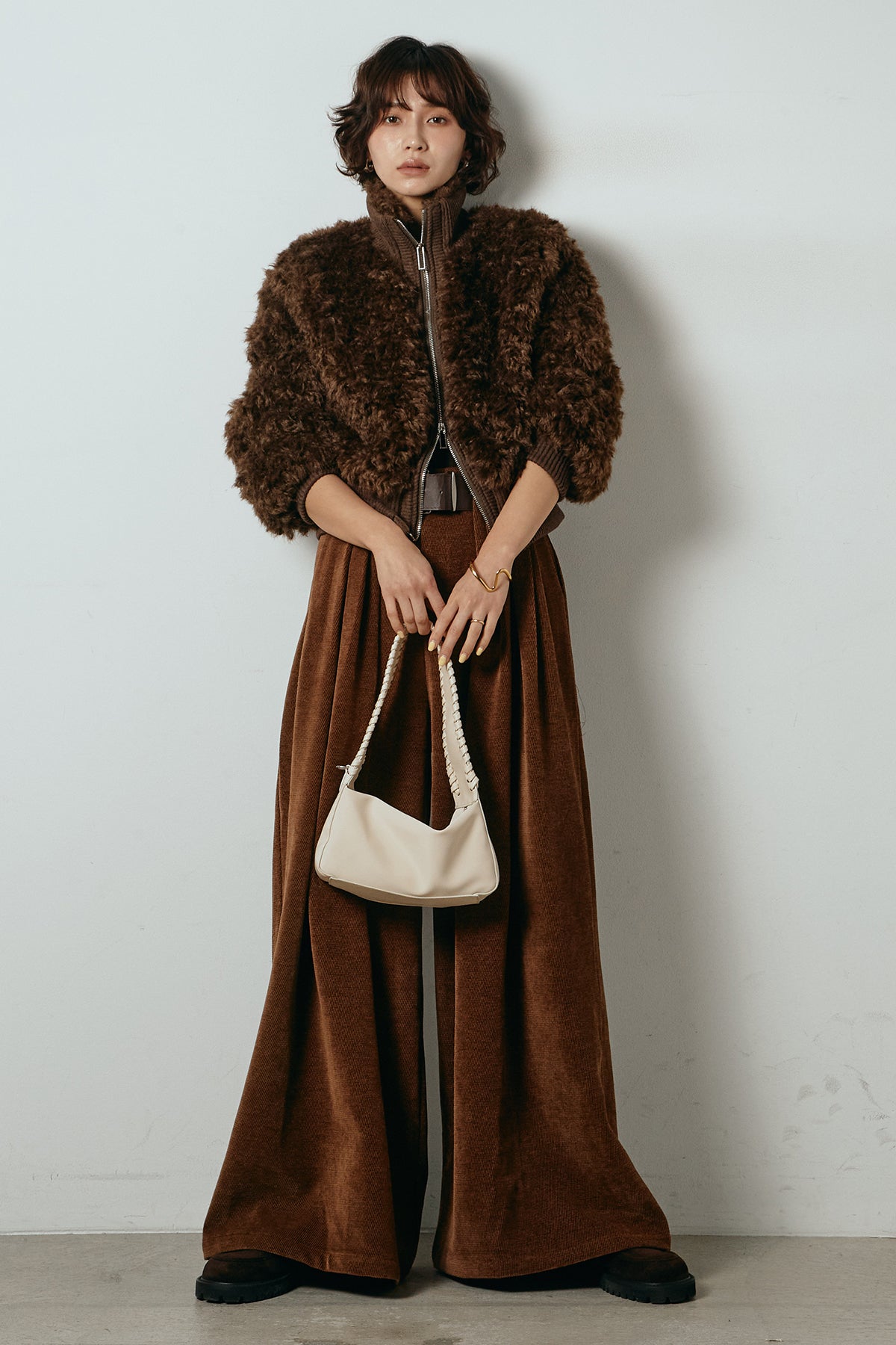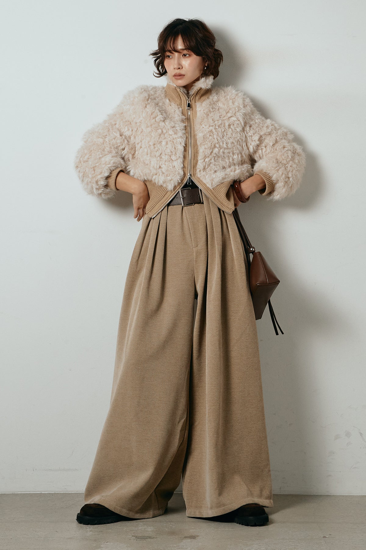[SET]ハイネックショート丈ボアジップブルゾン+ベルトループコーデュロイワイドパンツ(2set)
