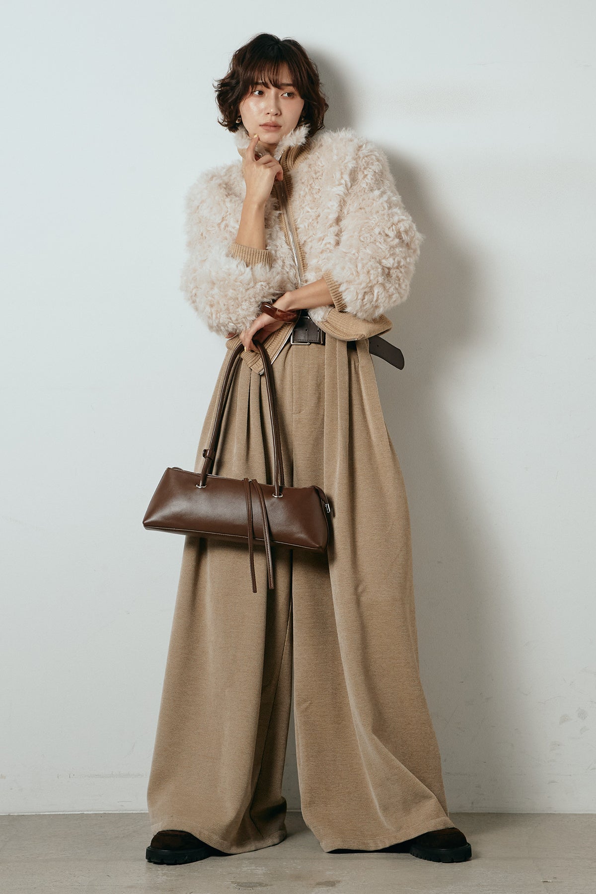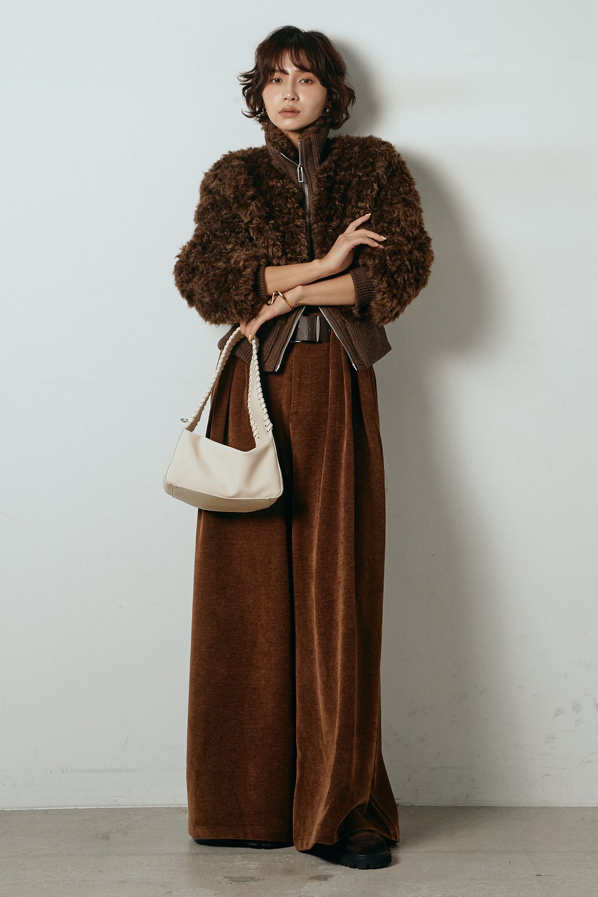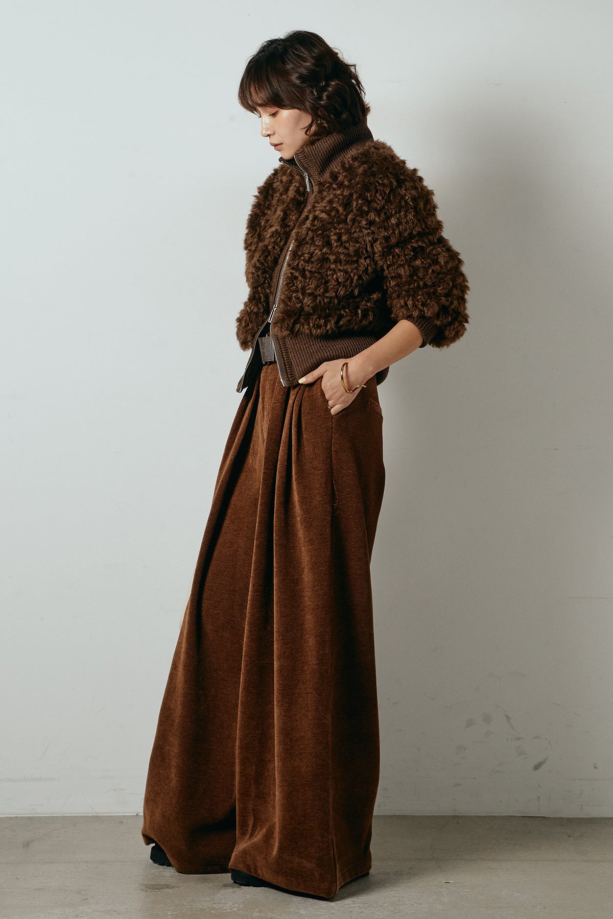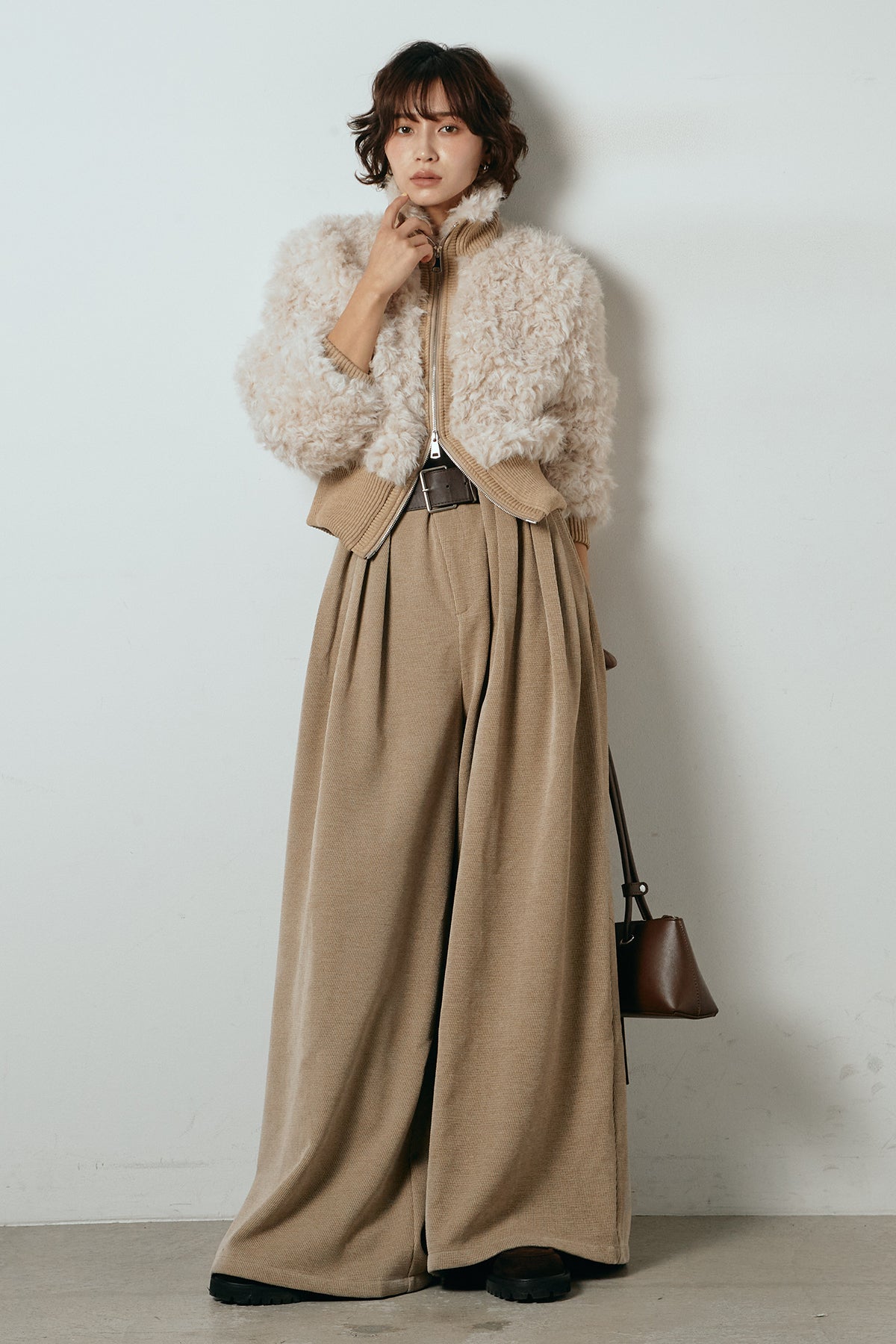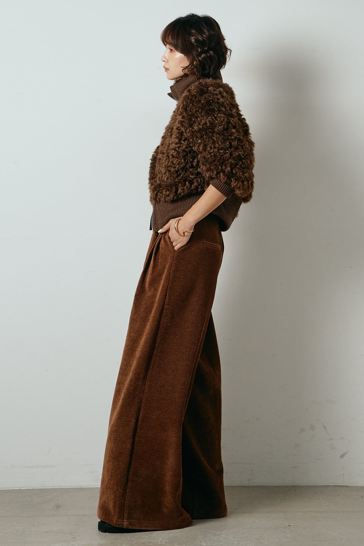 [SET]ハイネックショート丈ボアジップブルゾン+ベルトループコーデュロイワイドパンツ(2set)