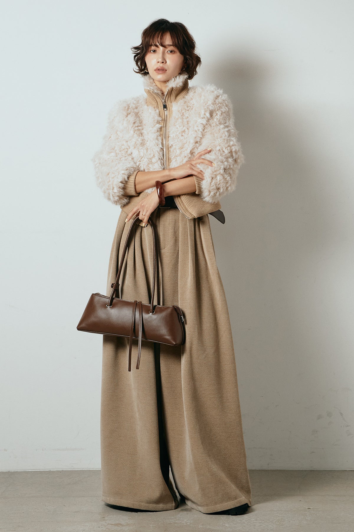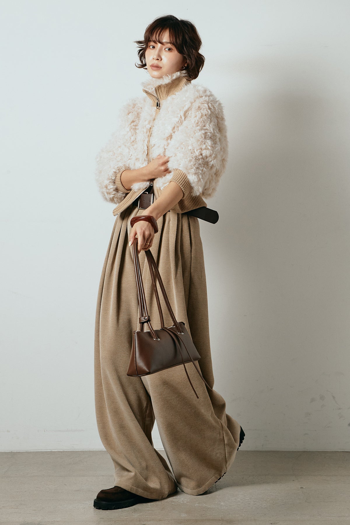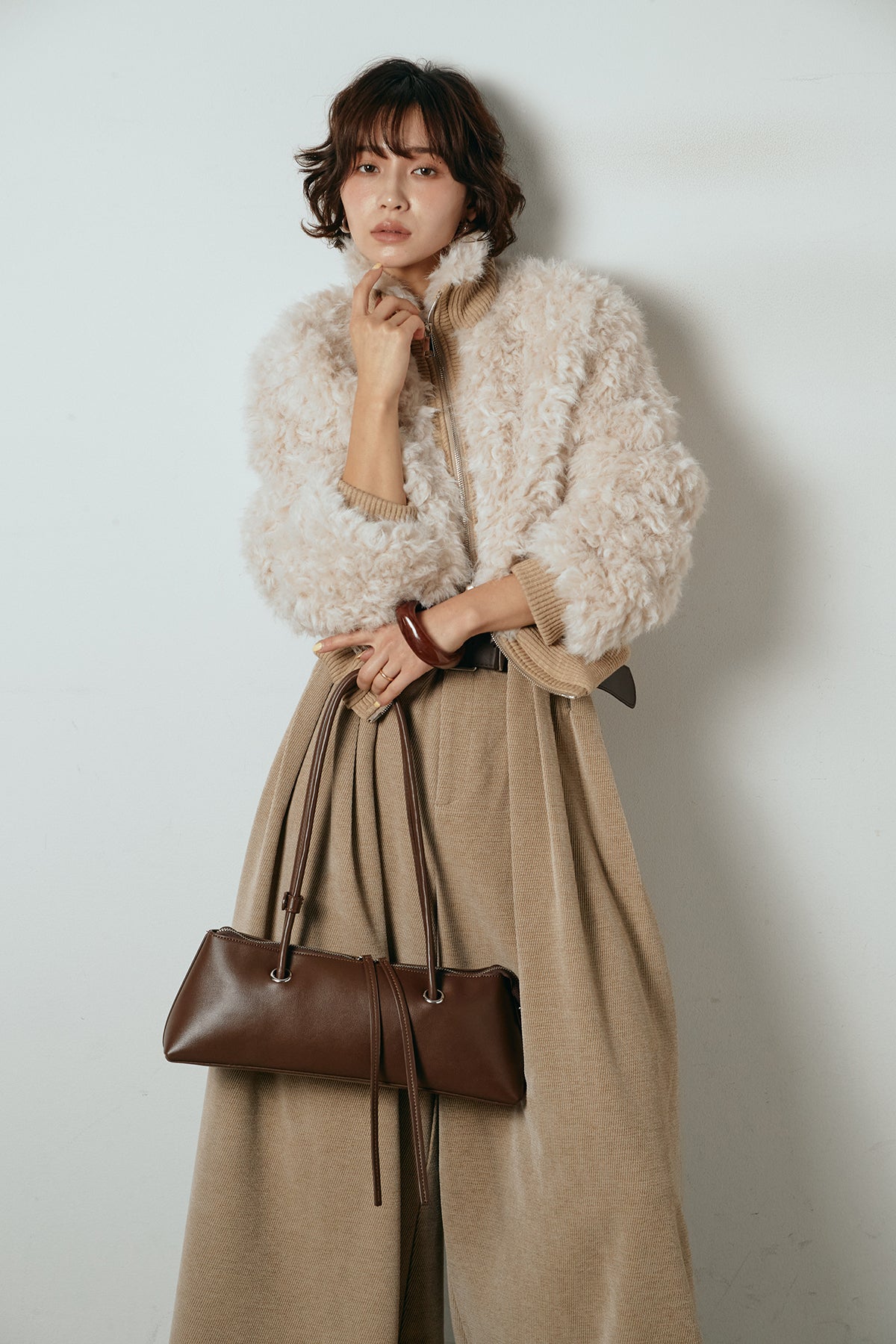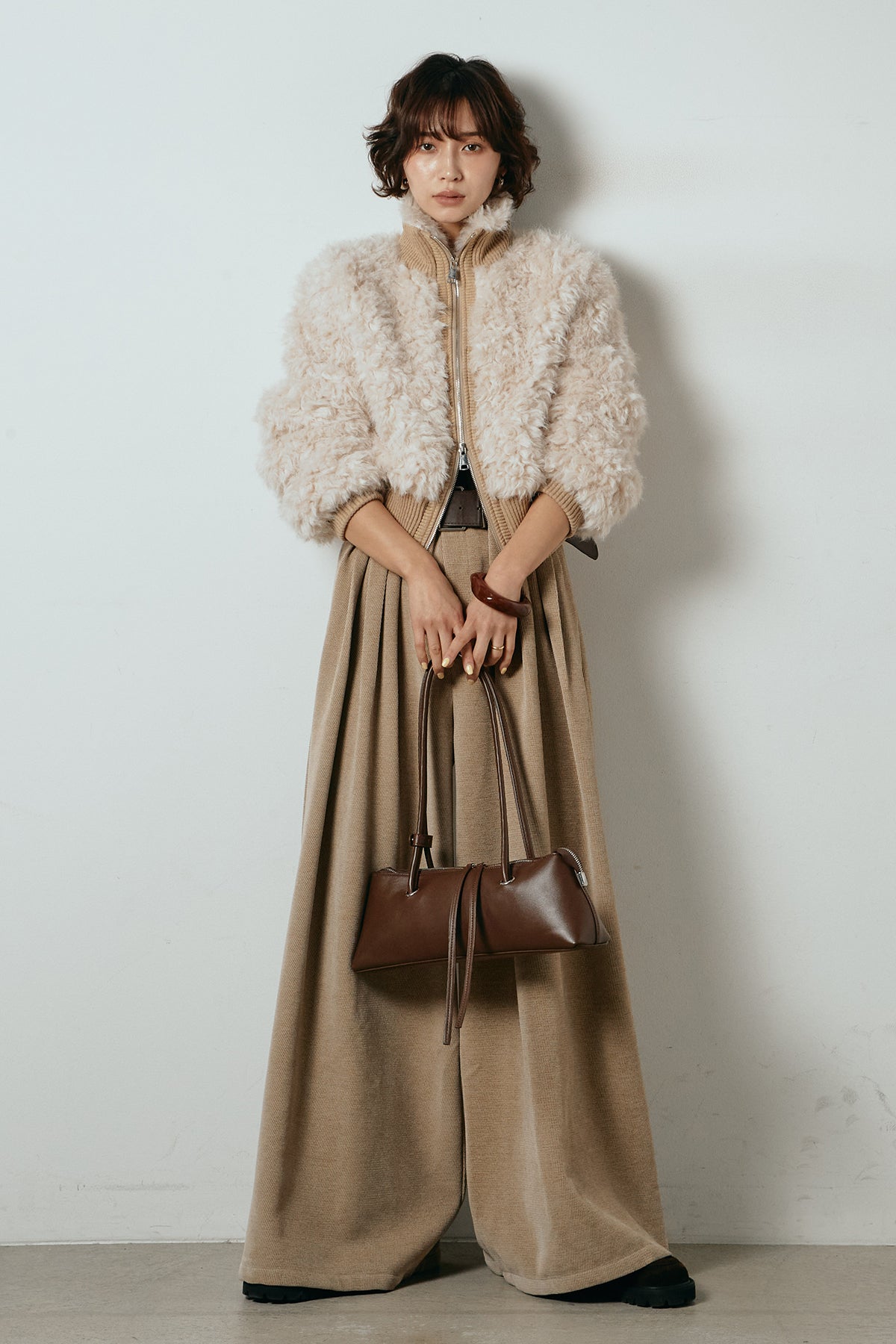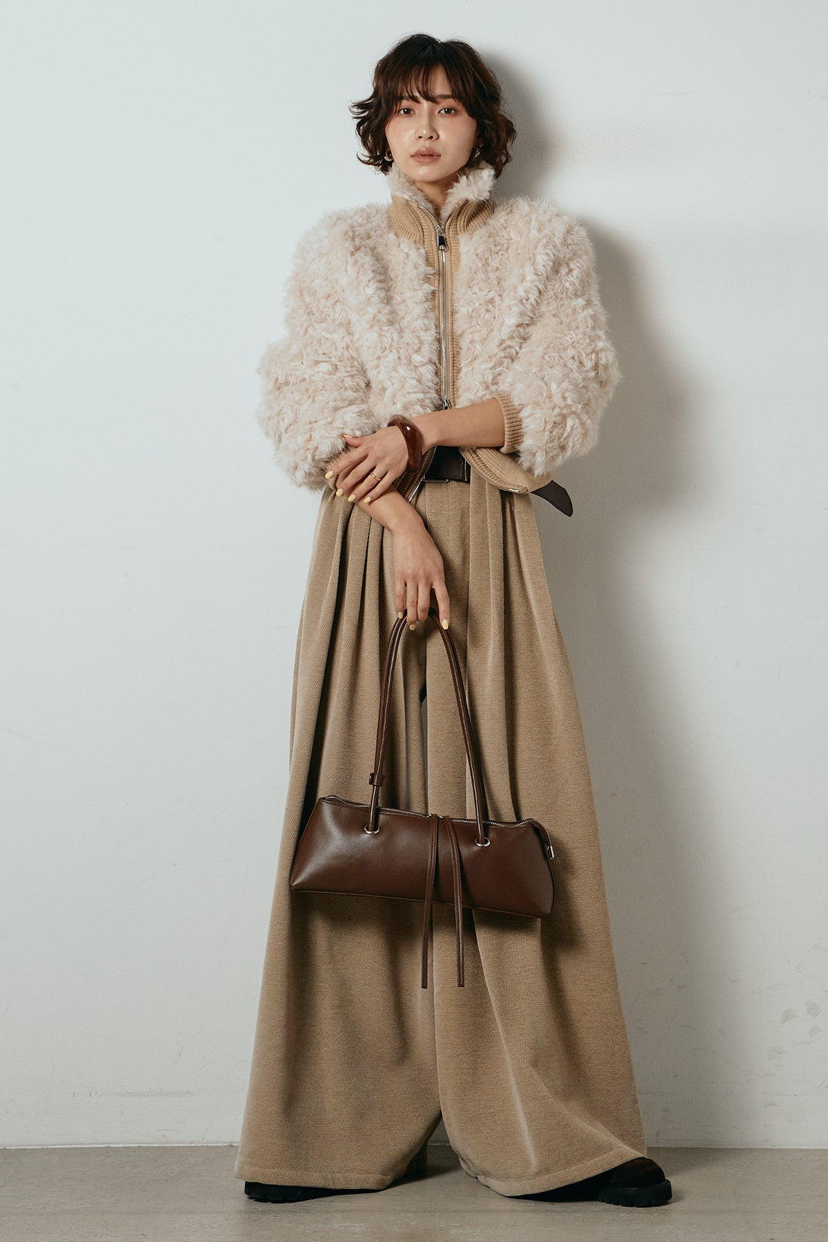 ふんわりとしたボア素材が存在感を放つ、ハイネックデザインのショート丈ブルゾン。首元まで包み込むハイネックとジップ仕様で、暖かさとすっきり感を両立しています。コンパクトな丈感がバランスを取りやすく、ワイドボトムやスカートとも好相性。羽織るだけで季節感のあるスタイリングが完成する、主役級の一枚です。