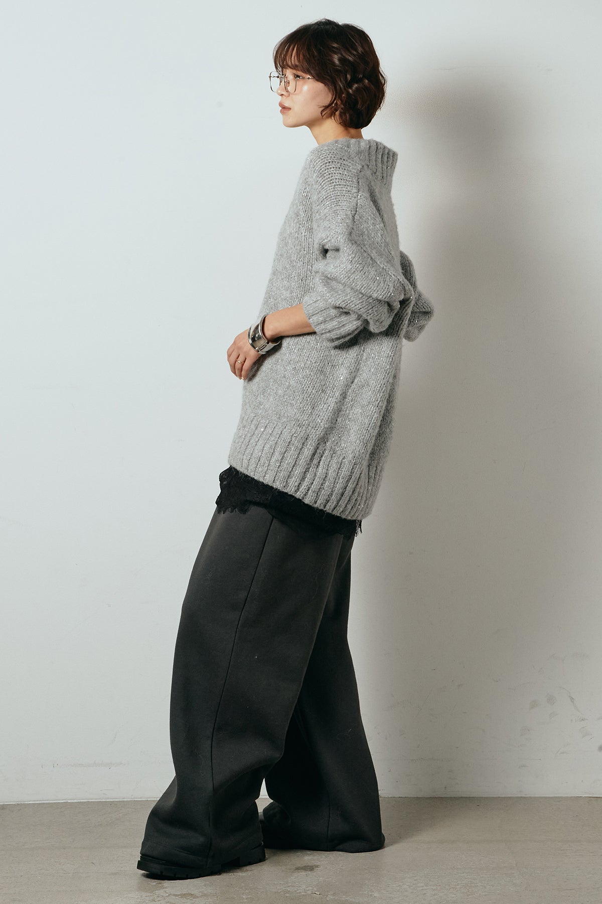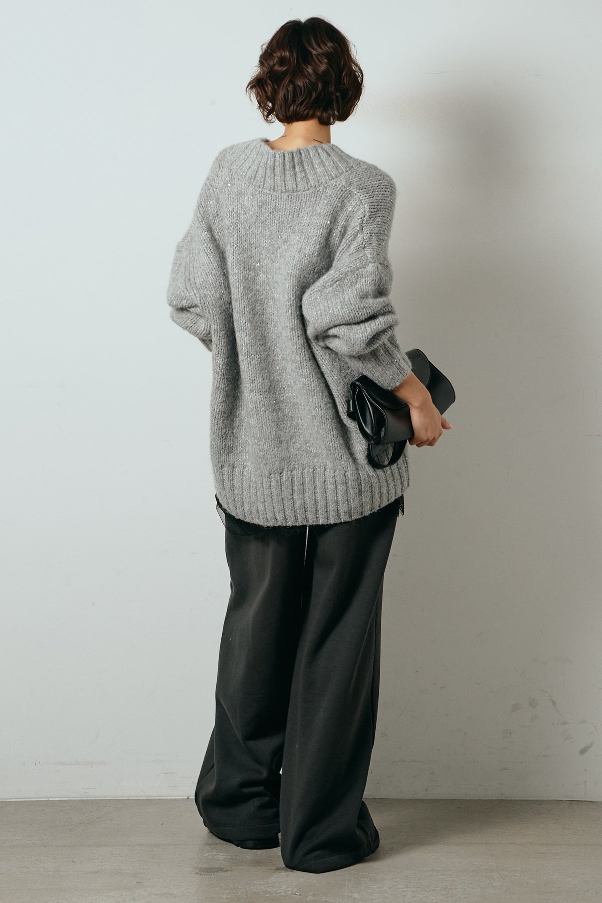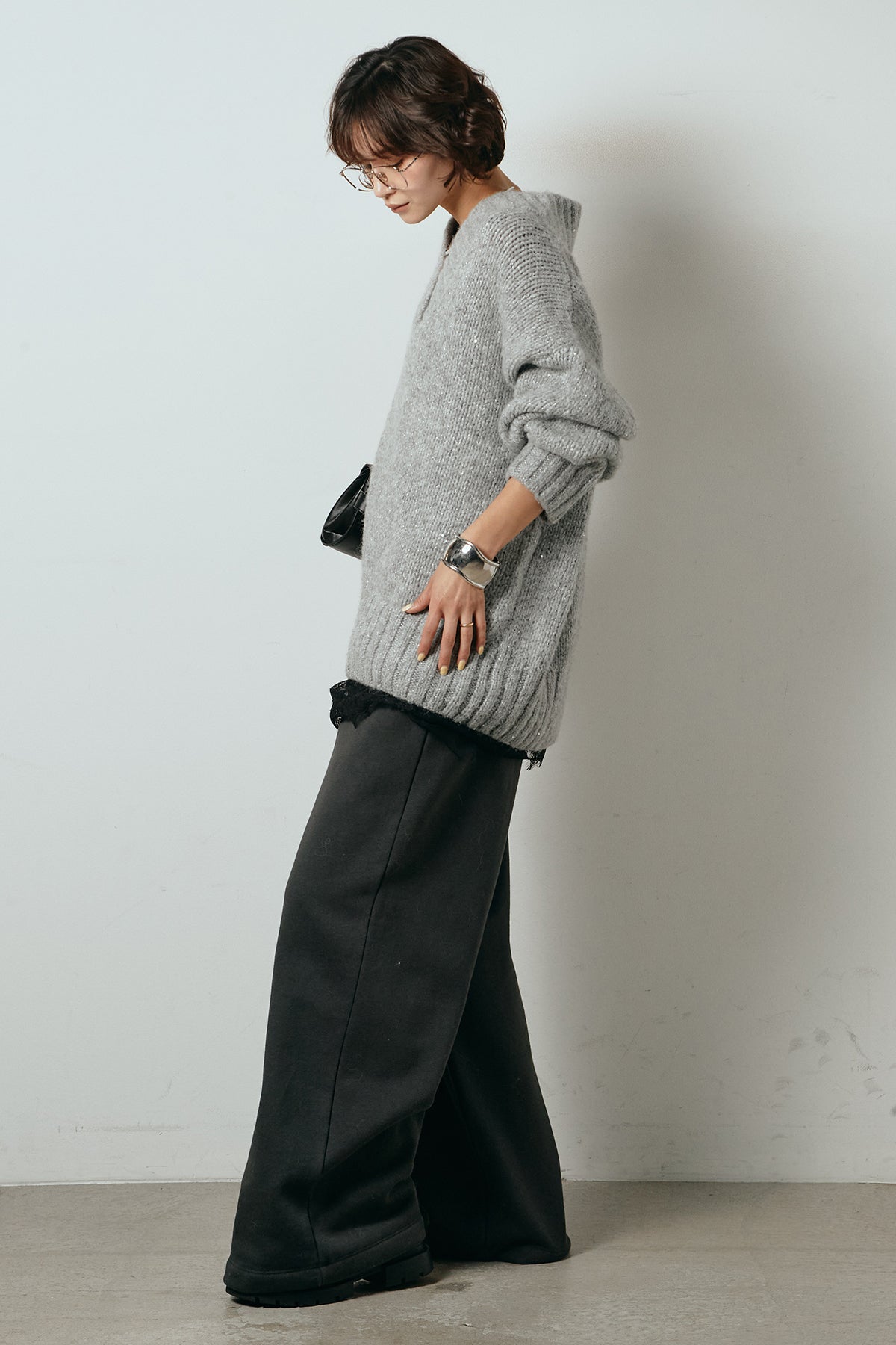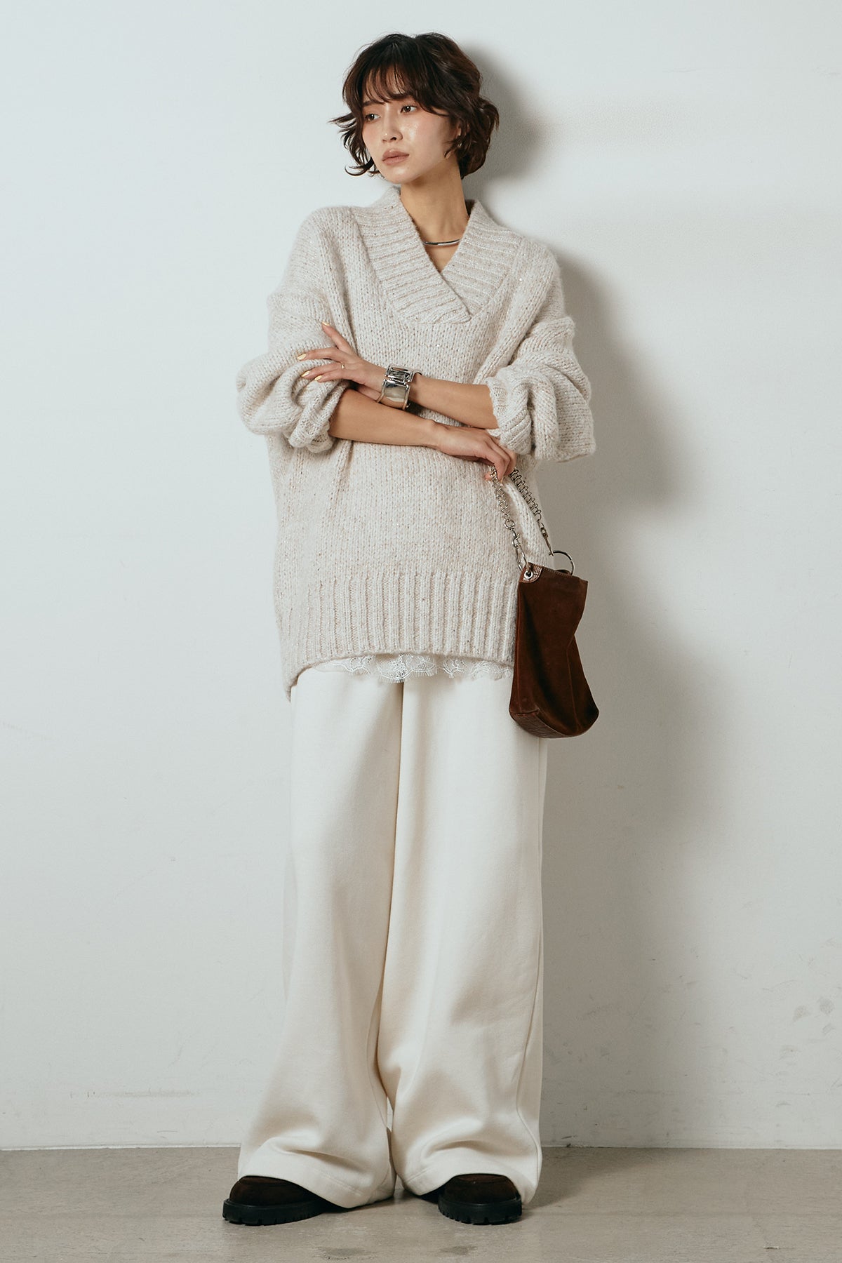 [SET]Vネックラメニットトップス+裏起毛スウェットワイドパンツ(2set)