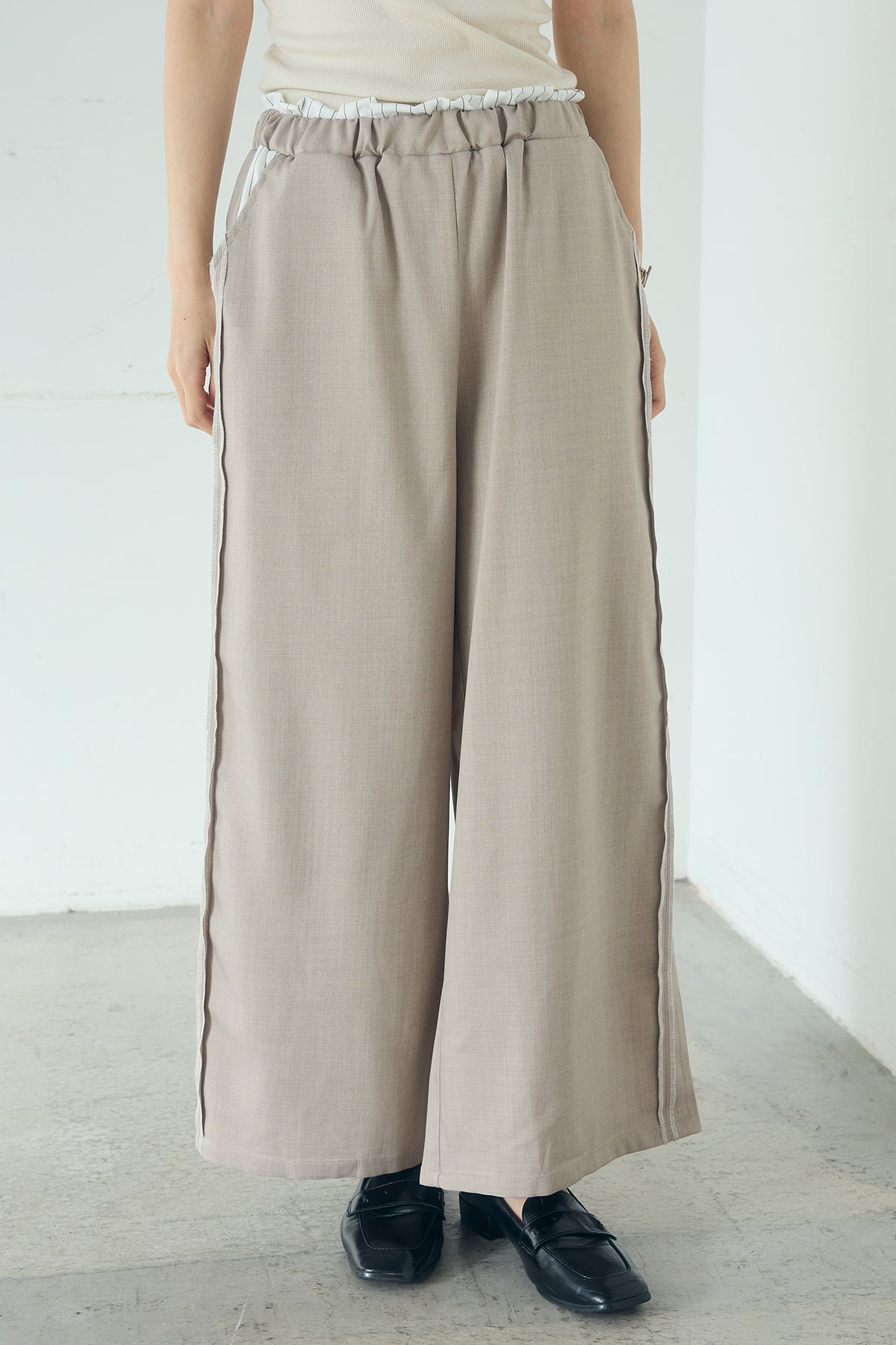 リラックス感ときちんと見えを両立した、大人のイージーパンツ。 ほどよく落ち感のある素材が魅力のトラックイージーパンツ。ゆとりを持たせたストレートシルエットが自然な抜け感を生み、ラフになりすぎず洗練された印象に仕上がります。 サイドにあしらったラインデザインがさりげないアクセントとなり、シンプルなトップスと合わせるだけでもバランスの整ったスタイリングに。ウエストはイージー仕様で快適な穿き心地を叶え、日常使いにも取り入れやすい一本です。 シャツやジャケットを合わせたきれいめな装いから、ニットやスウェットとのリラックススタイルまで幅広く活躍。季節を問わず取り入れやすい着回し力の高いアイテムです。