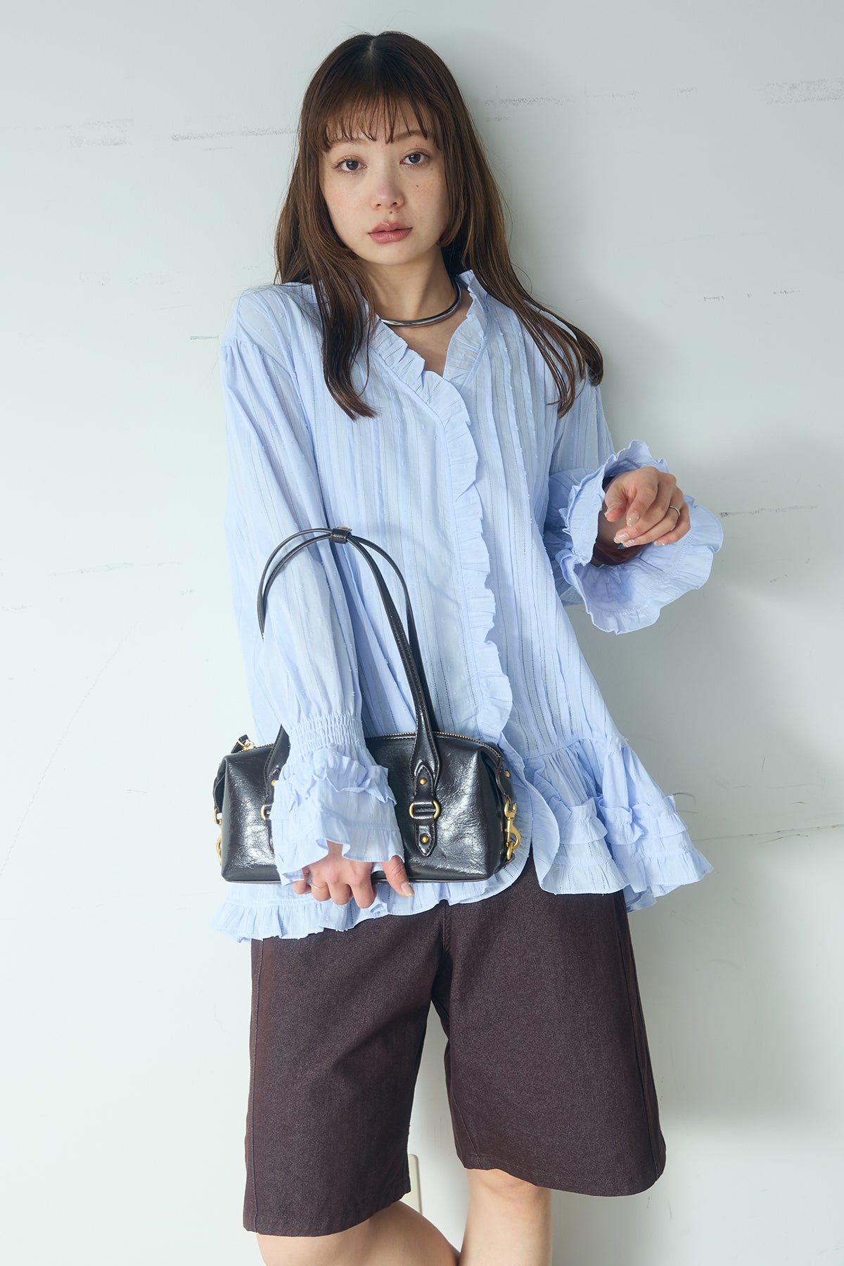 Vネックランダムフリルブラウスの他のセットページはこちら