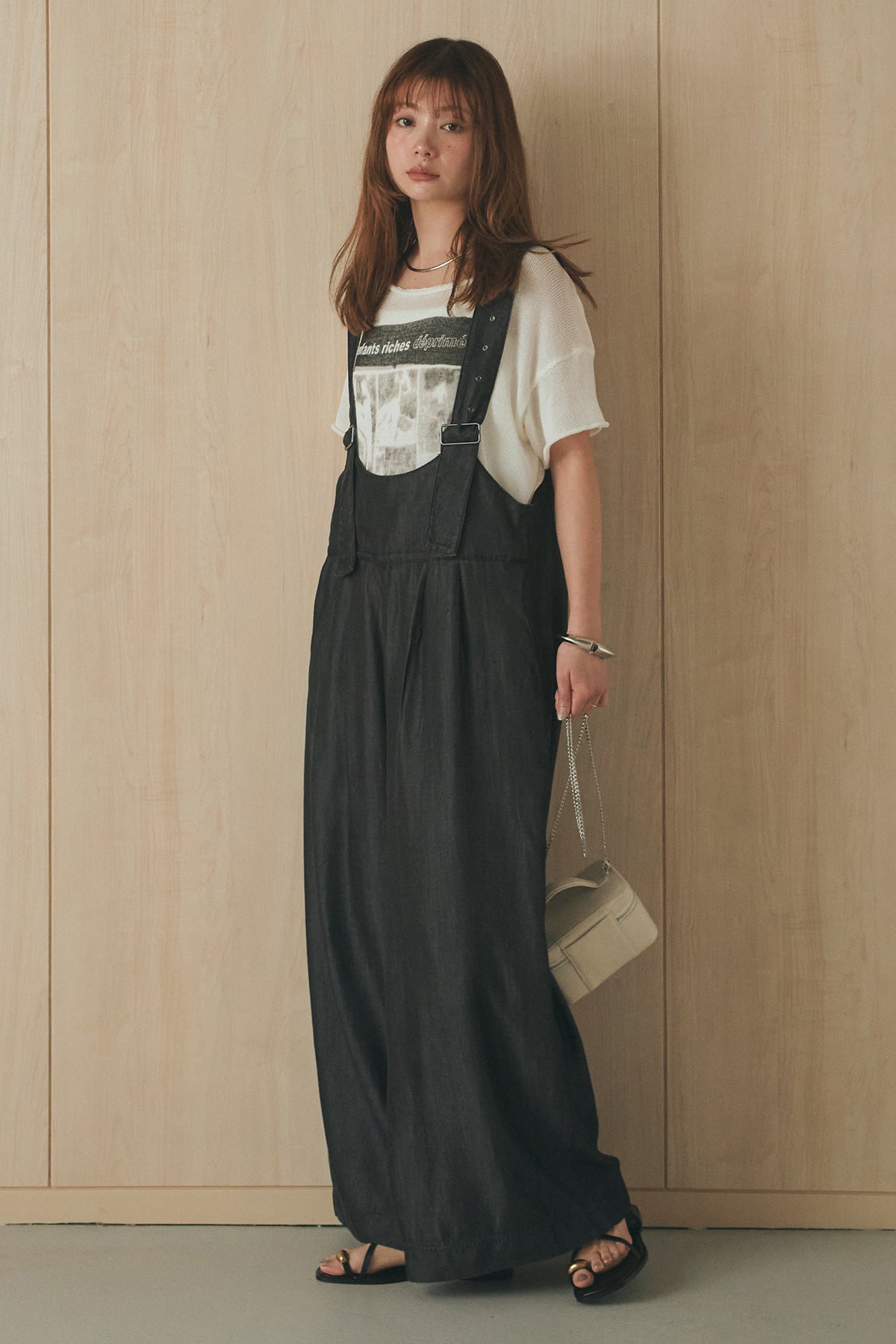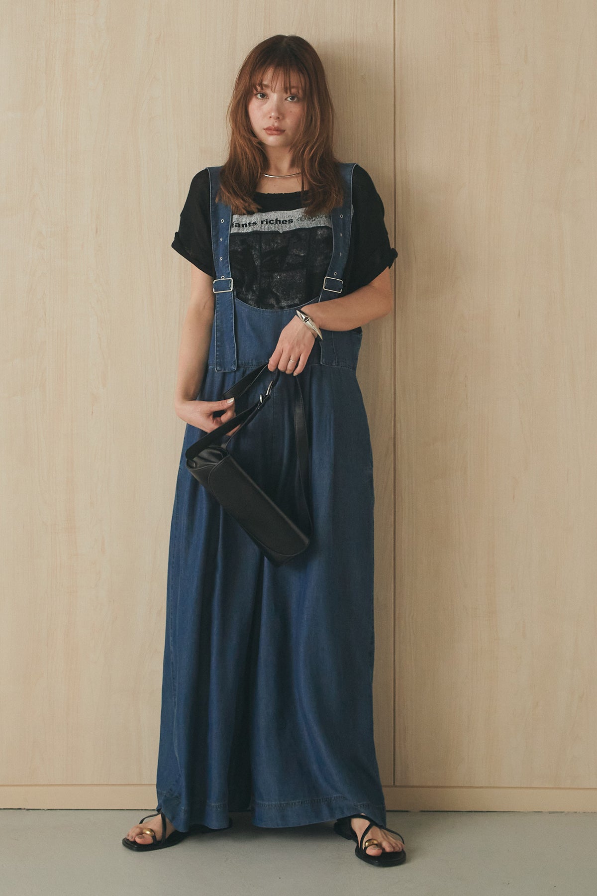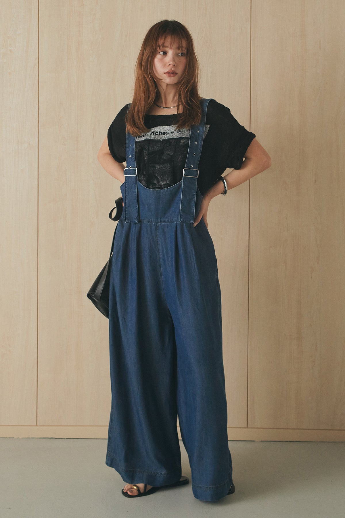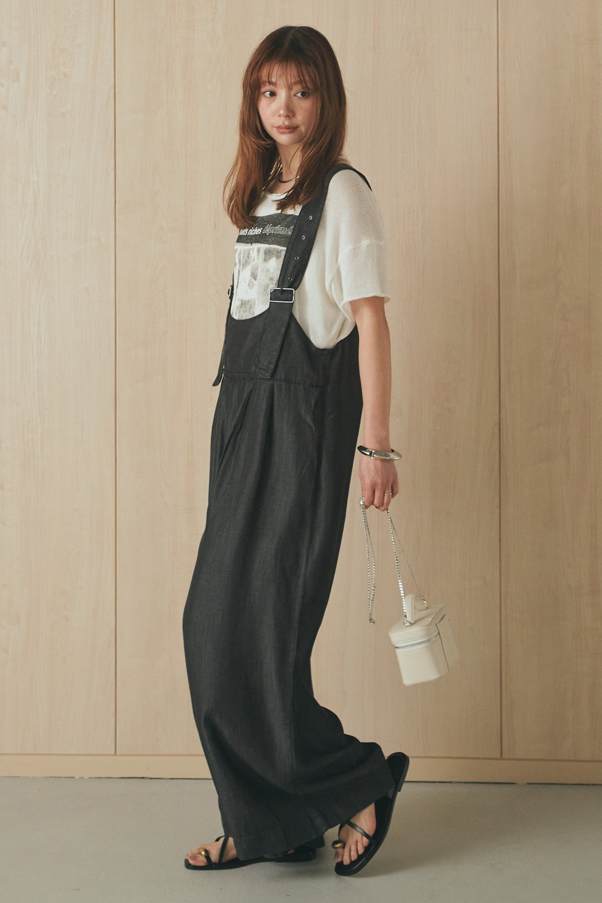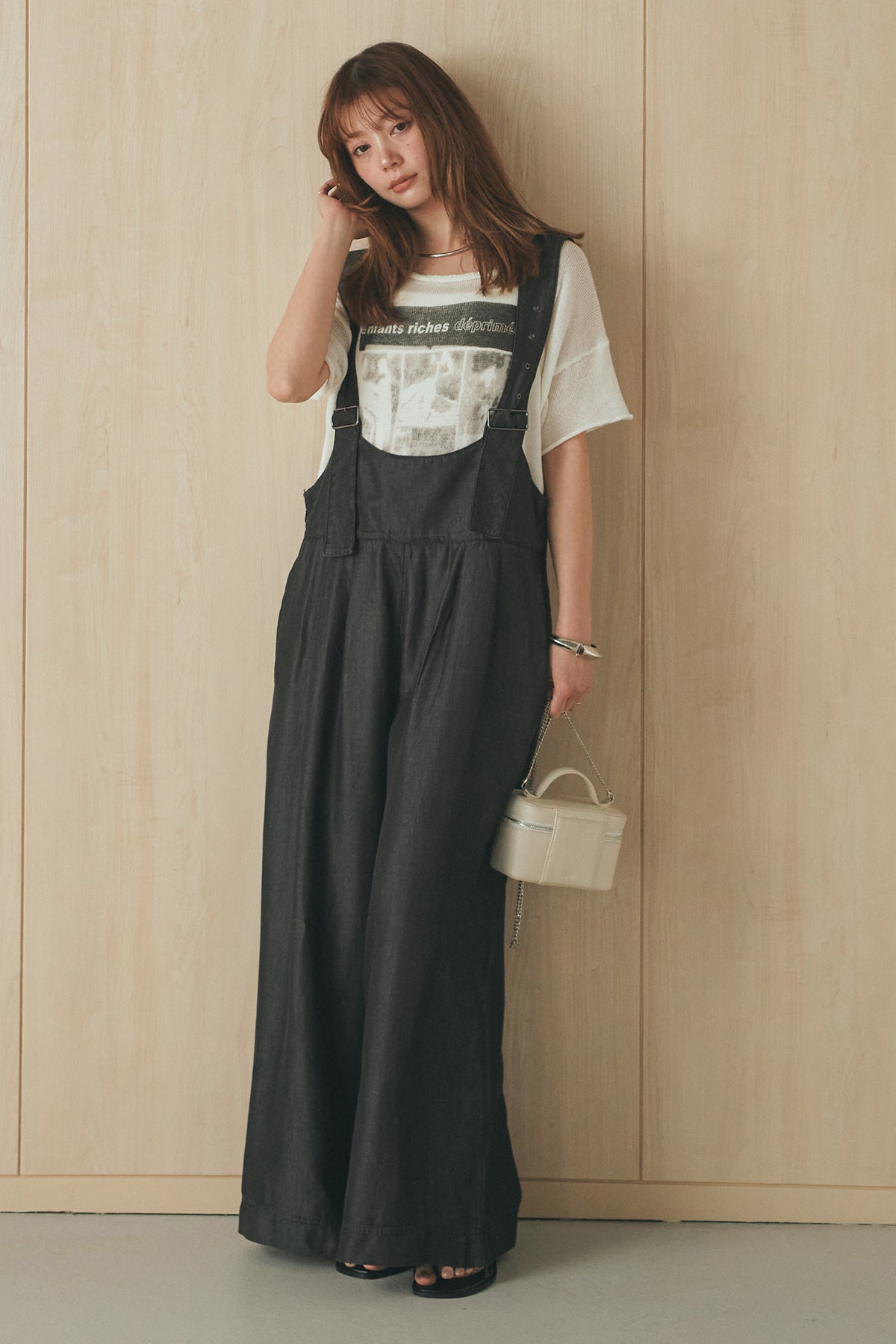 [SET]半袖モノトーングラフィックトップス+前後2WAYテンセルデニムサロペット(2set)