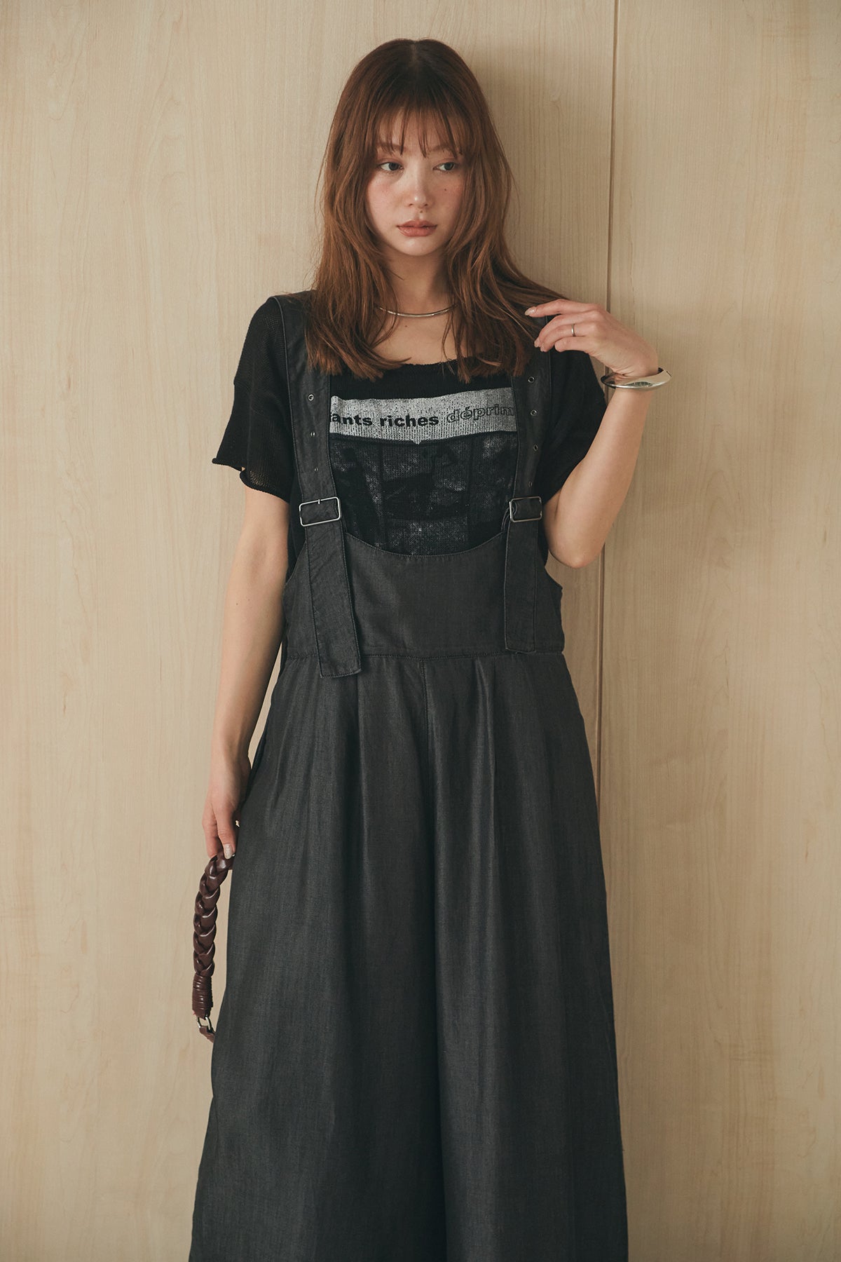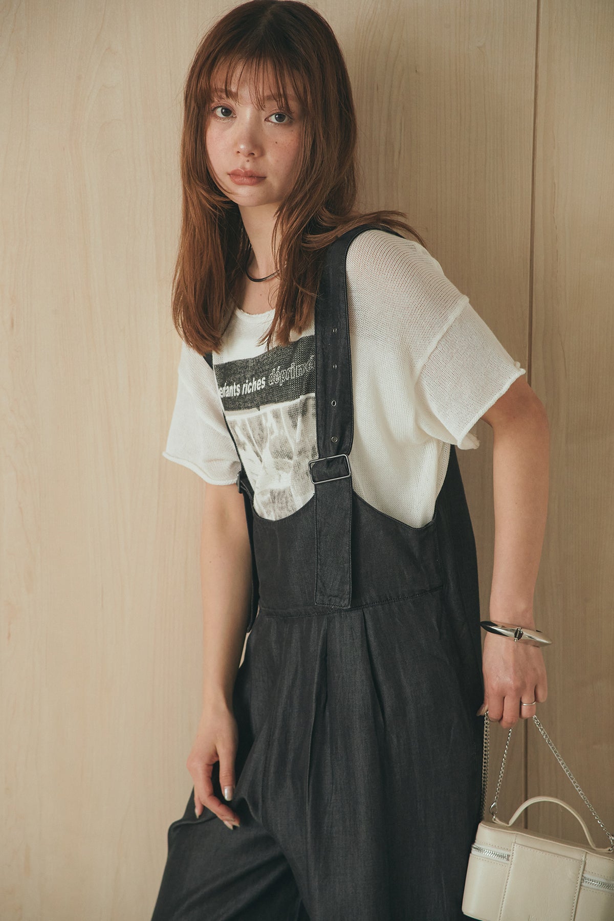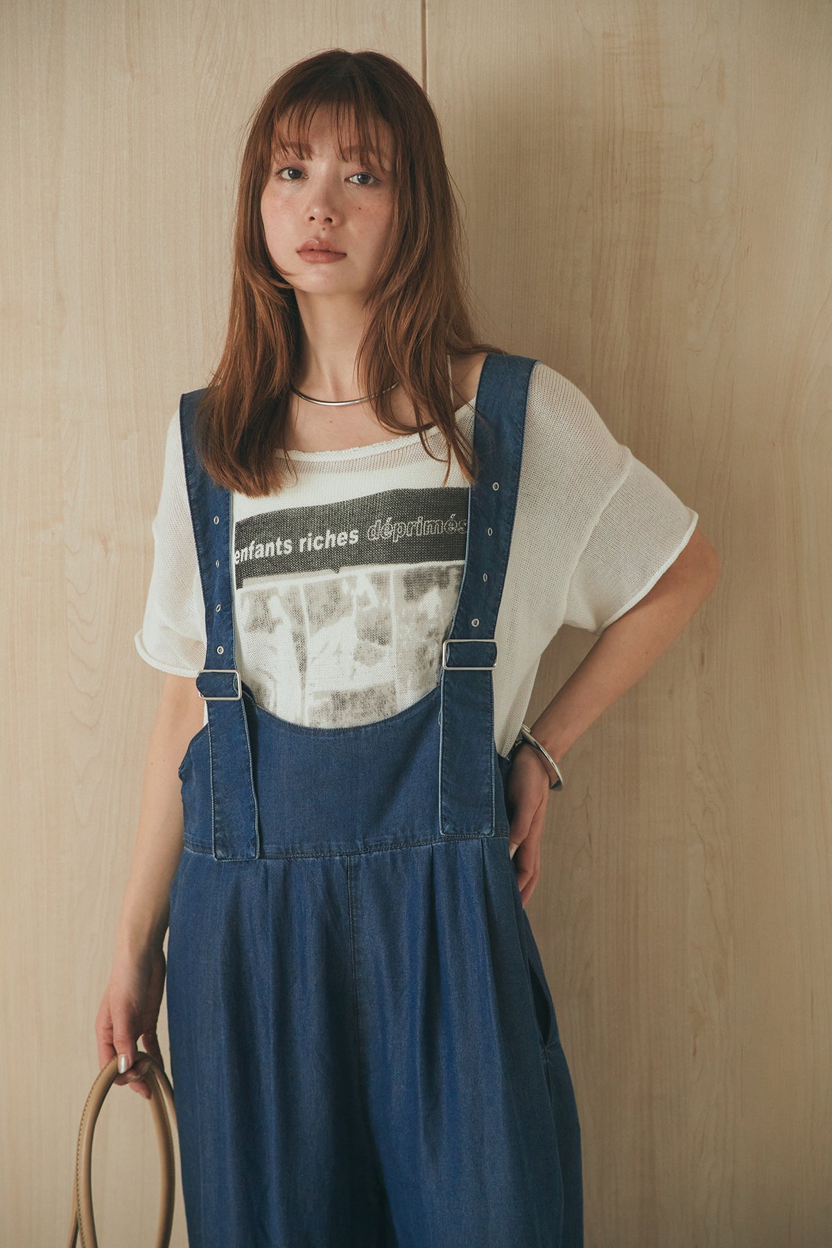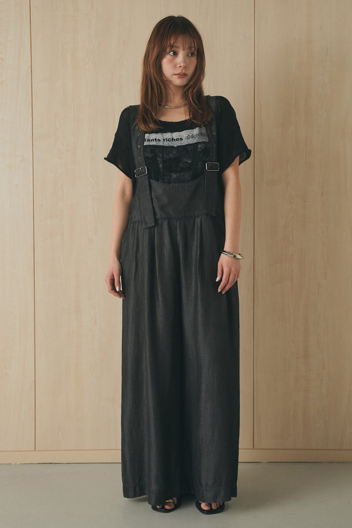 [SET]半袖モノトーングラフィックトップス+前後2WAYテンセルデニムサロペット(2set)
