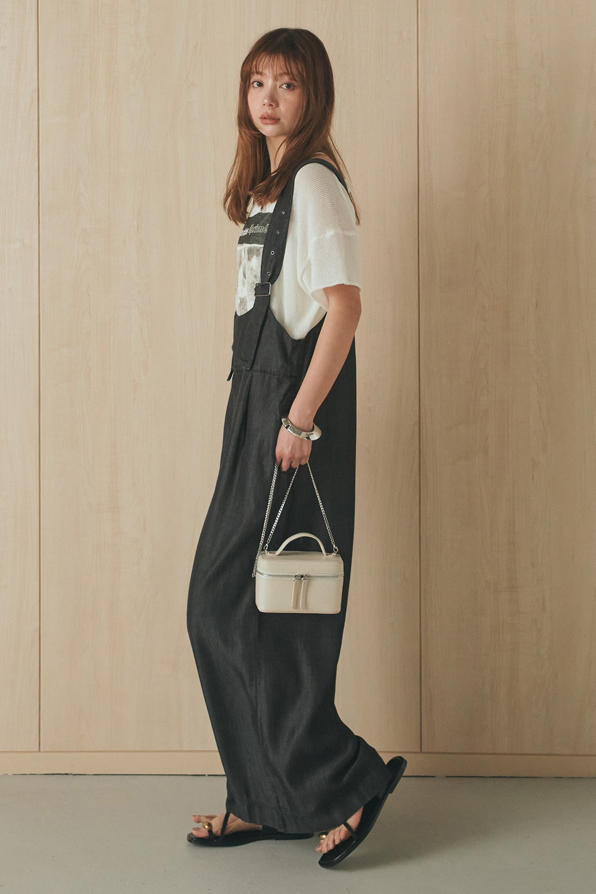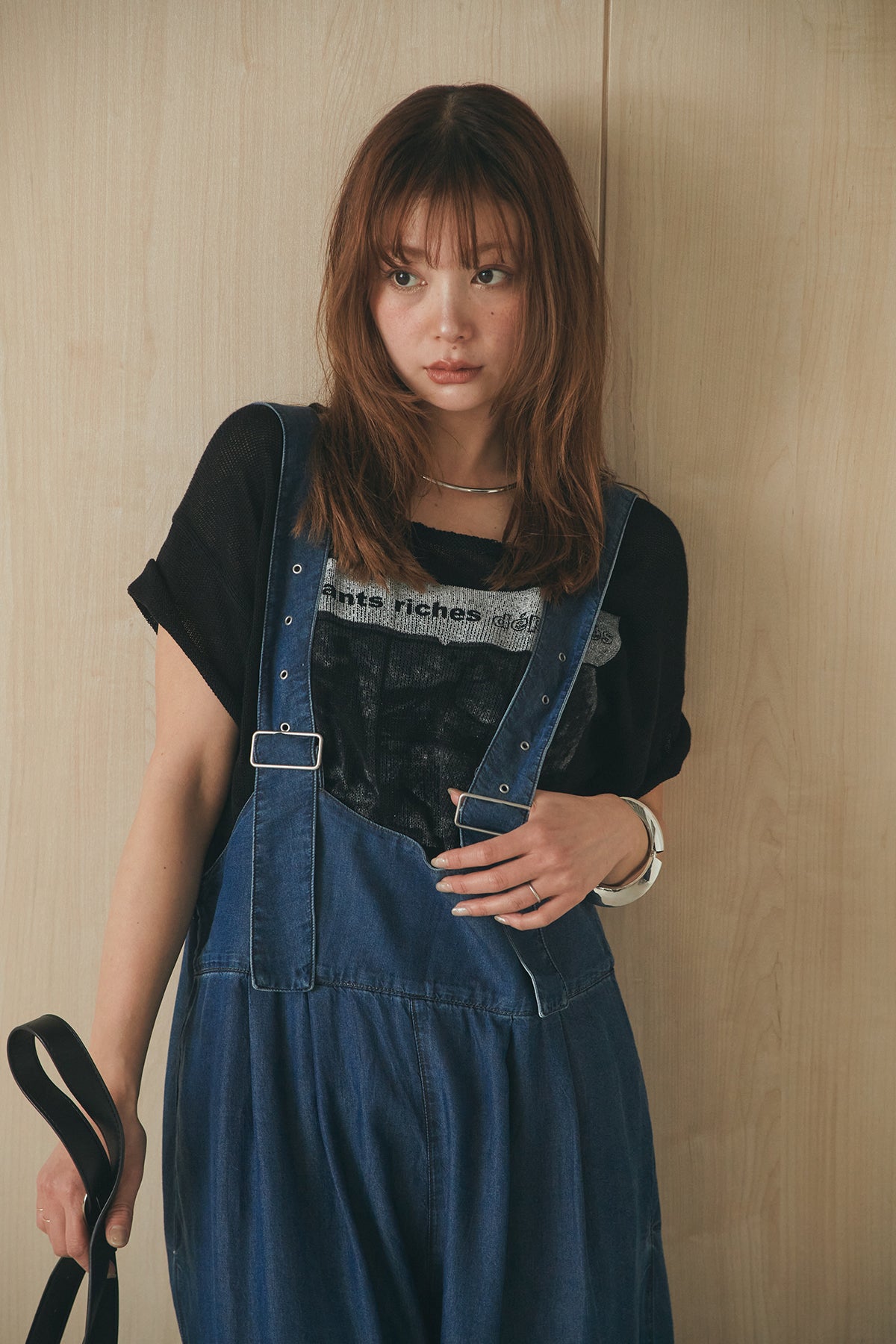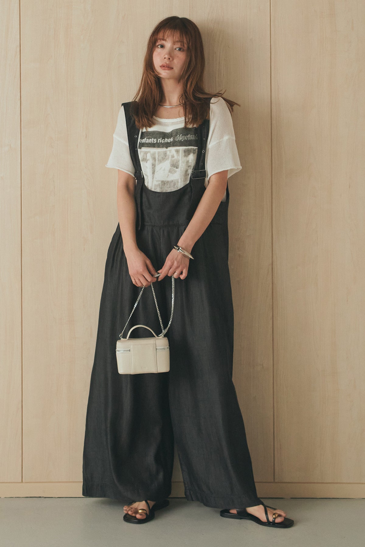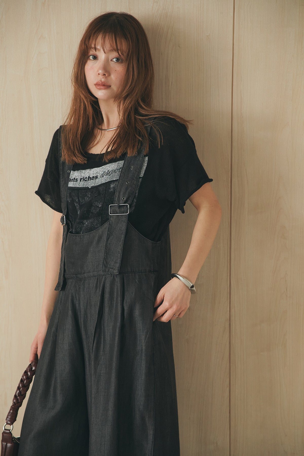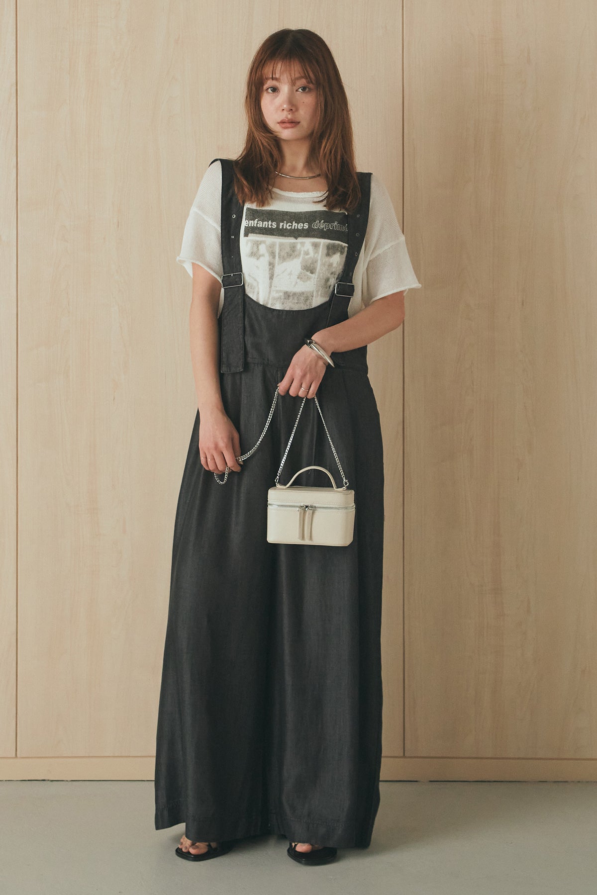 [SET]半袖モノトーングラフィックトップス+前後2WAYテンセルデニムサロペット(2set)