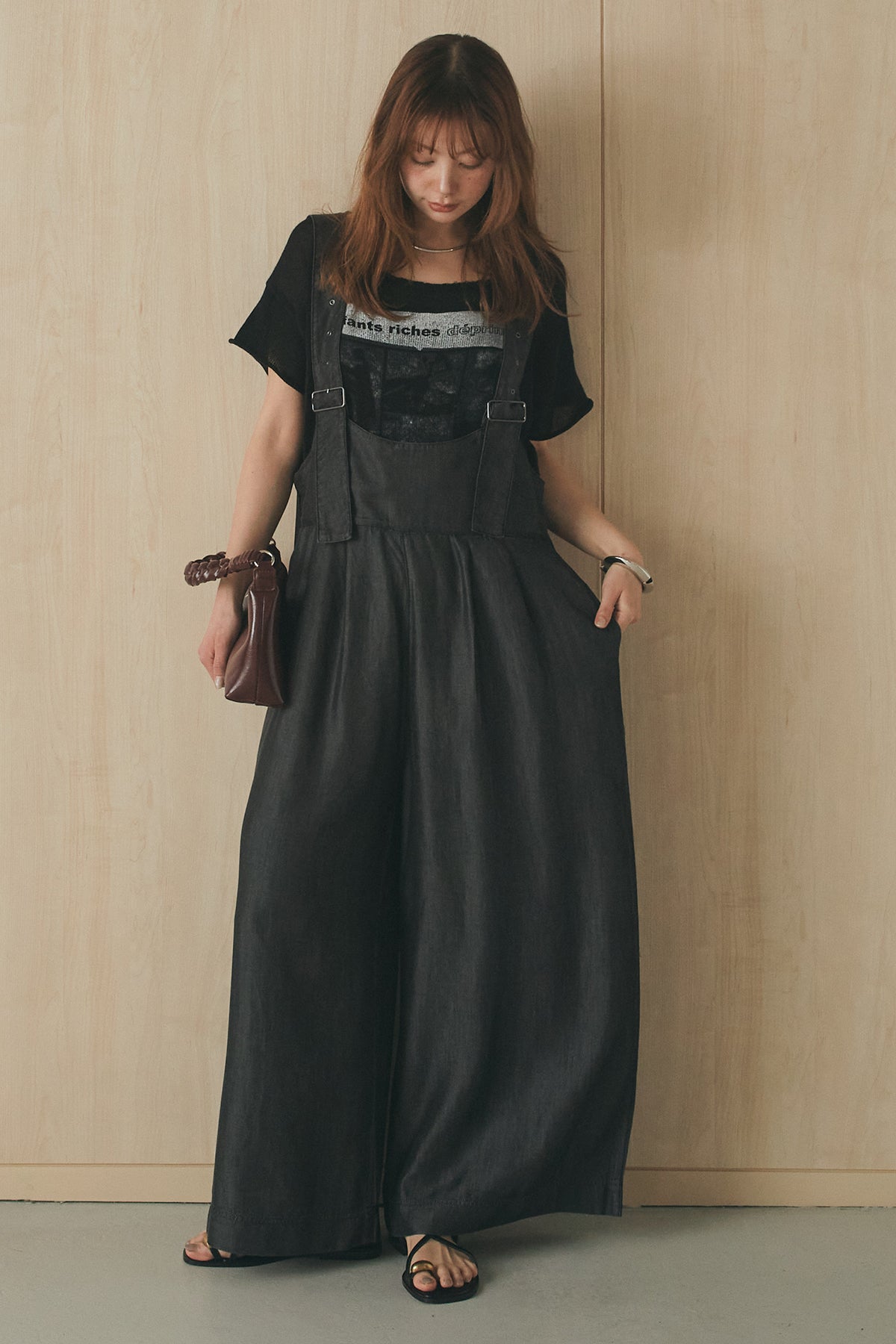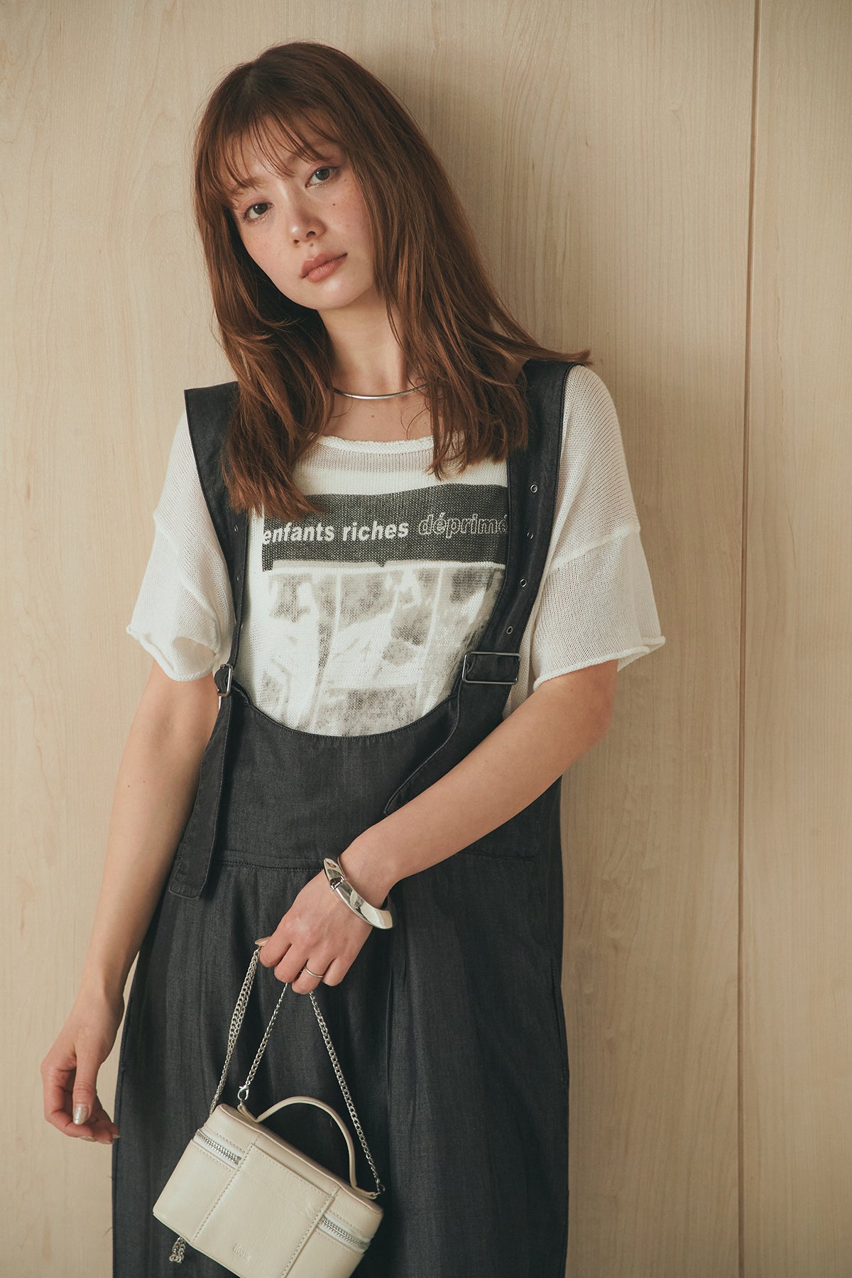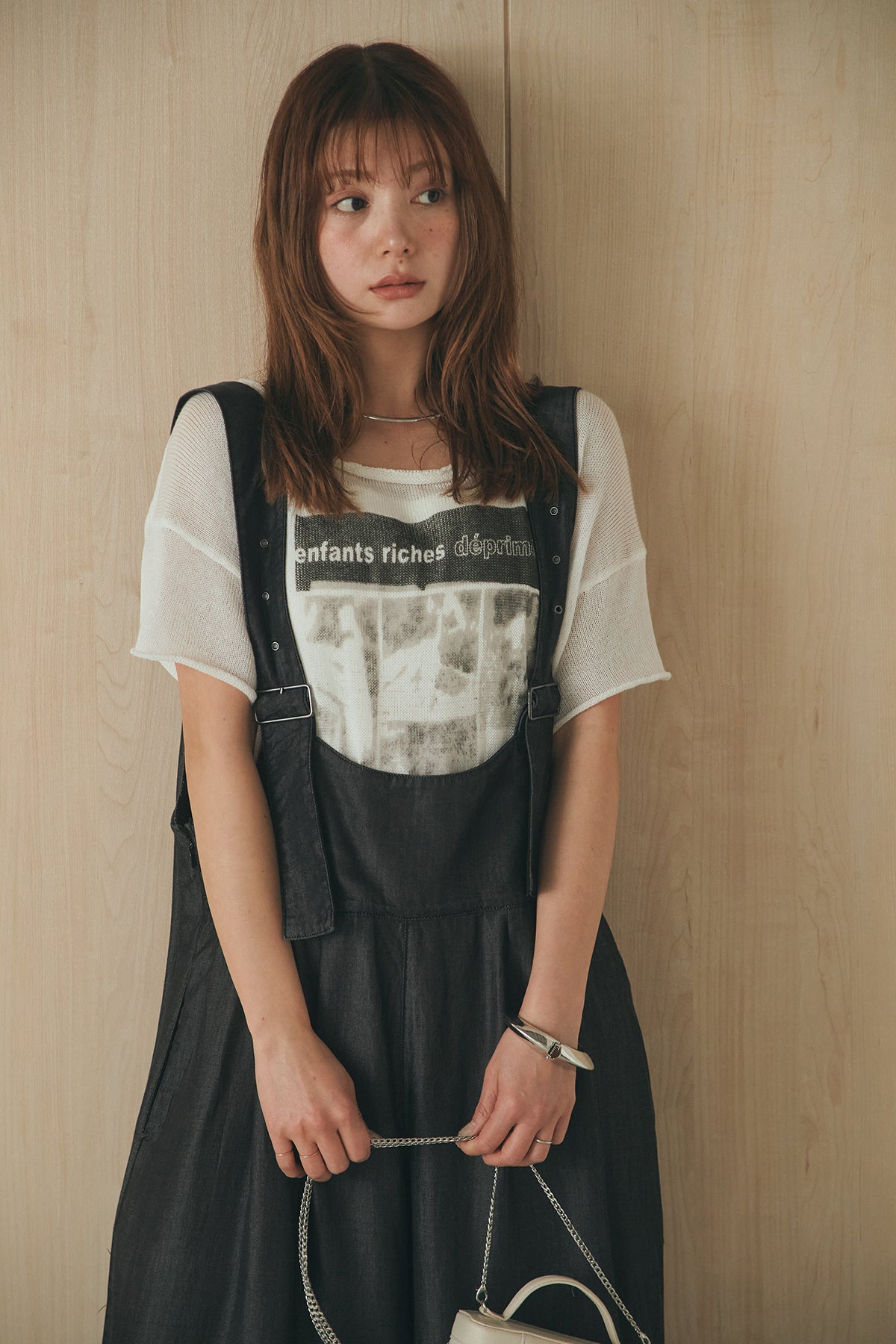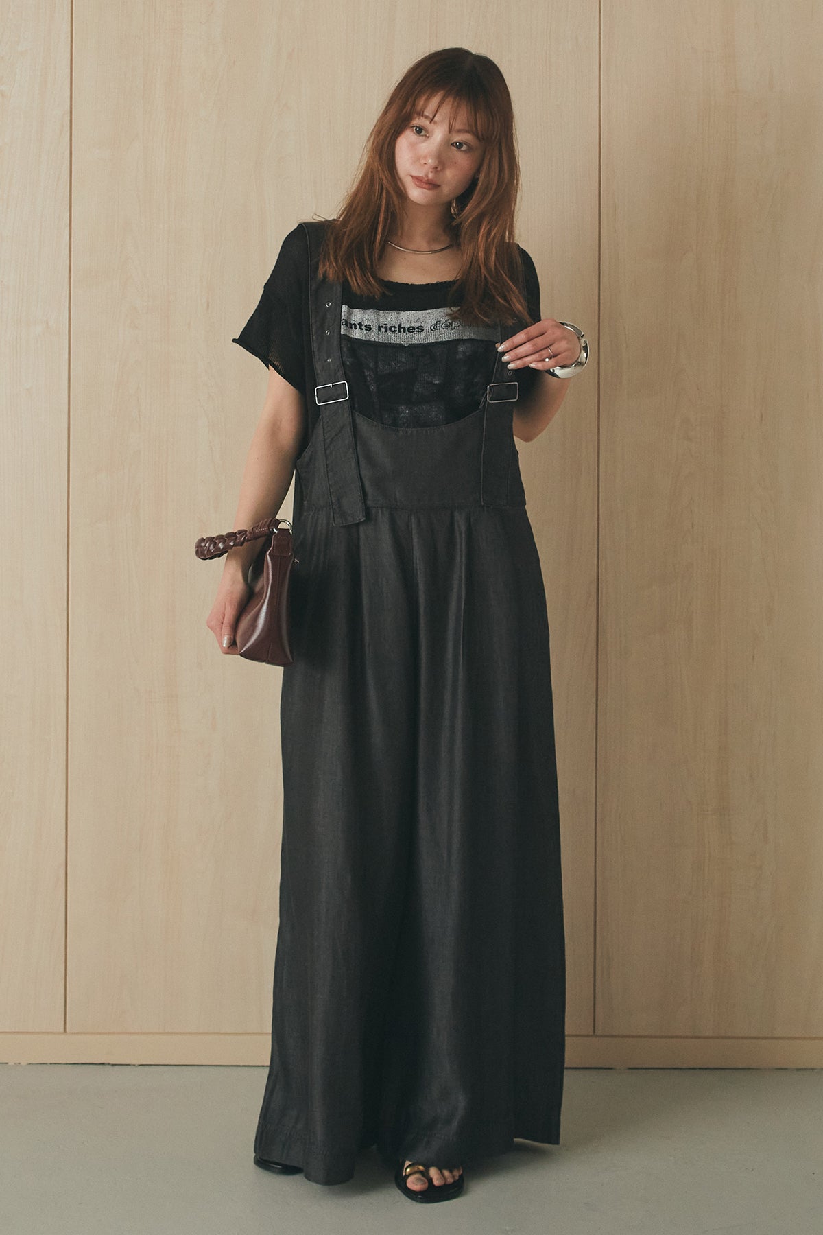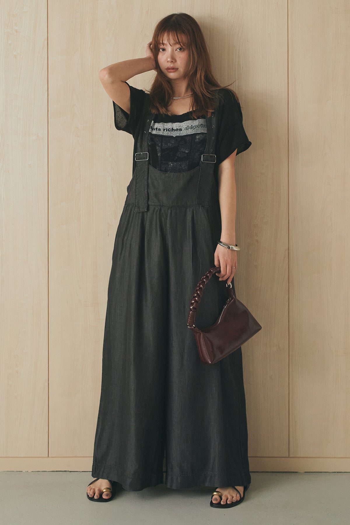 [SET]半袖モノトーングラフィックトップス+前後2WAYテンセルデニムサロペット(2set)
