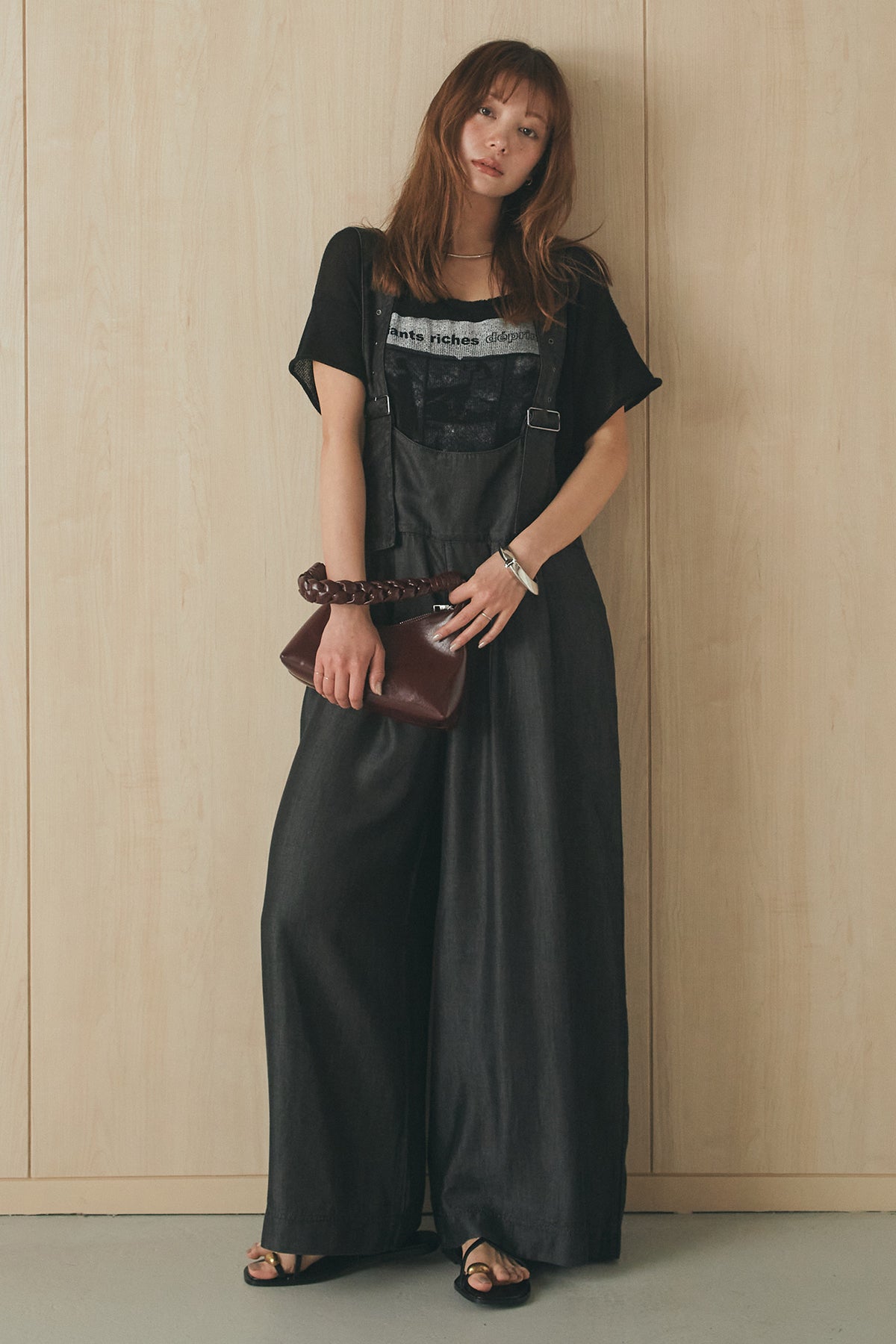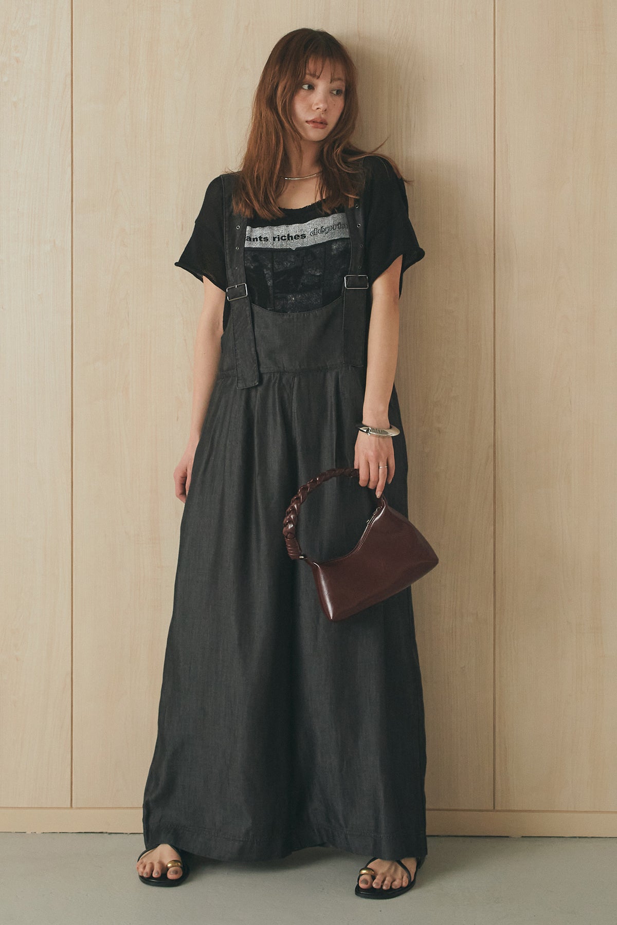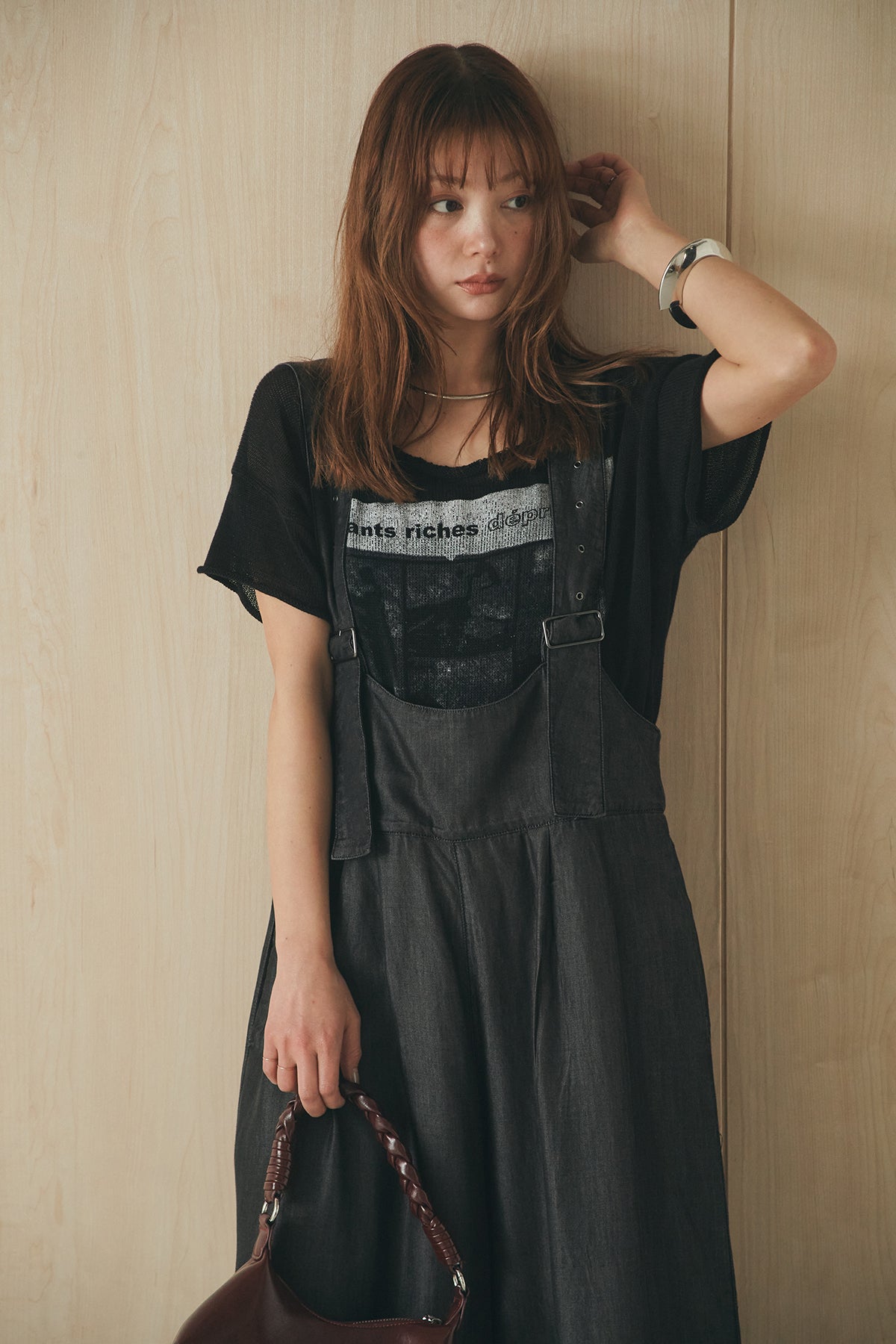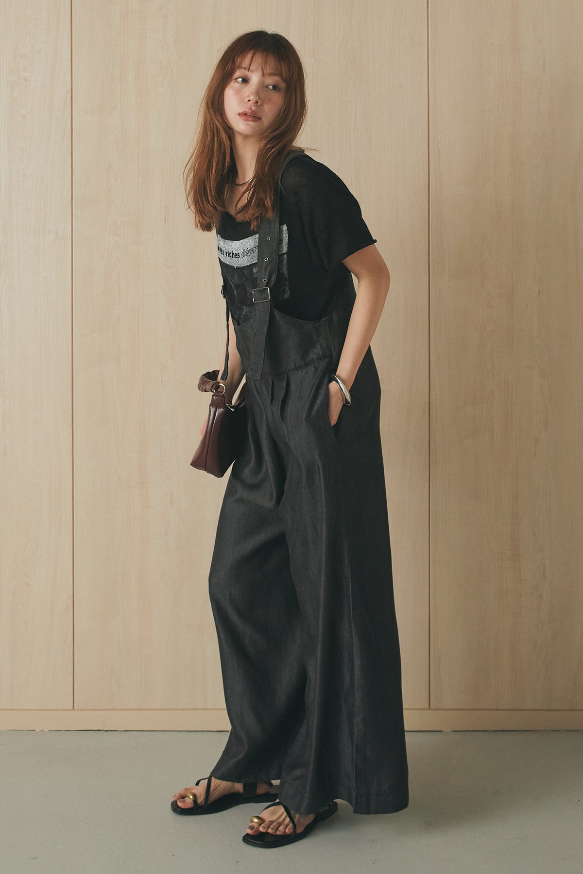 [SET]半袖モノトーングラフィックトップス+前後2WAYテンセルデニムサロペット(2set)