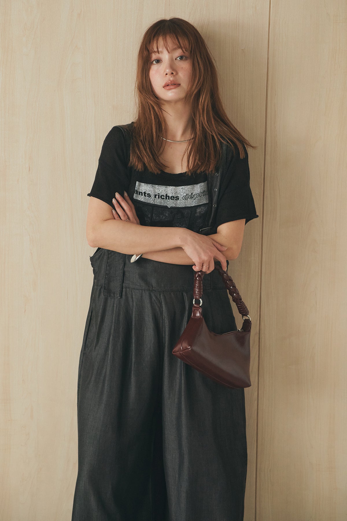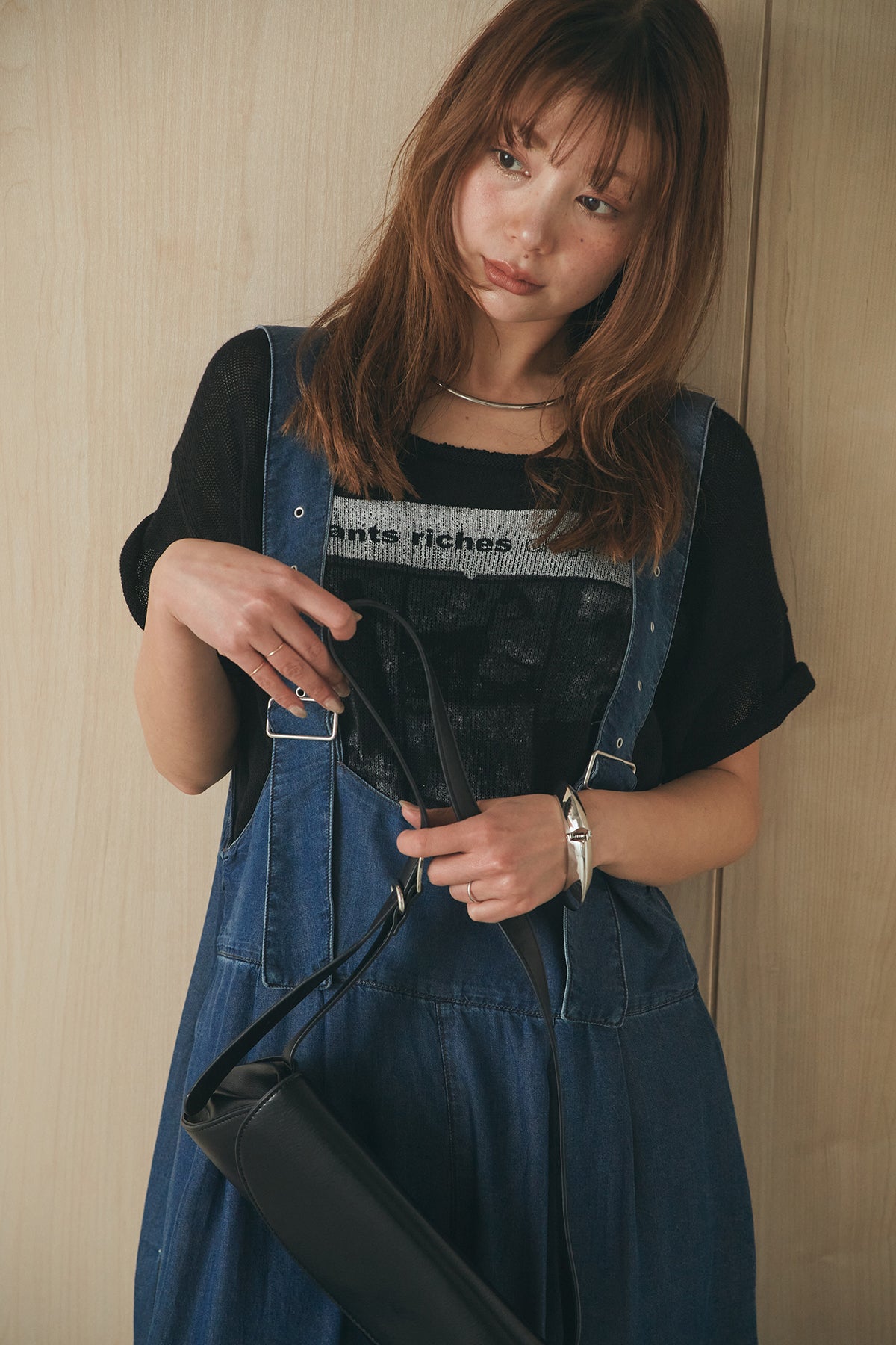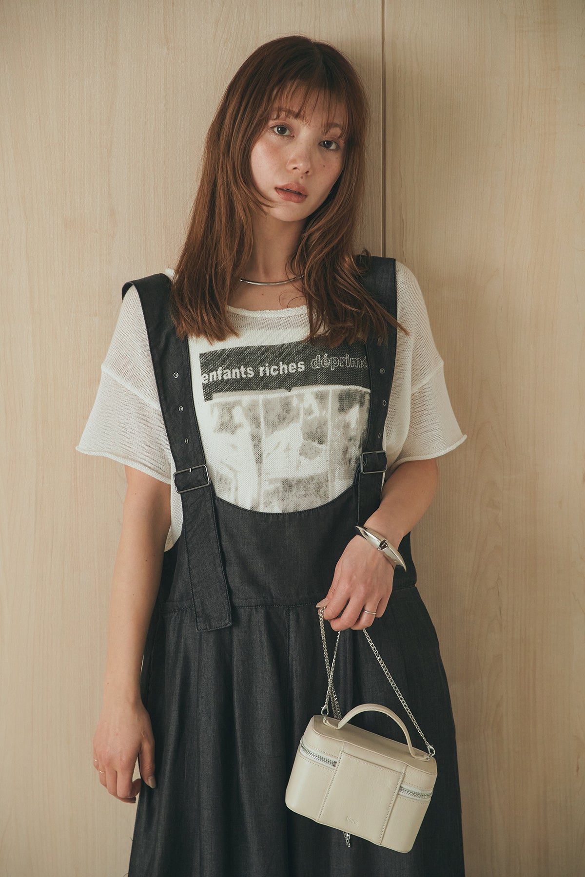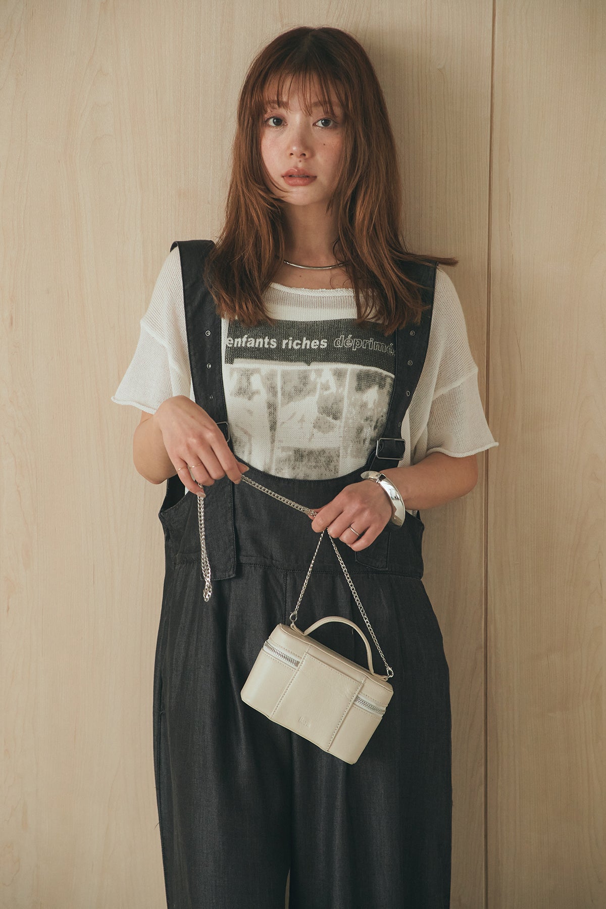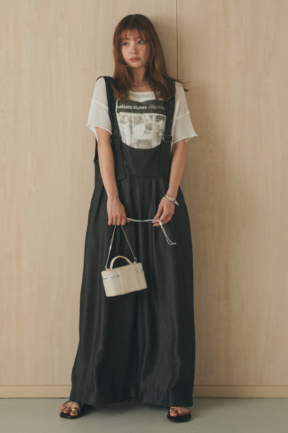[SET]半袖モノトーングラフィックトップス+前後2WAYテンセルデニムサロペット(2set)