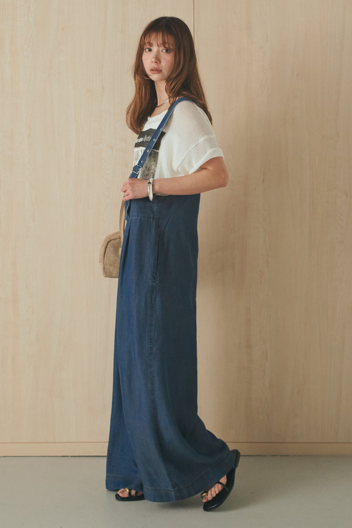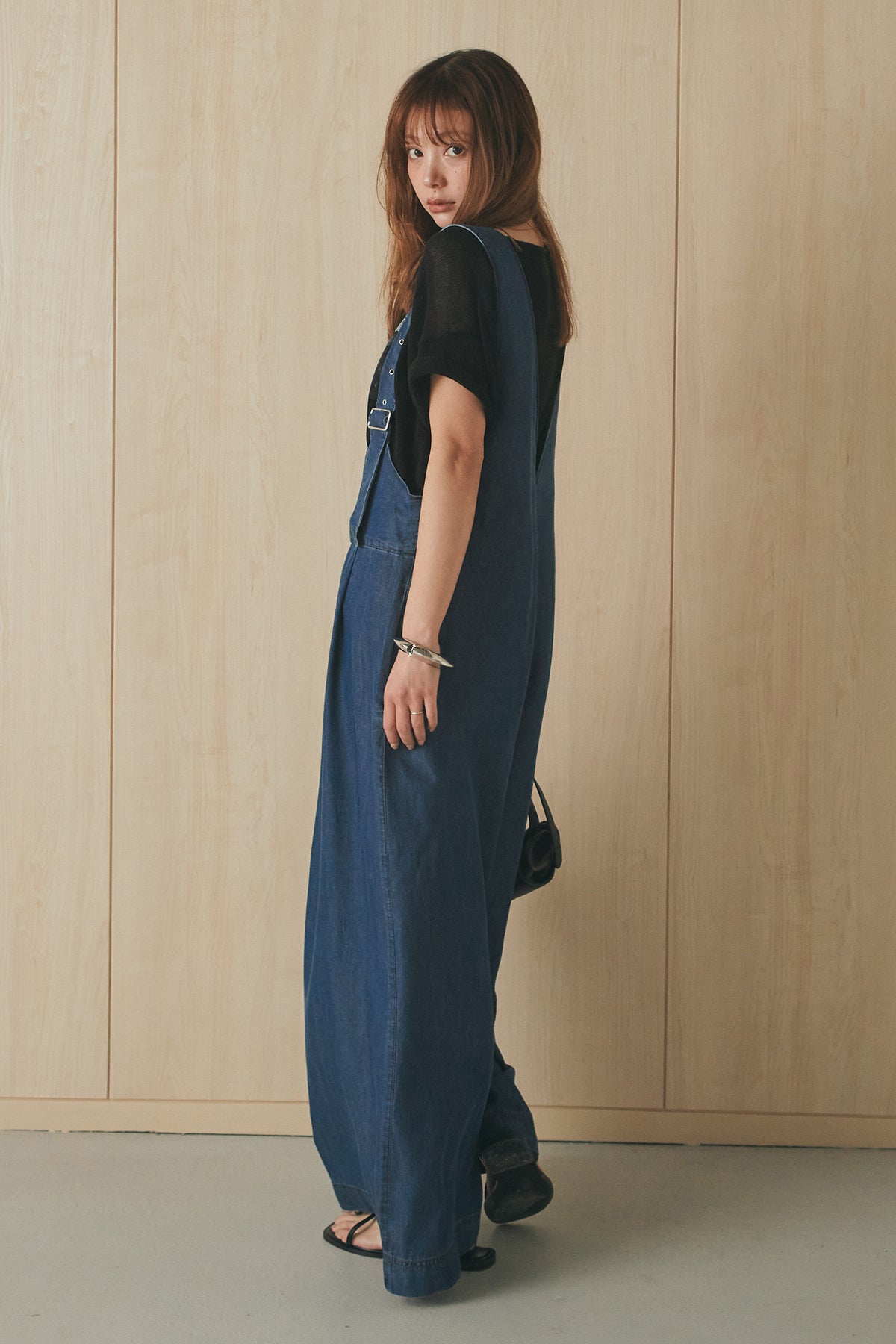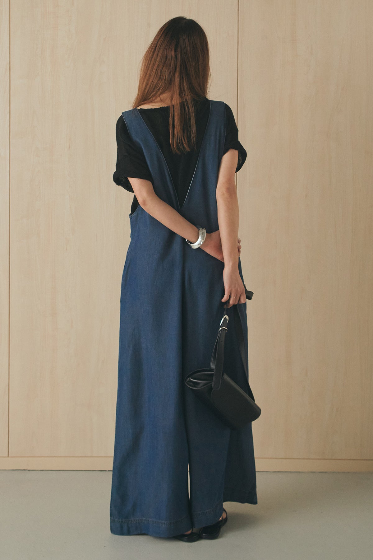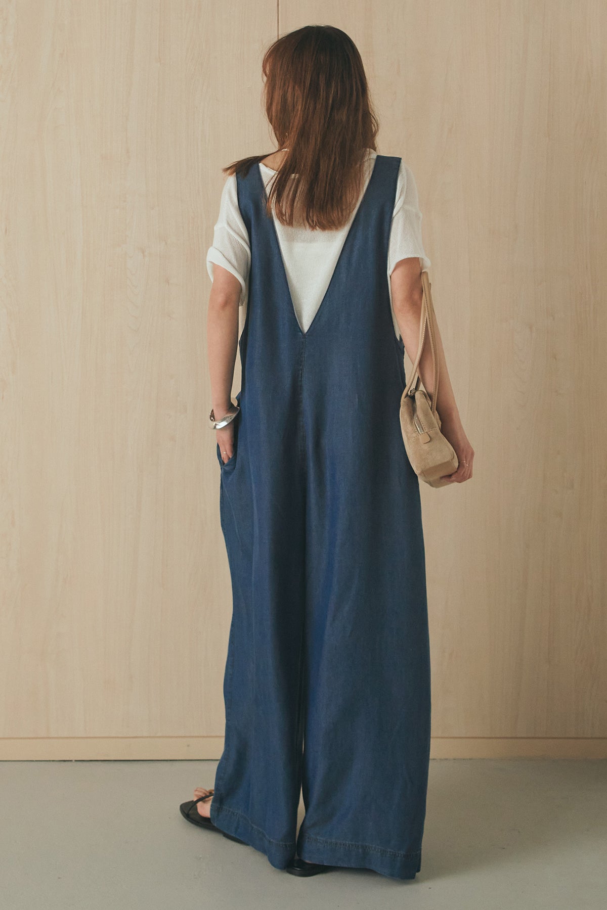 前後2WAYで着こなしを楽しめるテンセルデニムサロペット。 やわらかな落ち感のある素材が軽やかな印象を与え、ゆとりのあるシルエットでリラックスした着心地に仕上げました。フロントとバックで異なる表情を楽しめるデザインで、スタイリングの幅が広がる一枚。 インナー次第で印象を変えられ、デイリーに取り入れやすいアイテムです。