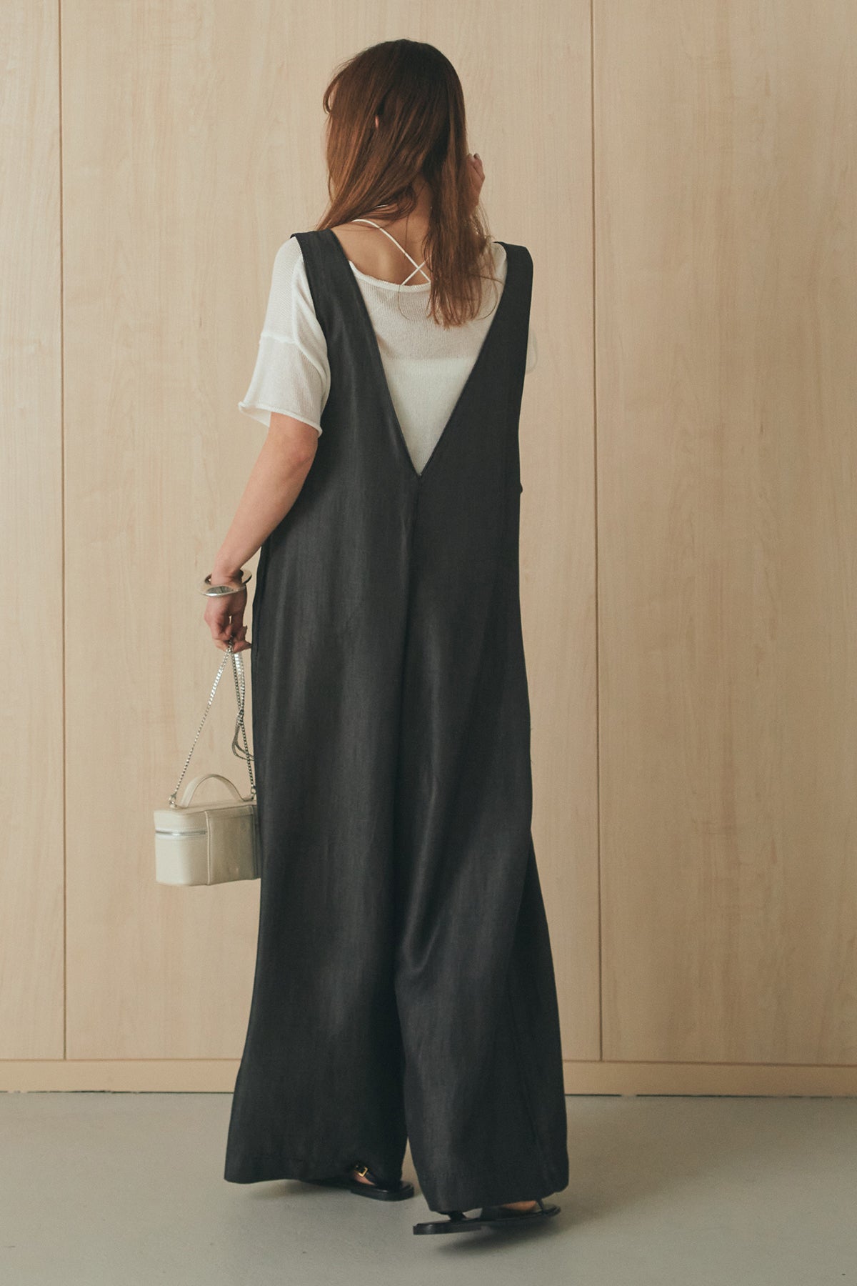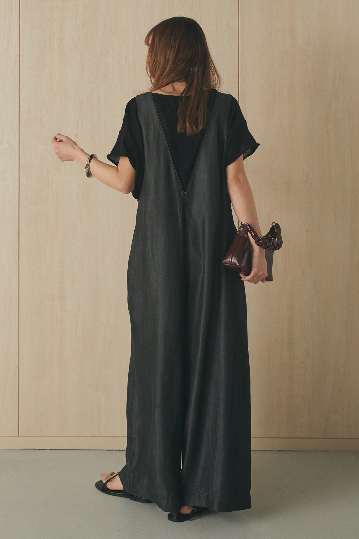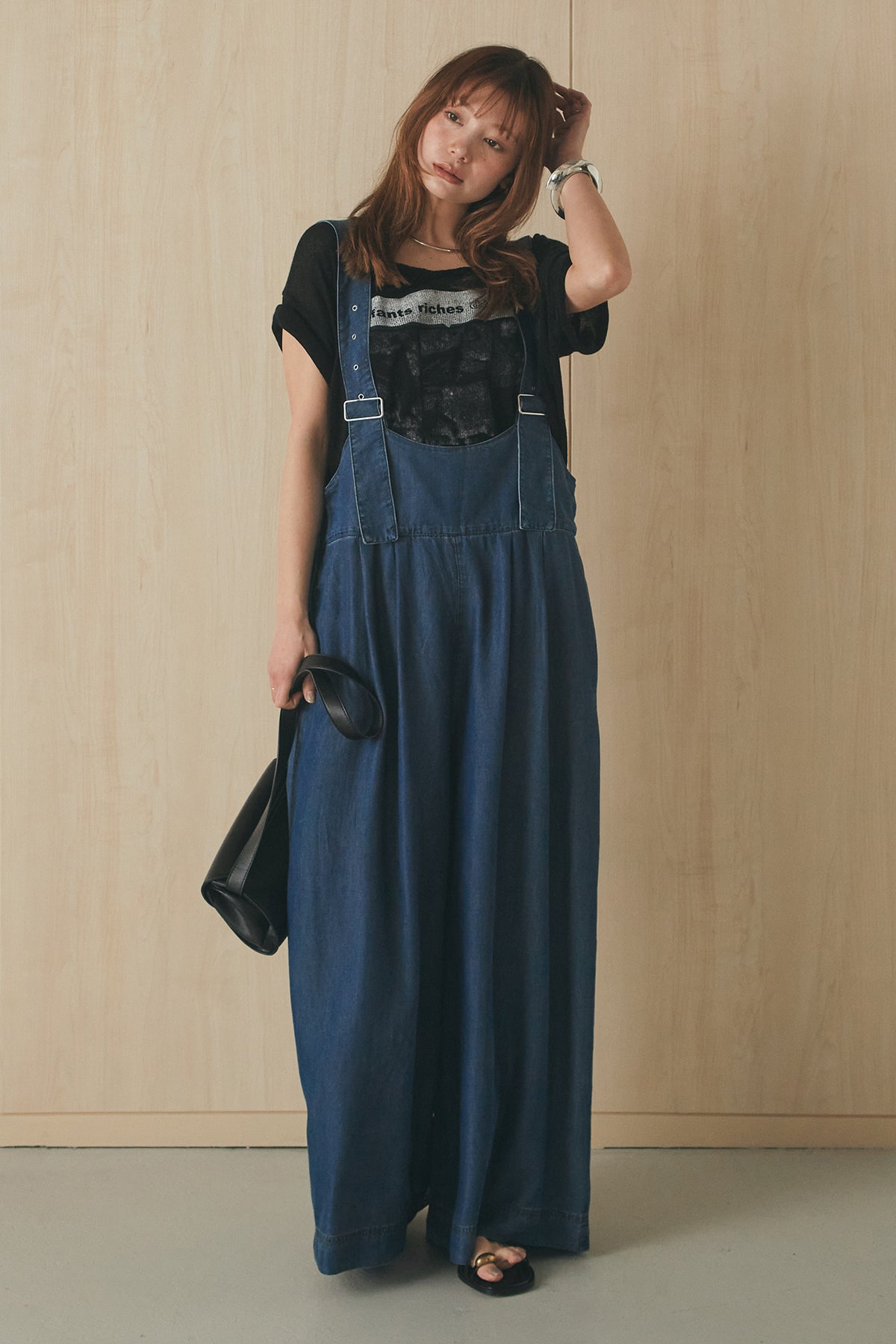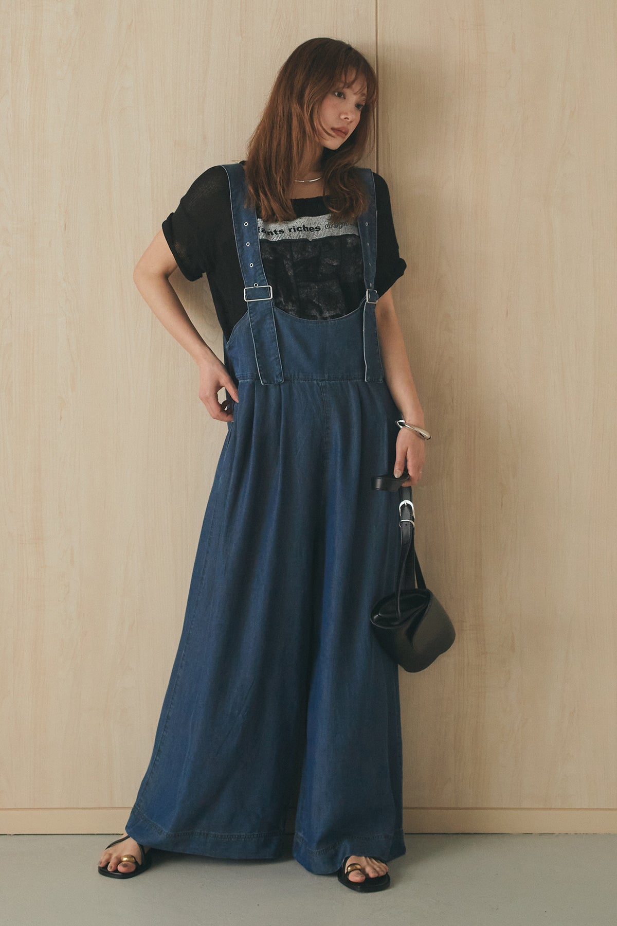 前後2WAYで着こなしを楽しめるテンセルデニムサロペット。 やわらかな落ち感のある素材が軽やかな印象を与え、ゆとりのあるシルエットでリラックスした着心地に仕上げました。フロントとバックで異なる表情を楽しめるデザインで、スタイリングの幅が広がる一枚。 インナー次第で印象を変えられ、デイリーに取り入れやすいアイテムです。