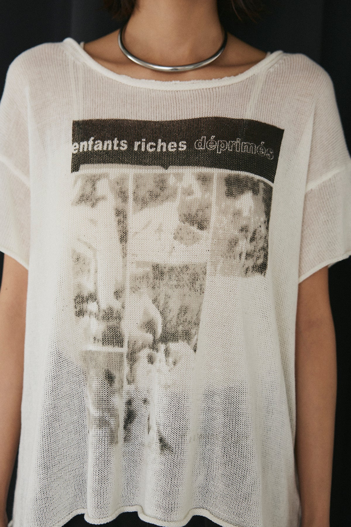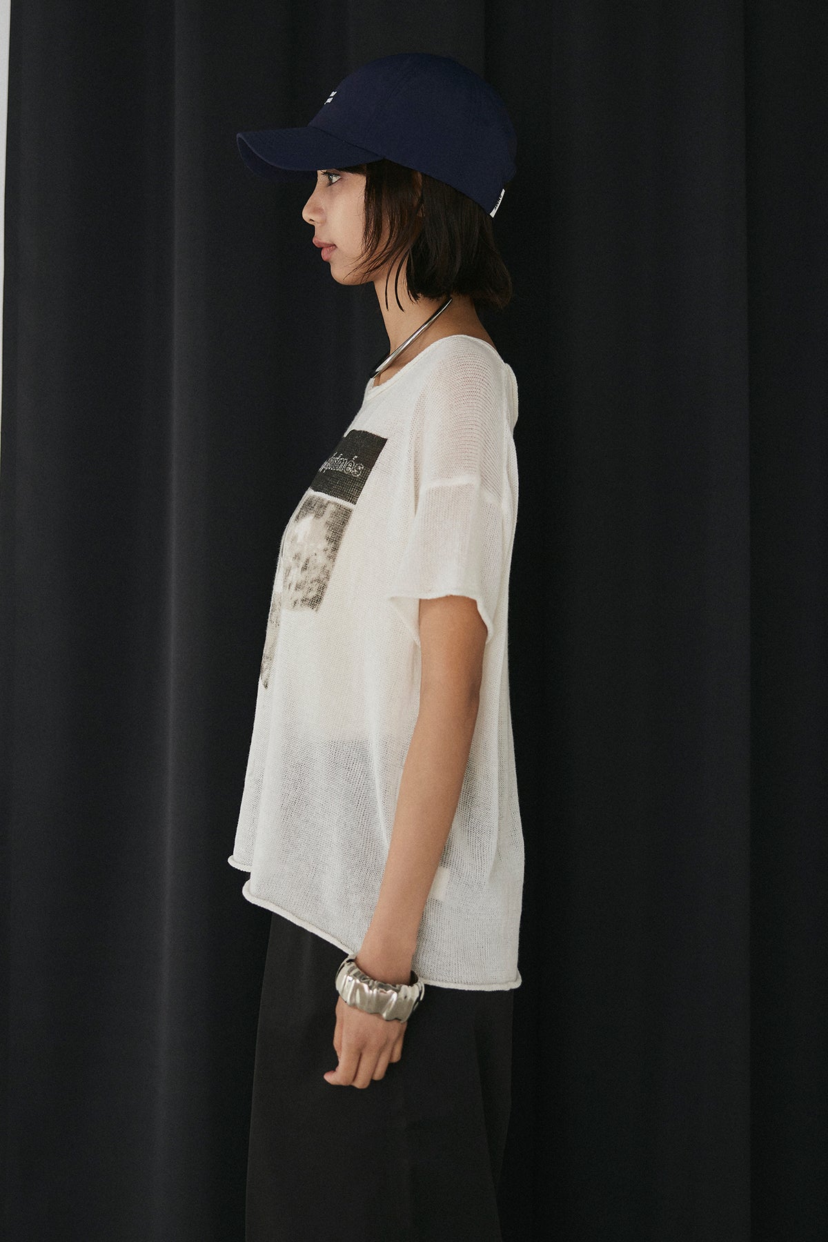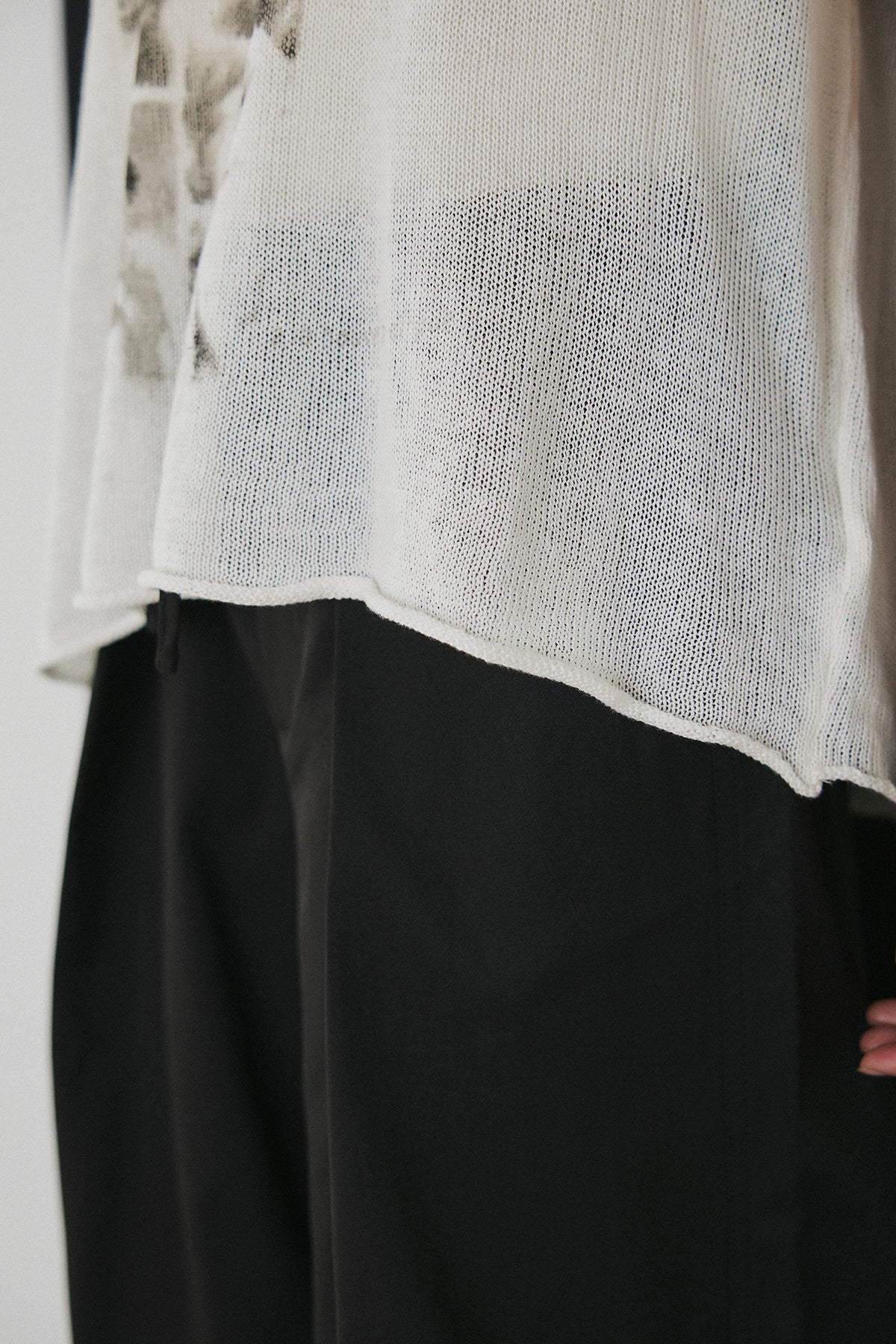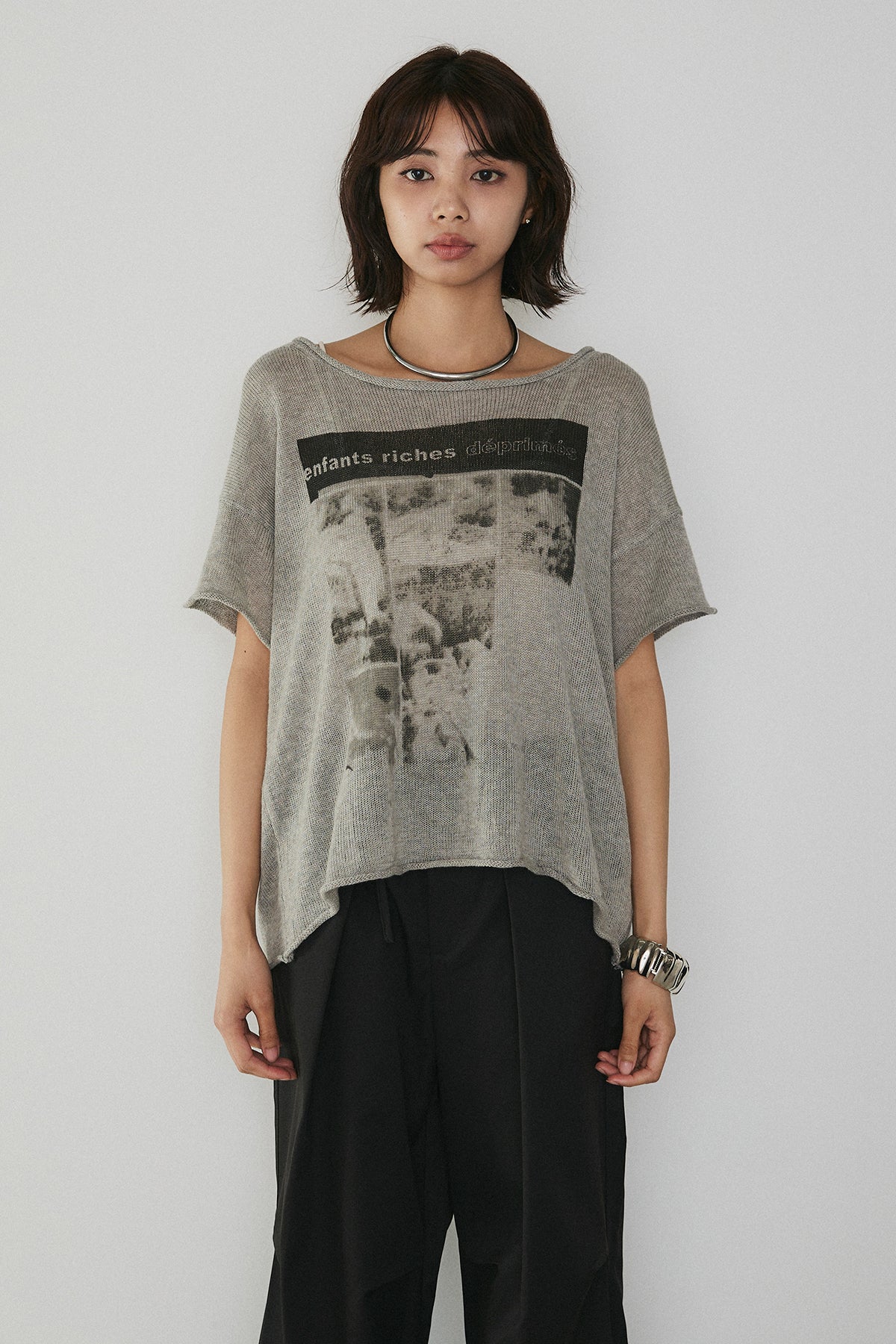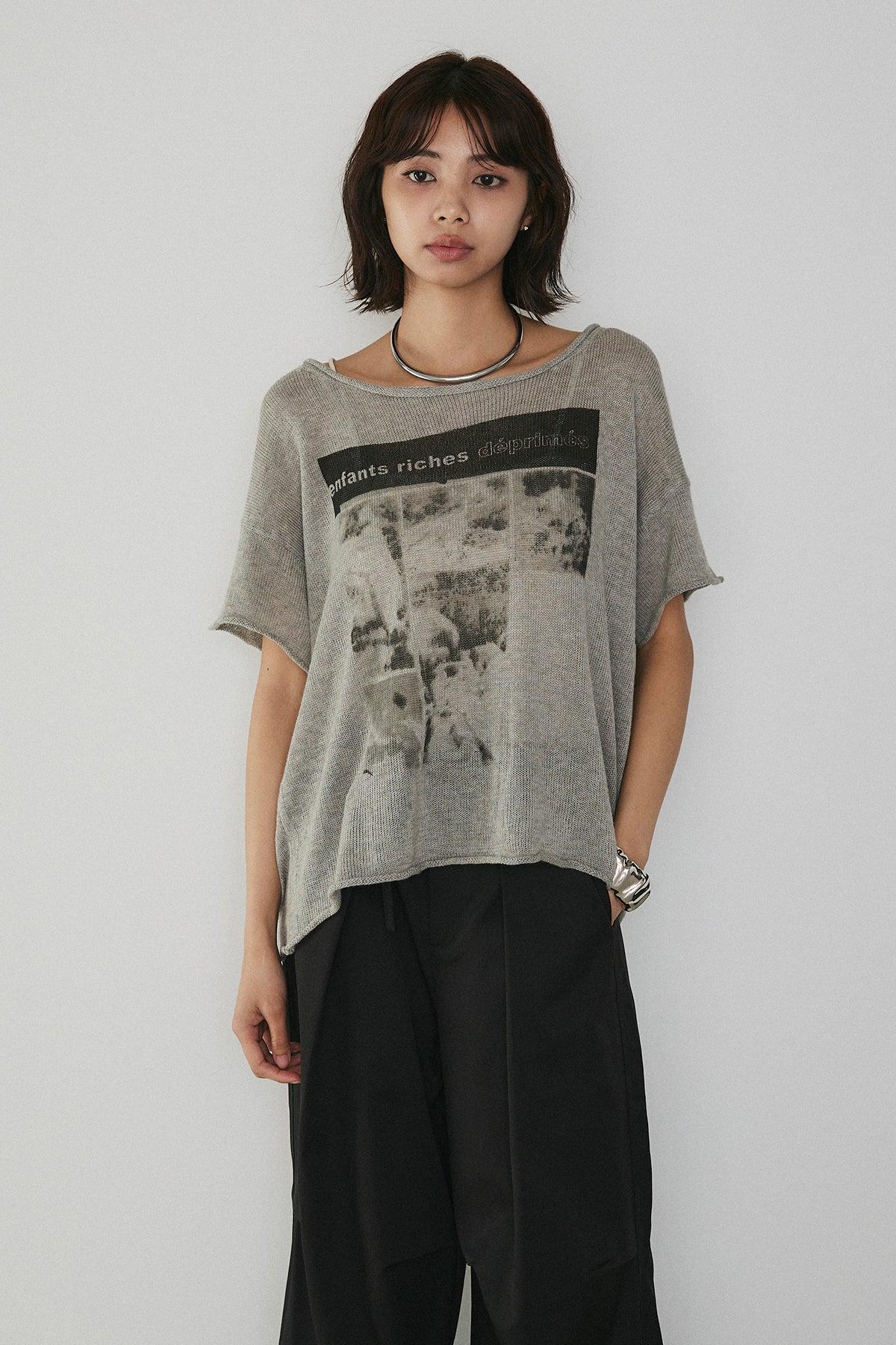 印象的なモノトーングラフィックが目を惹く、存在感のある半袖トップス。 アートのようなプリントがスタイリングにアクセントを加え、シンプルながらも洗練された雰囲気を演出します。 ほんのり透け感のある軽やかな素材で、抜け感のある着こなしに。 ゆったりとしたシルエットがリラックス感を生み、こなれた印象に仕上がります。 コンパクトなボトムからワイドパンツまでバランスよく合わせやすく、デイリーに活躍。 一枚でコーディネートが決まる、着映え力の高いアイテムです。